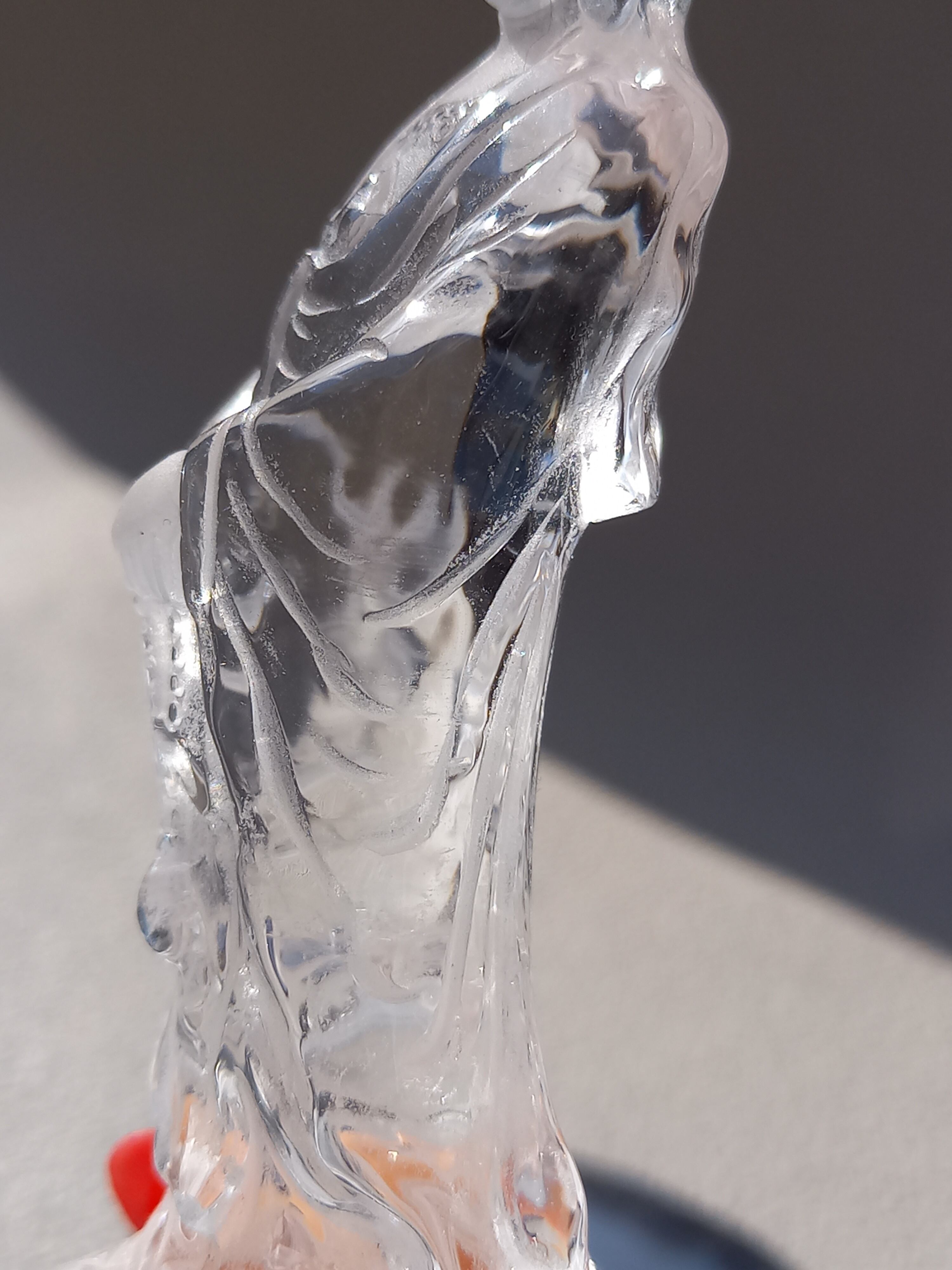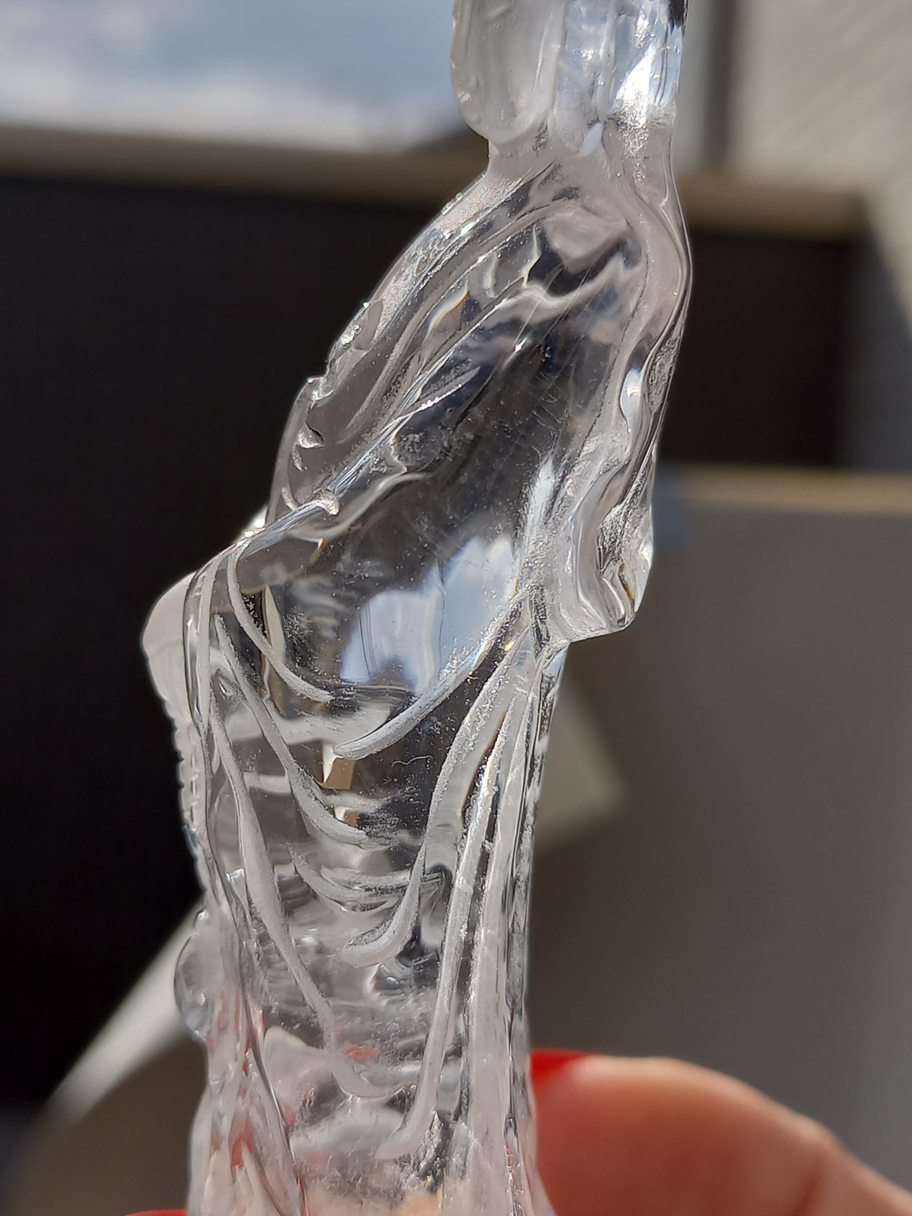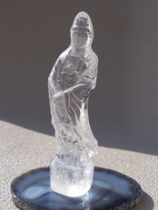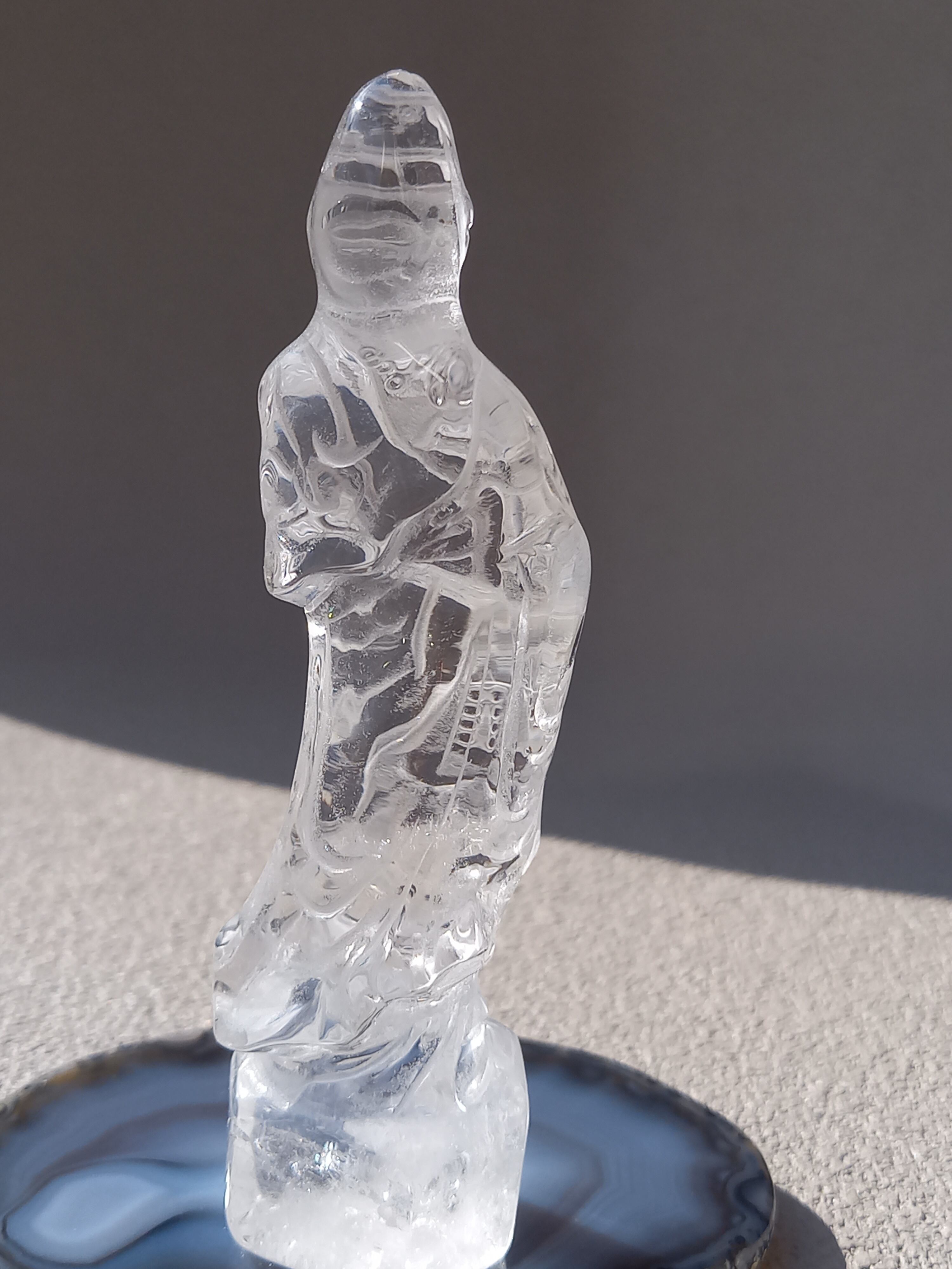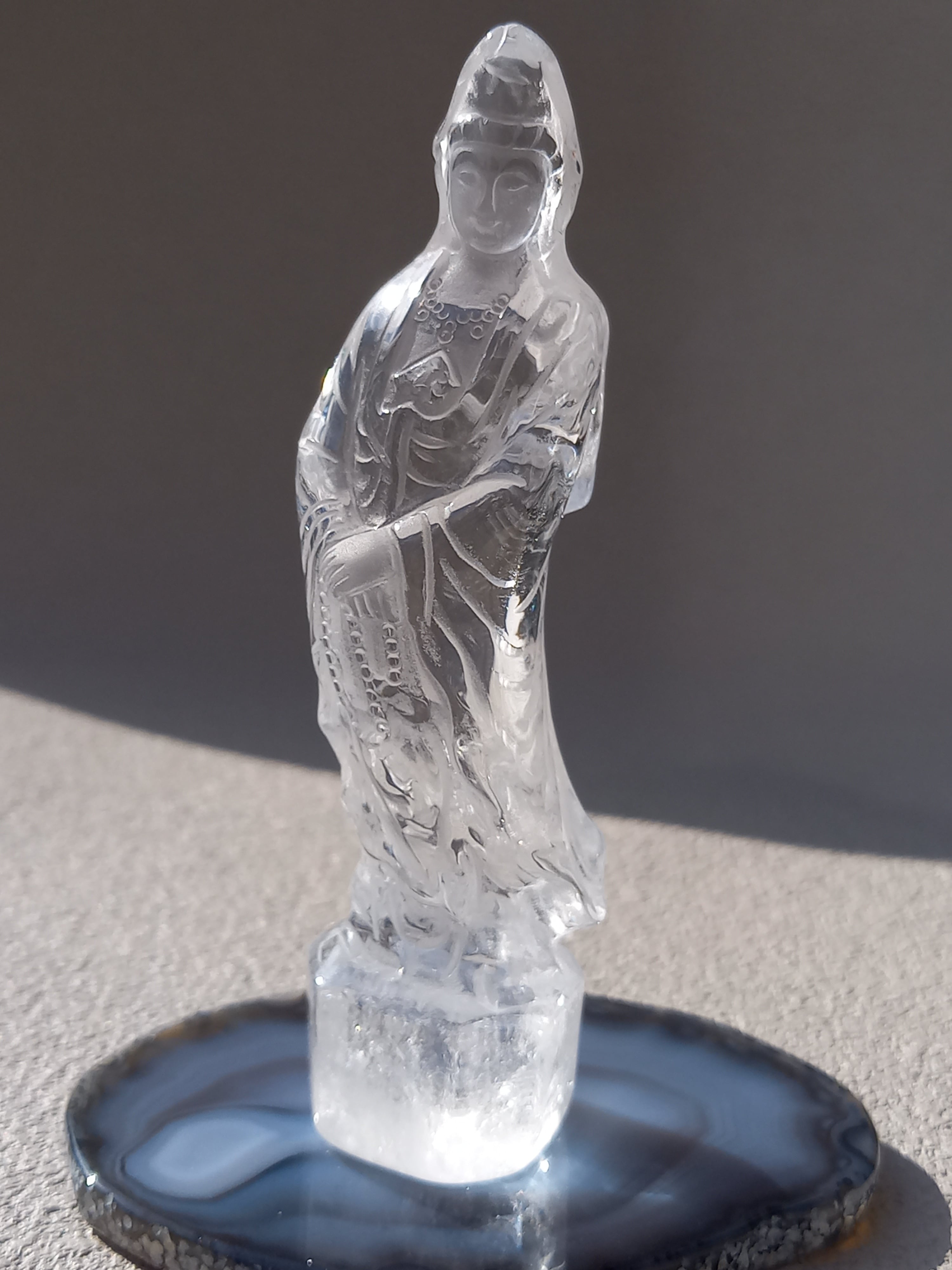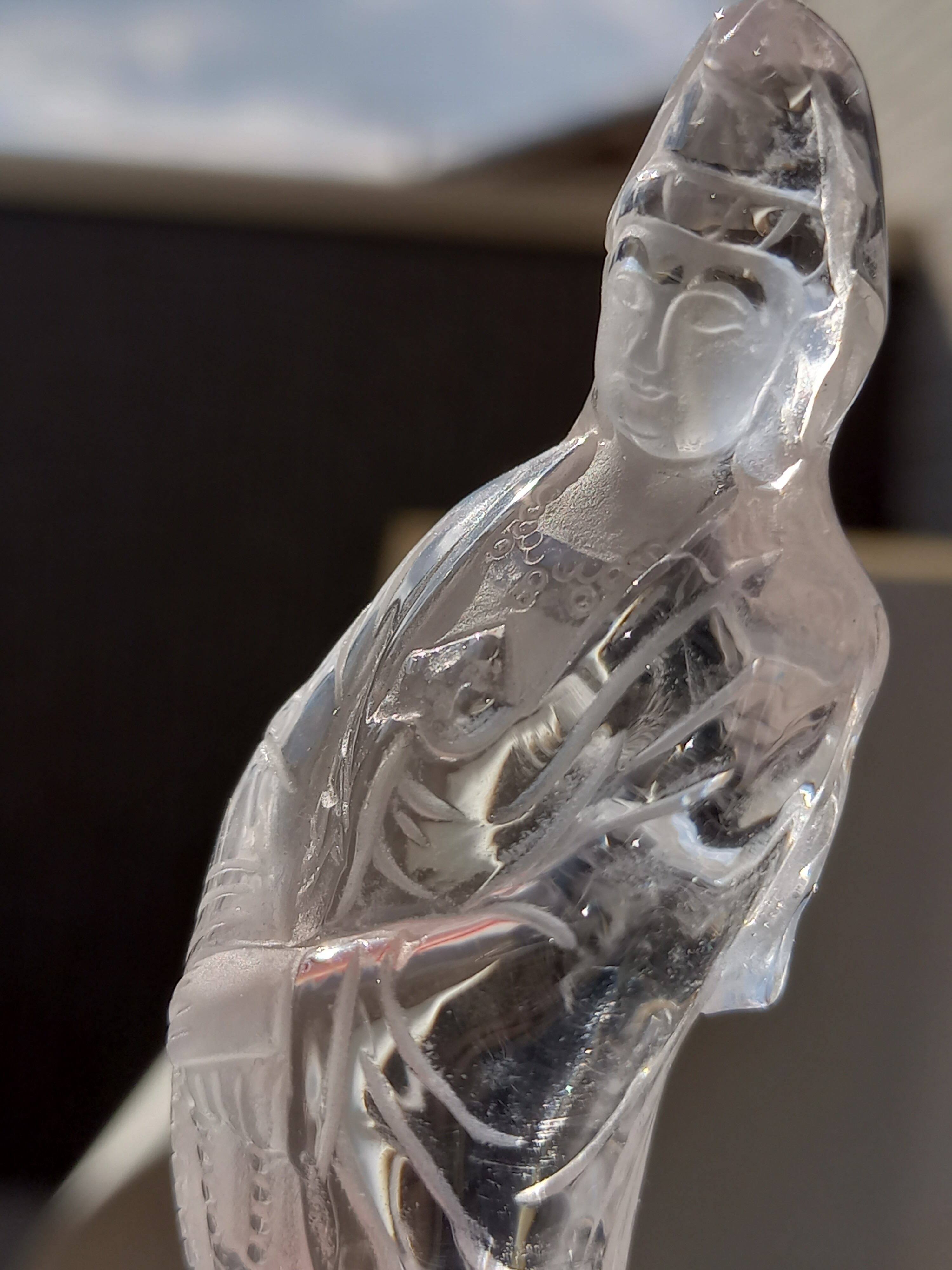 透明感あるクォーツに、見事に観音菩薩様が彫られ、神々しいです。