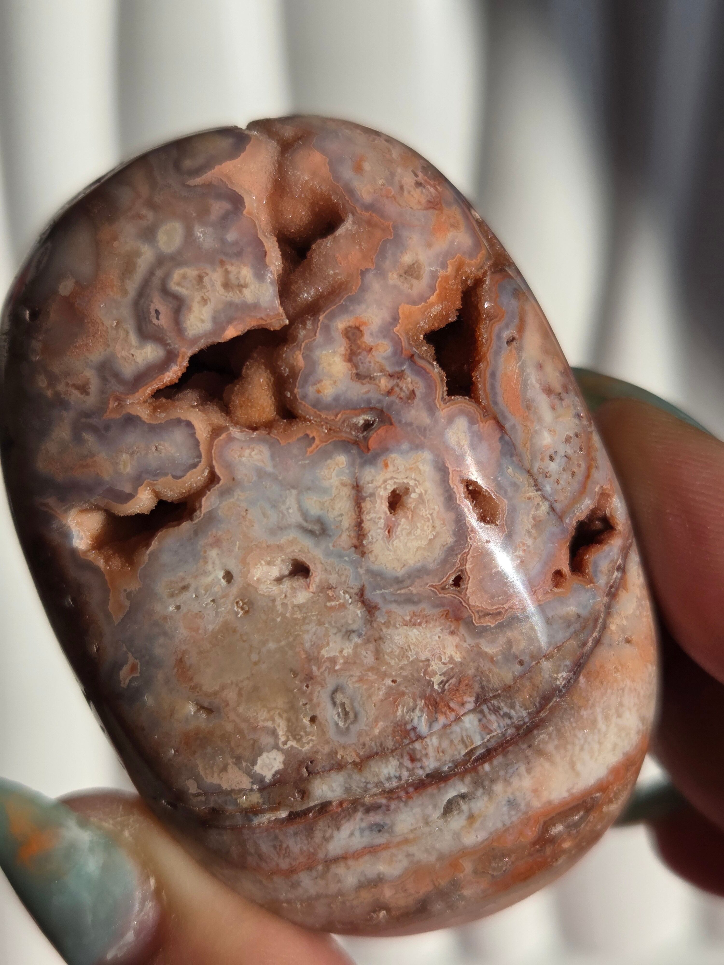 インドネシア産ピンククレイジーレースアゲートパームです。