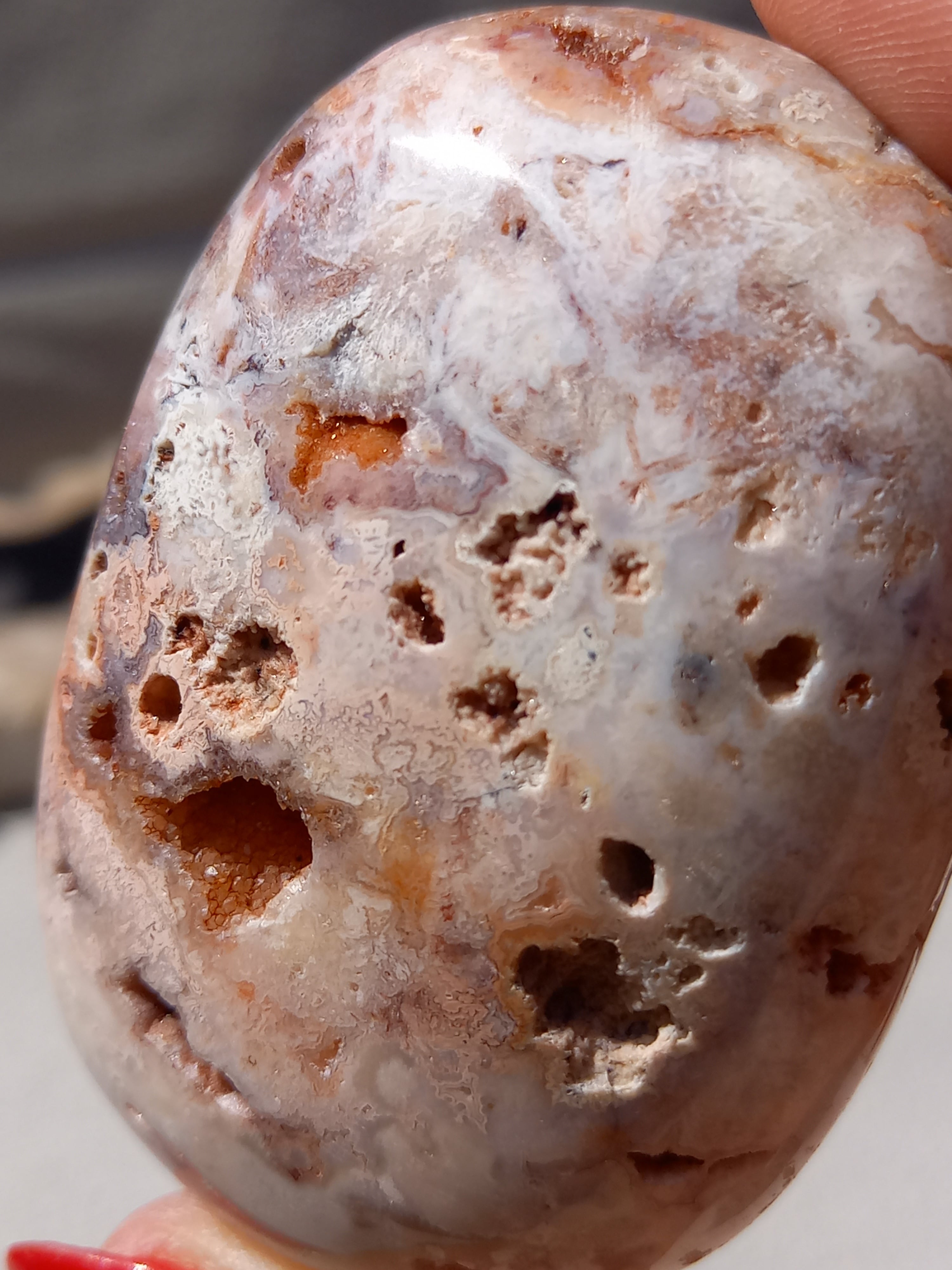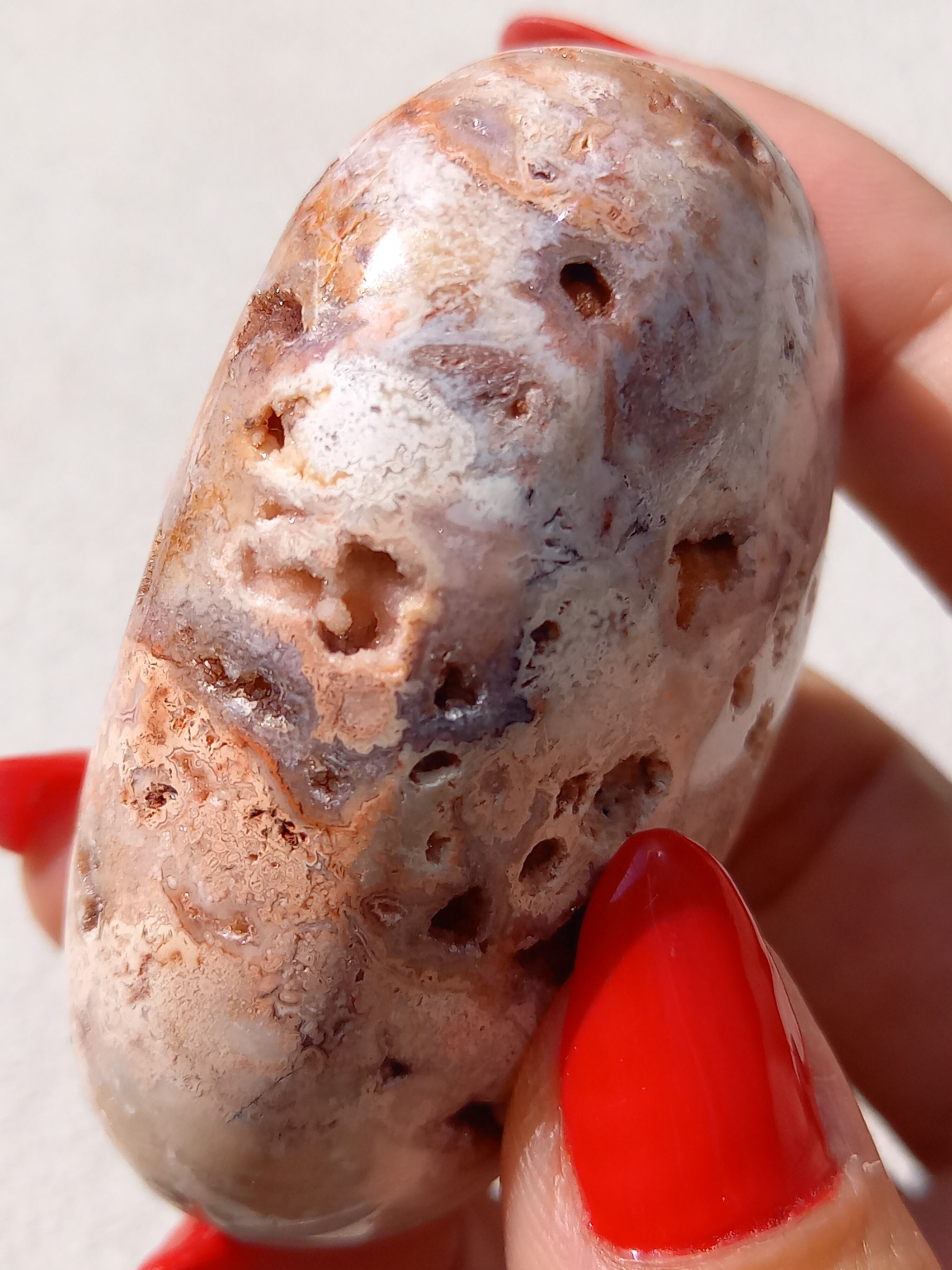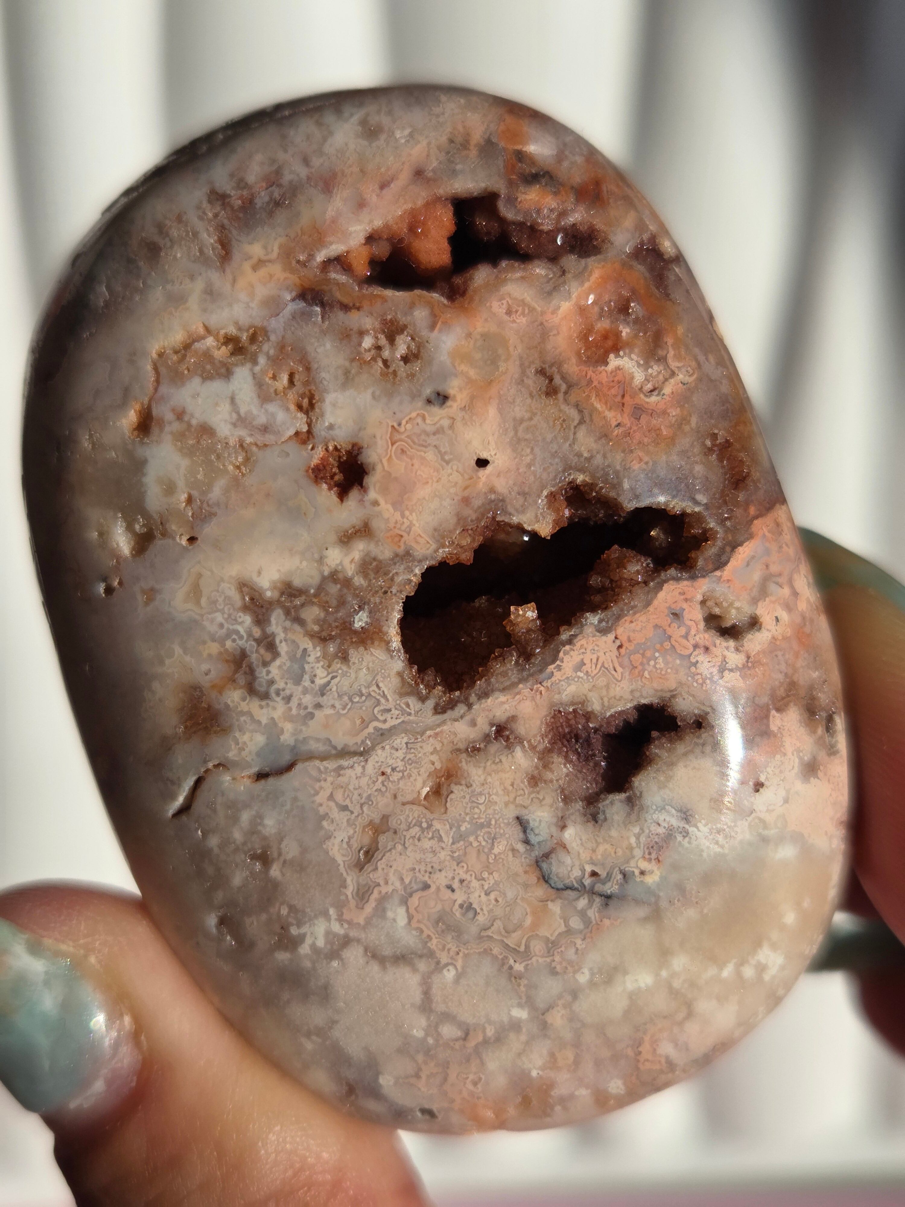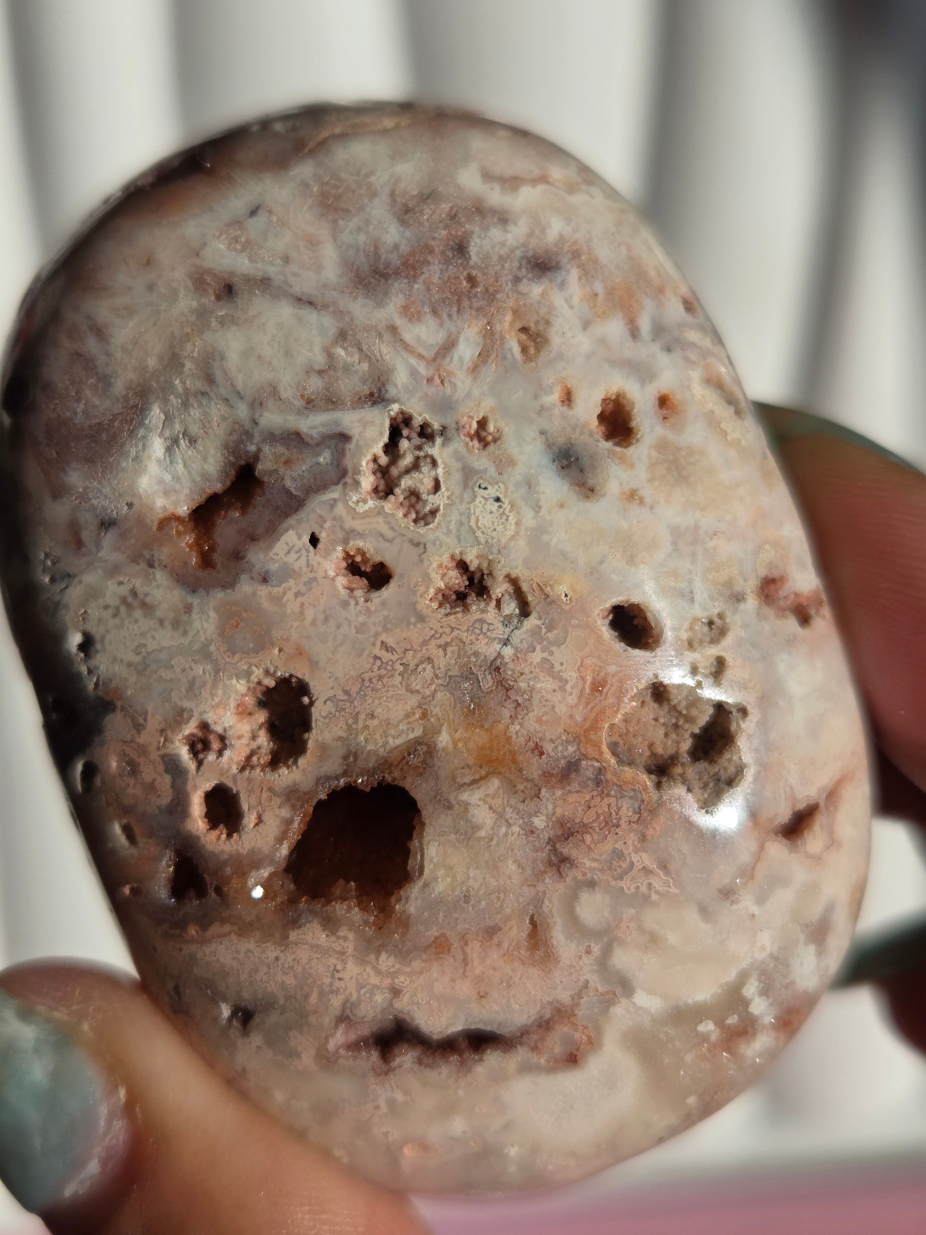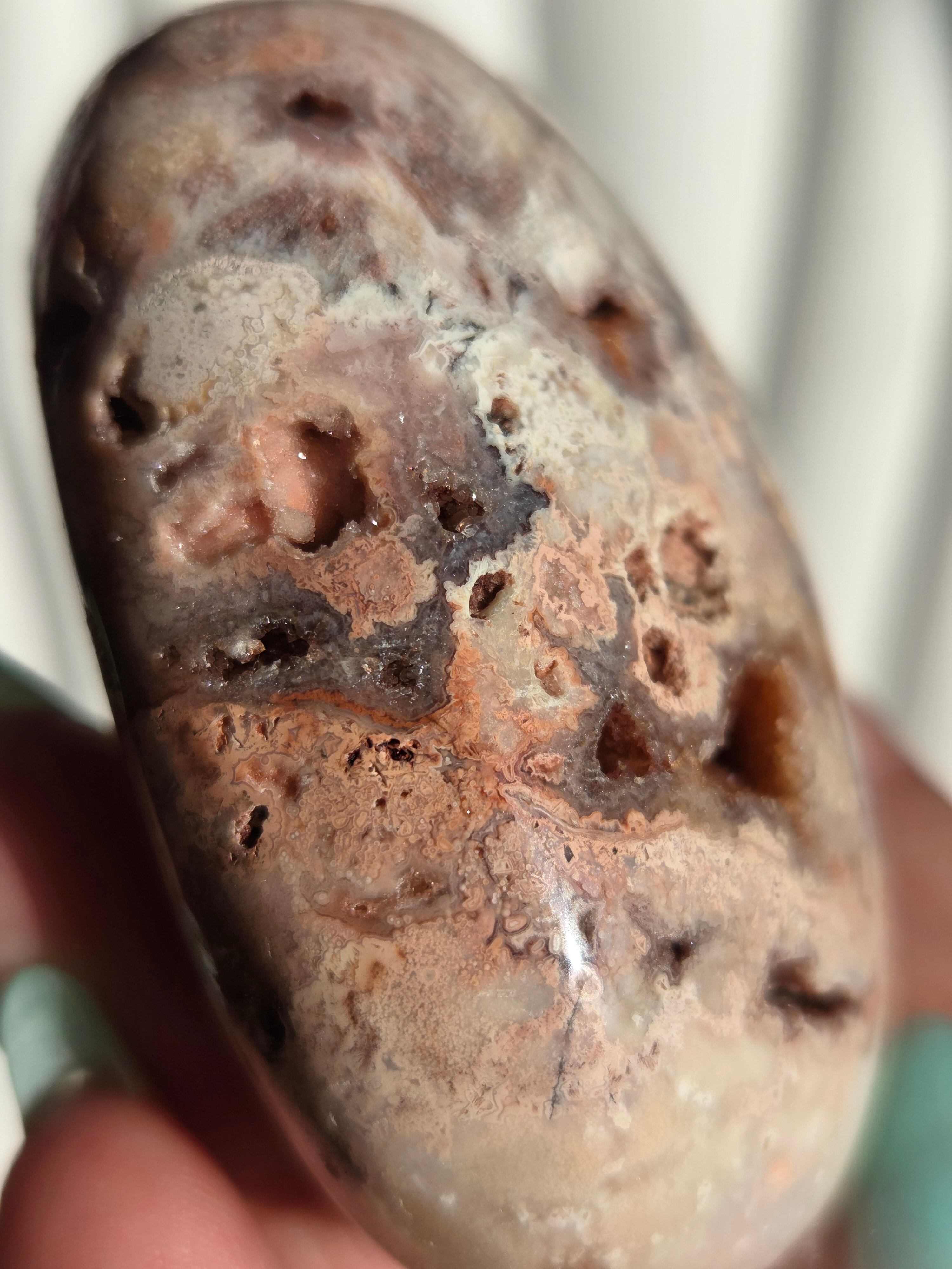 インドネシア産ピンククレイジーレースアゲートパームです。