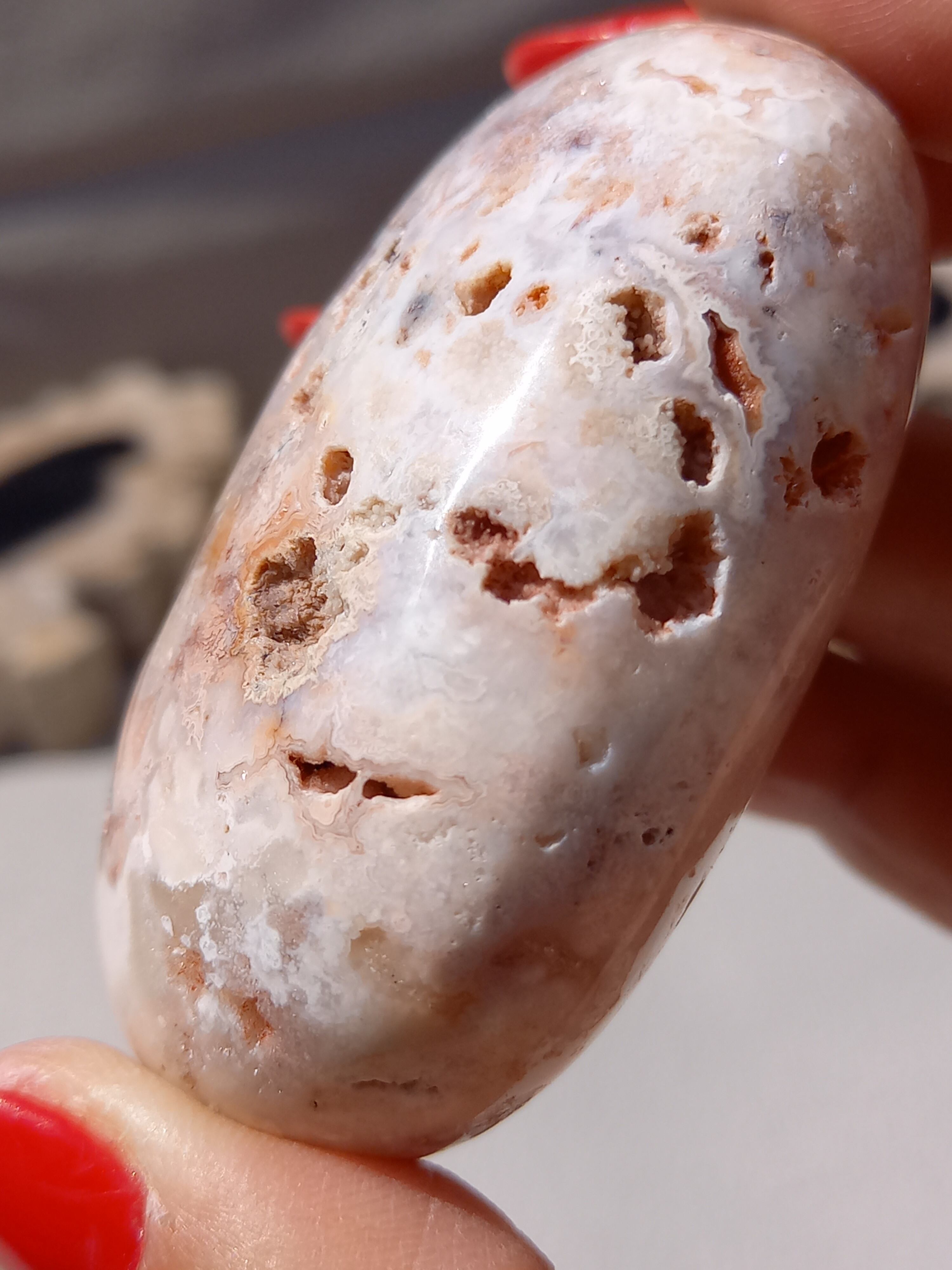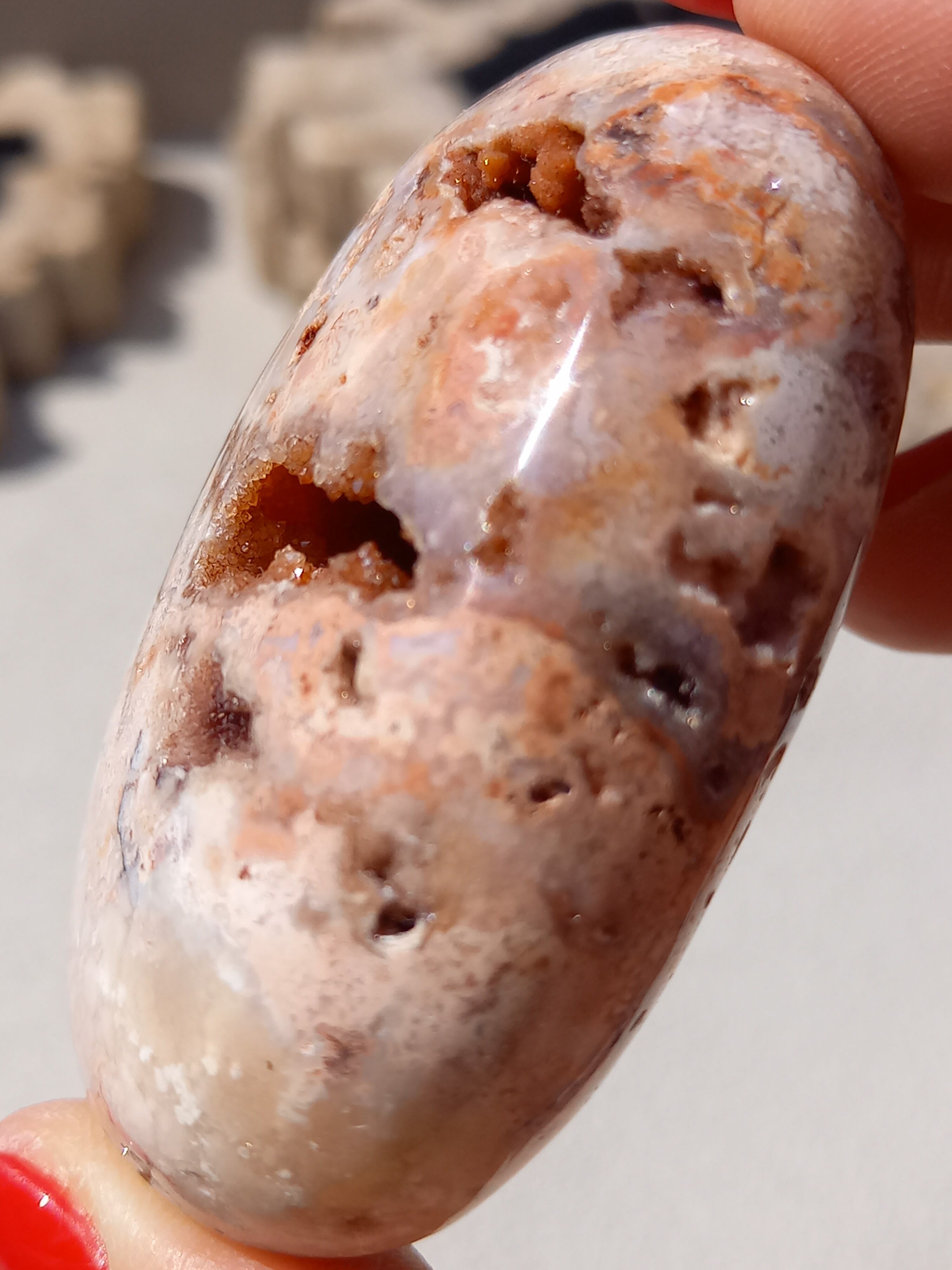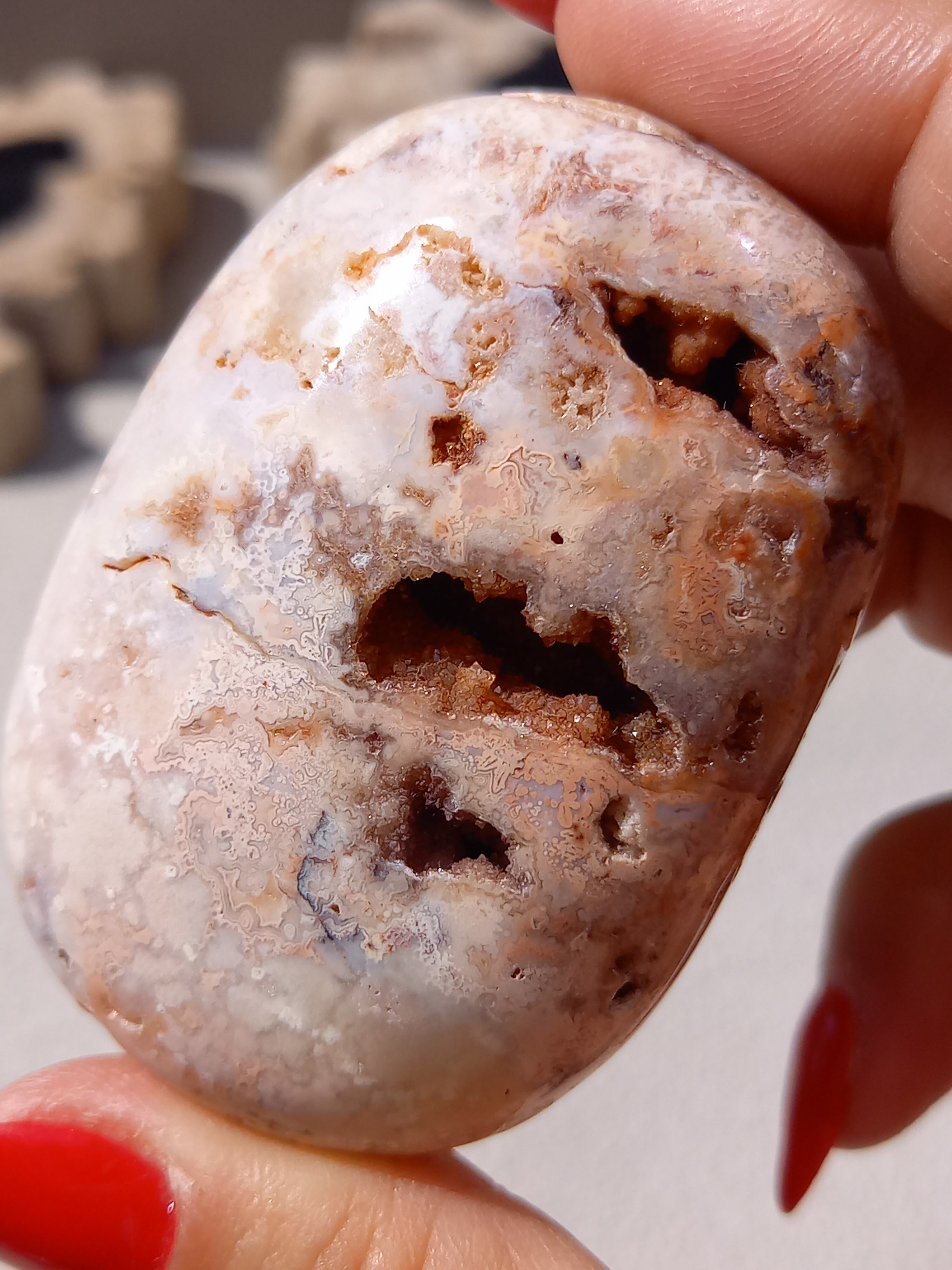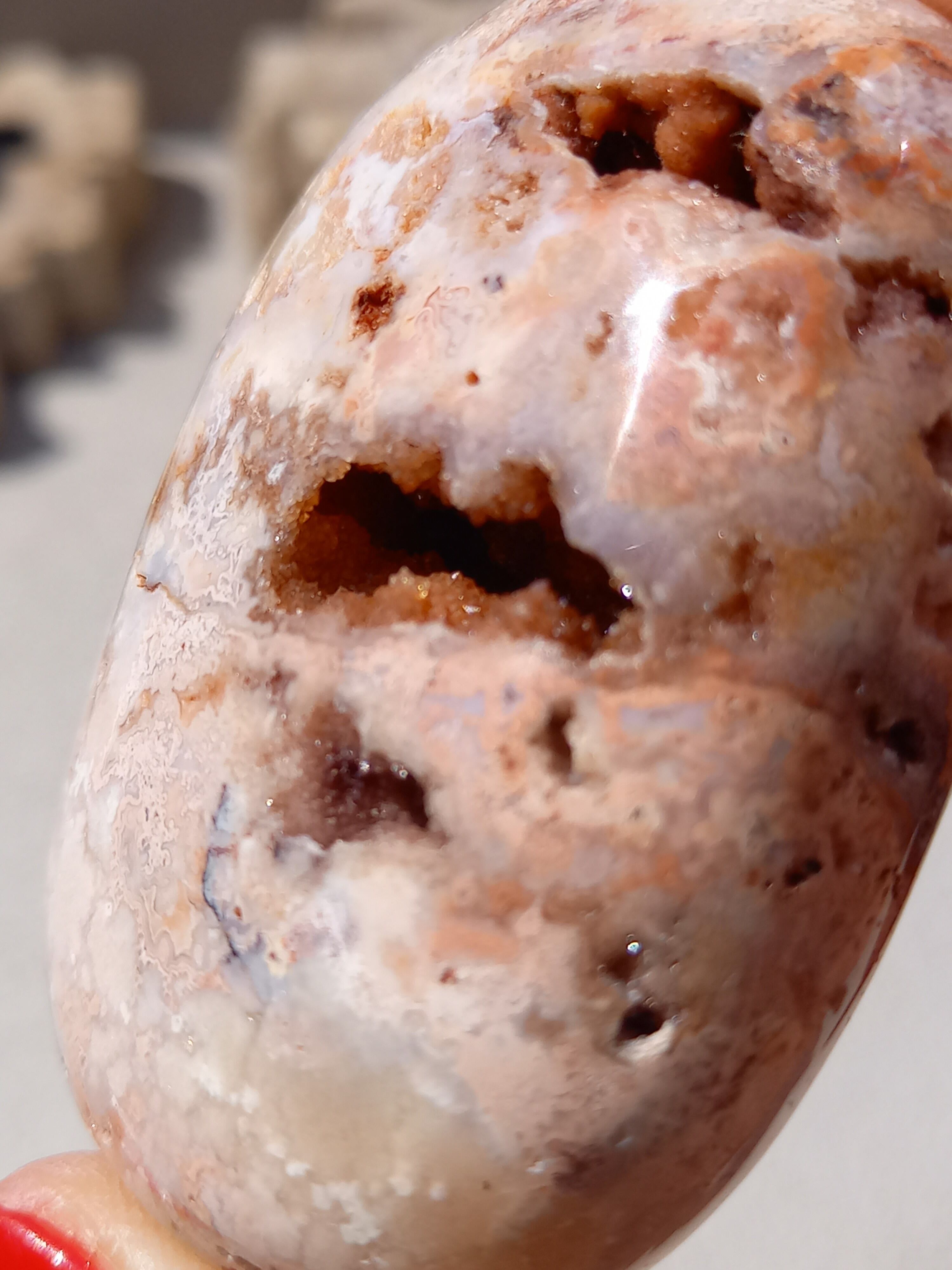 インドネシア産ピンククレイジーレースアゲートパームです。