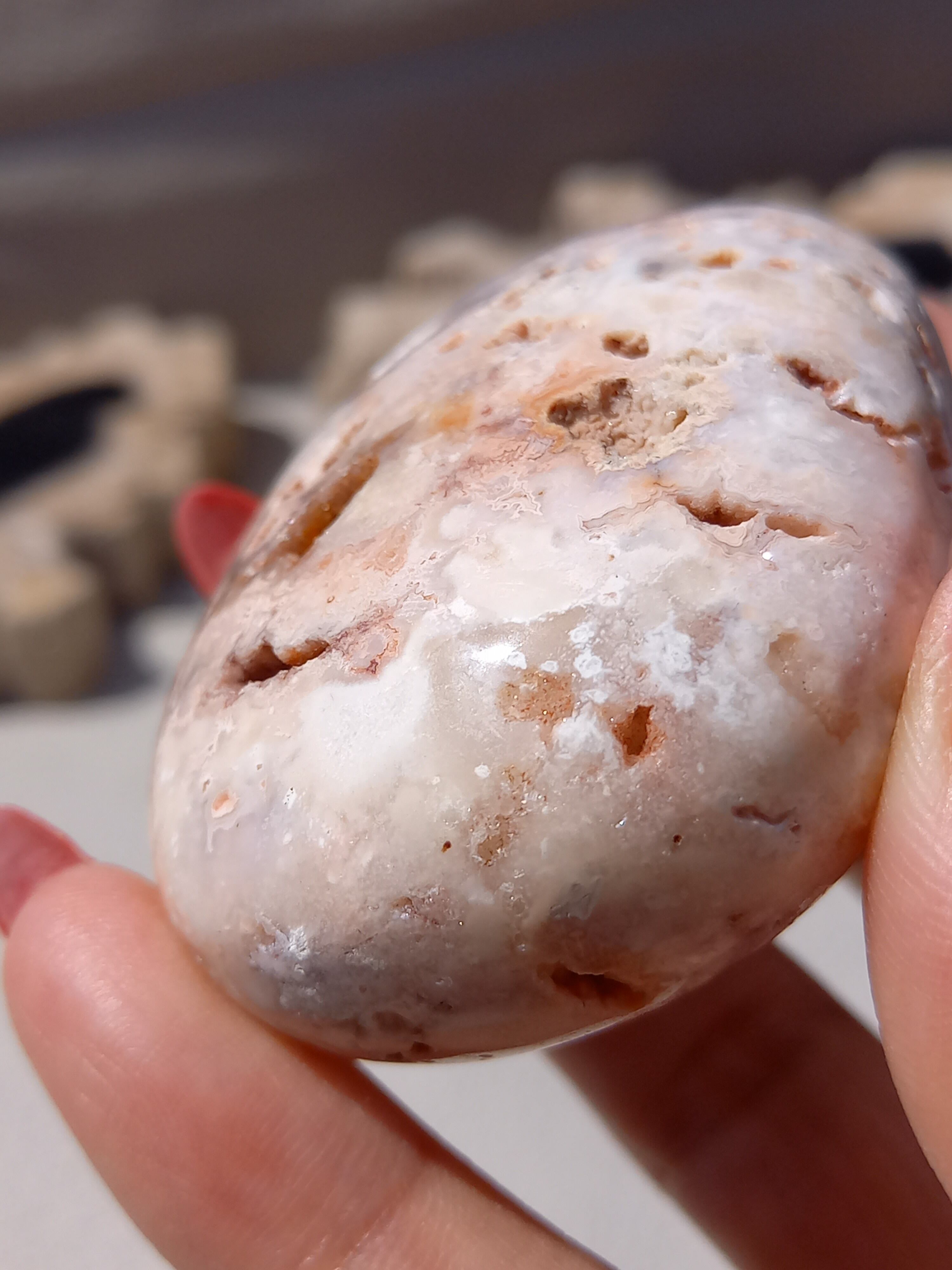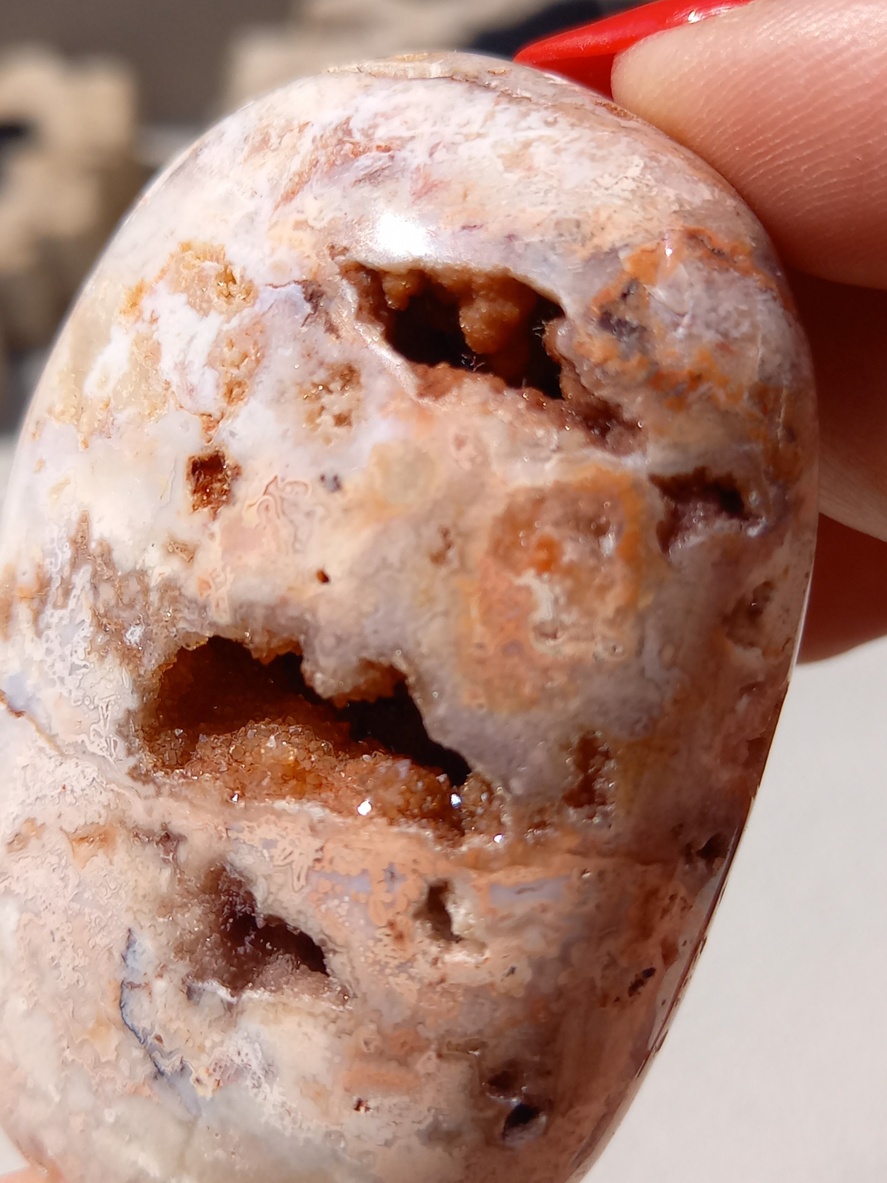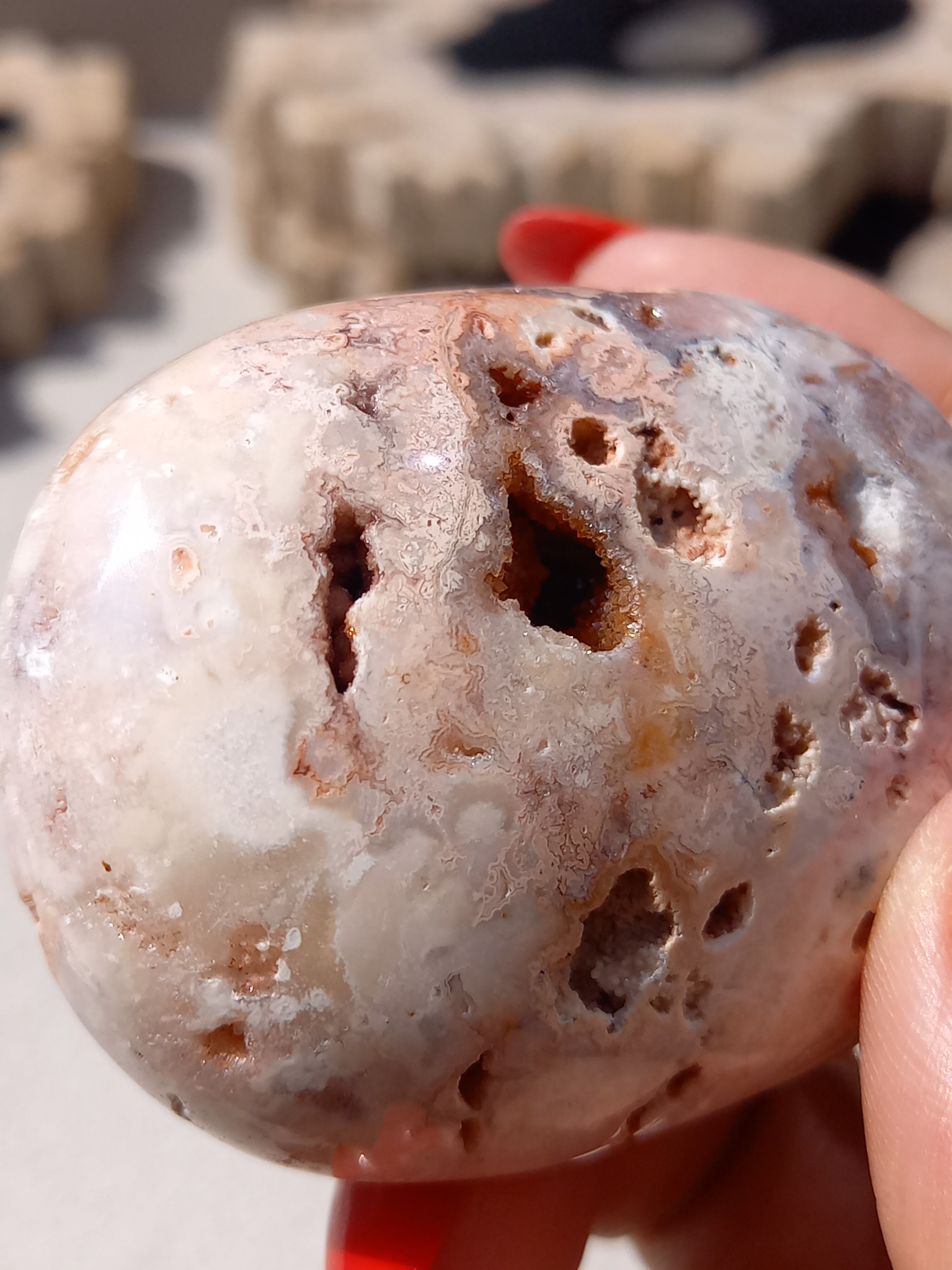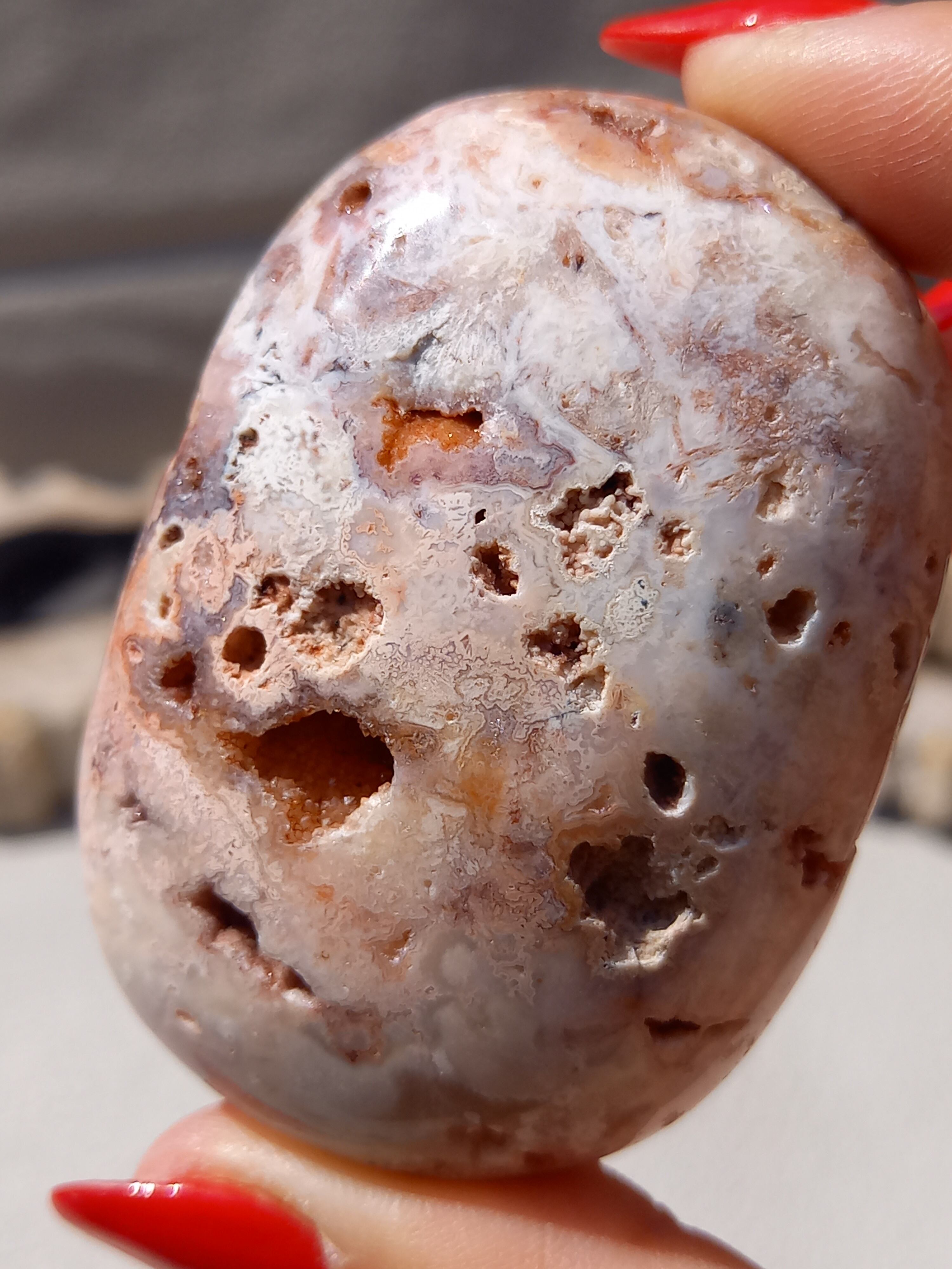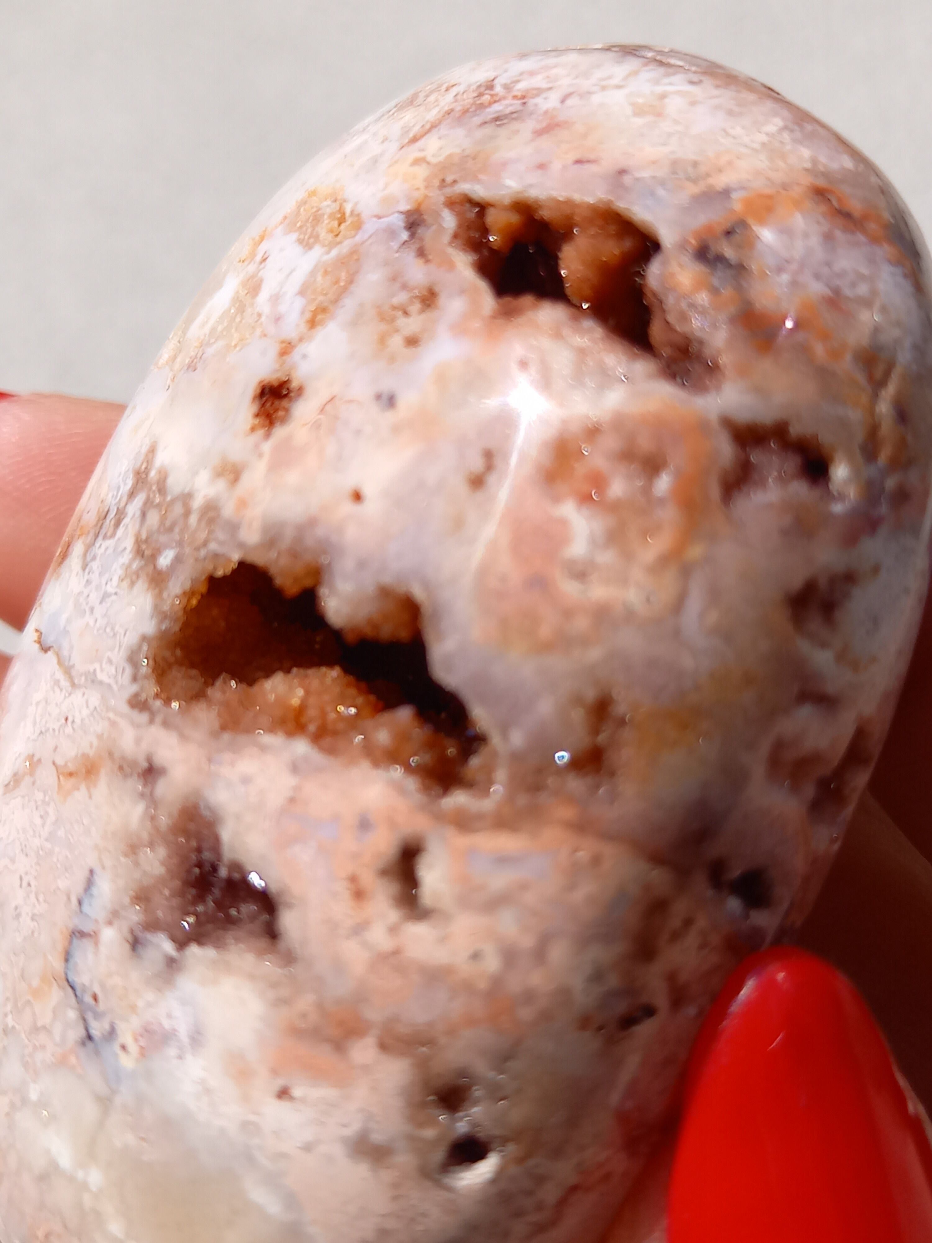 インドネシア産ピンククレイジーレースアゲートパームです。