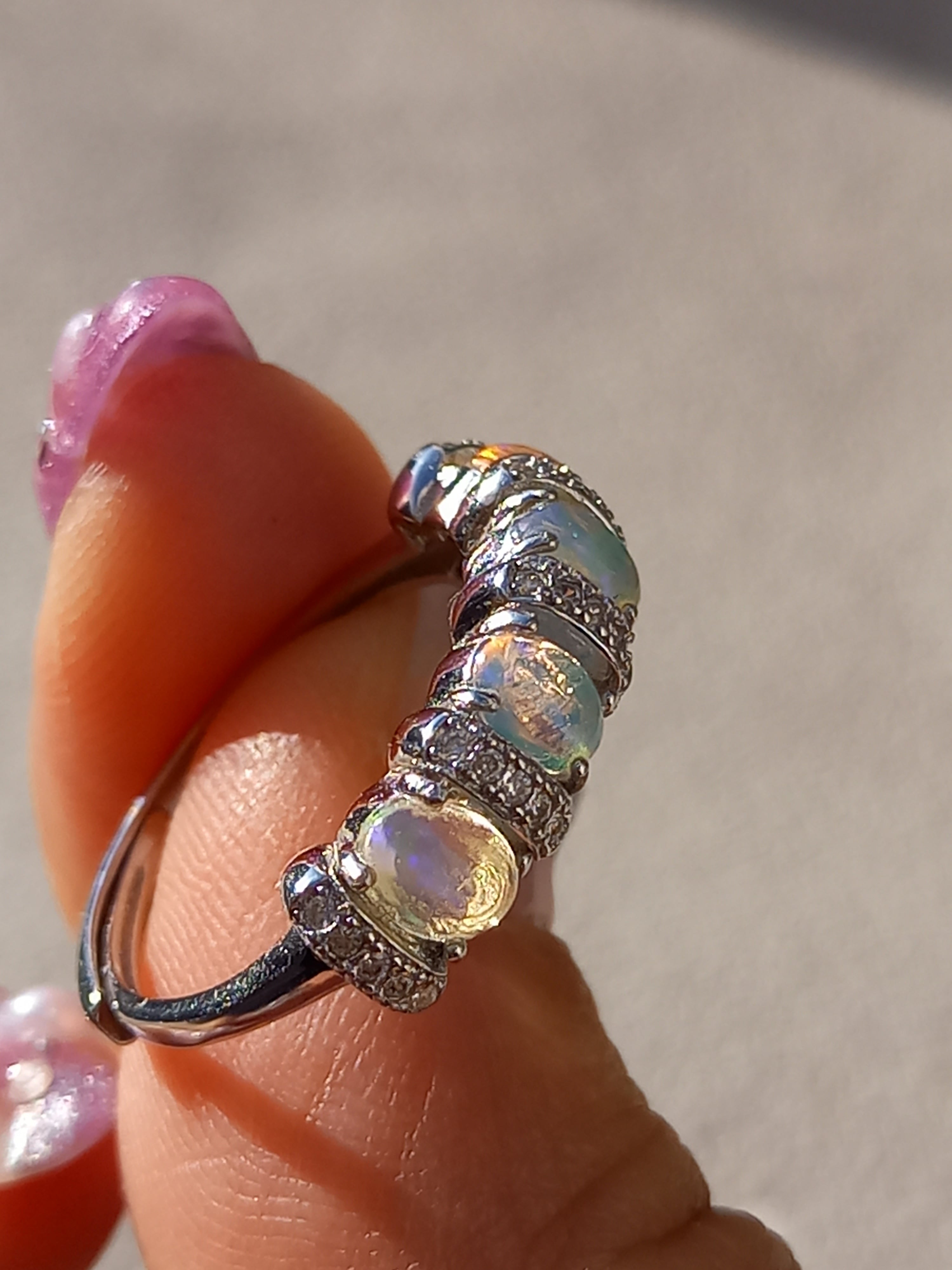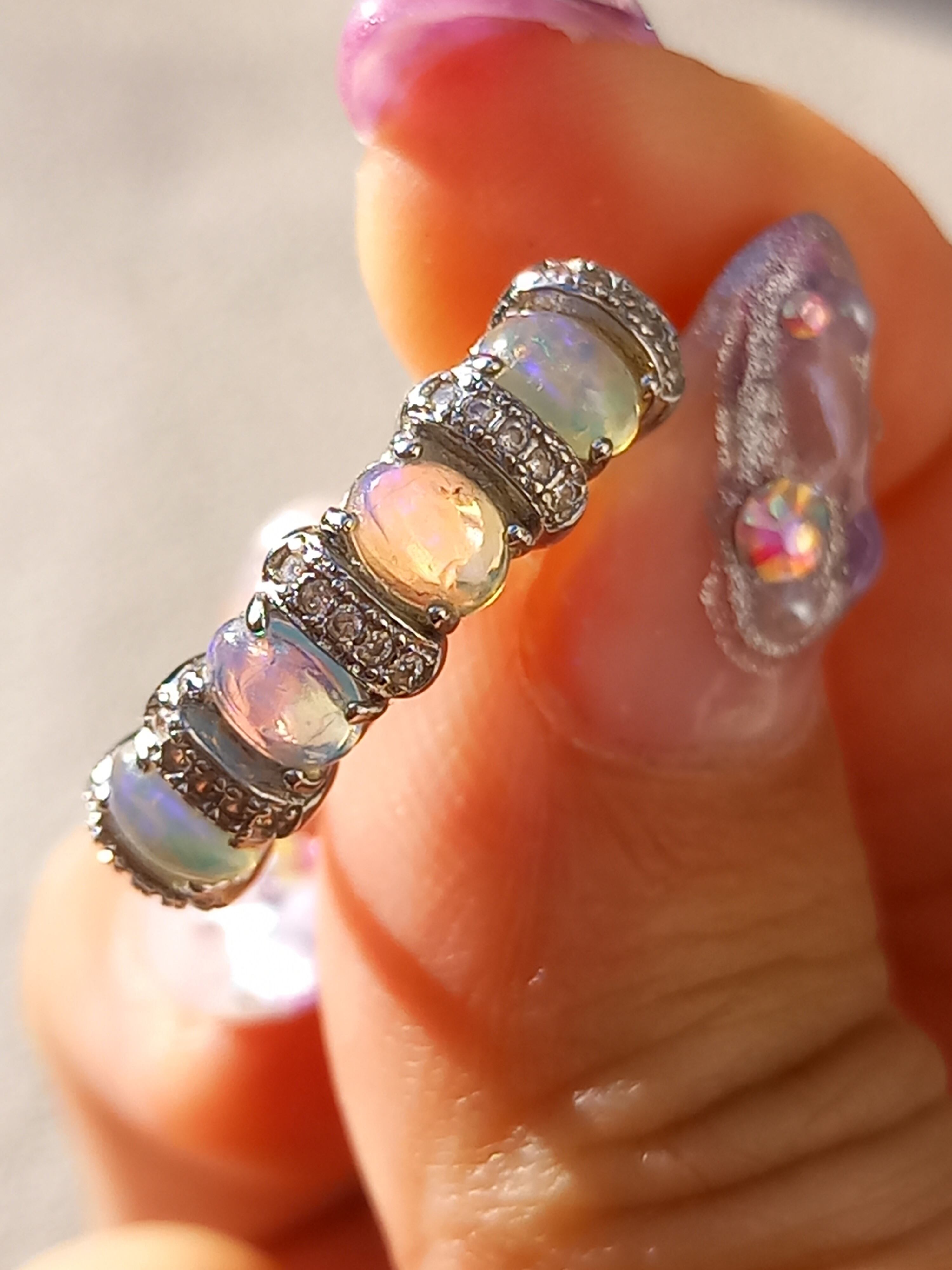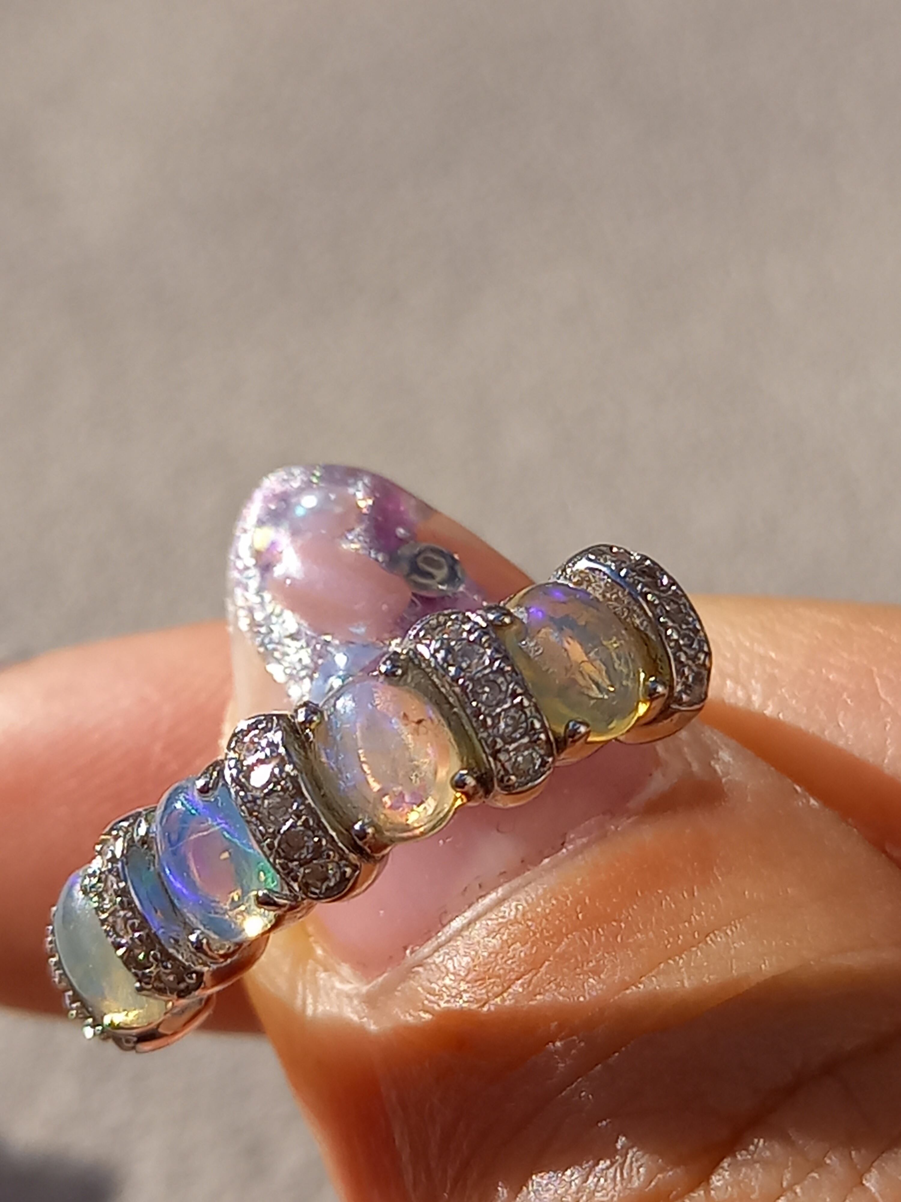 オパールが角度によりカラーが変わり魅力的なリングになってます。