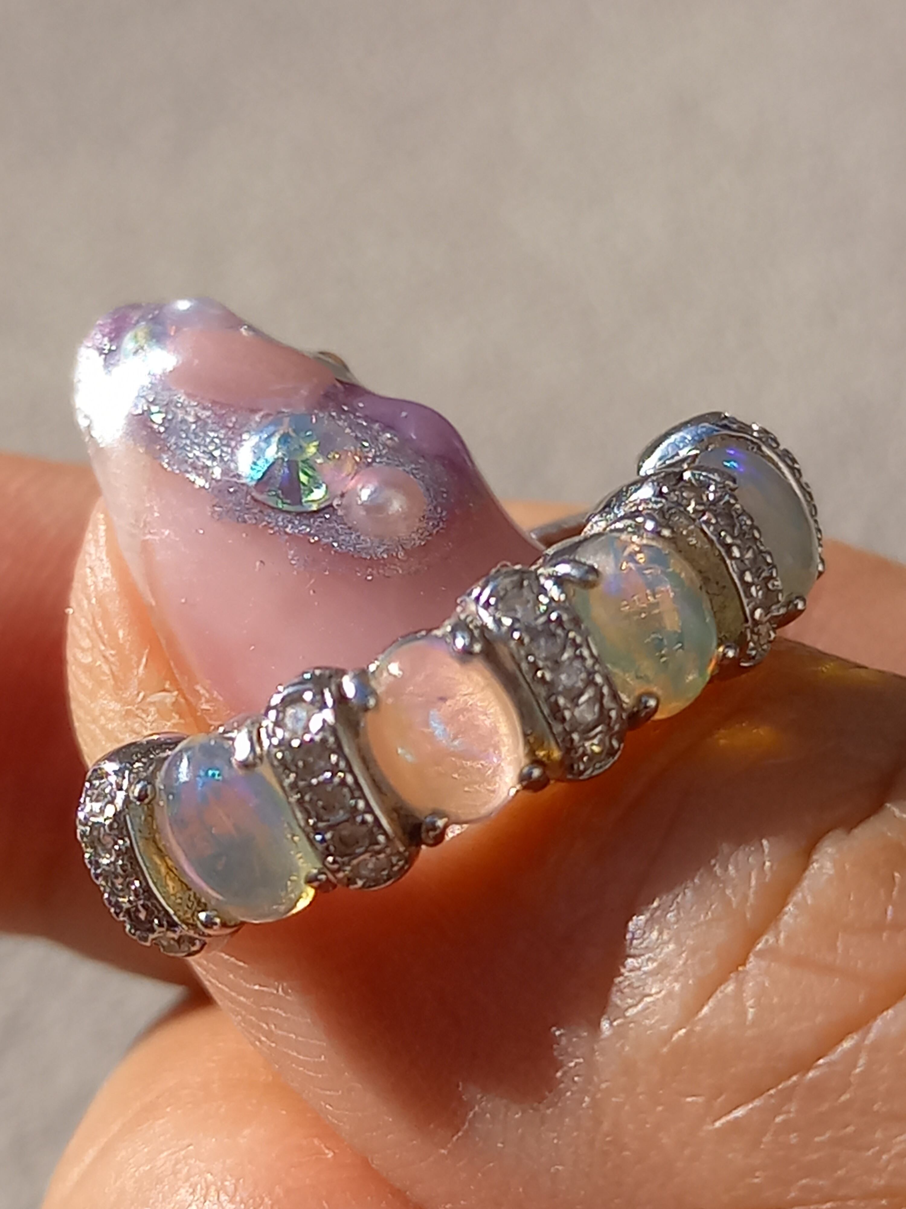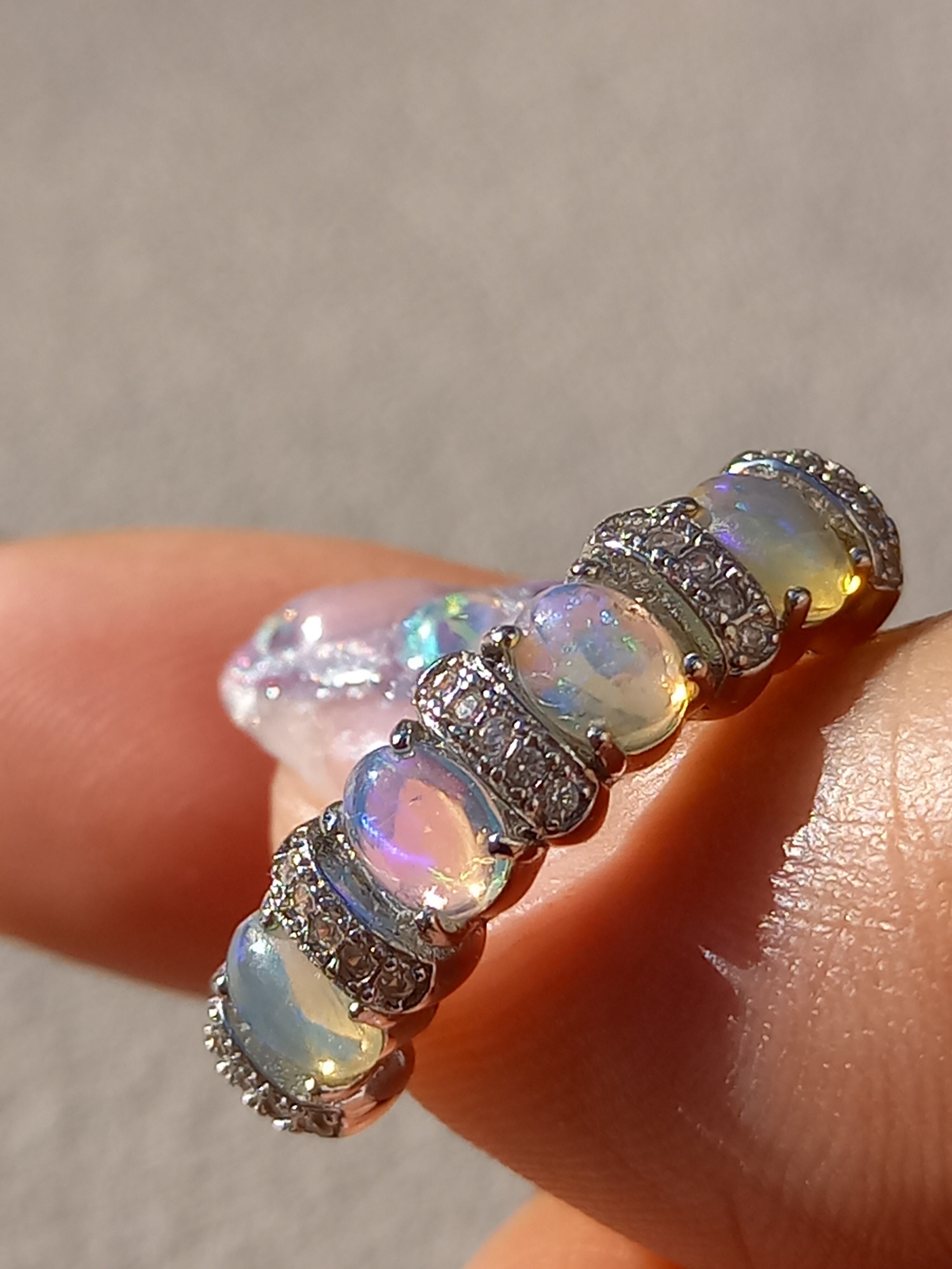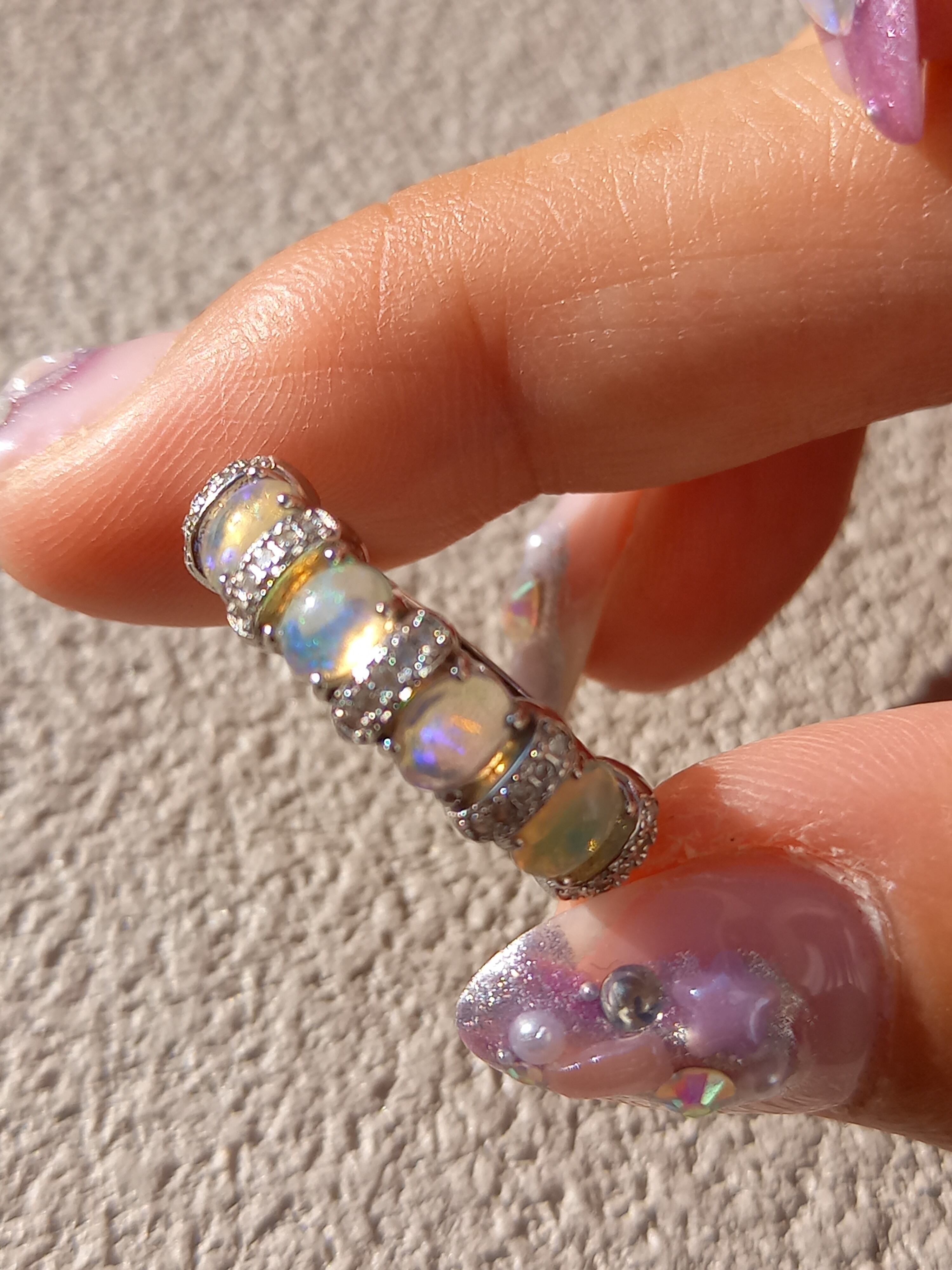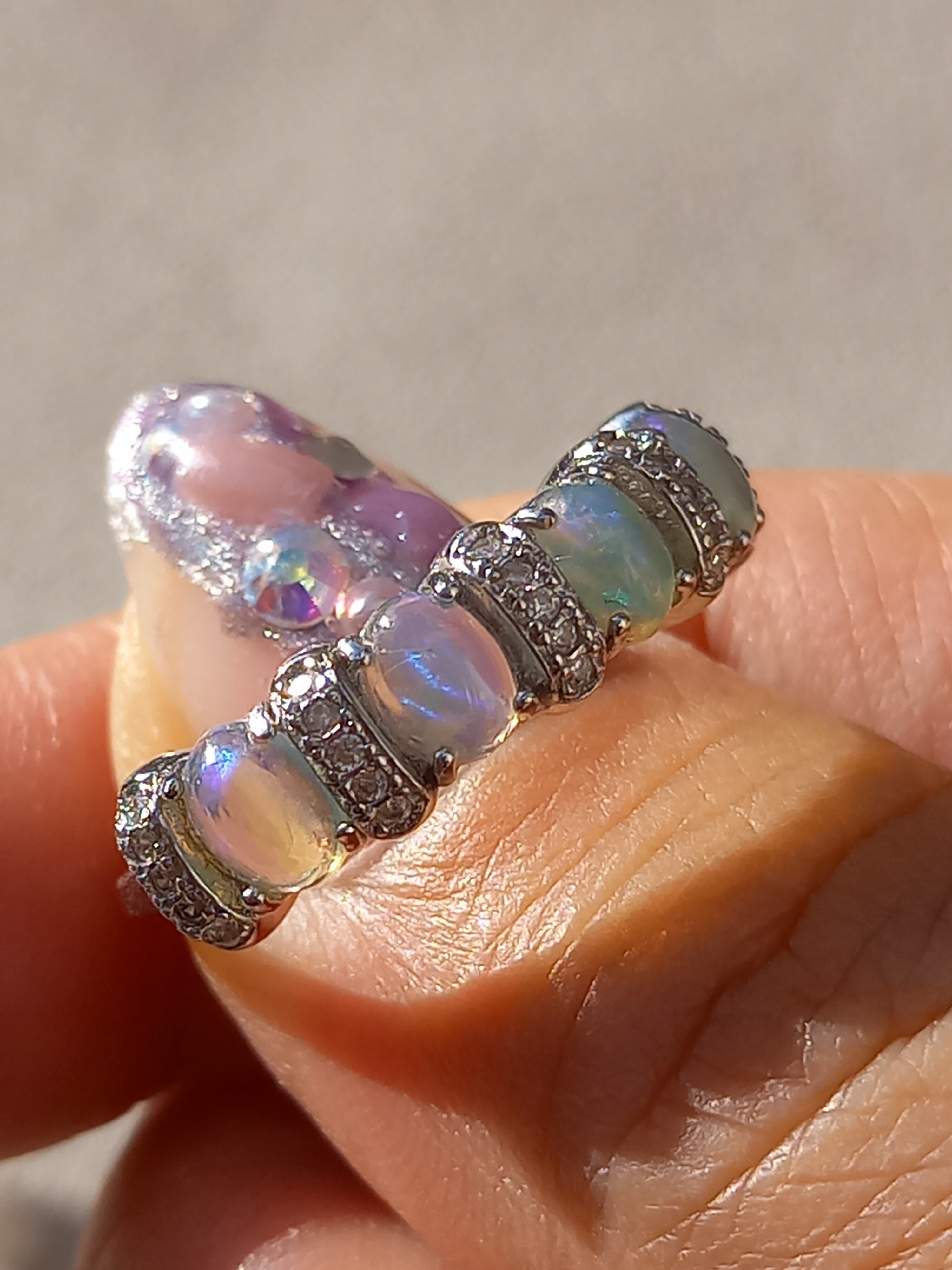 オパールが角度によりカラーが変わり魅力的なリングになってます。