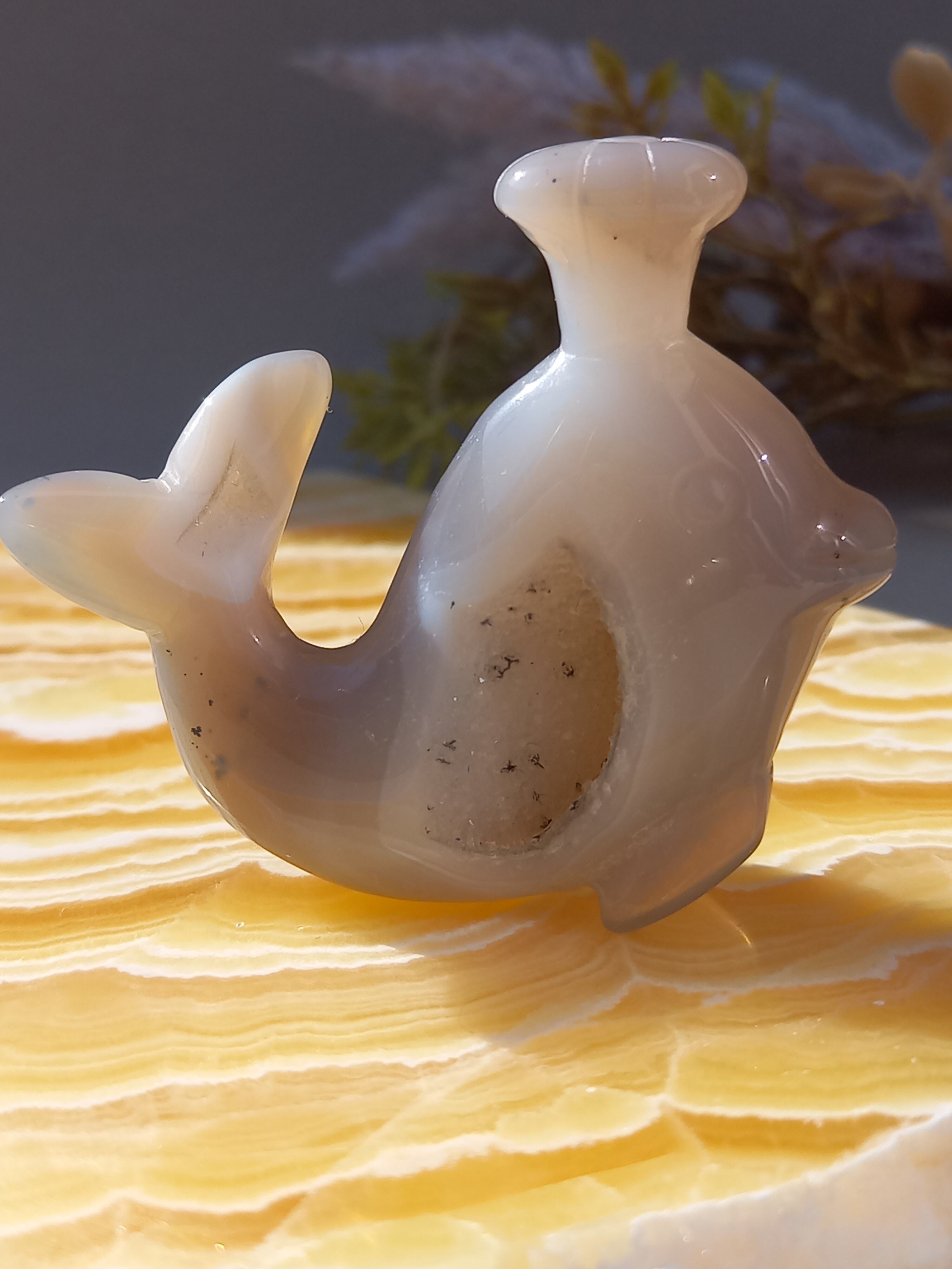瑪瑙で彫られた、鯨カービングです。
