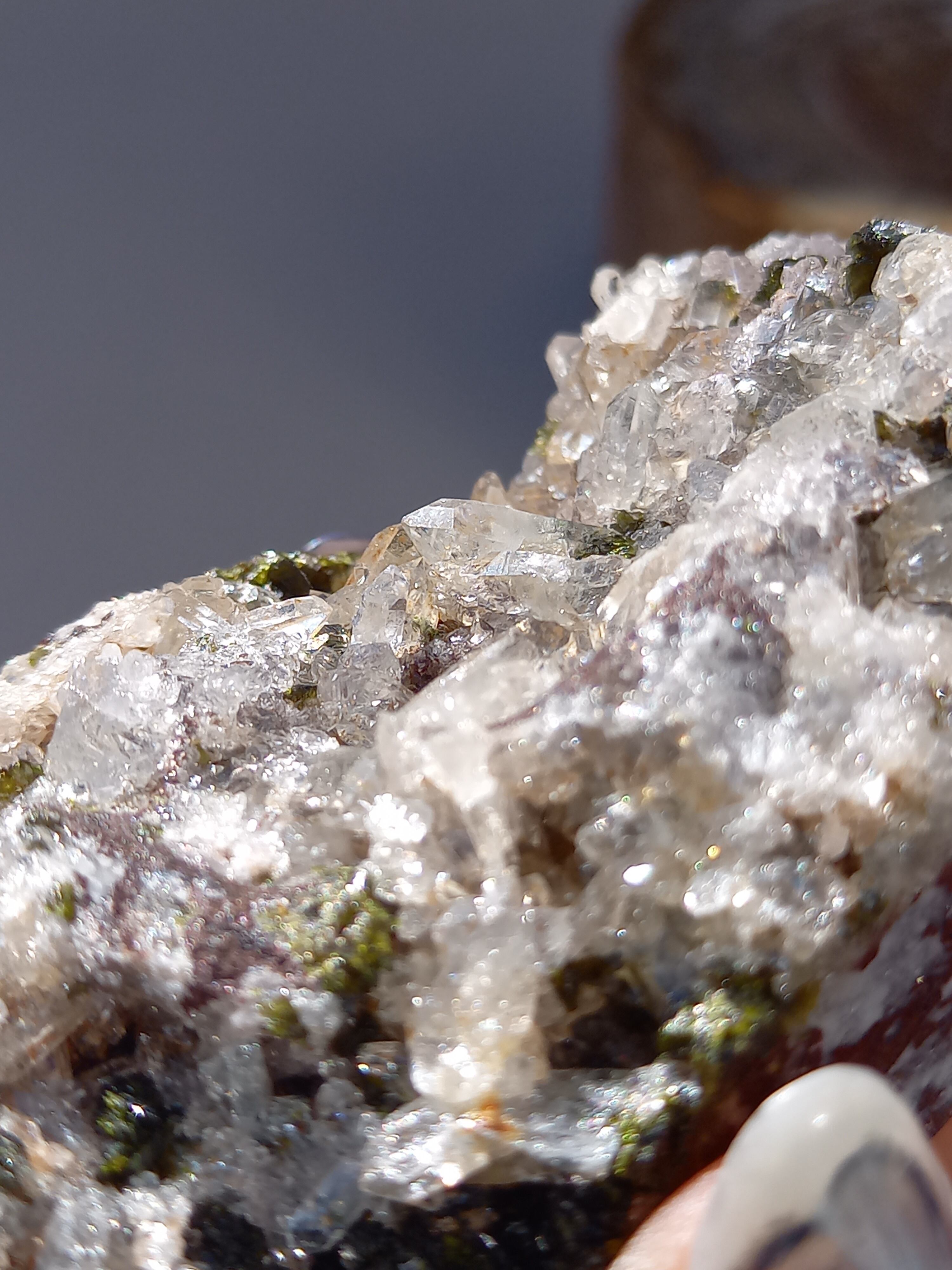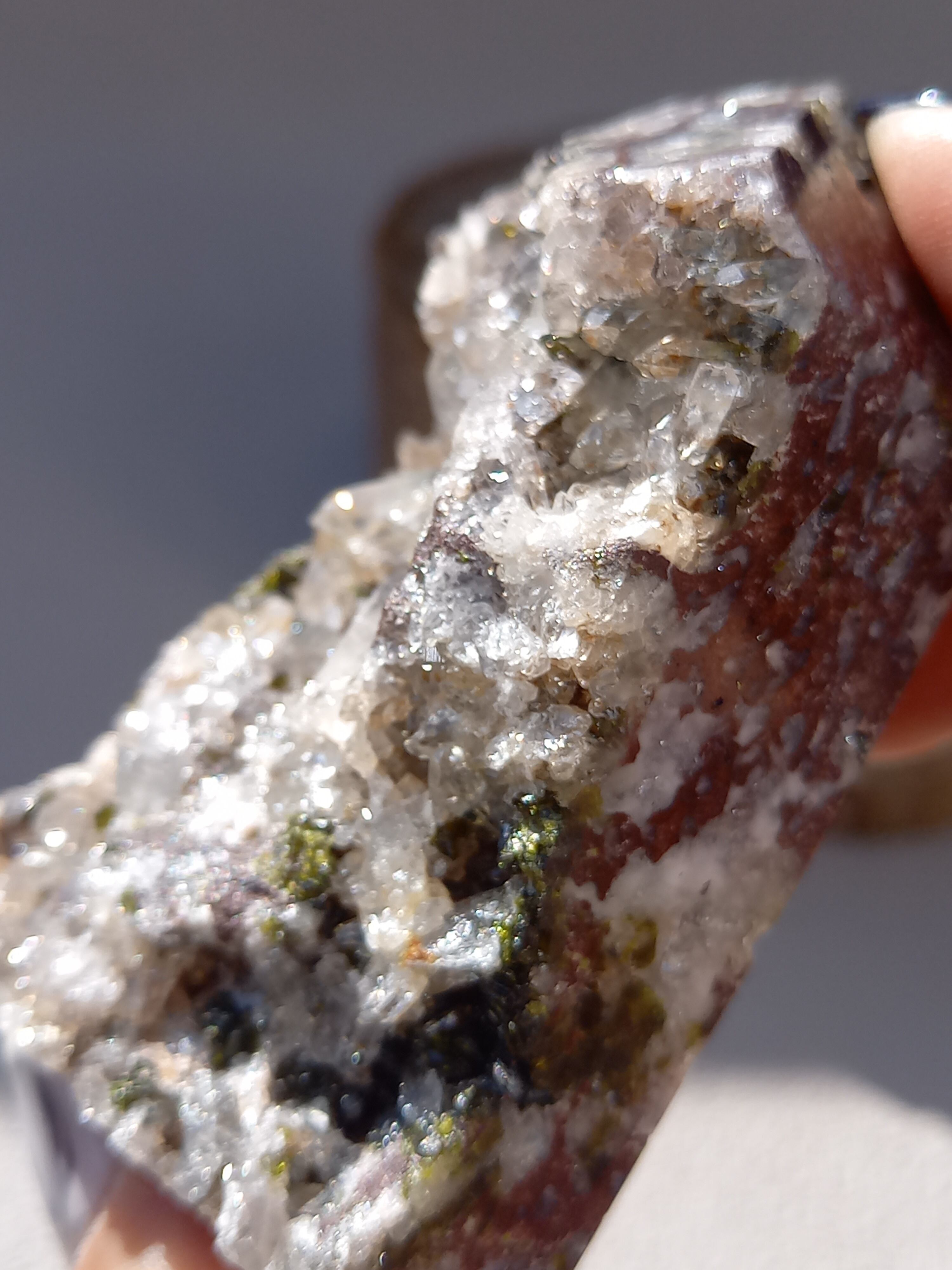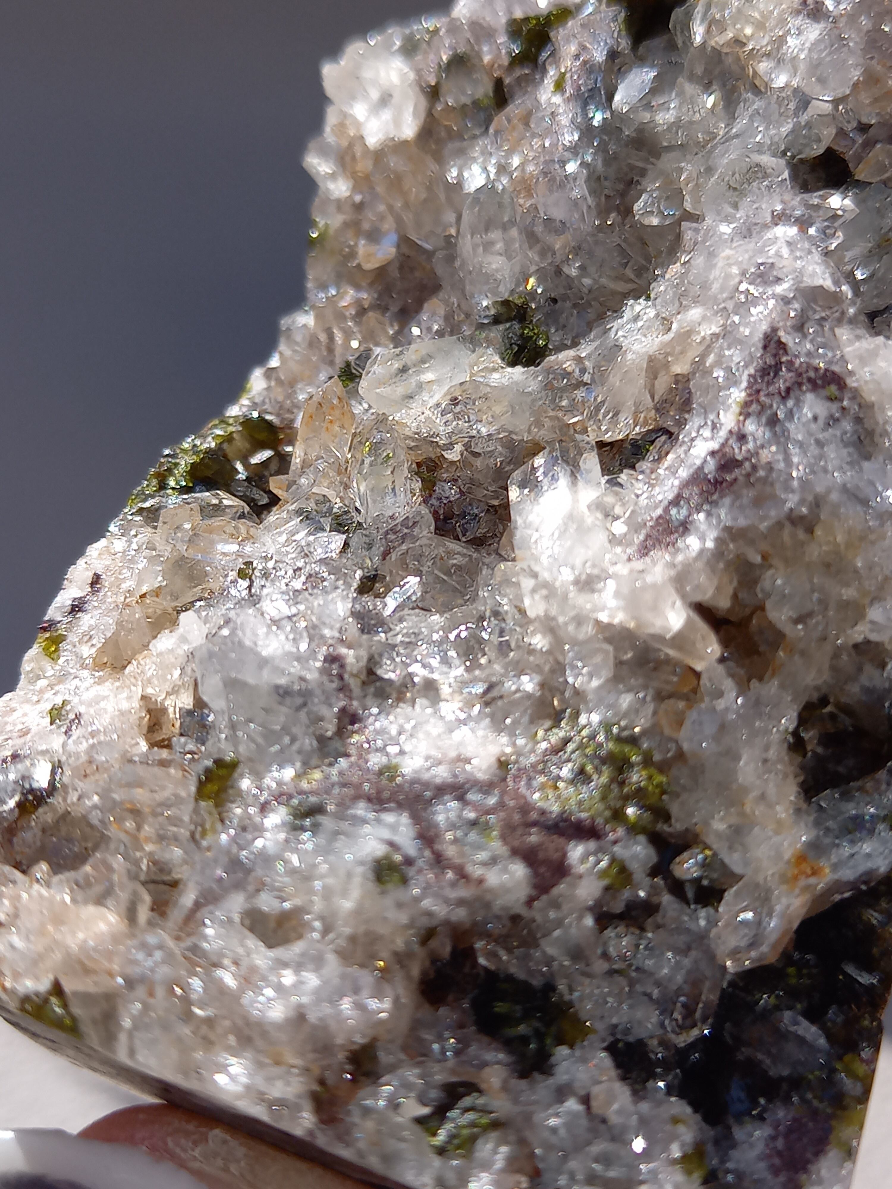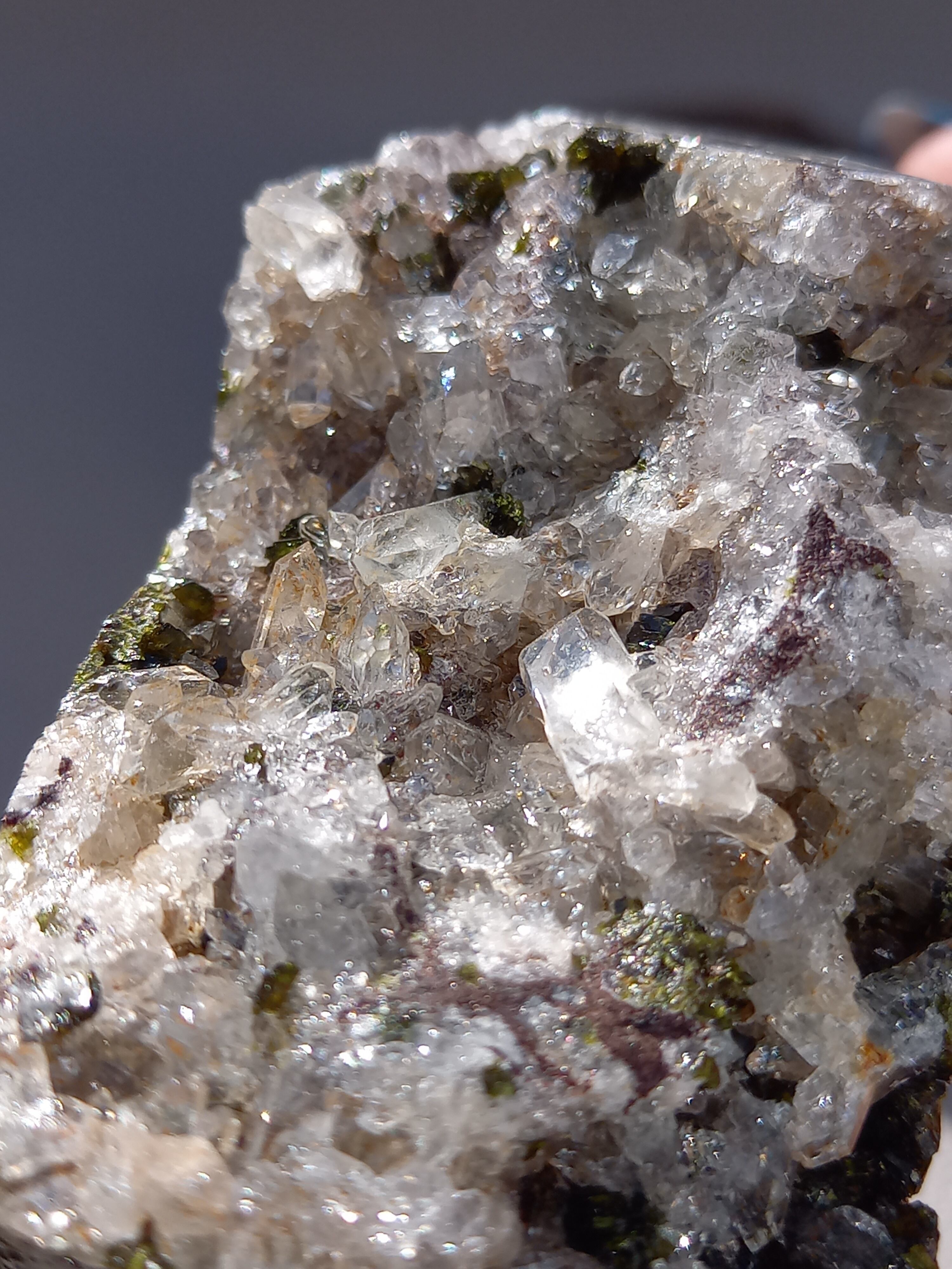 原石面を残した一面は、まさに鉱物標本のように、しっかりクォーツのポイント部分や、エピドートのキラキラした結晶面も見られます。