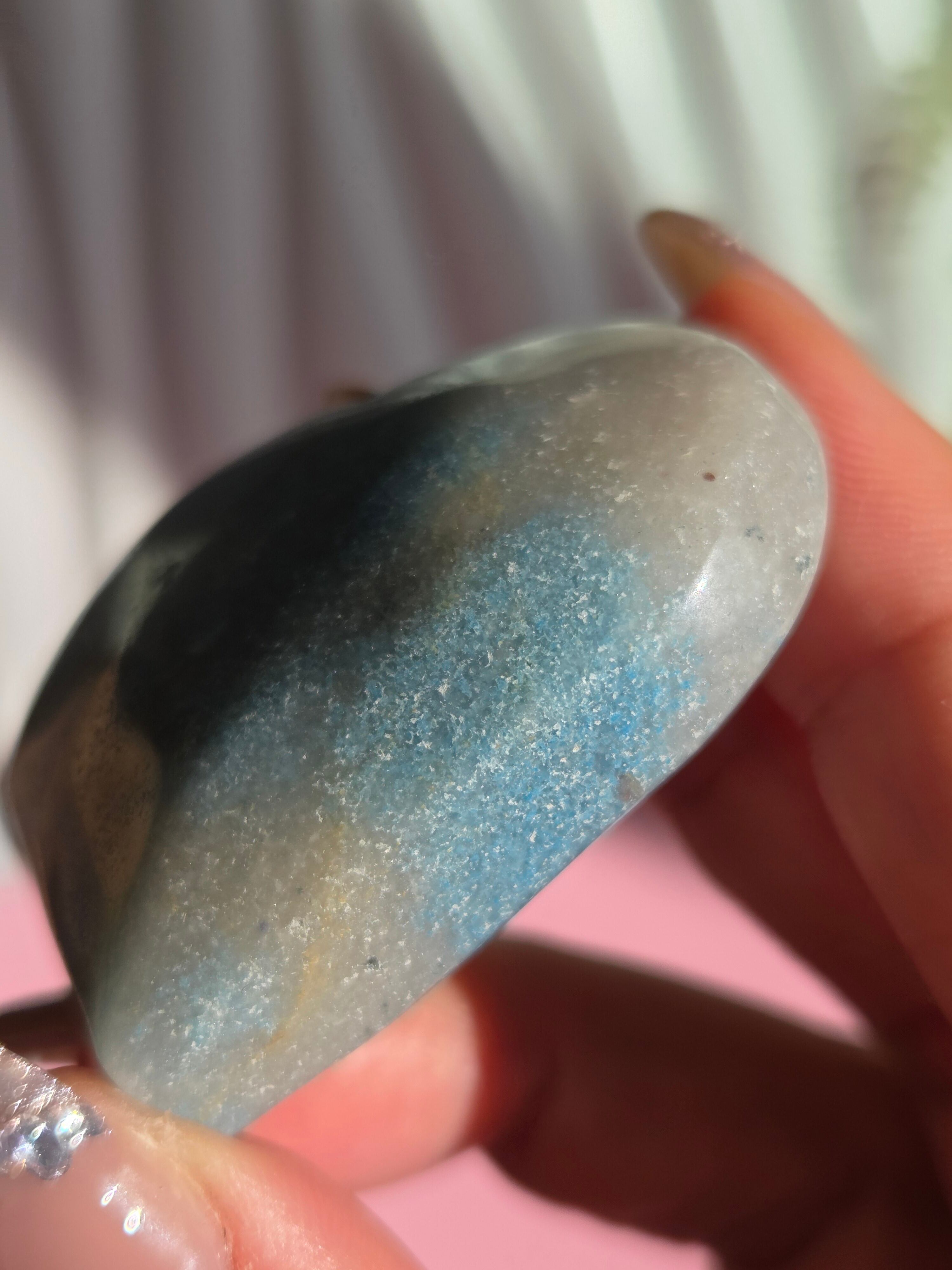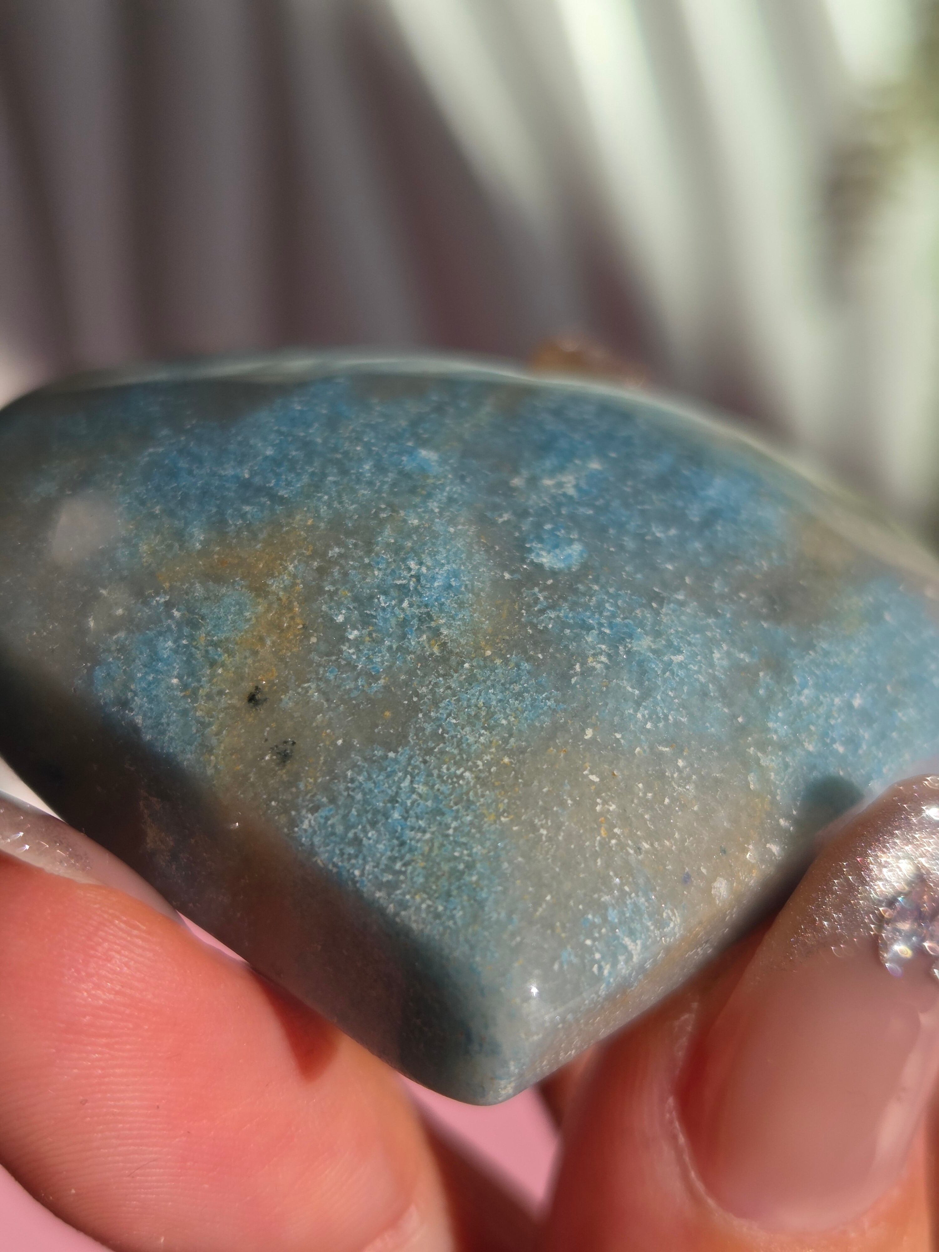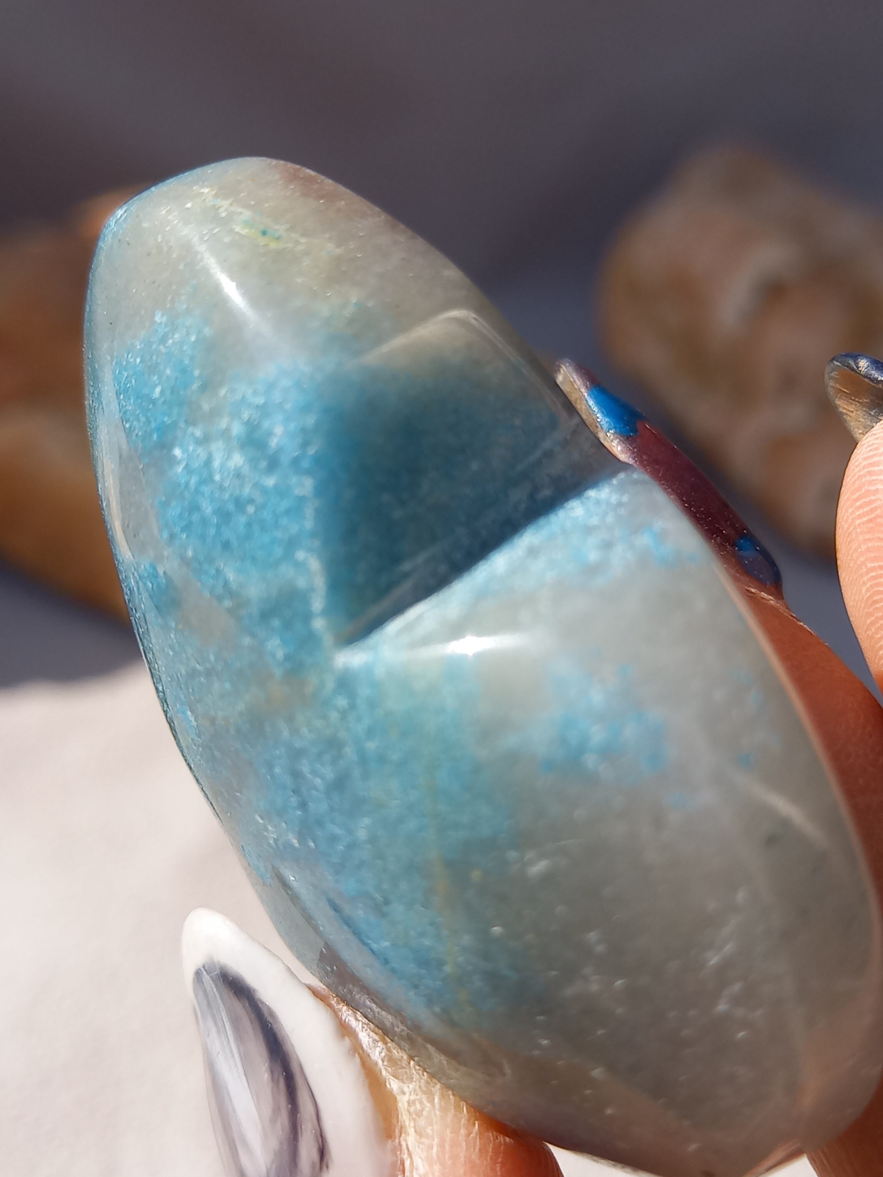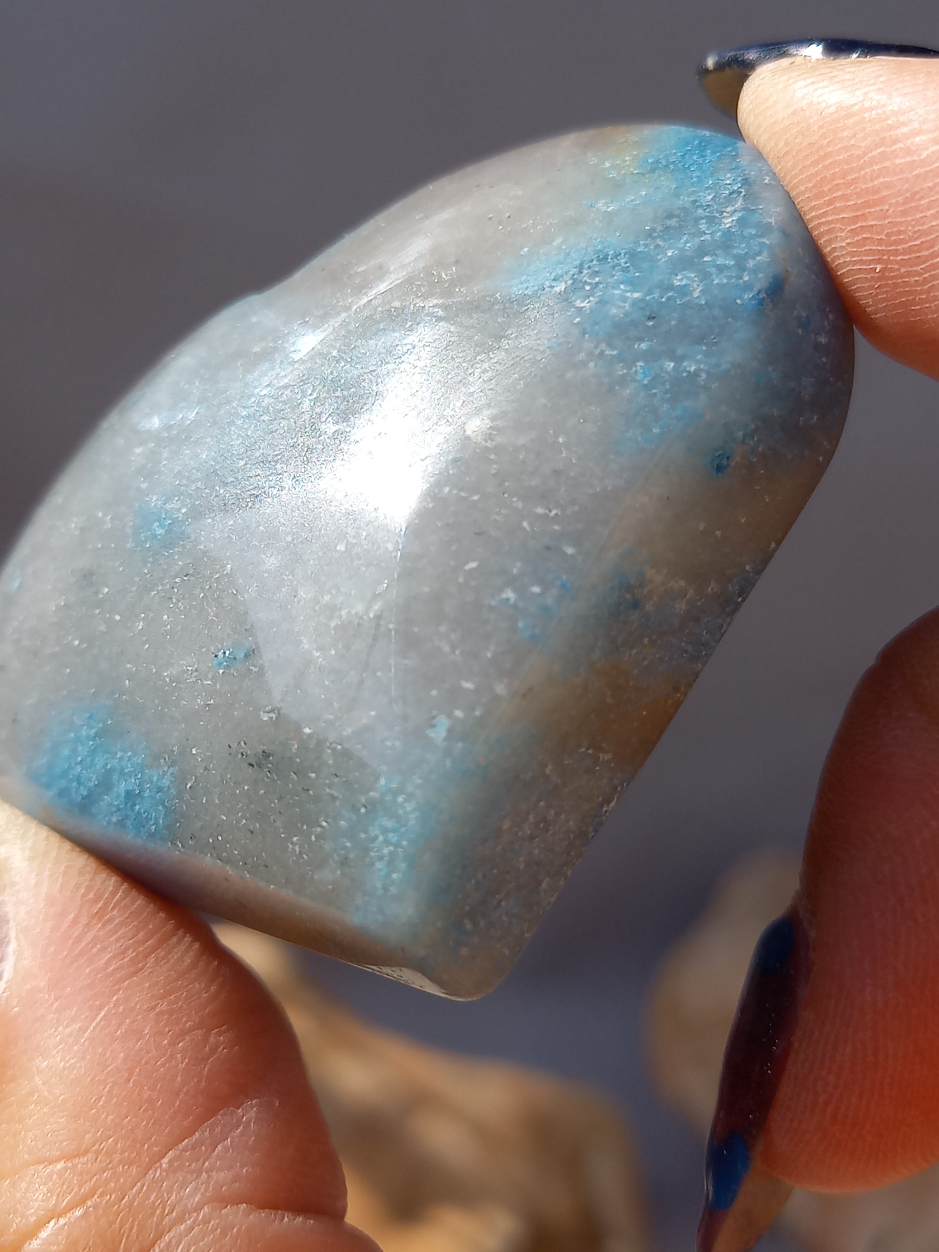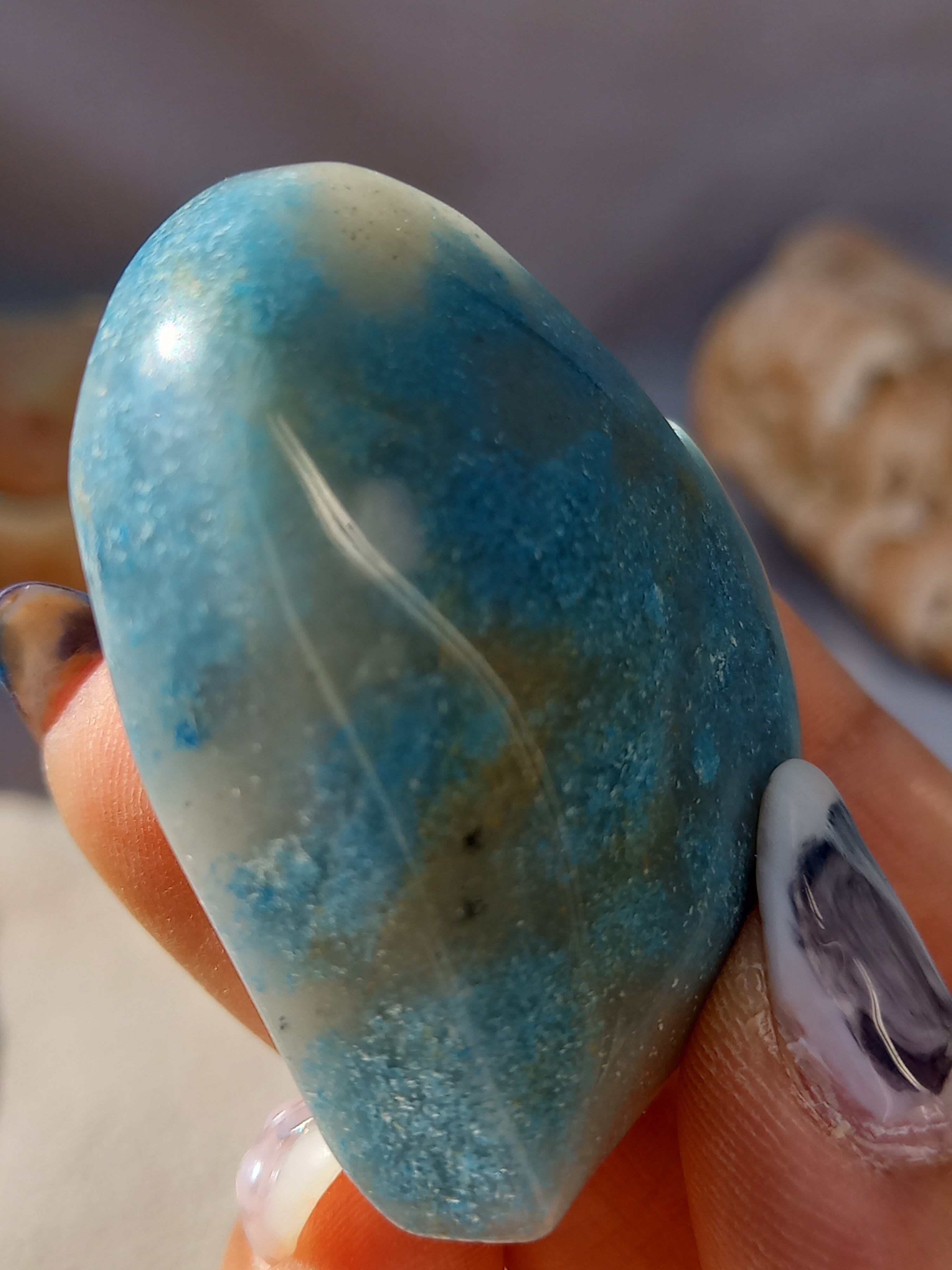 ブルーのコントラストが個々に違い、人気の高いトロレアイトは、細かなキラキラが可愛いストーンです。