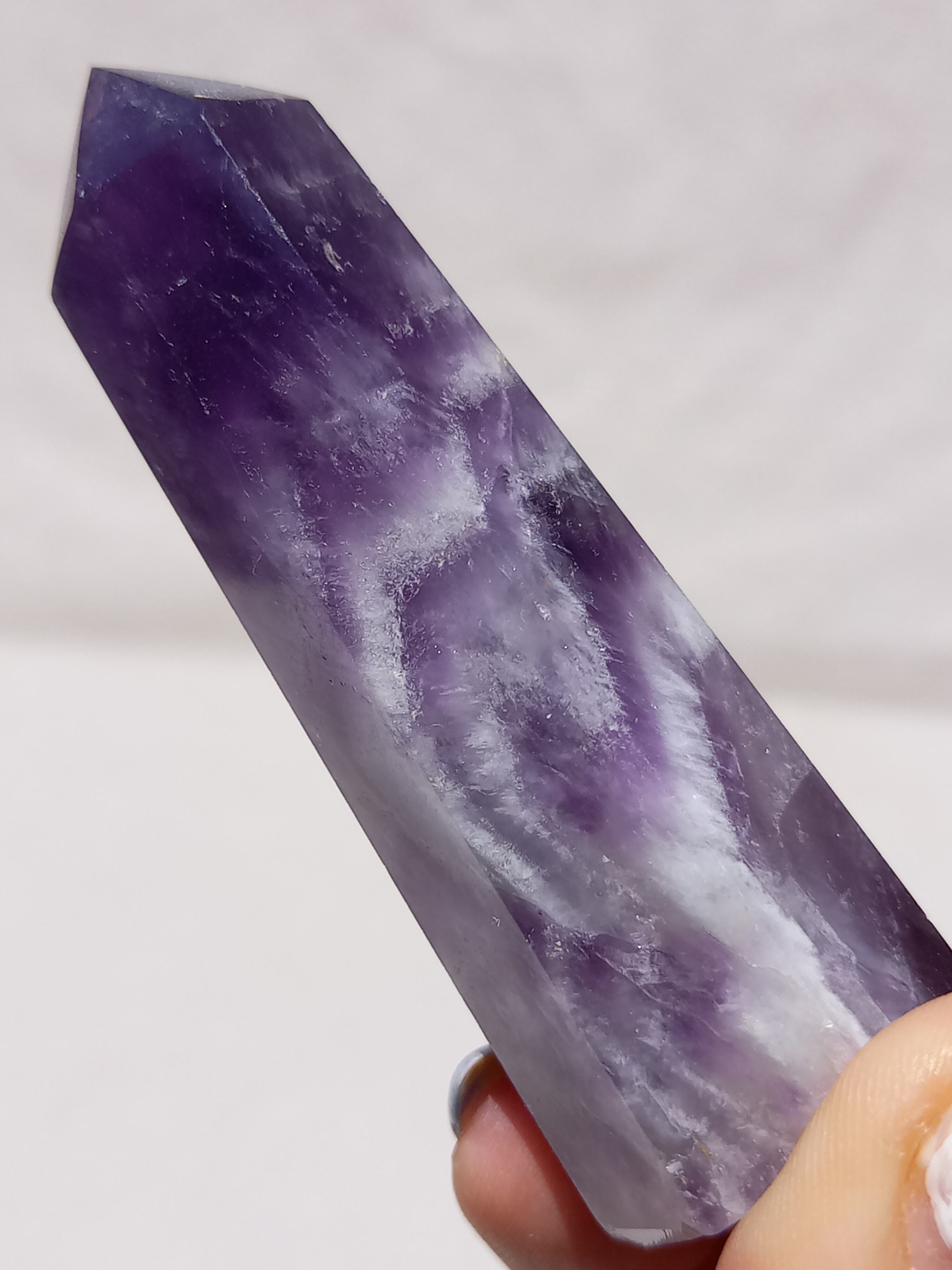 ドリームアメジストは厄除けやクリエイティブな仕事をしている人のお守りとしても人気です。 落ち着きたい人、 スピリチュアルに目覚めたい人、 個性を発揮したい人、 内面の美を磨きたい人へ。 安眠効果もあると言われているので、 枕元に飾るのもおすすめです。
