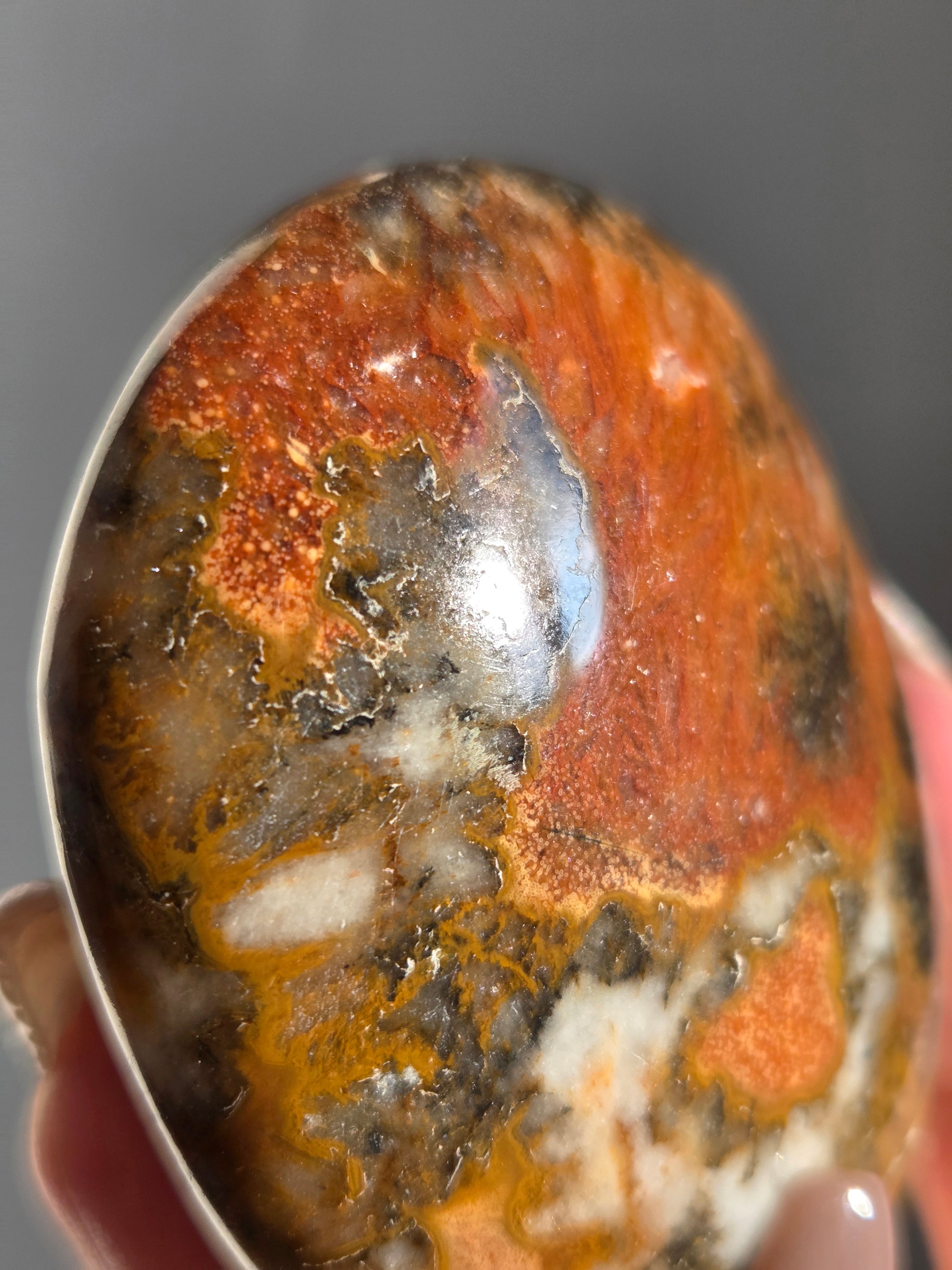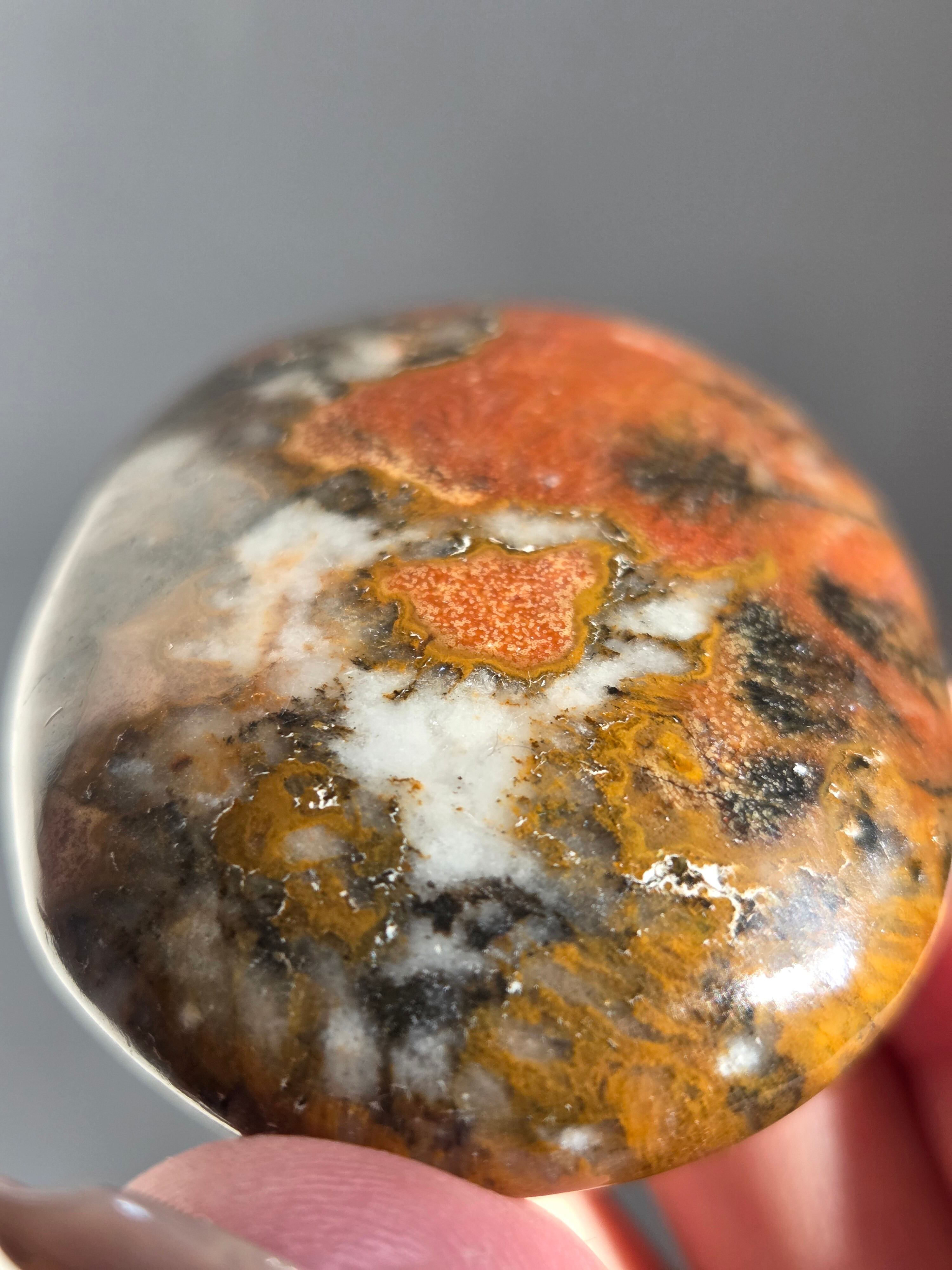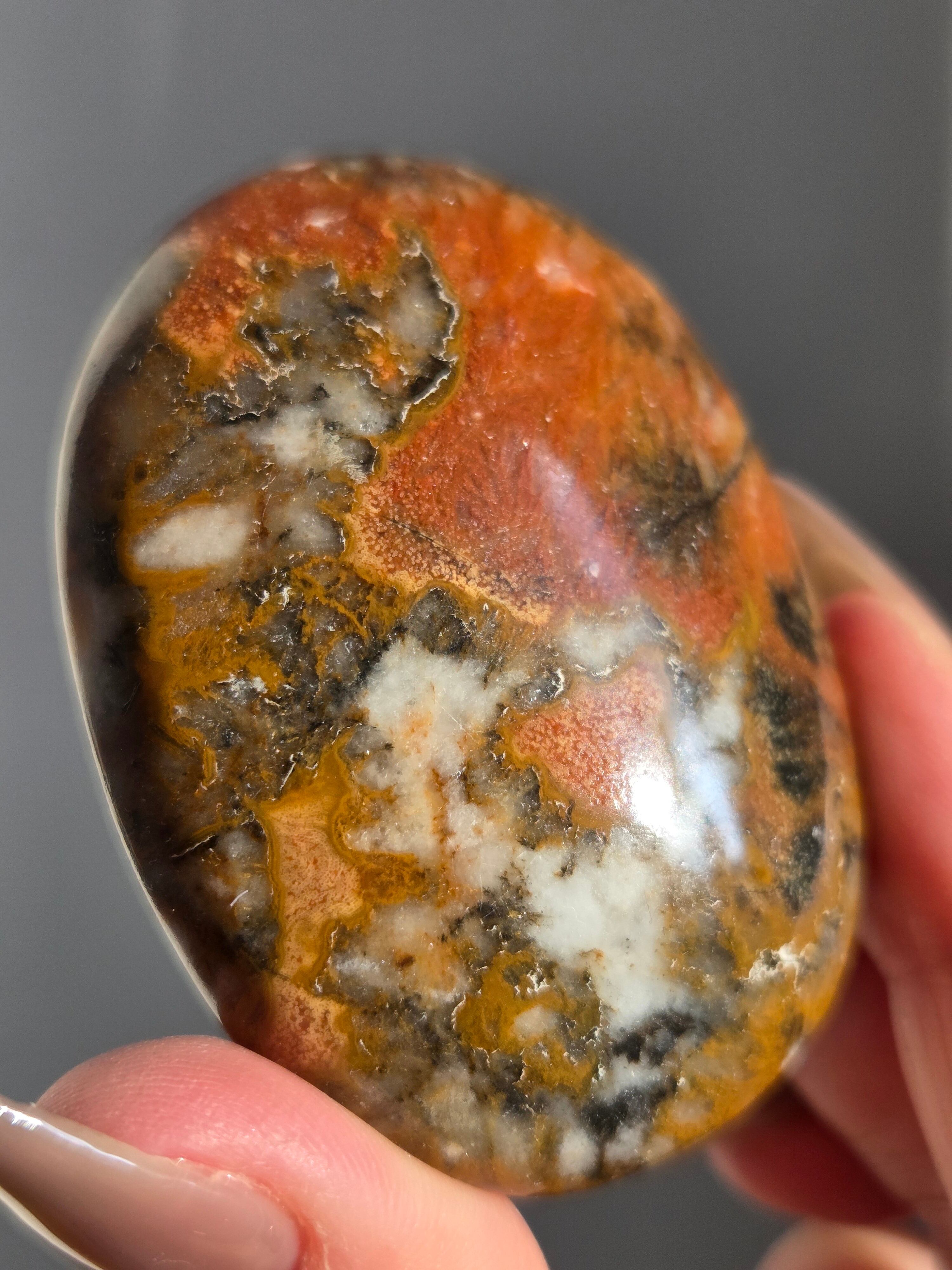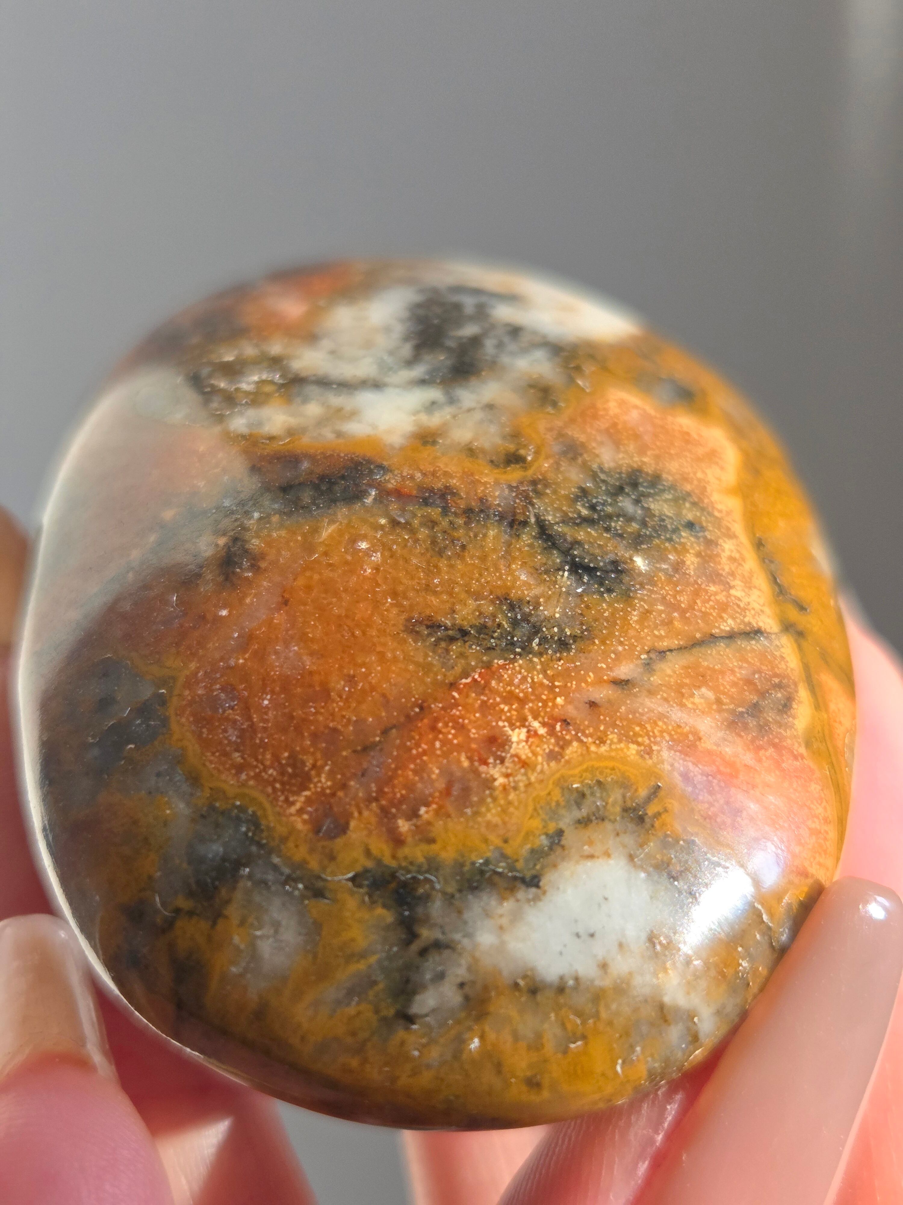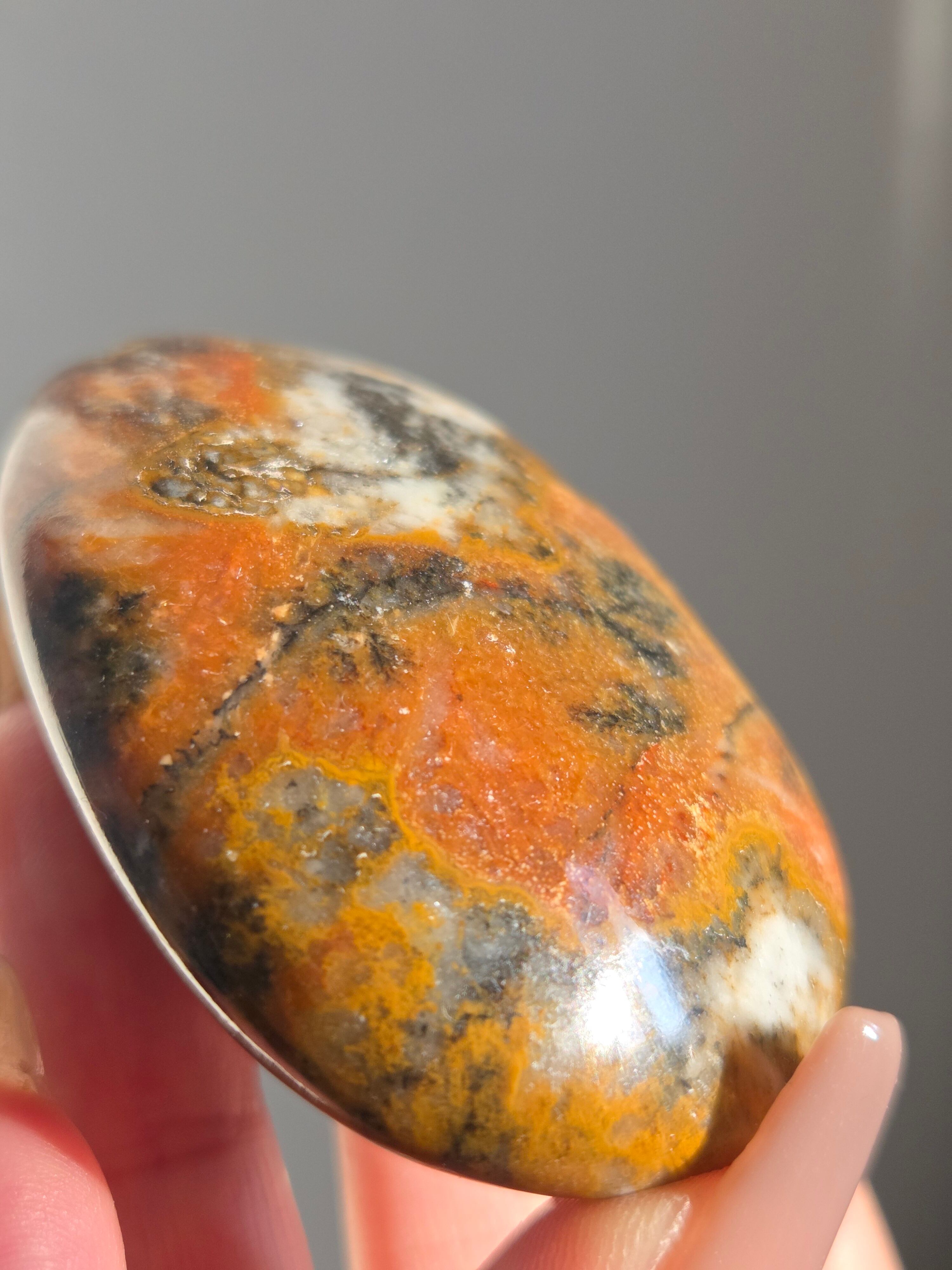 キングコブラジャスパー、ボンベイジャスパー、カラフルジャスパー、オービュキュラージャスパーなどなど、こんなに色んな愛称で呼ばれているこの子は、自然で創られたこの鮮やかなカラーと、模様が、これぞ唯一無二といった見た目をしております。