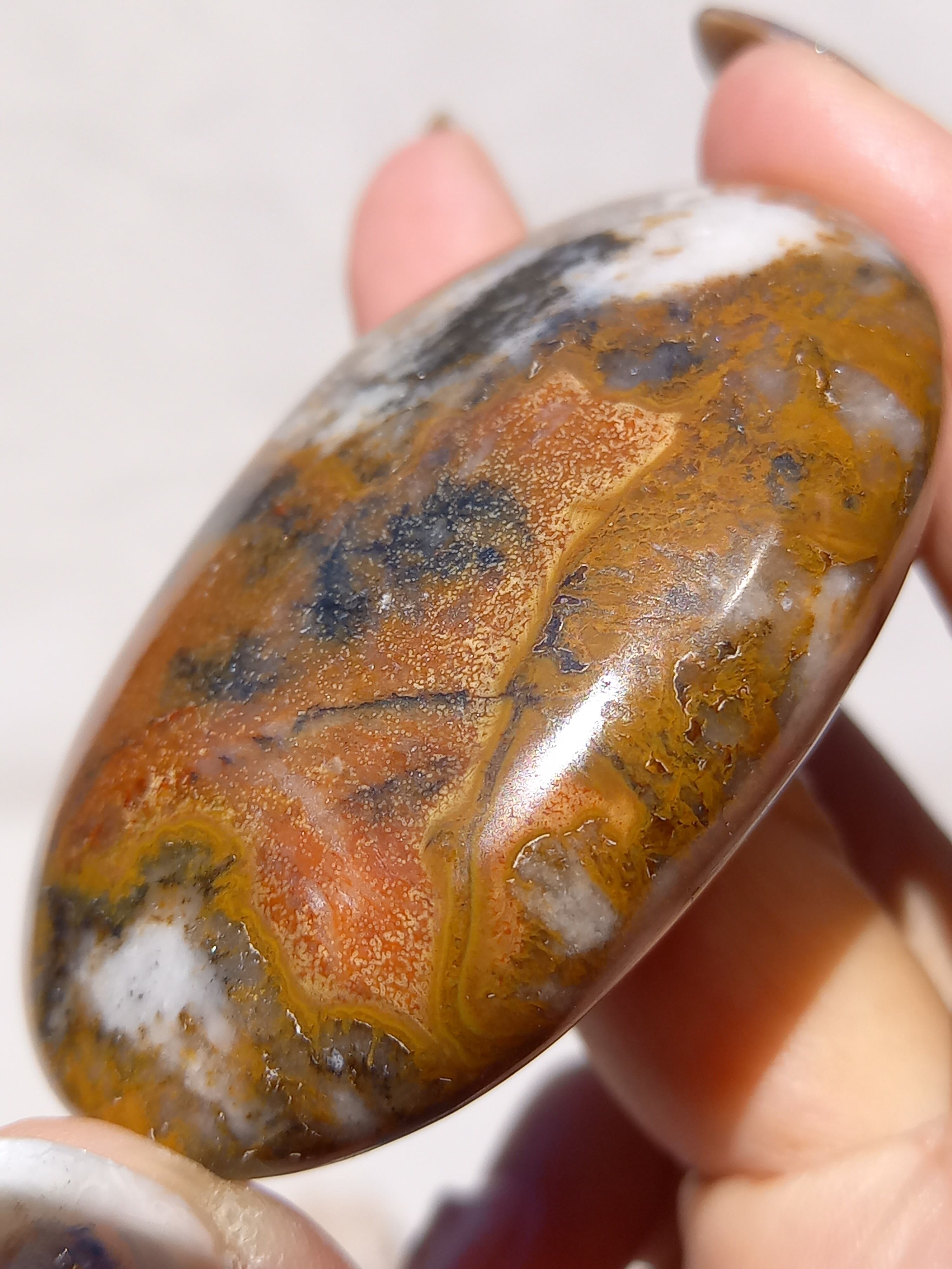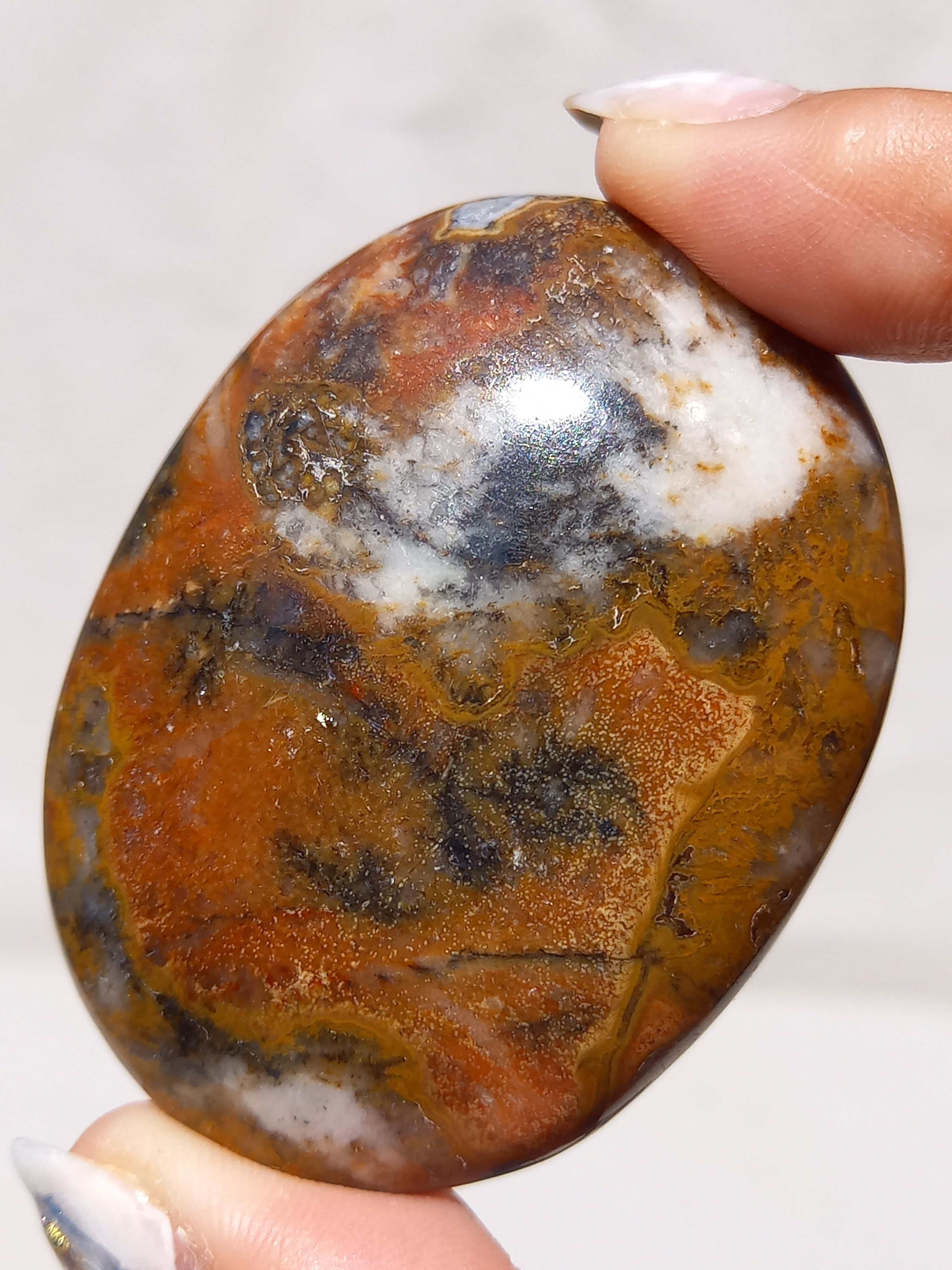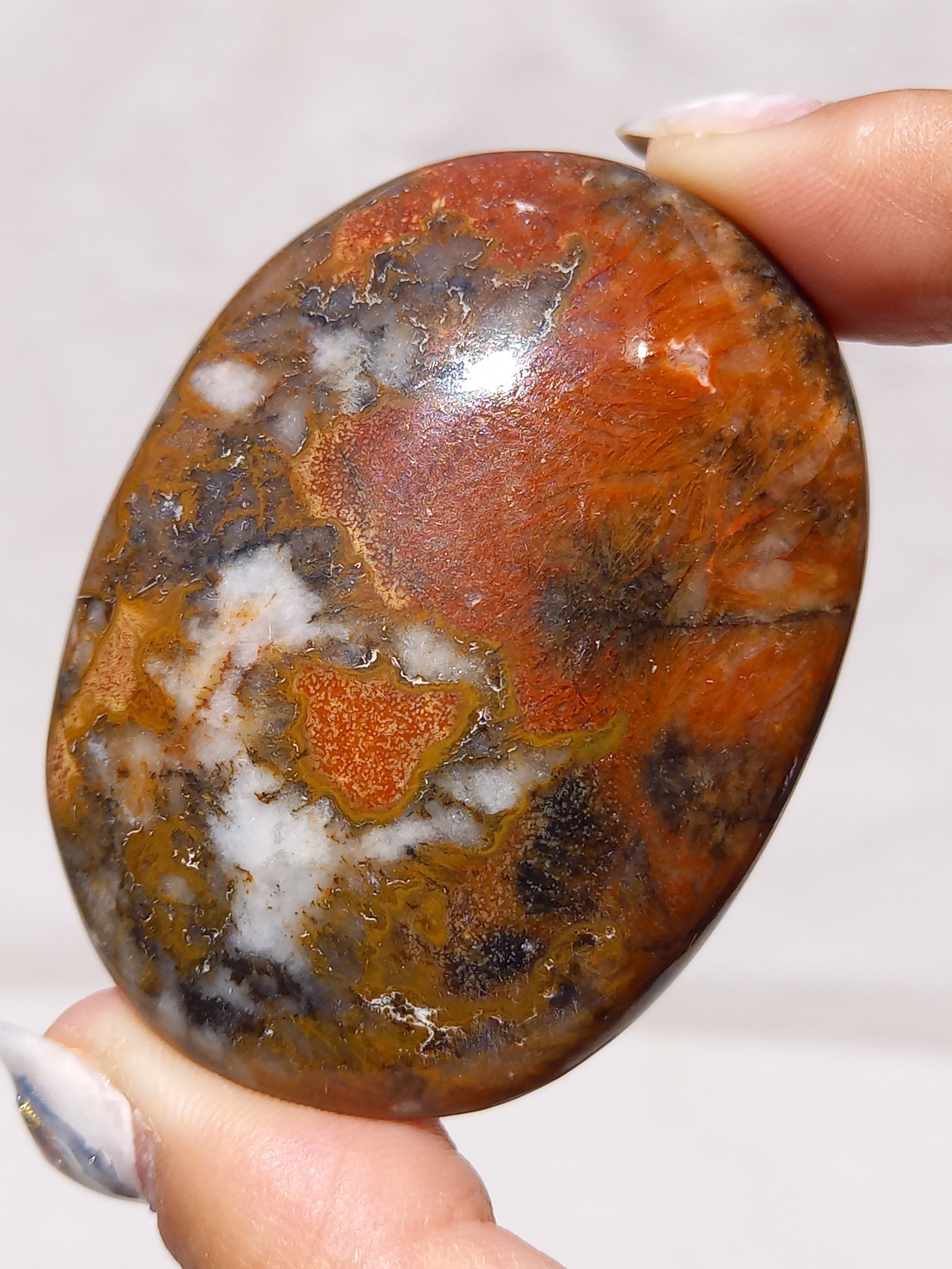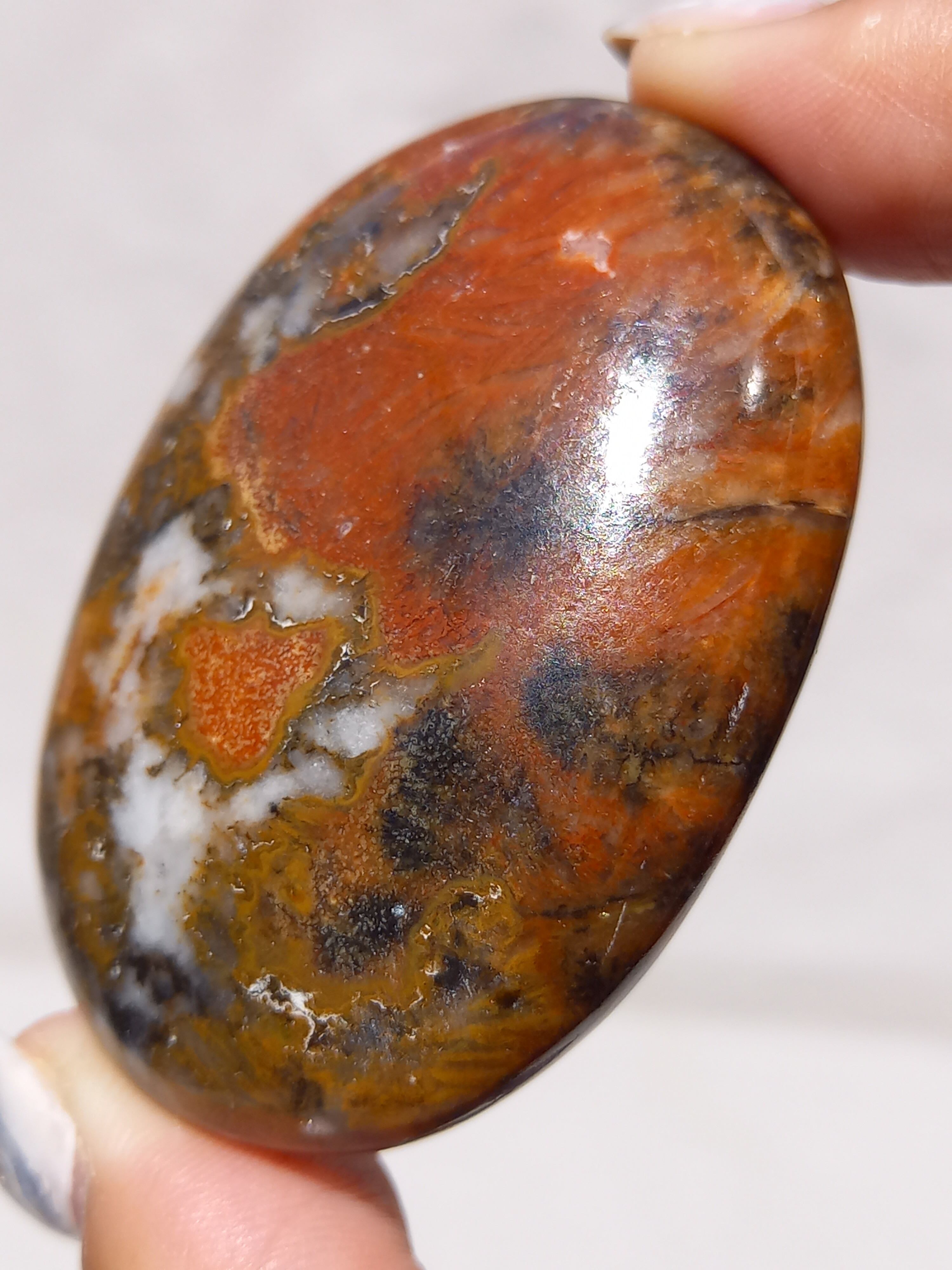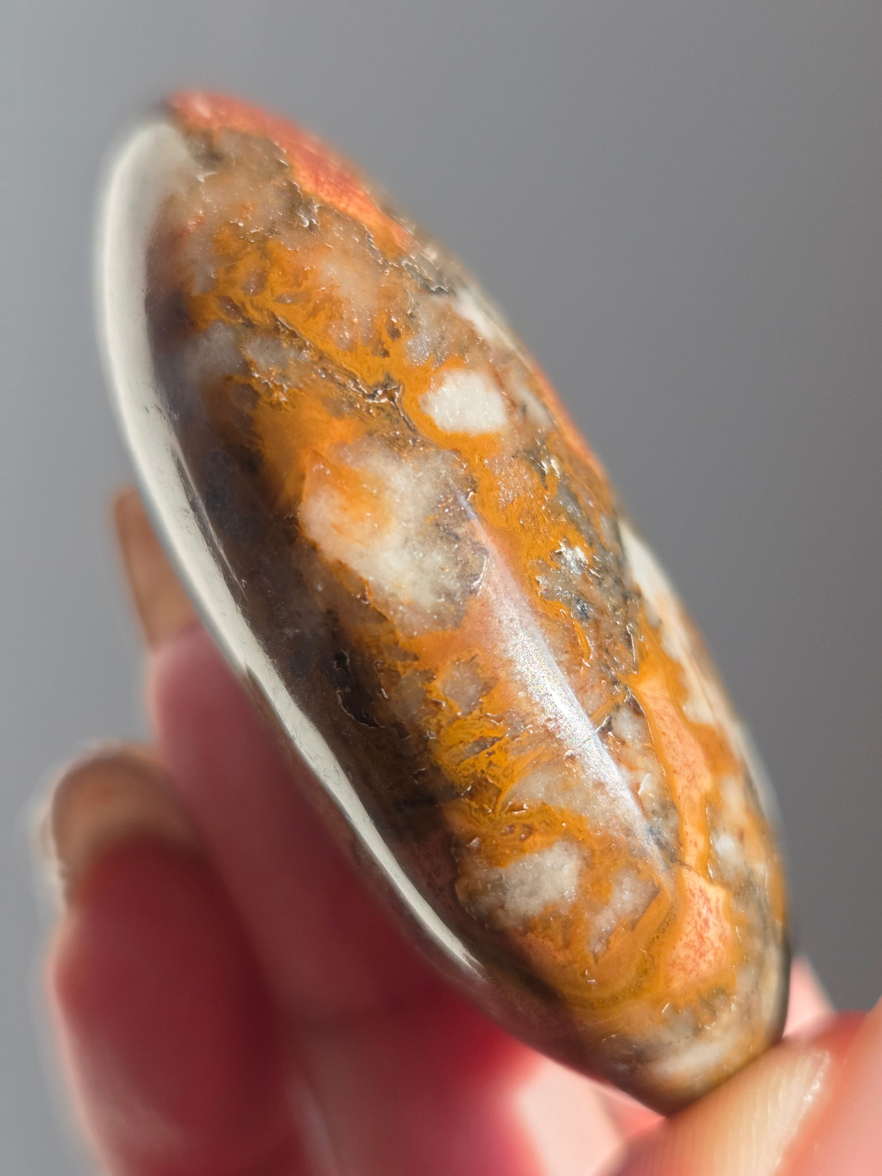 キングコブラジャスパー、ボンベイジャスパー、カラフルジャスパー、オービュキュラージャスパーなどなど、こんなに色んな愛称で呼ばれているこの子は、自然で創られたこの鮮やかなカラーと、模様が、これぞ唯一無二といった見た目をしております。