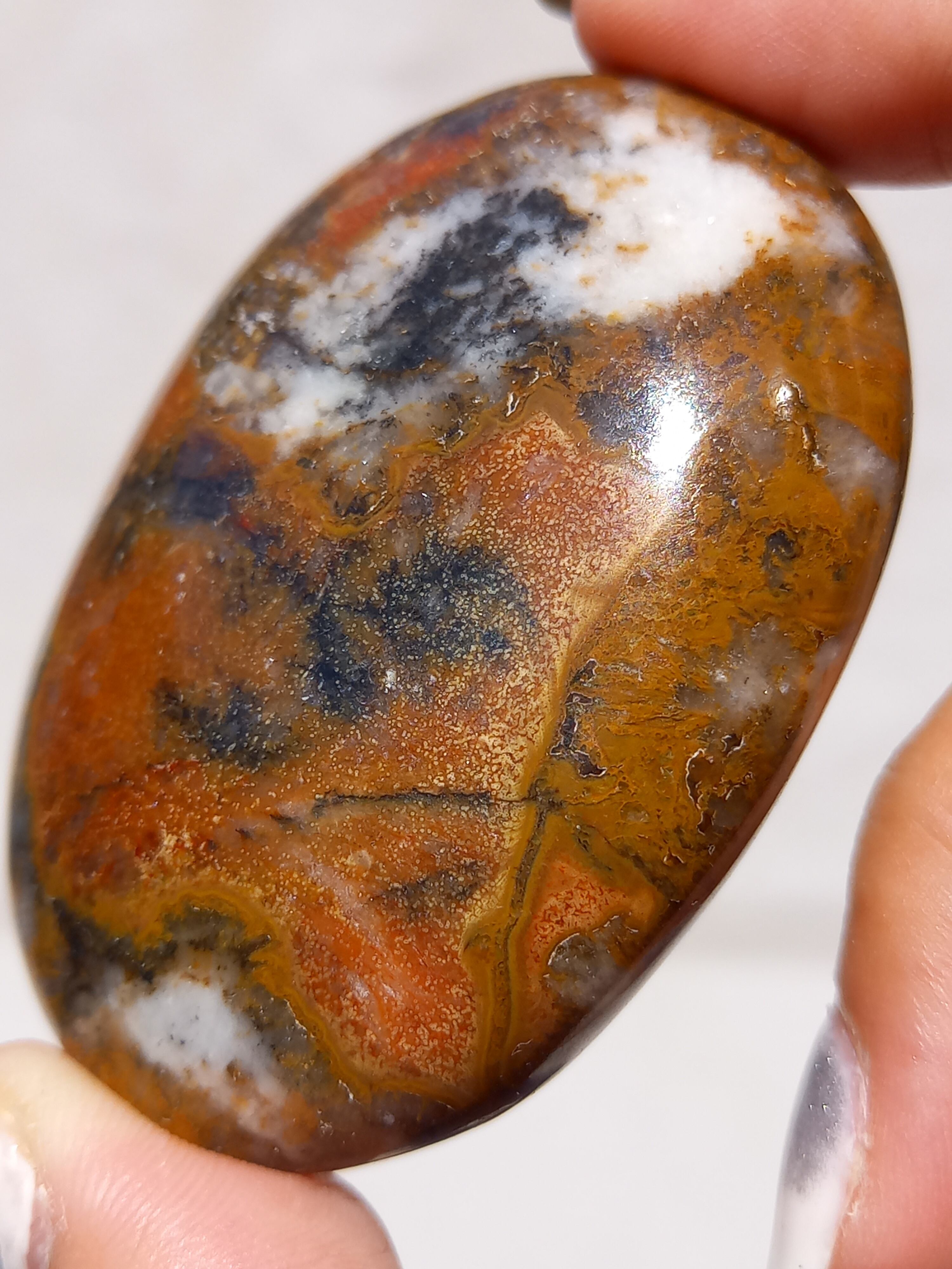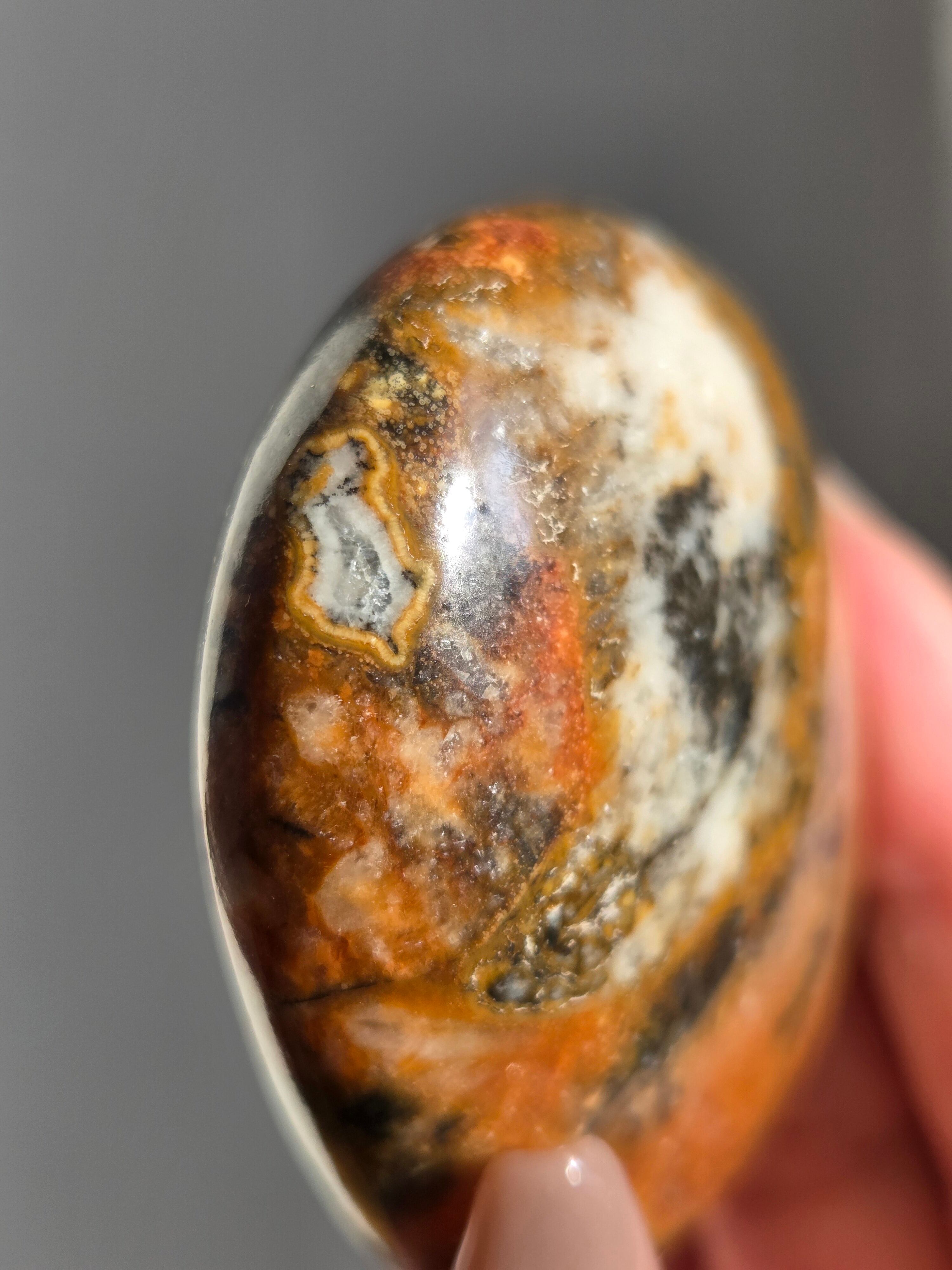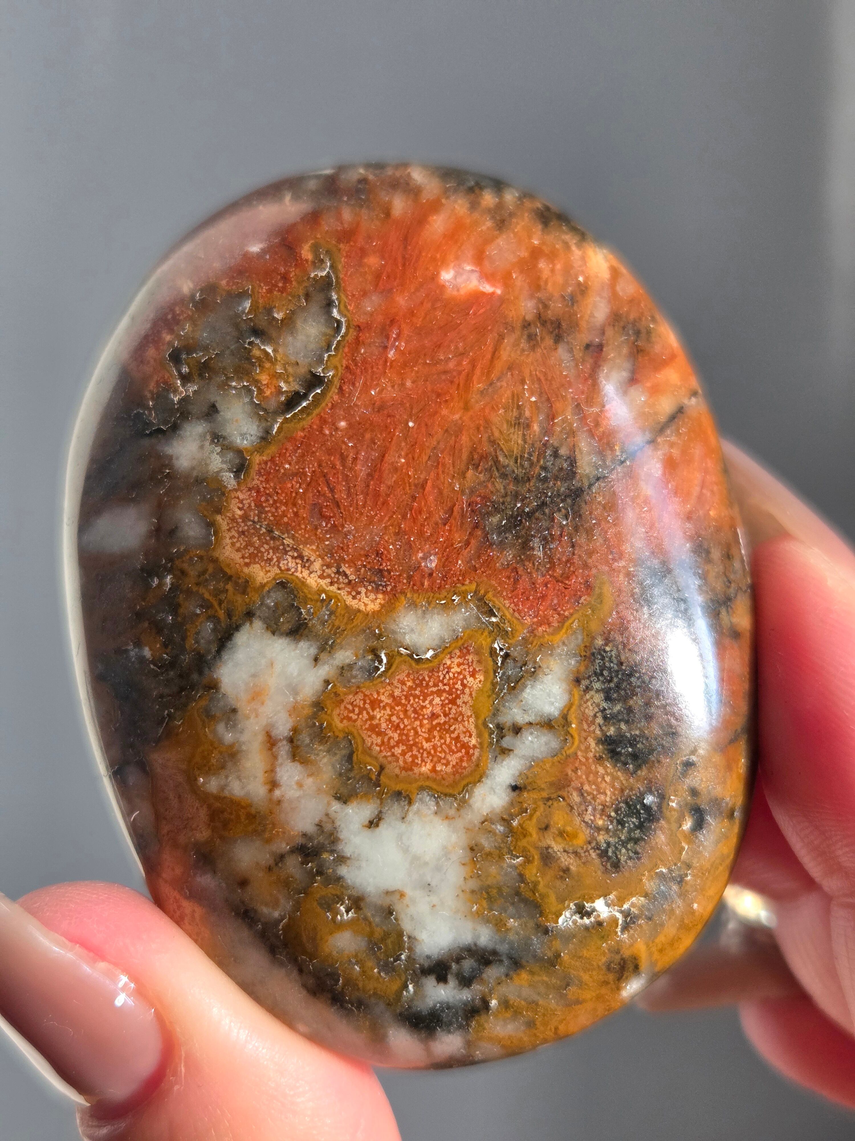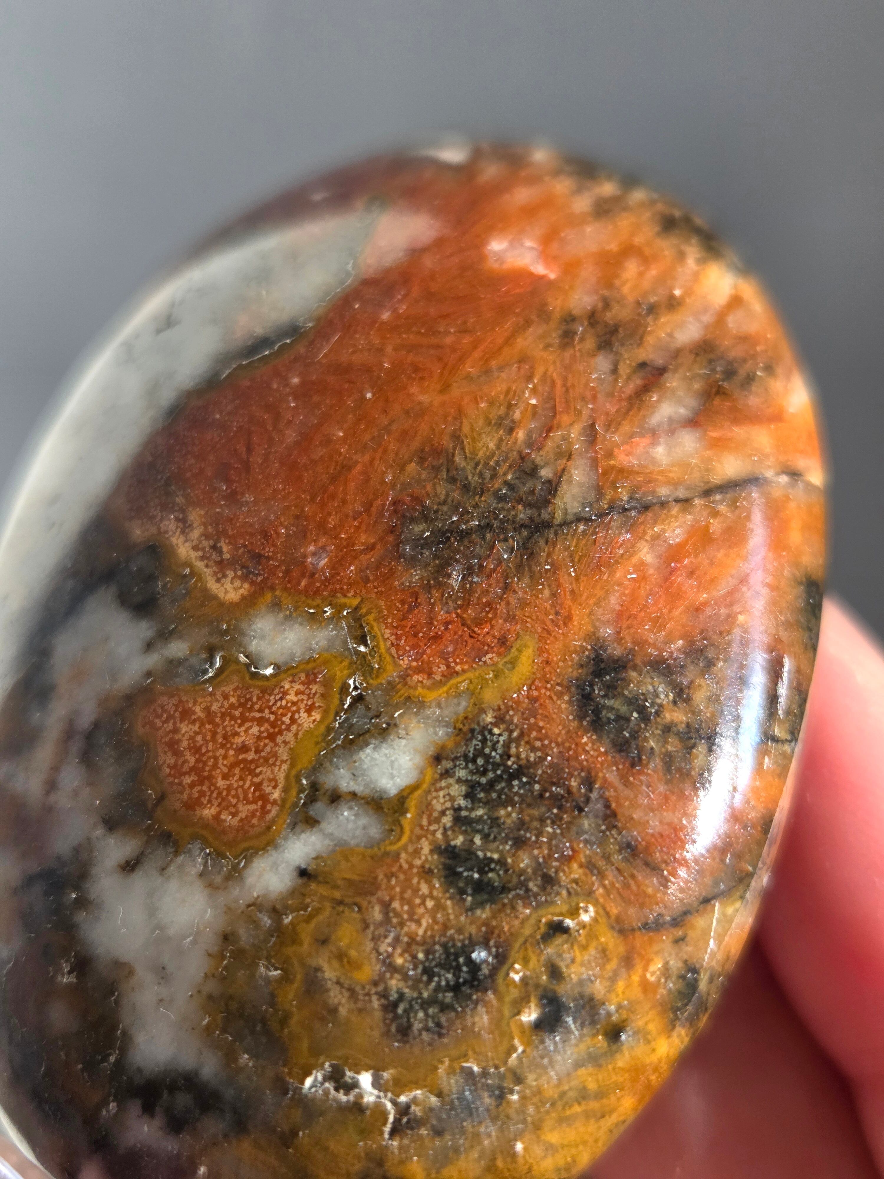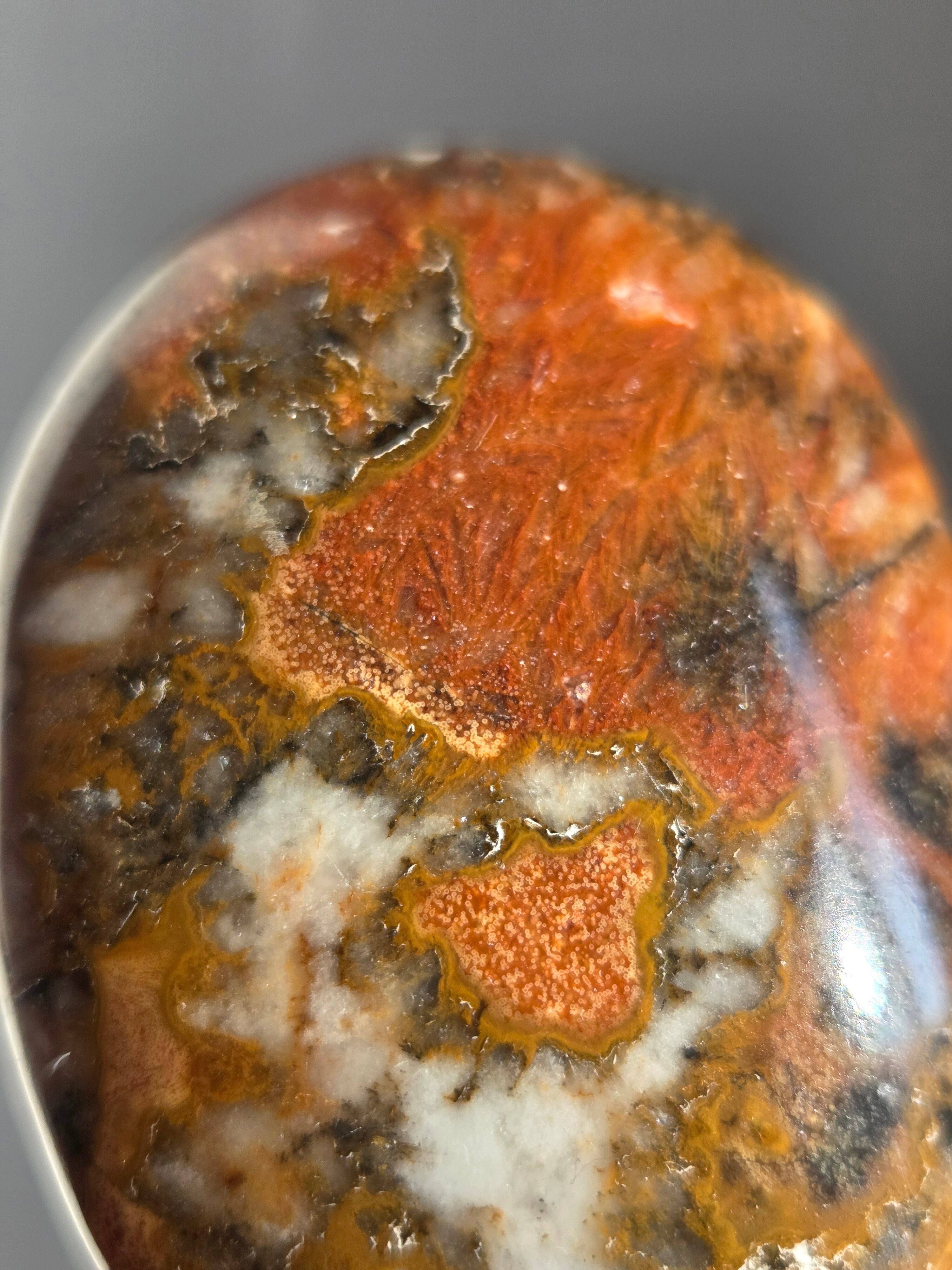 キングコブラジャスパー、ボンベイジャスパー、カラフルジャスパー、オービュキュラージャスパーなどなど、こんなに色んな愛称で呼ばれているこの子は、自然で創られたこの鮮やかなカラーと、模様が、これぞ唯一無二といった見た目をしております。
