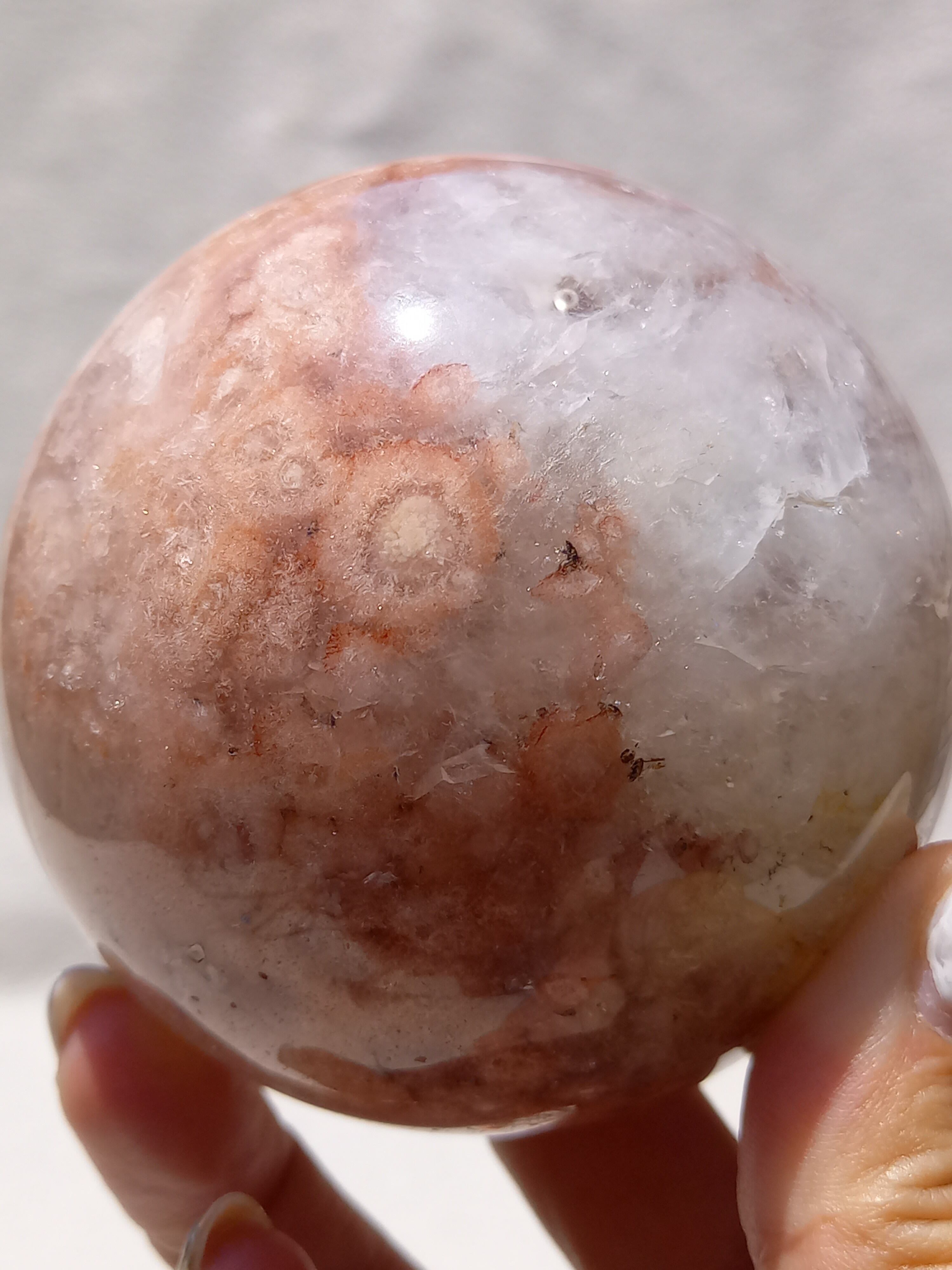 ピンク色のアメジストに、お花模様と、クォーツ結晶とのコントラストが素敵な、大きなスフィアのお得なsetです。