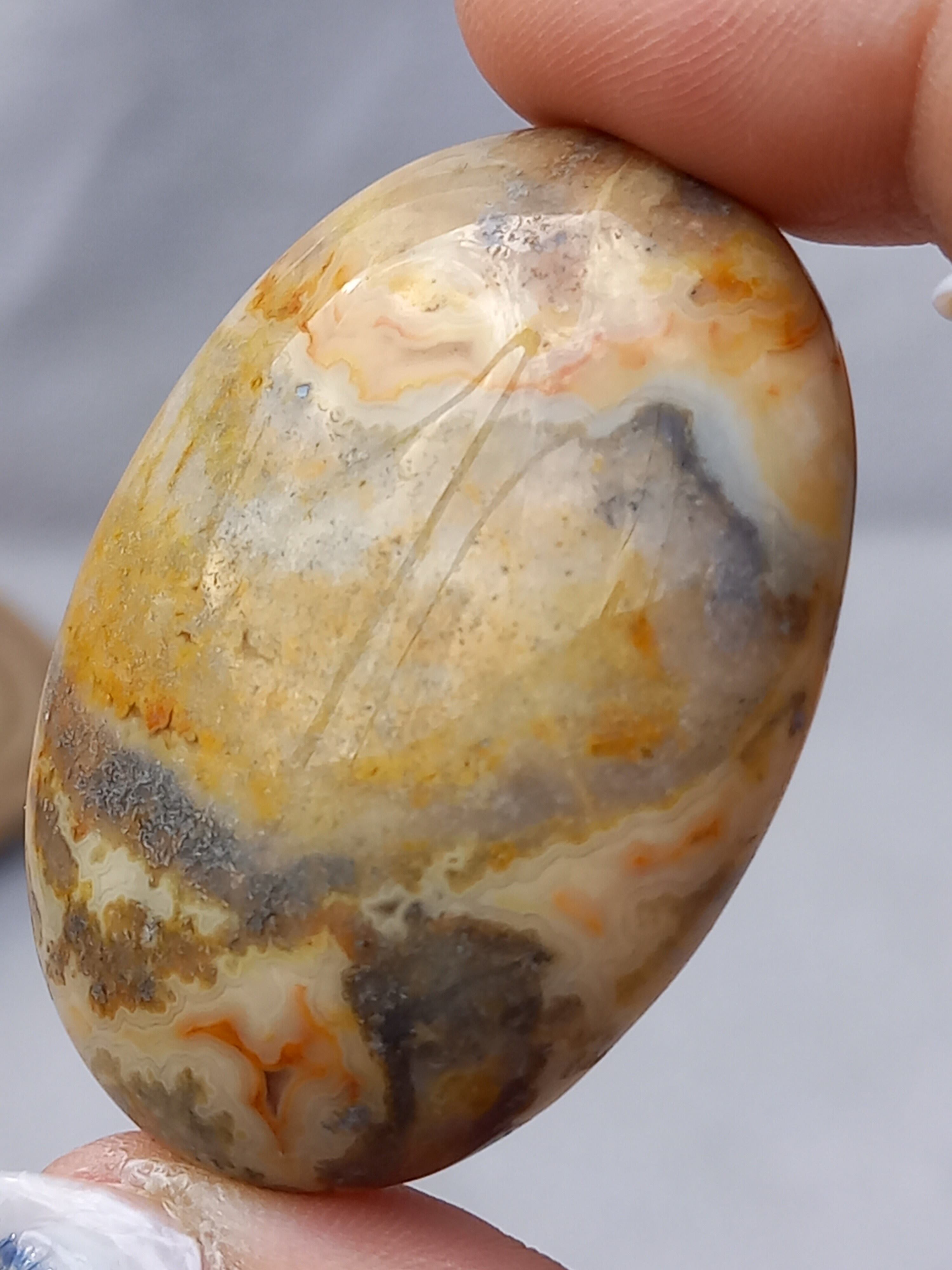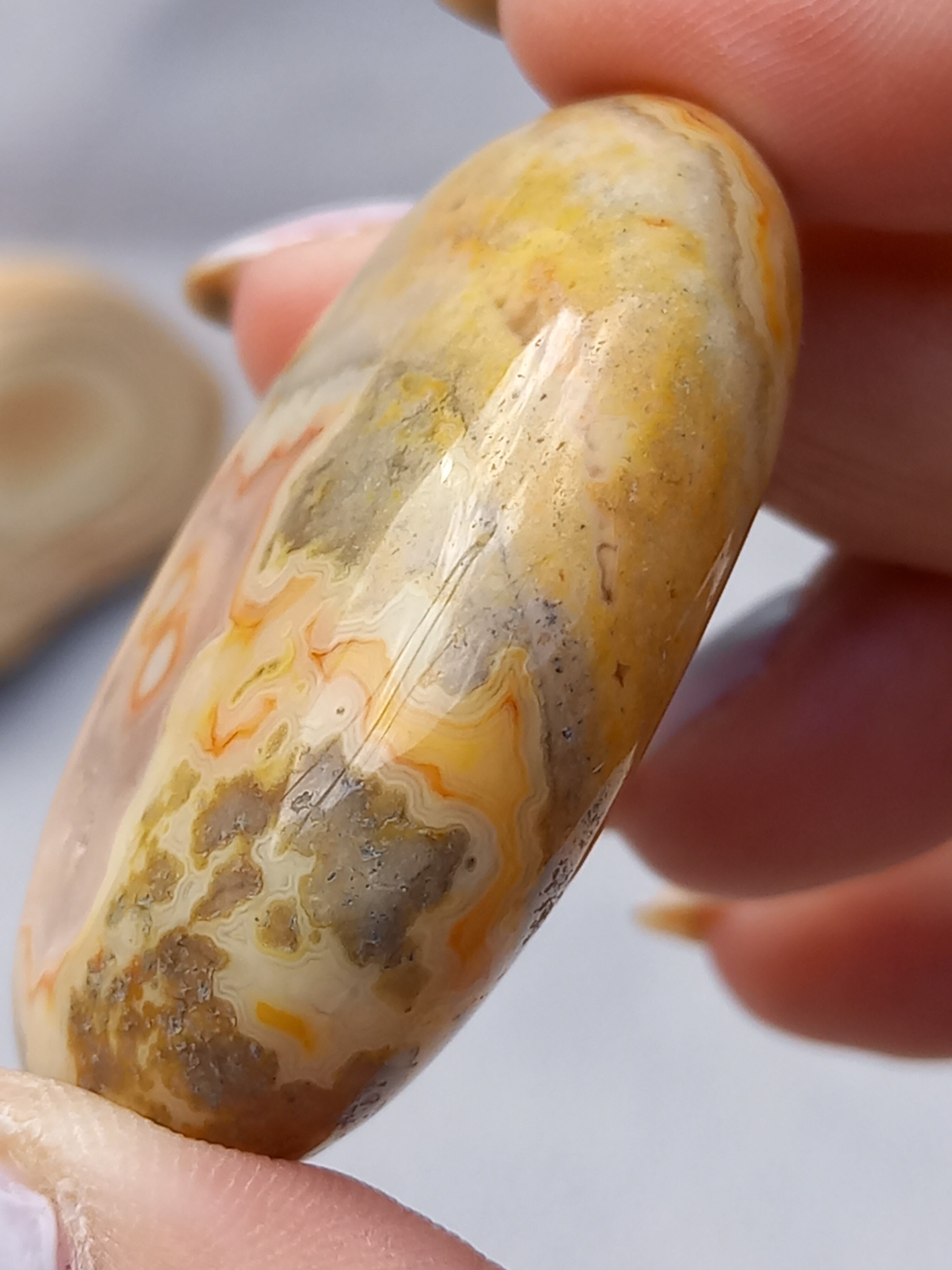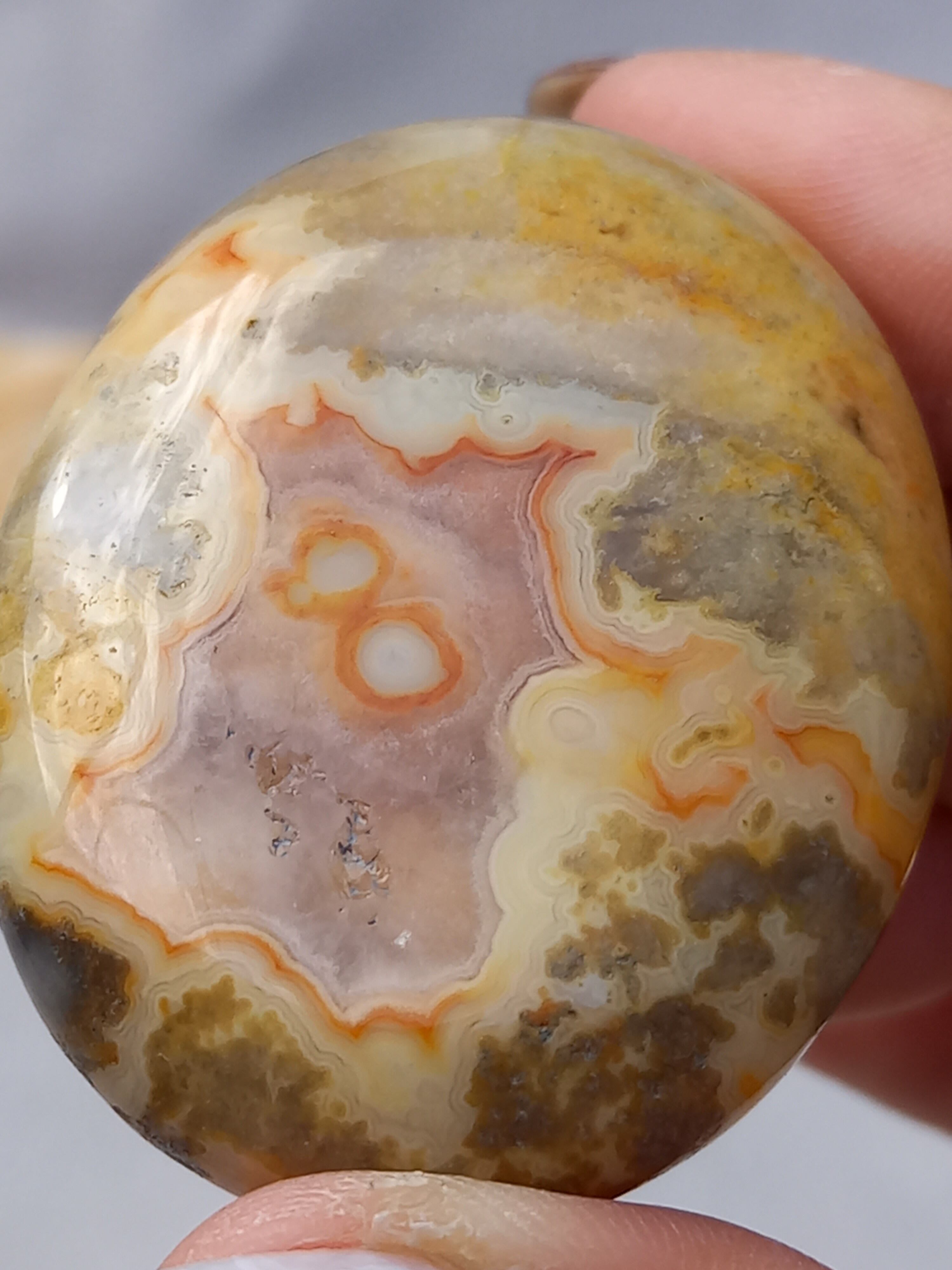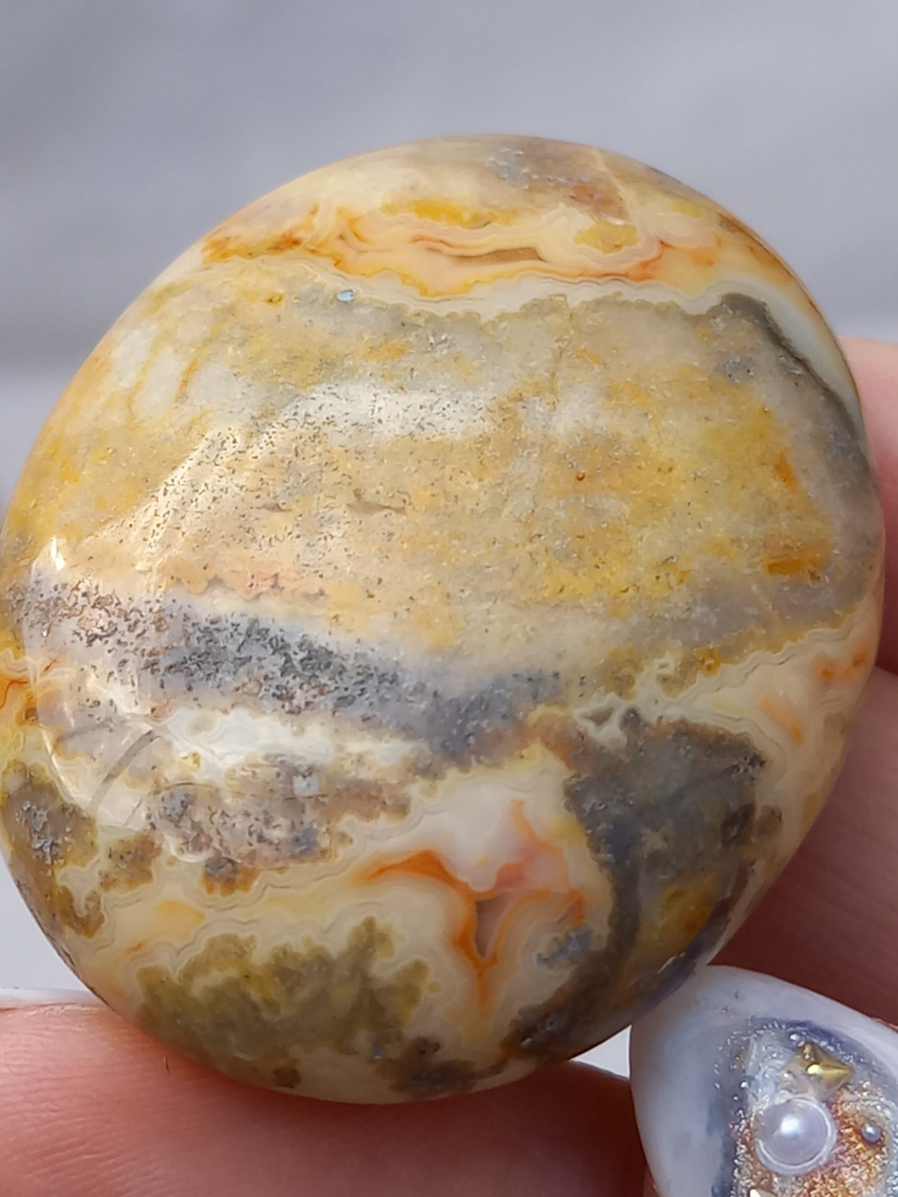 クレイジーレースアゲートは、ヒーリングストーンの一つで、幾層にも重なった模様から発せられる些細な波動が心身にやさしく働きかけ、持ち主の精神的な痛みを和らげ、感情的な負担を解放してくれるといわれています。 クレイジーレースアゲートは、強力な守護力があり、旅の守護石とも呼ばれています。