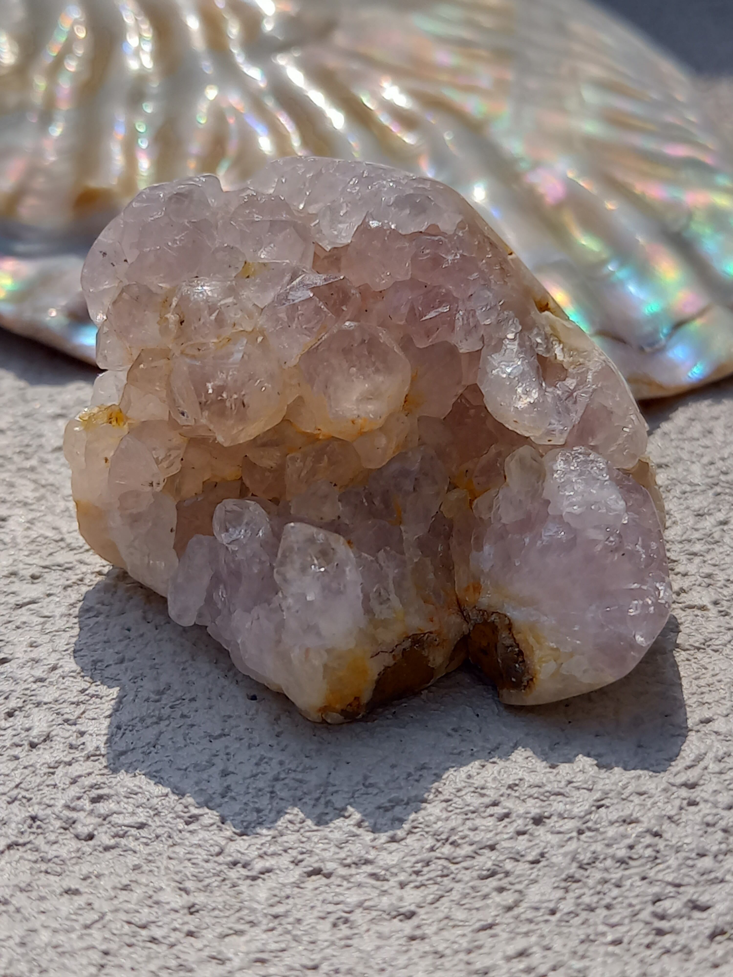 結晶のクラスター部分を残しフリーフォームにカットされているので、ちょこんと置いたらとても可愛いと思います。