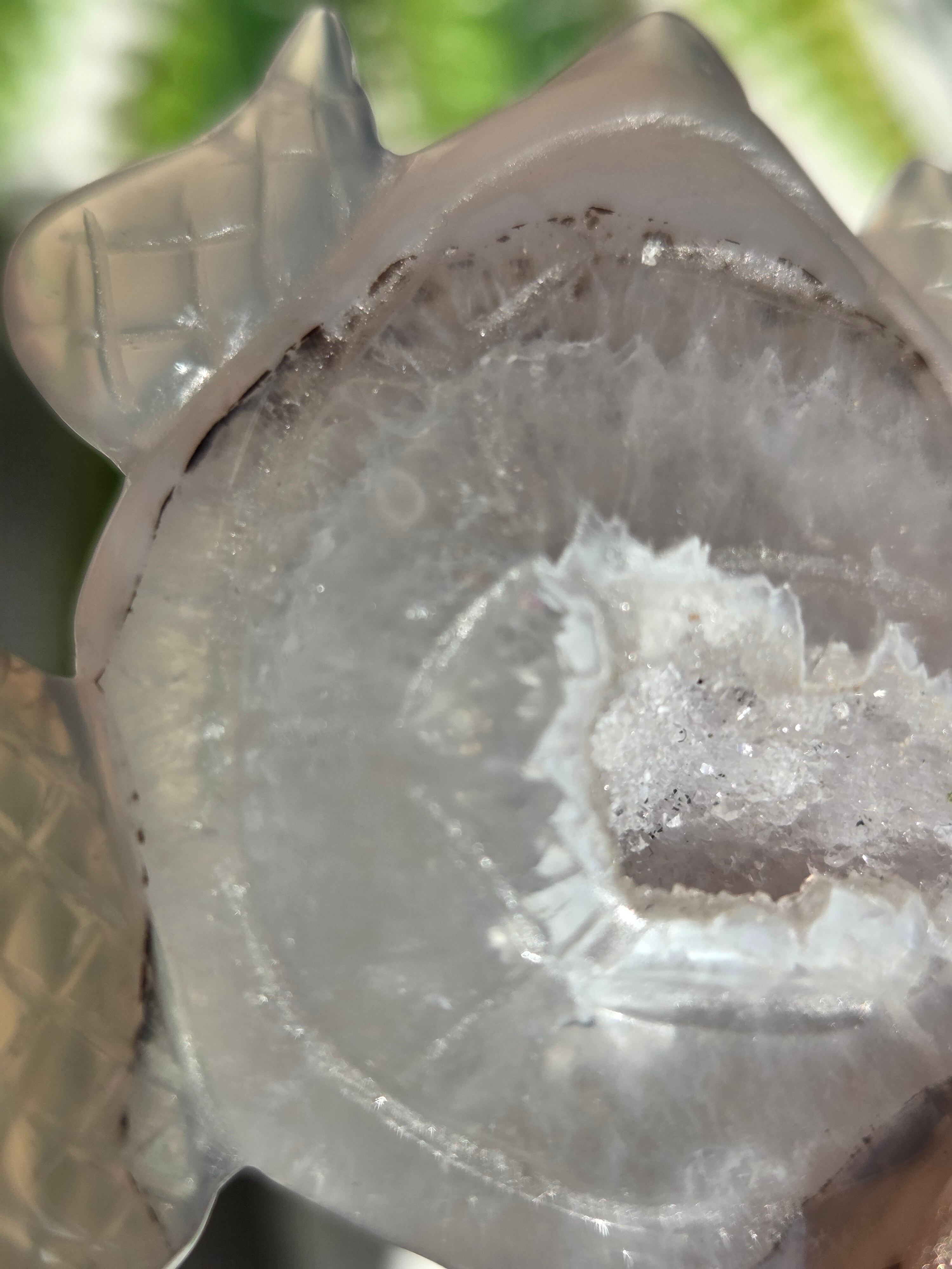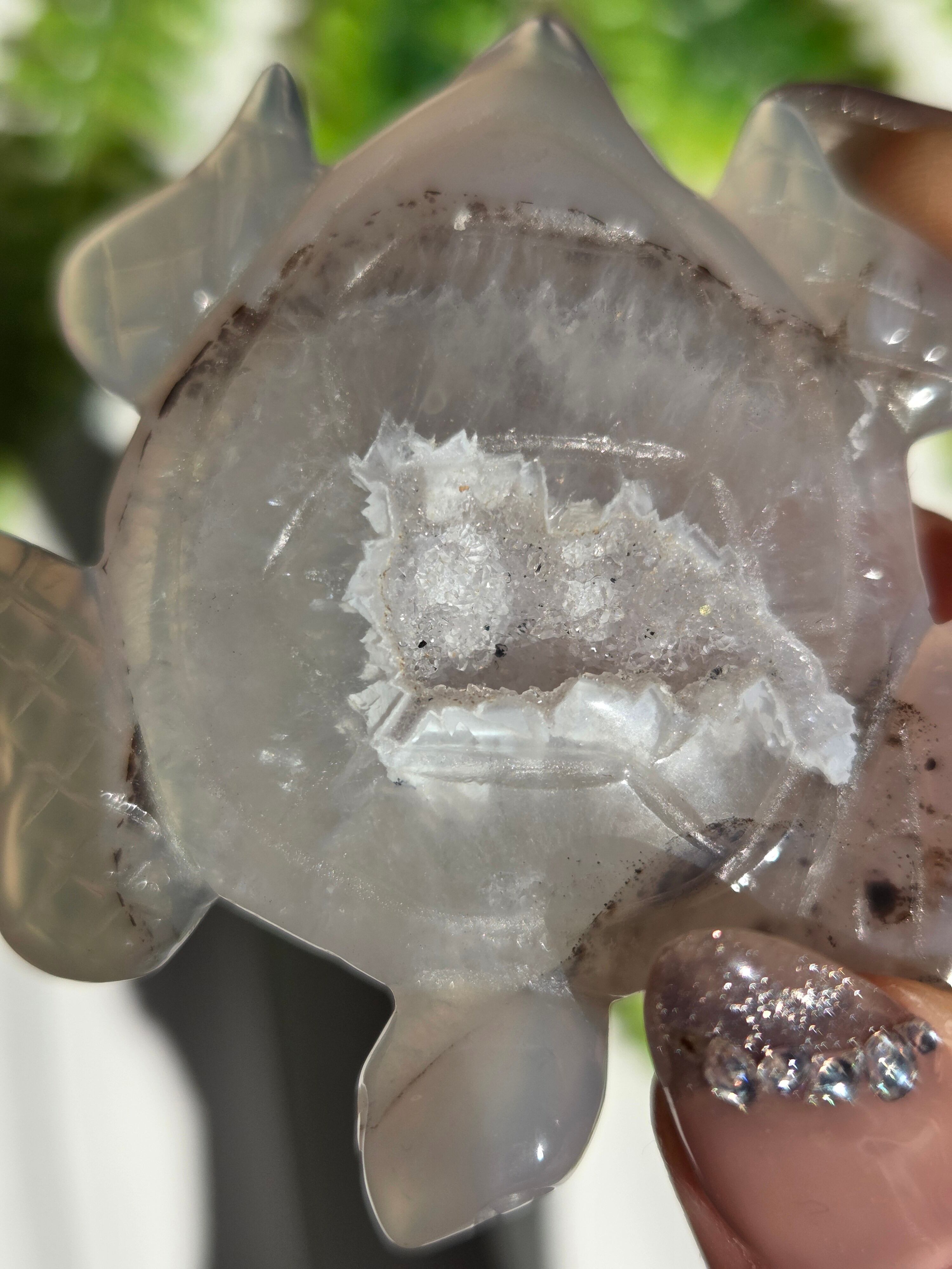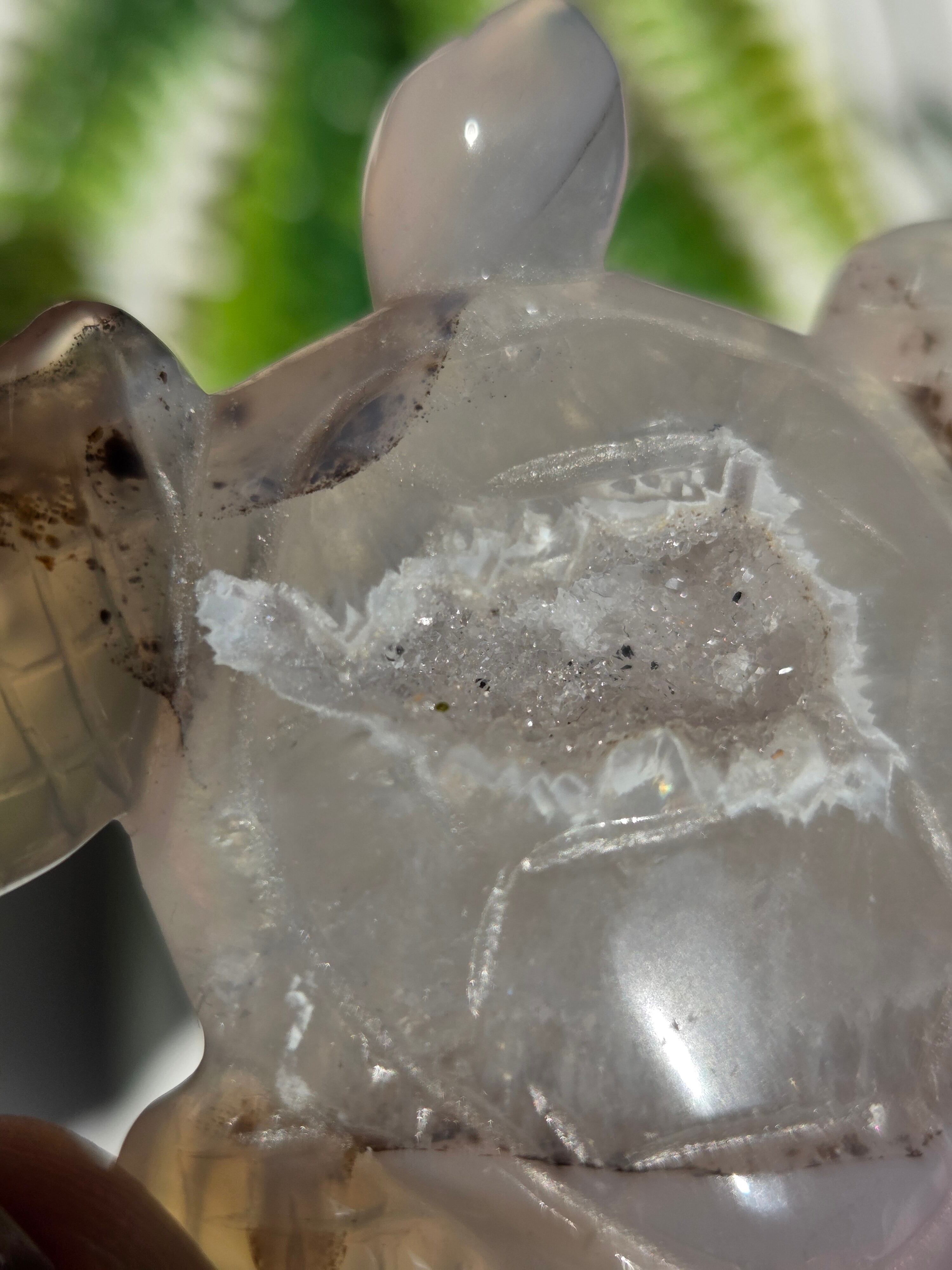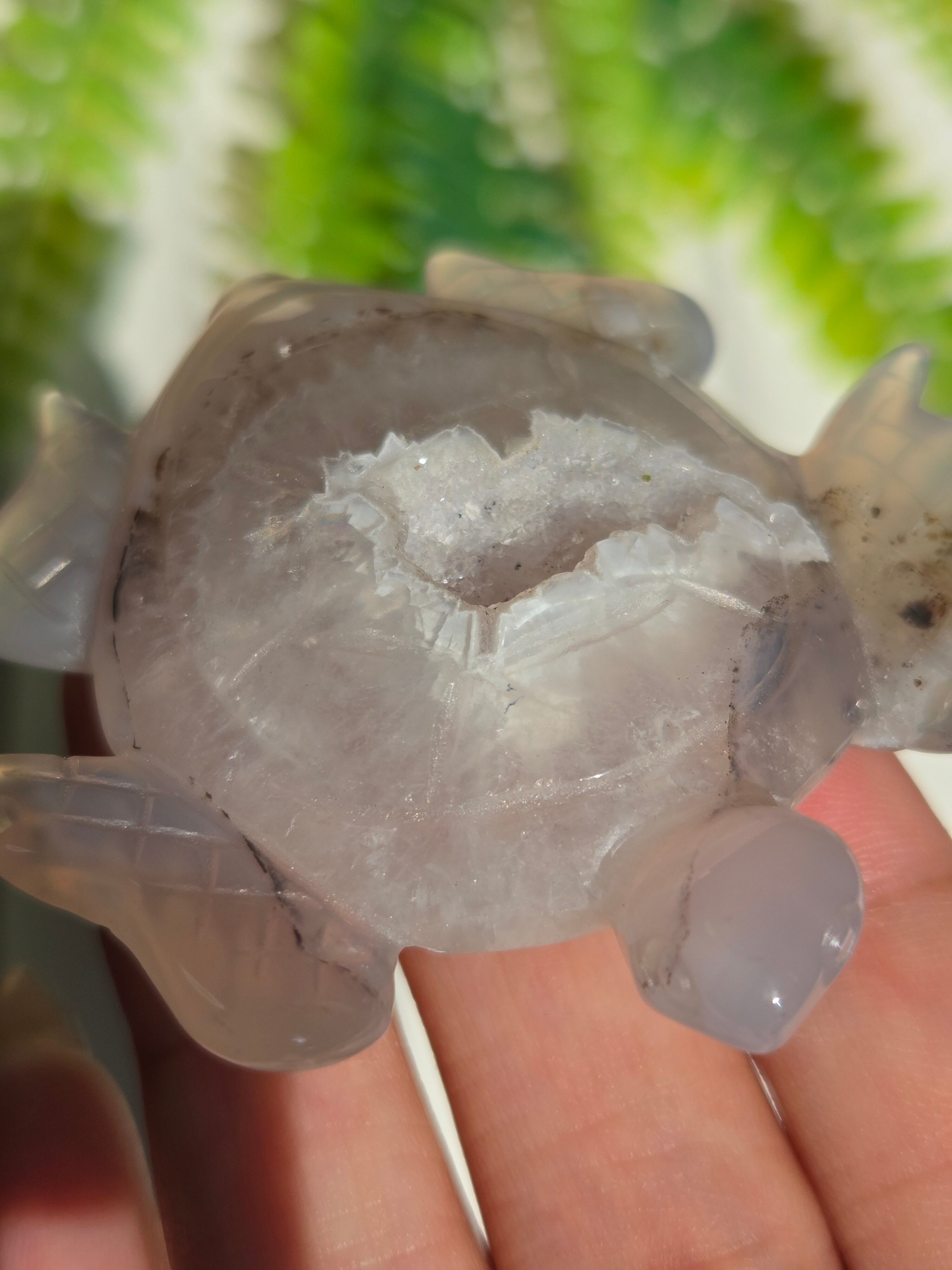 瑪瑙の模様と、ジオードがキラキラで可愛い置物です。