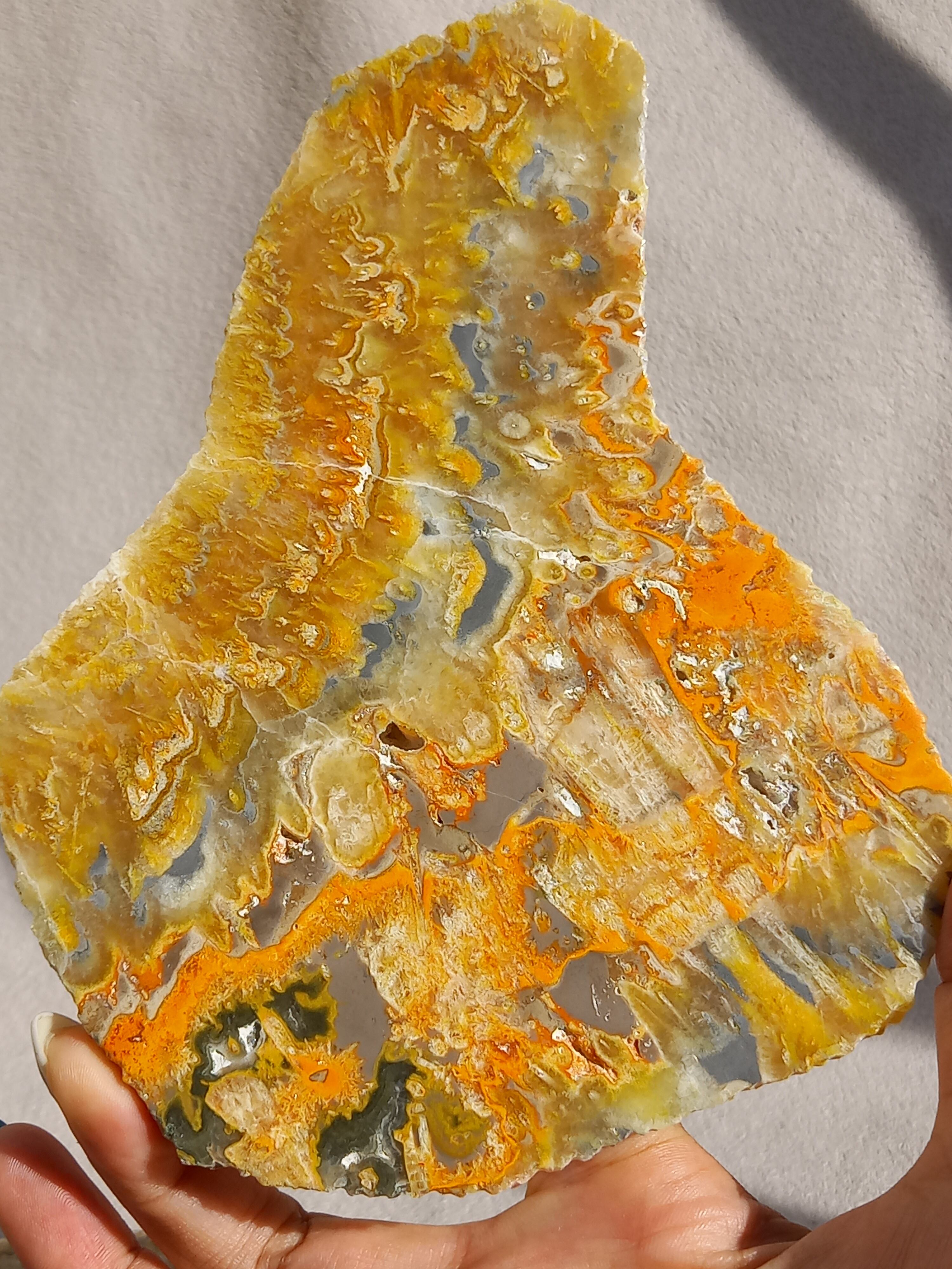 貴重なバンブルビージャスパーのスライスし、プレートとしても、台座で立ててインテリアしてもオシャレです。