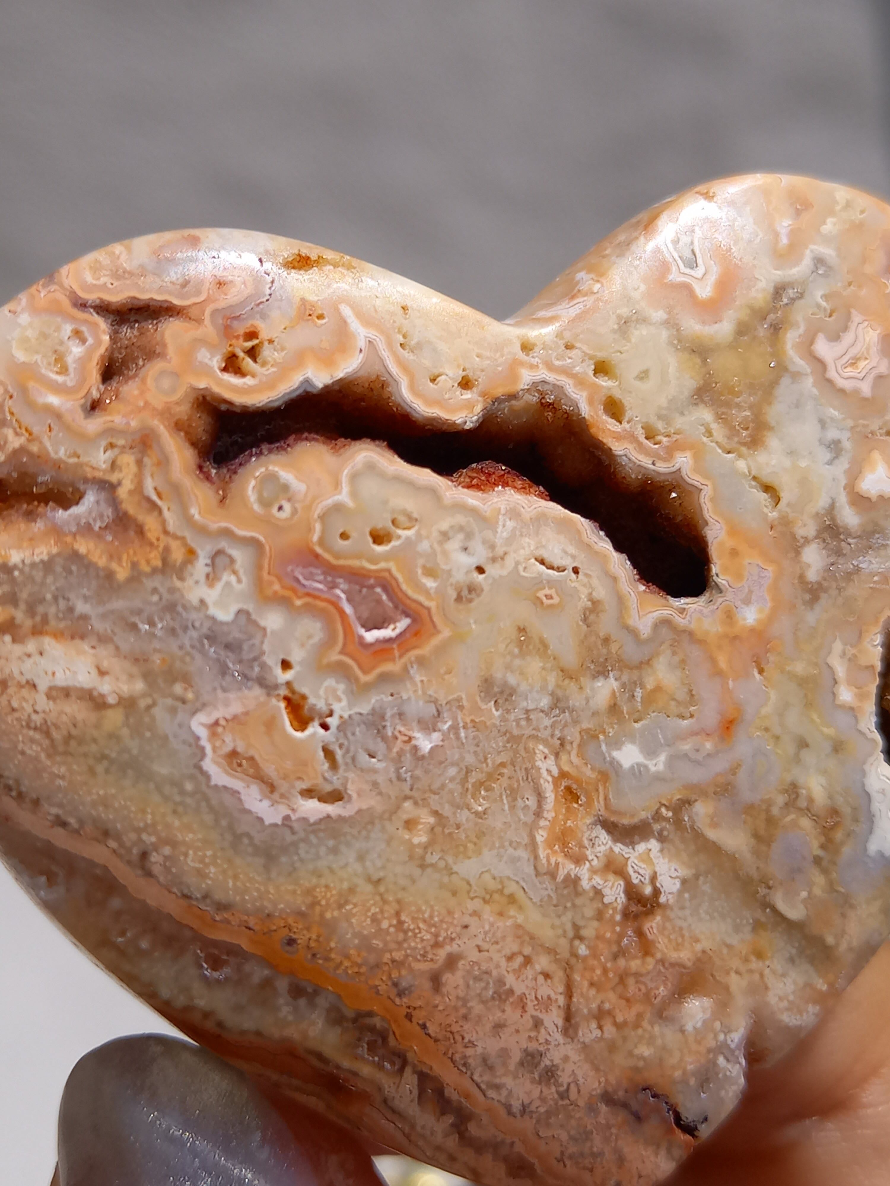 インドネシア産ピンククレイジーレースアゲートハートカボションパームです。
