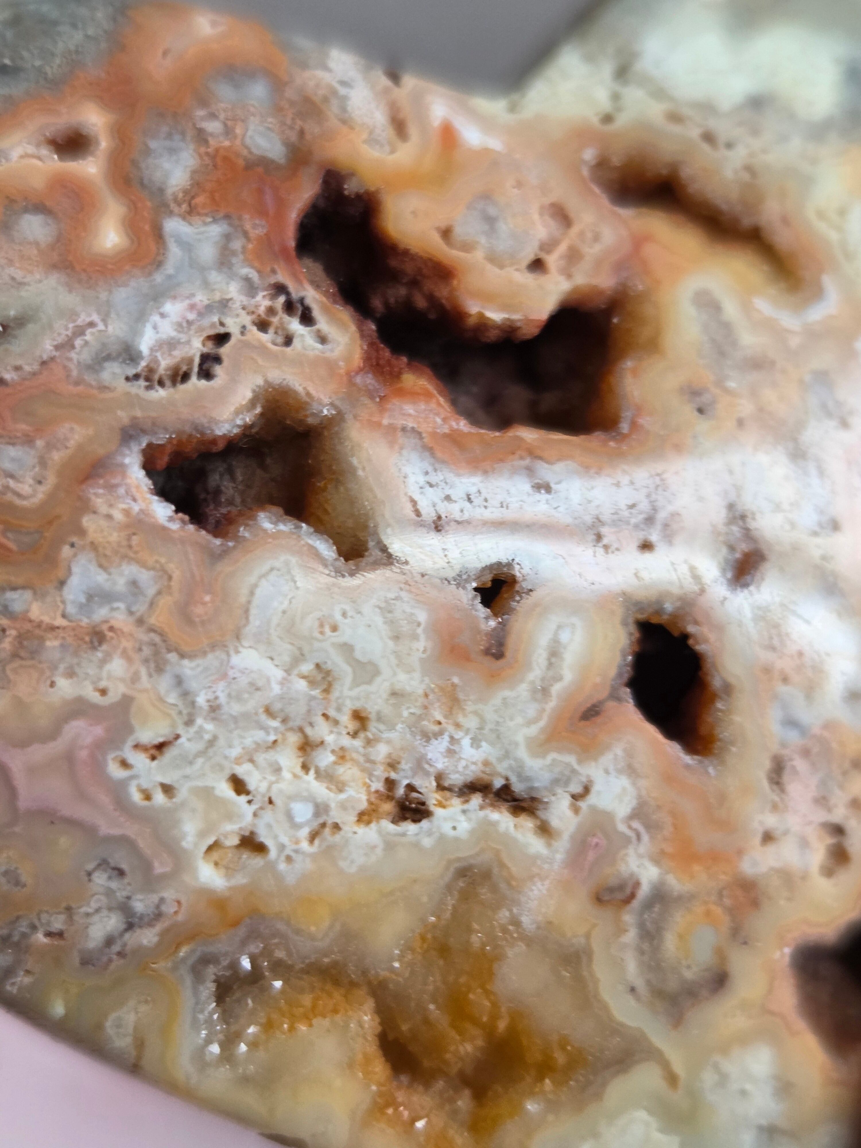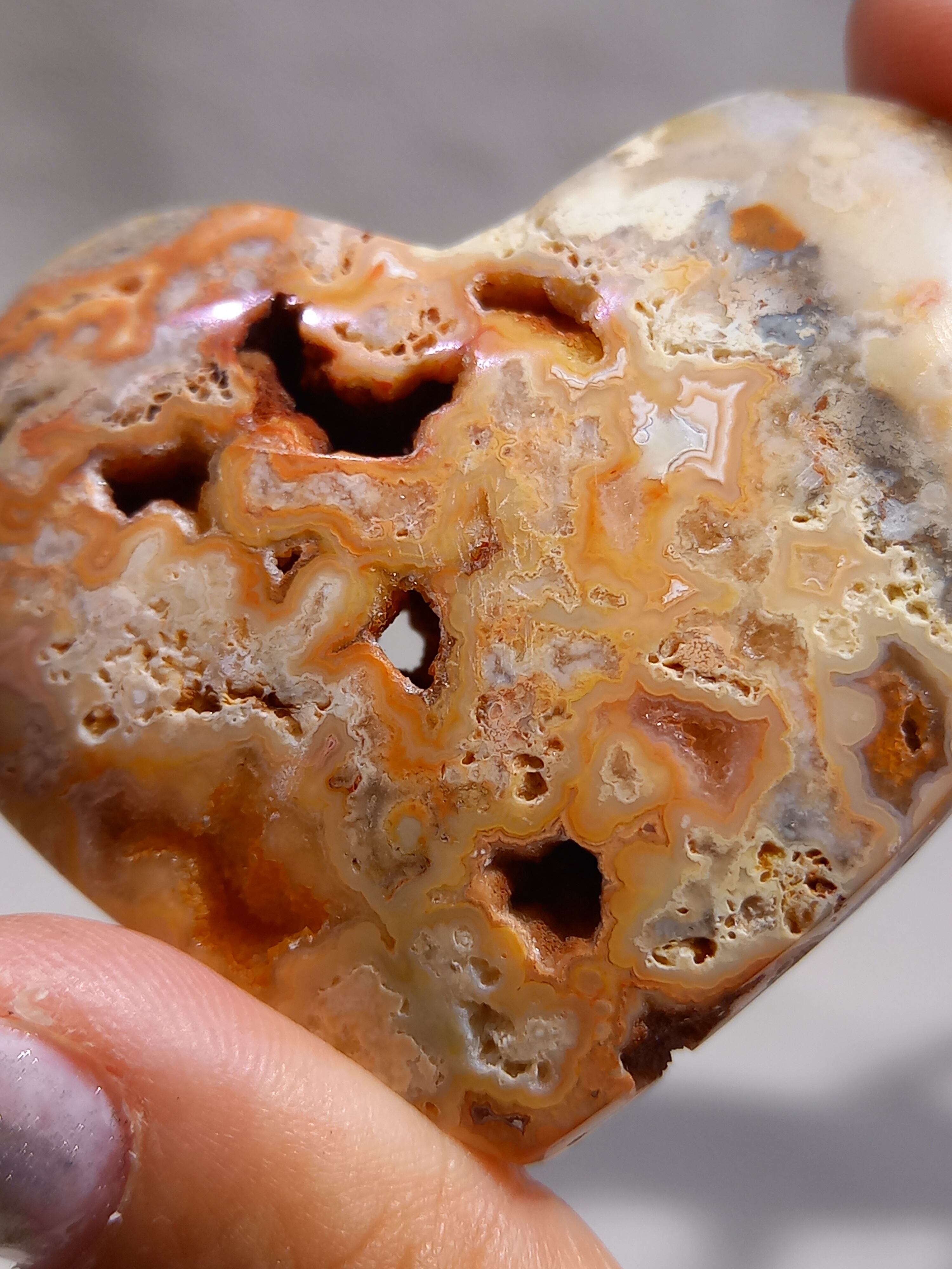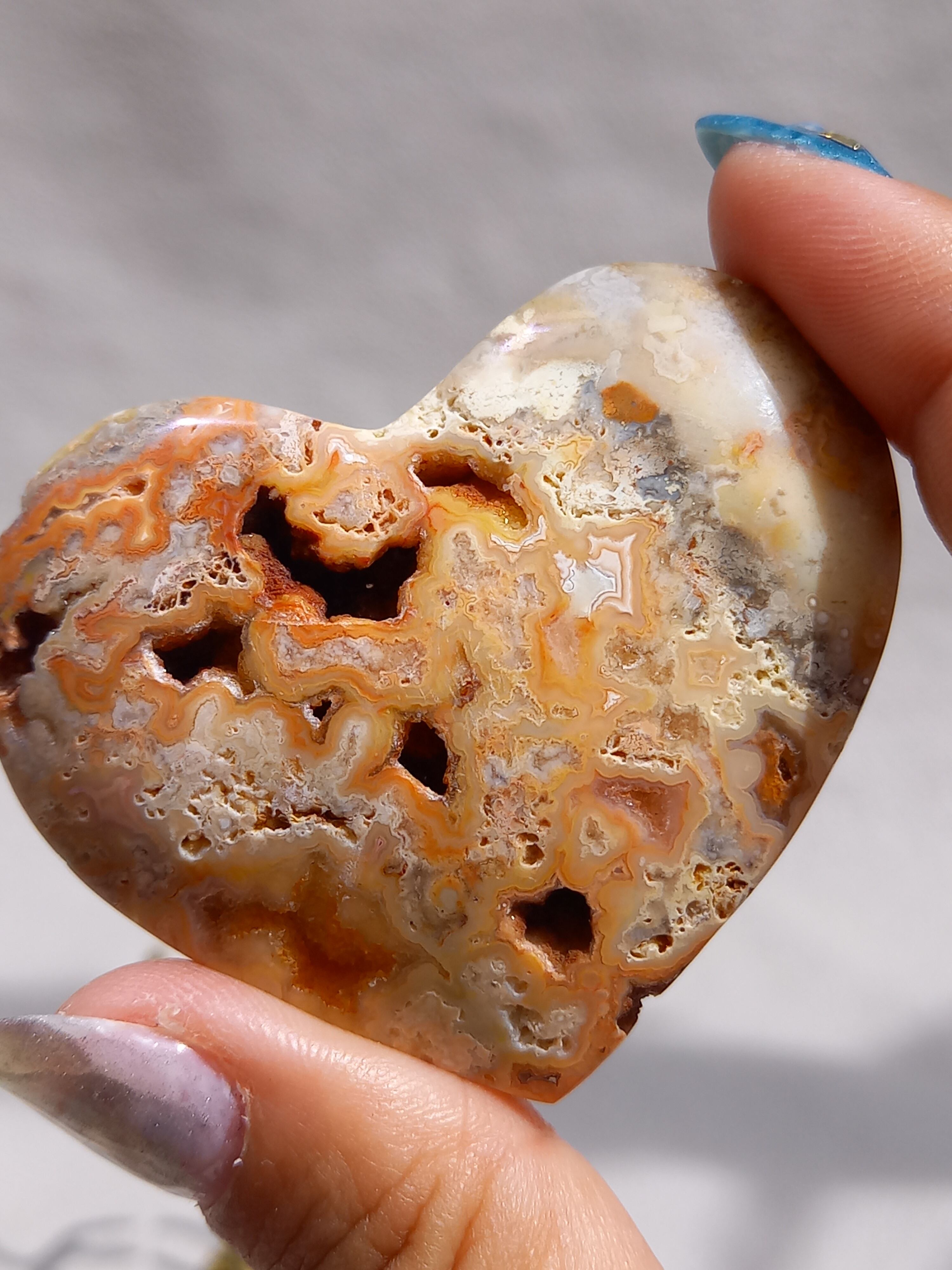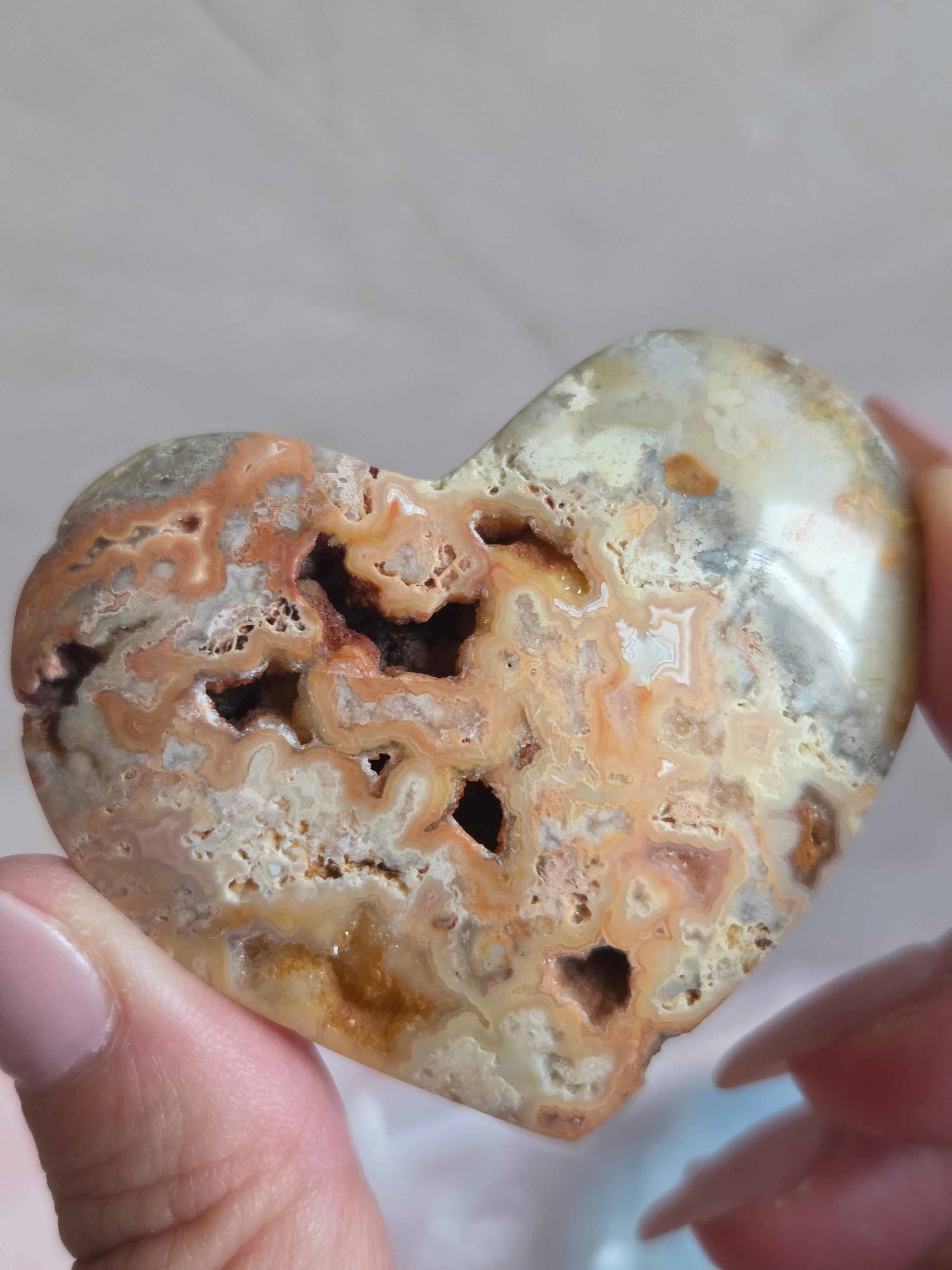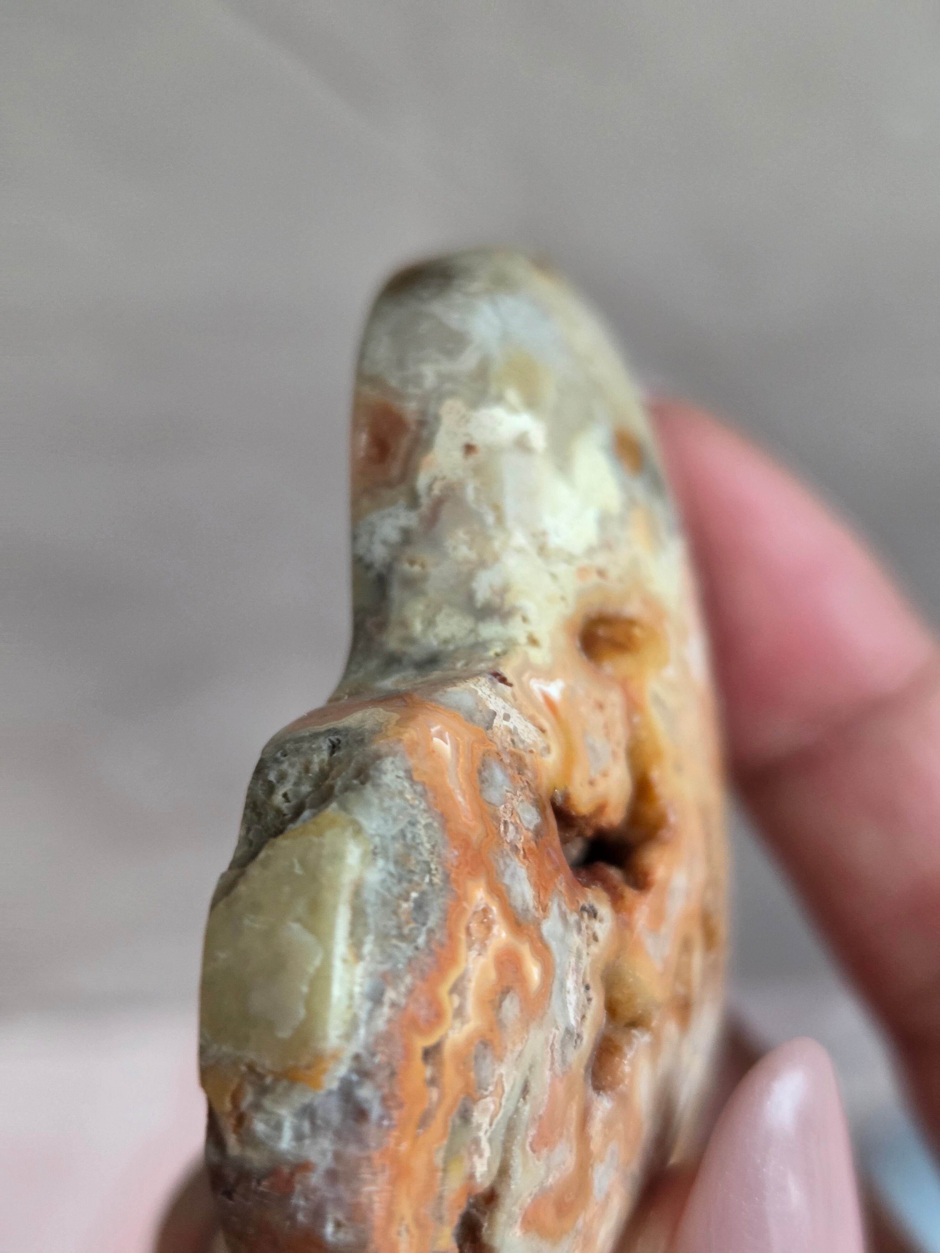 インドネシア産ピンククレイジーレースアゲートハートカボションパームです。