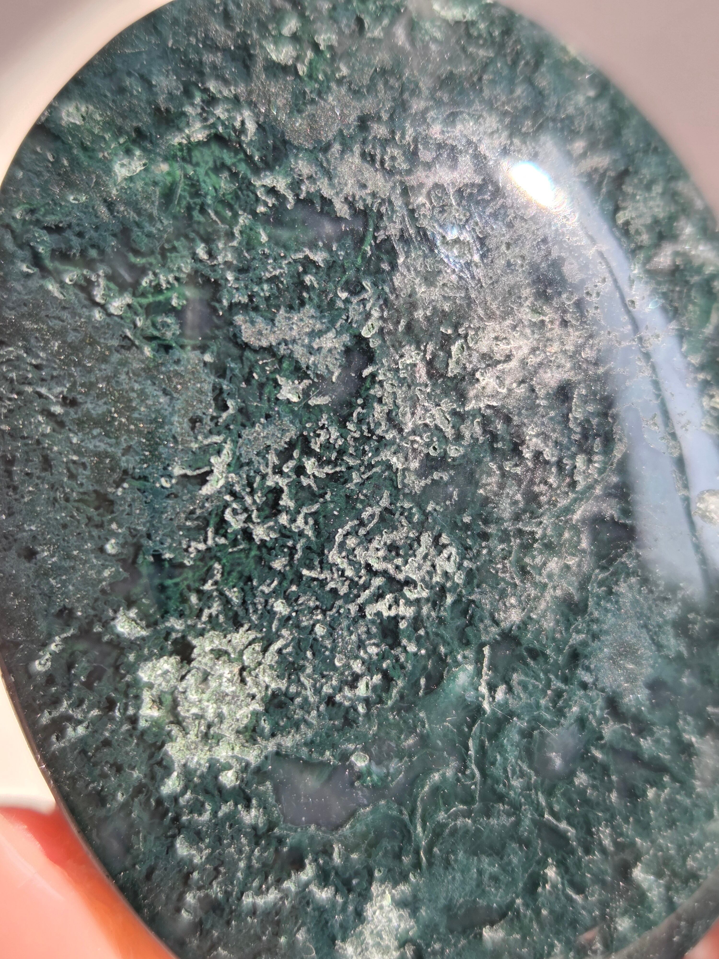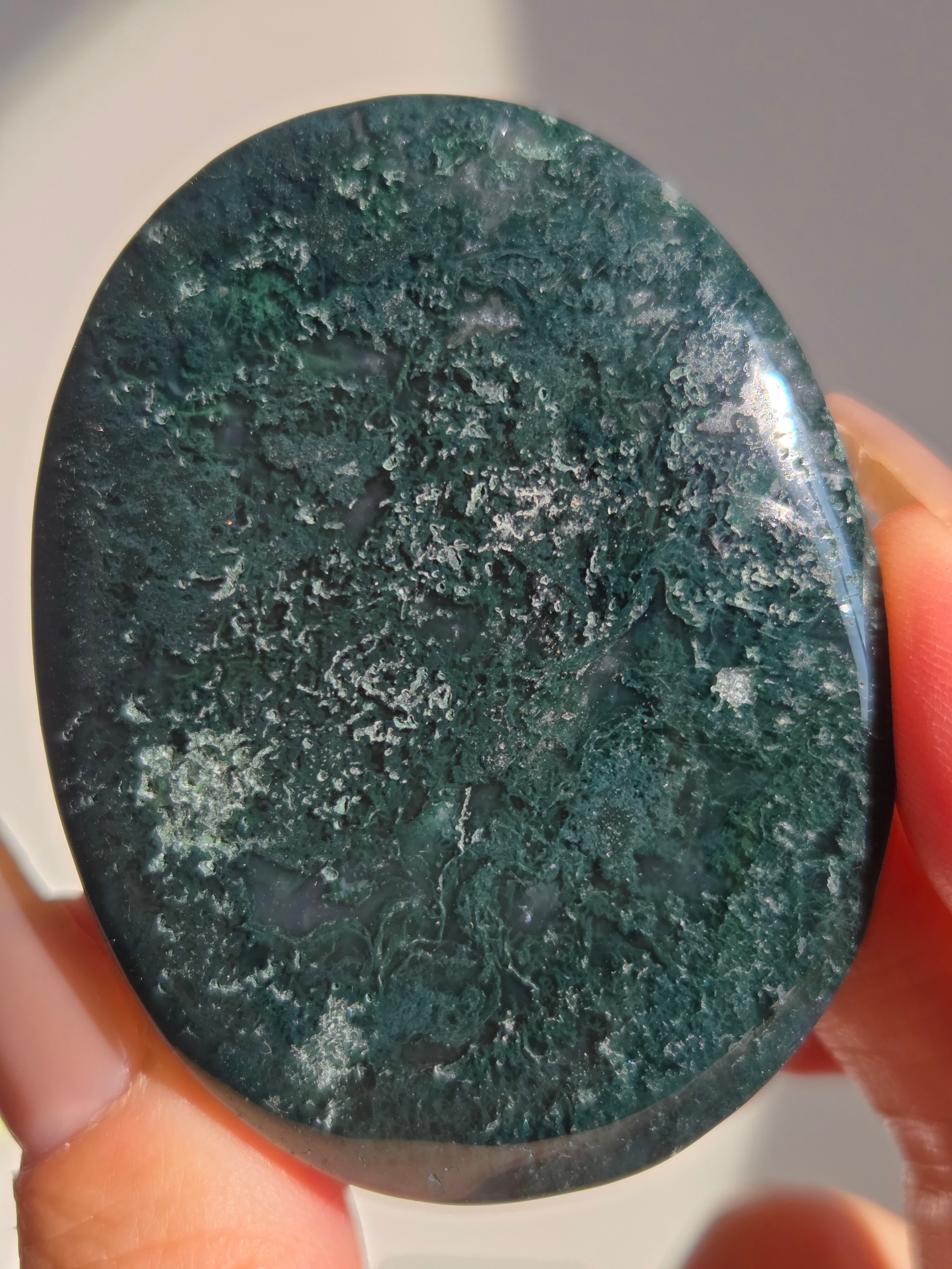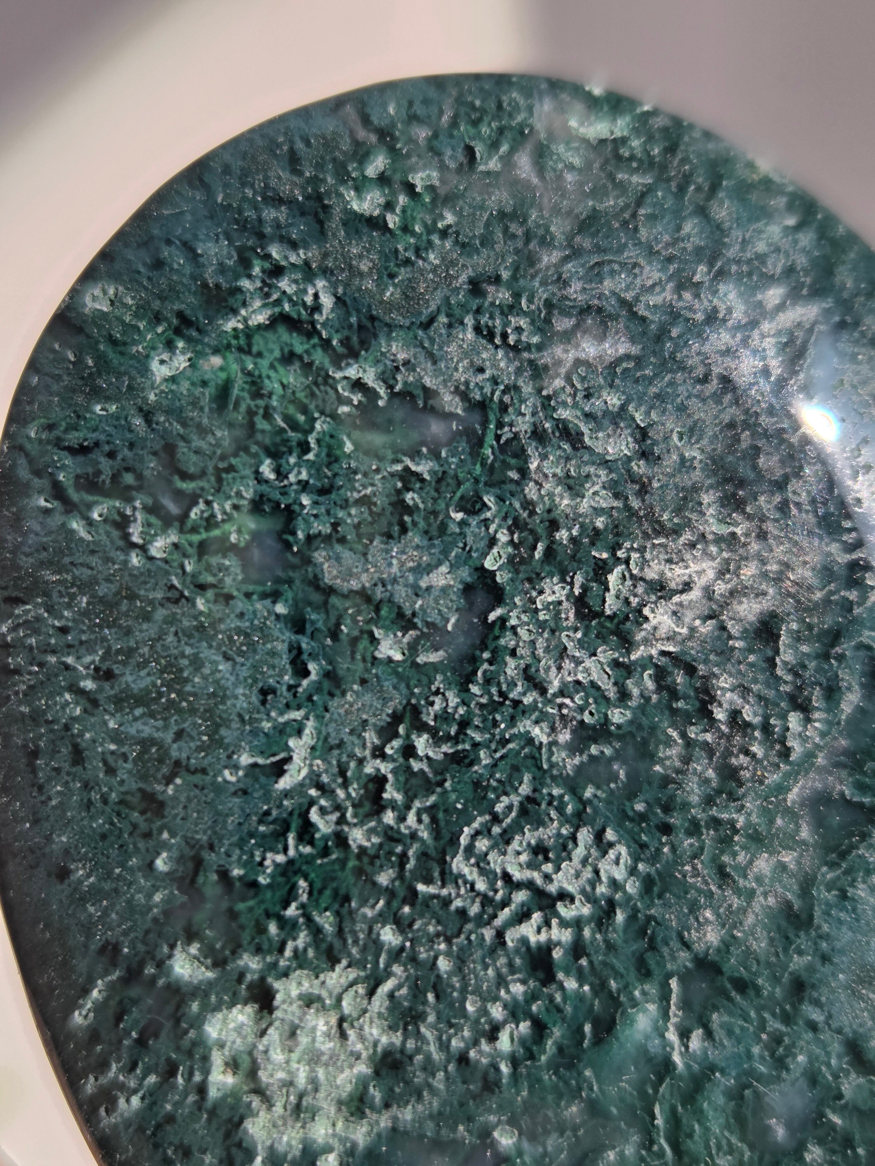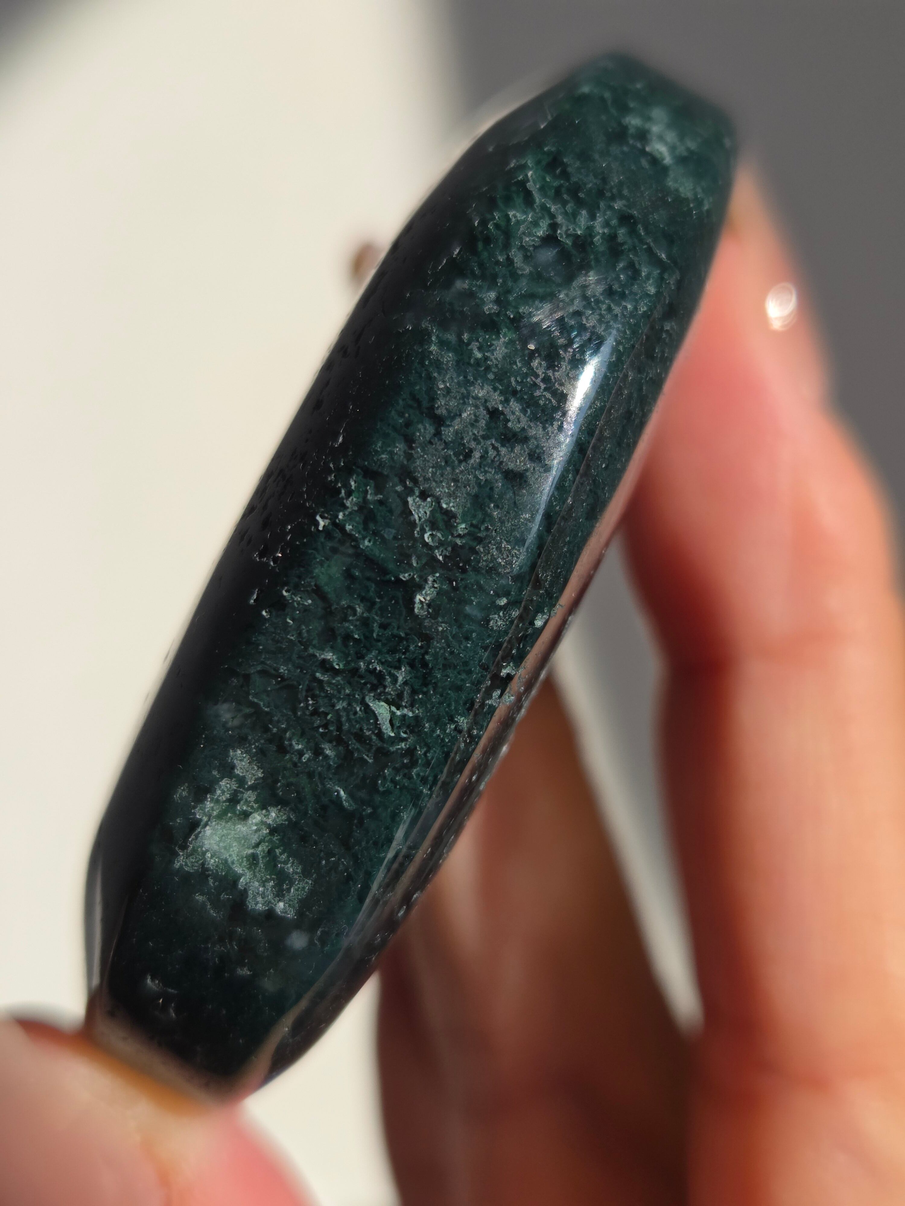 モスアゲートといえば「癒しの石」として広く知られています。 感情の乱れを整え、エゴや執着を解き放ち、気持ちを安定させて楽にしてくれるといわれています。 優しい気持ちや思いやりの心を呼び起こし、素直さを引き出してくれるので、周囲とのコミュニケーションを円滑にして、穏やかな関係を築けるようサポートしてくれるといわれています。