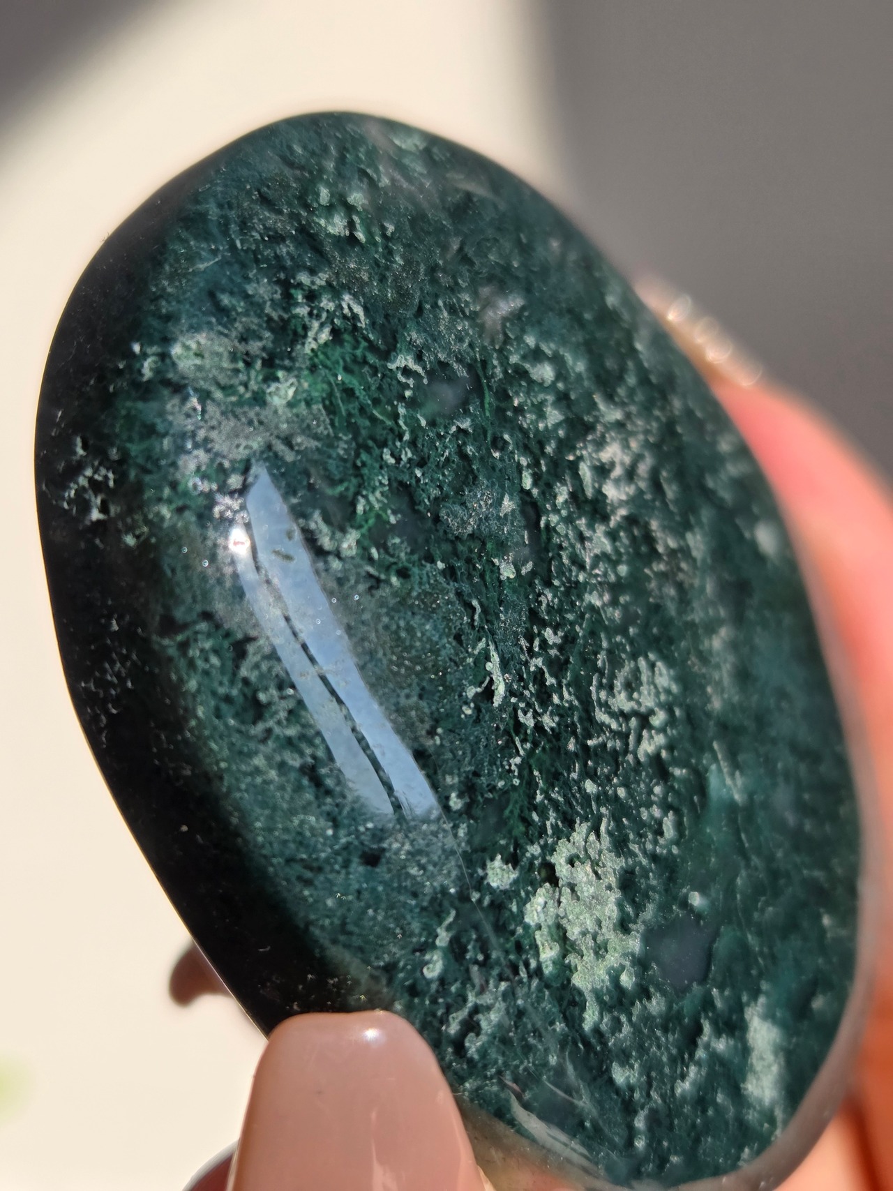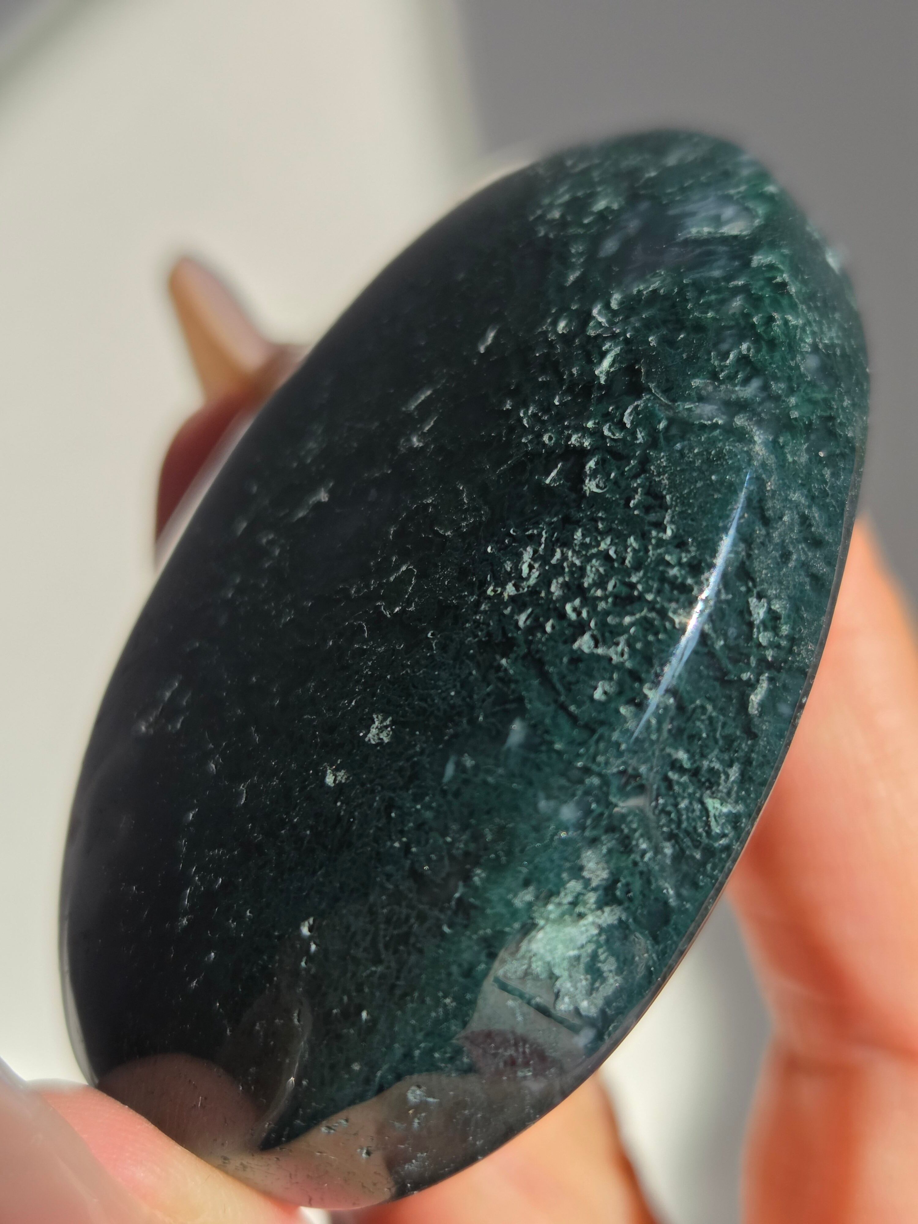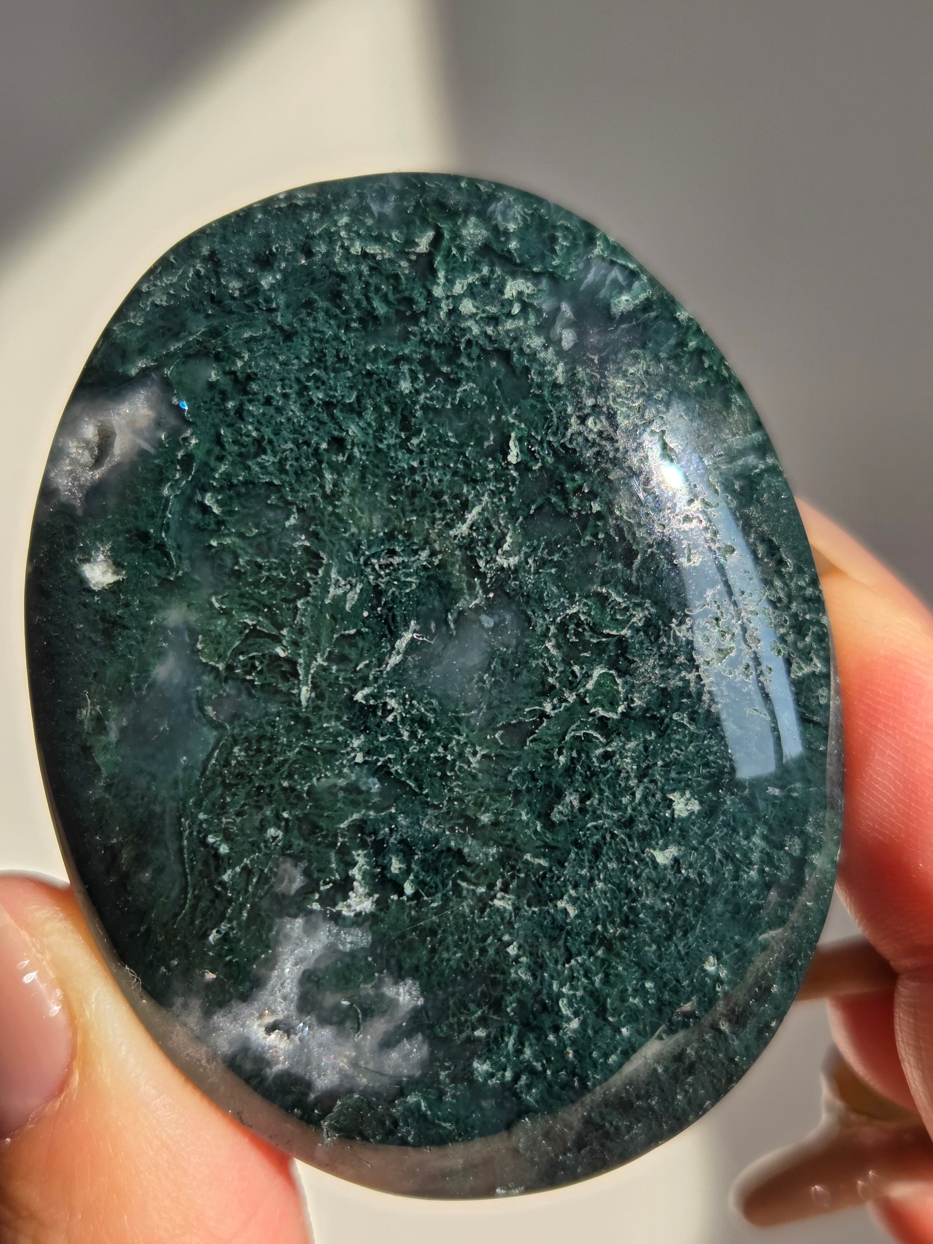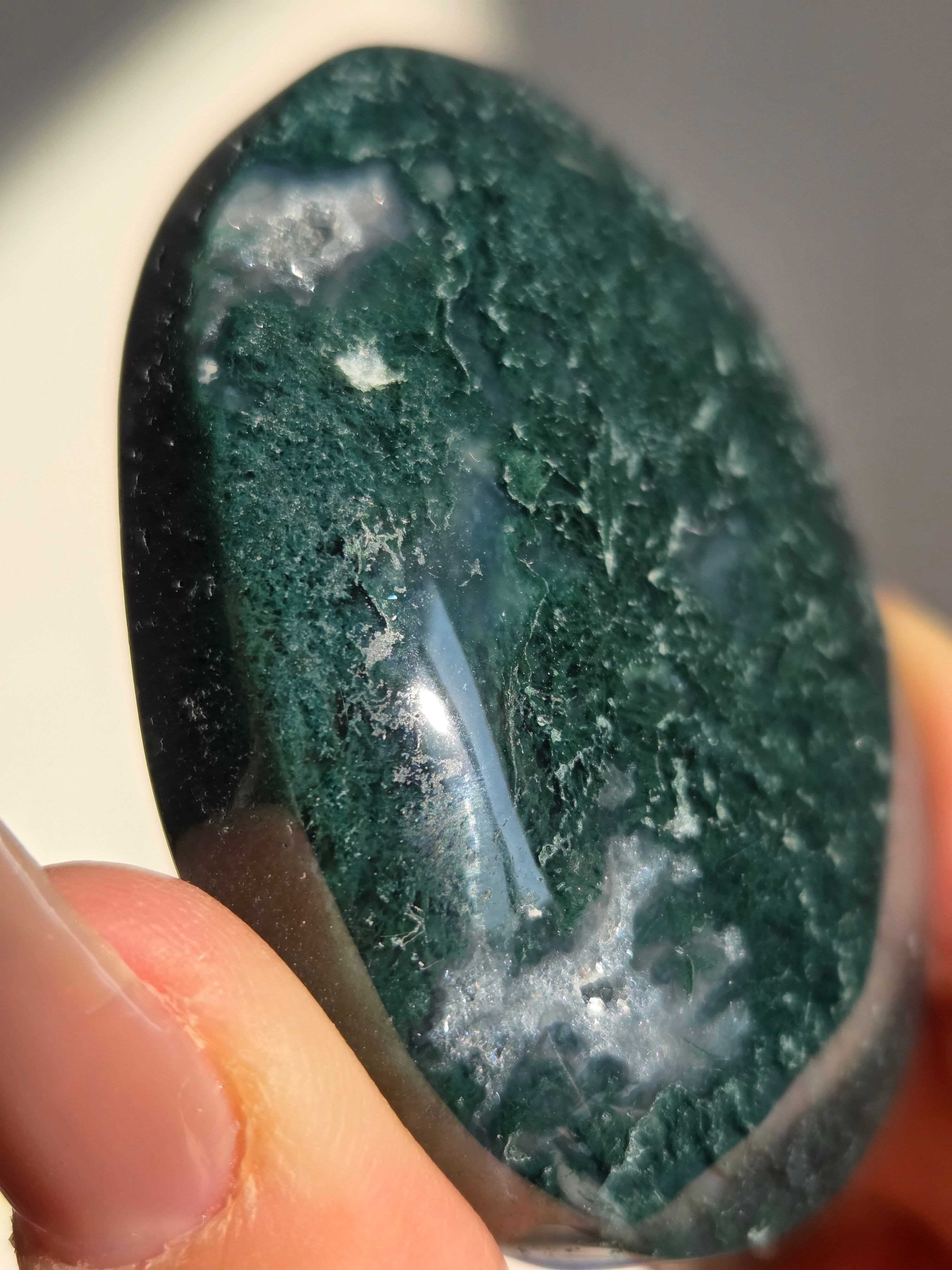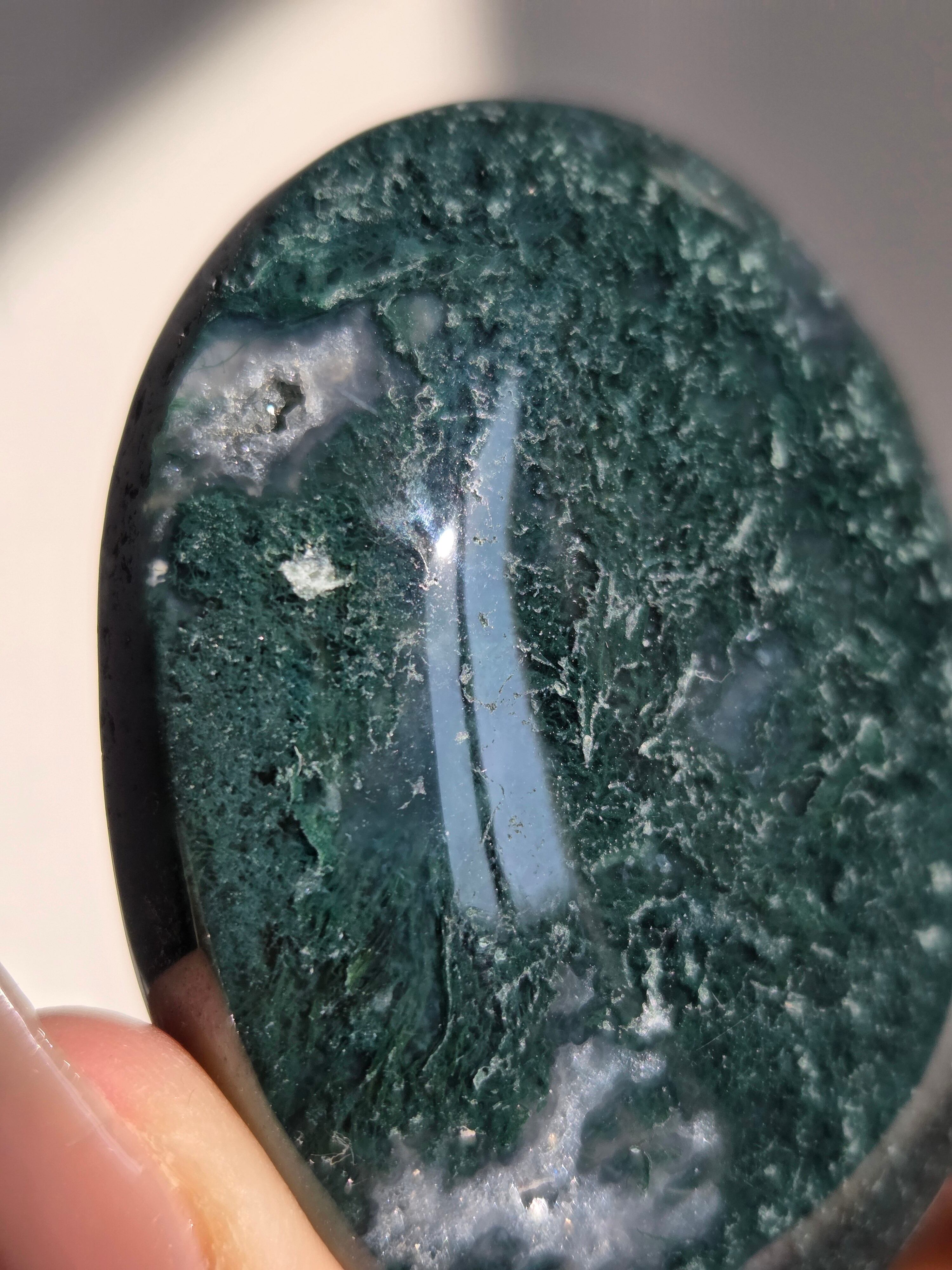 モスアゲートといえば「癒しの石」として広く知られています。 感情の乱れを整え、エゴや執着を解き放ち、気持ちを安定させて楽にしてくれるといわれています。 優しい気持ちや思いやりの心を呼び起こし、素直さを引き出してくれるので、周囲とのコミュニケーションを円滑にして、穏やかな関係を築けるようサポートしてくれるといわれています。