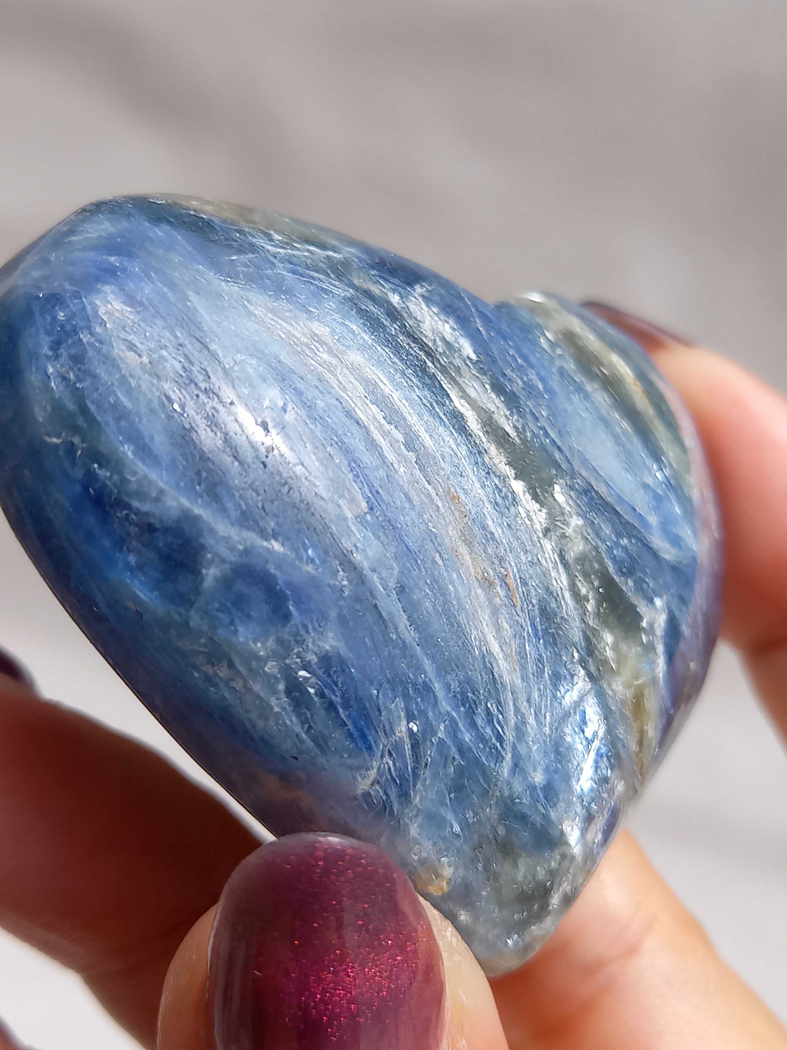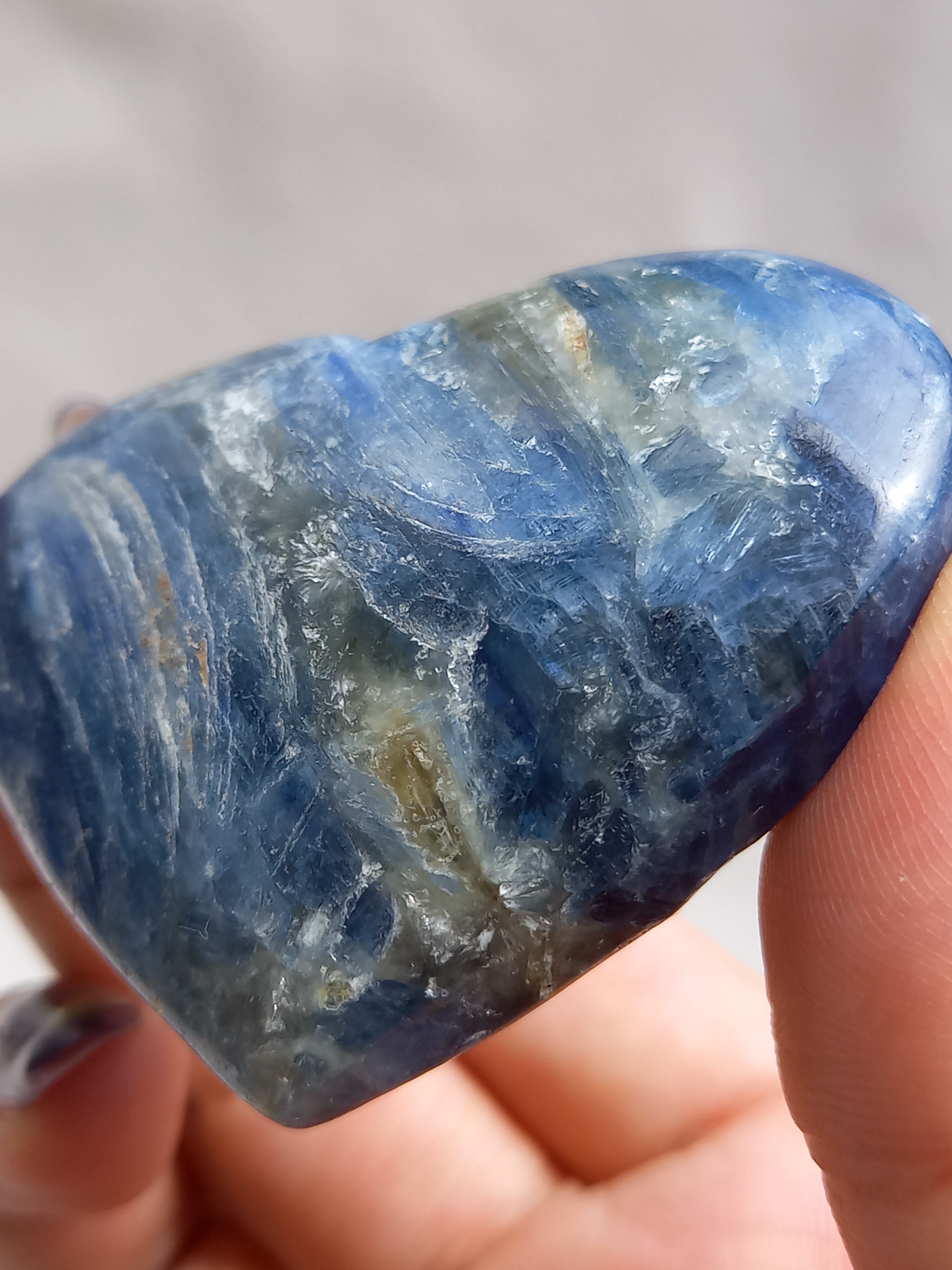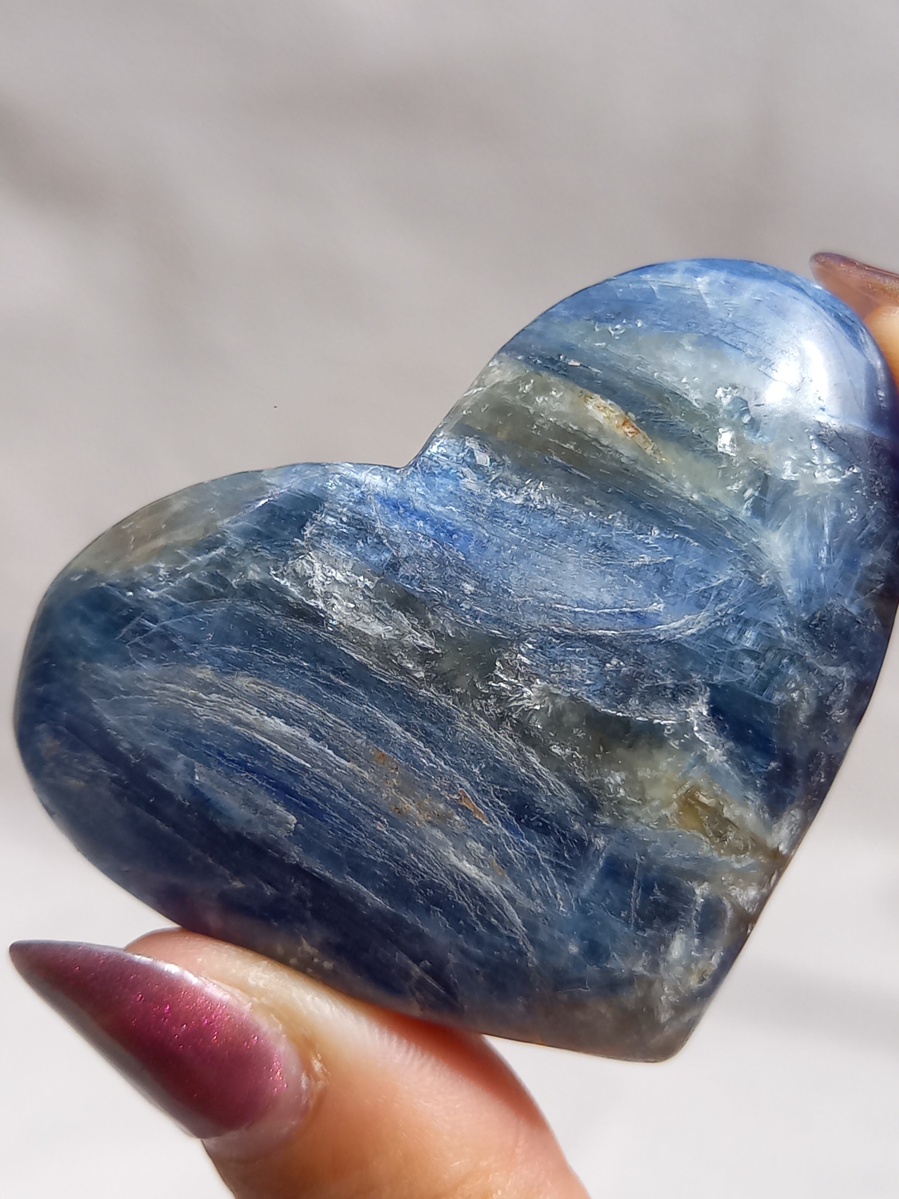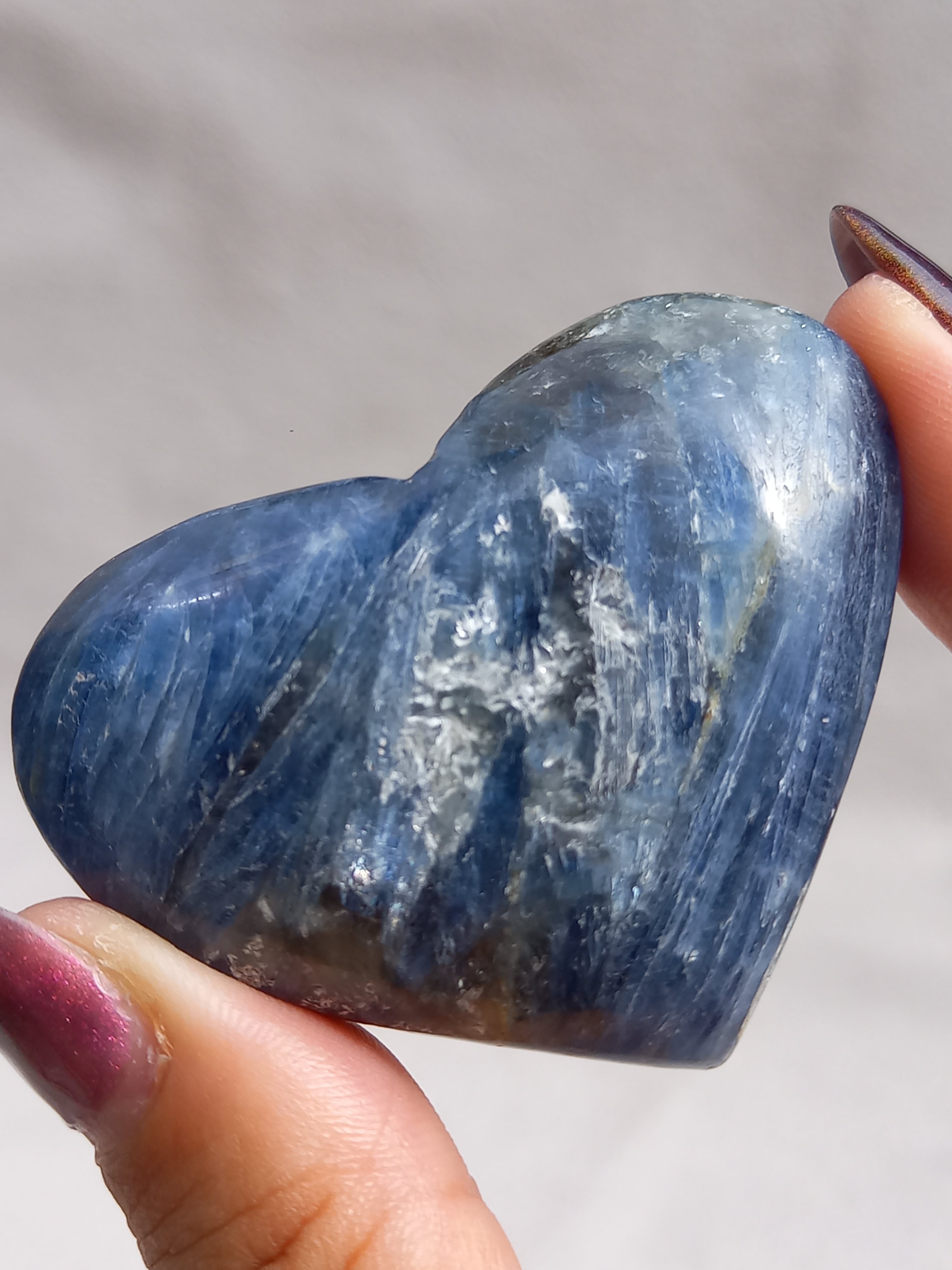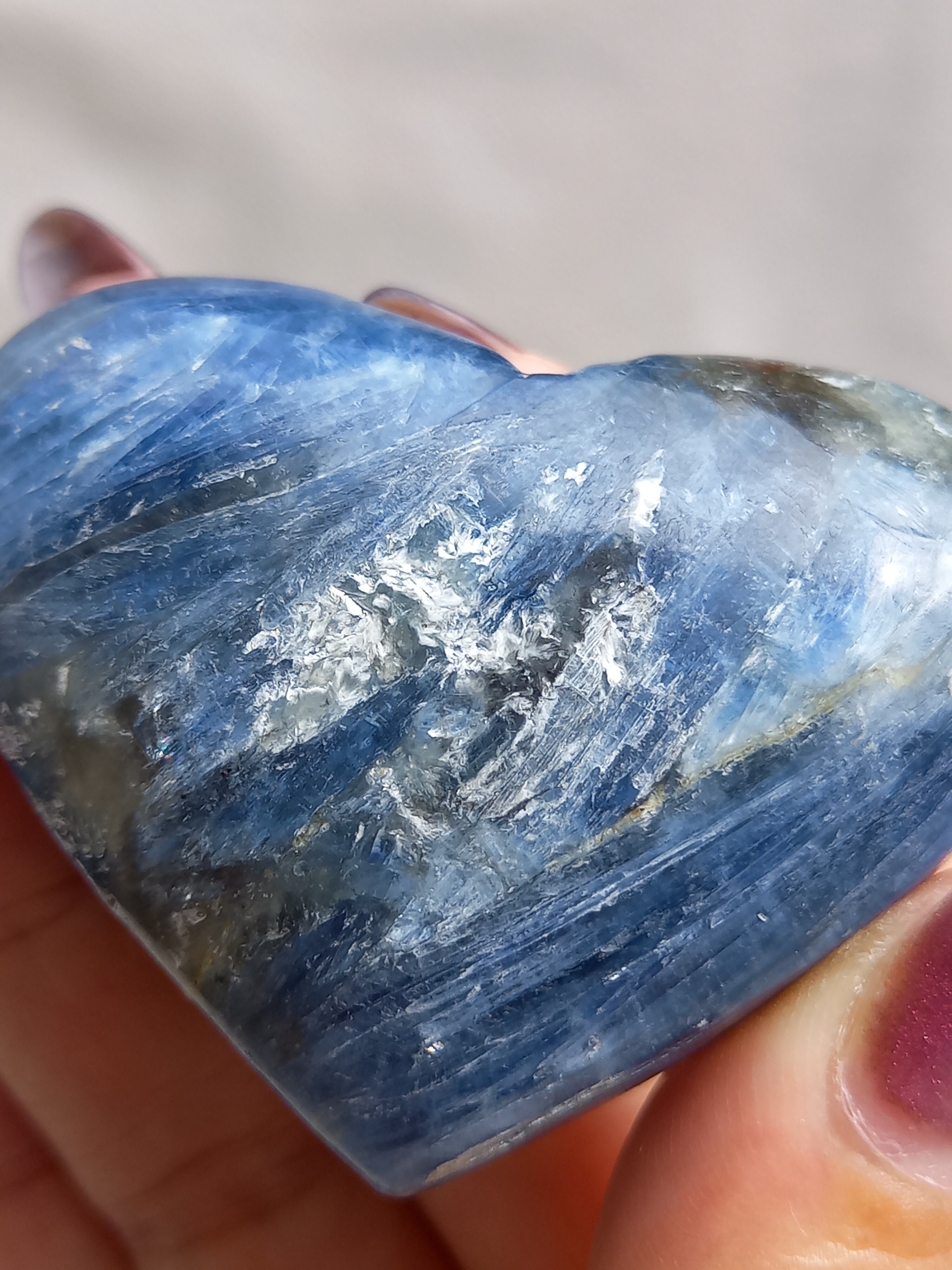 真っ青なブルーが美しいカイヤナイト。シリカと共生しており、カイヤナイトの結晶もしっかり見られる可愛いハートパームです。