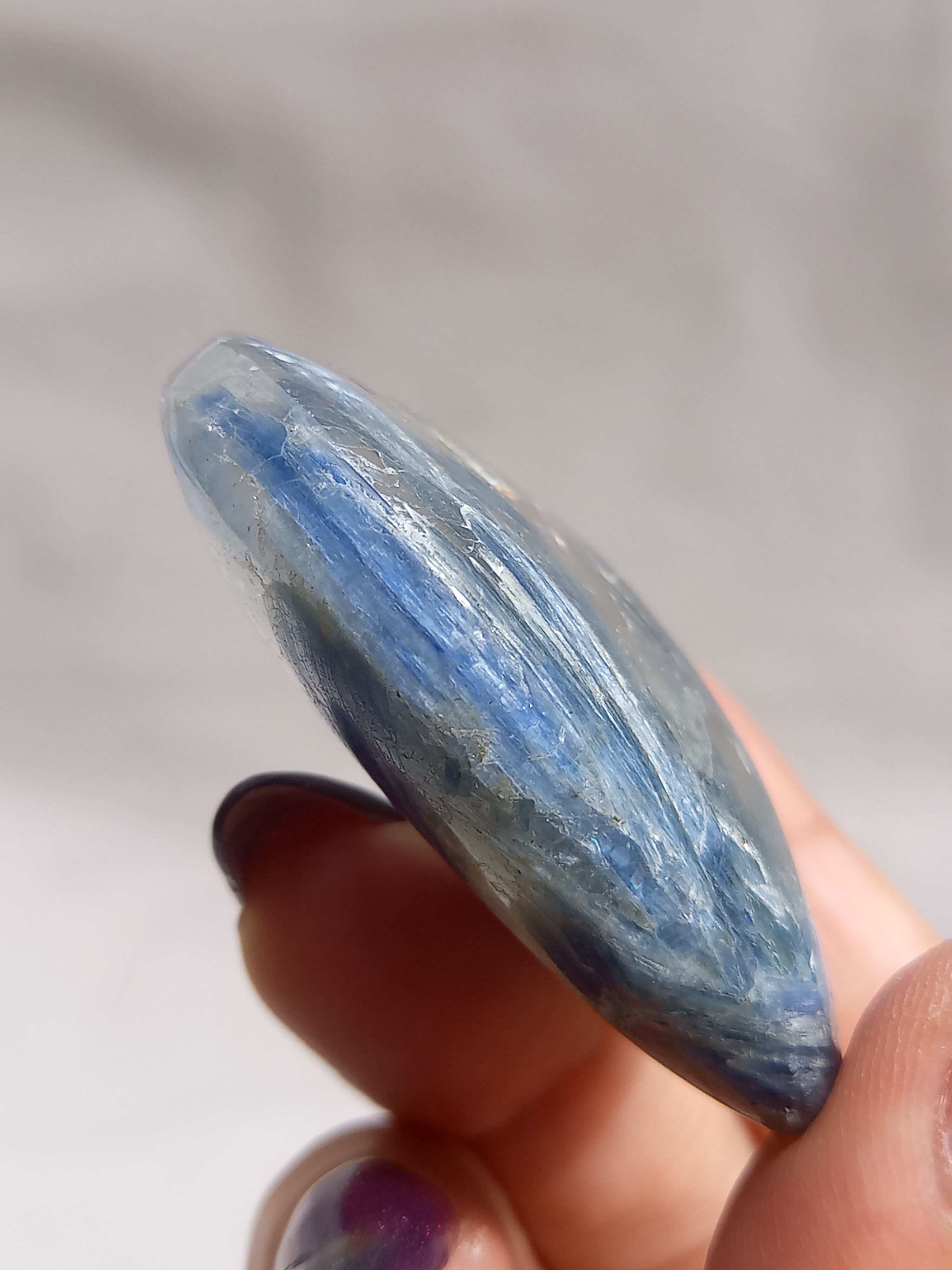 カイヤナイトは、精神的なクリアリングやエネルギーの浄化を促進する力を持っています。 その青い色は、心を穏やかにし、平和と調和をもたらすとされています。 また、直観力を高め、深い知恵と洞察力をもたらすと信じられています。