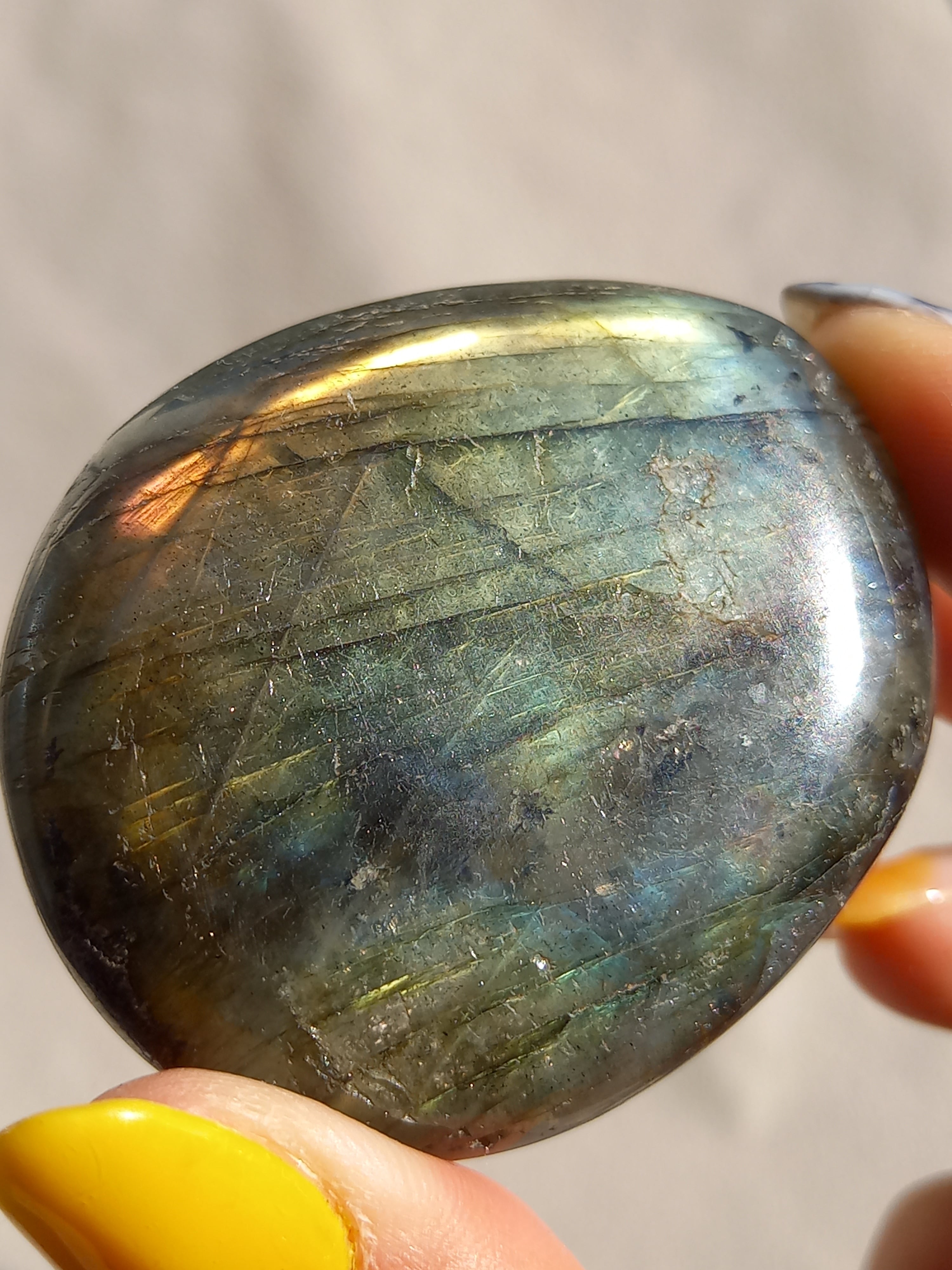 ラブラドライトは、見る角度、石によって様々なカラーのシラーを魅せてくれるストーンですり