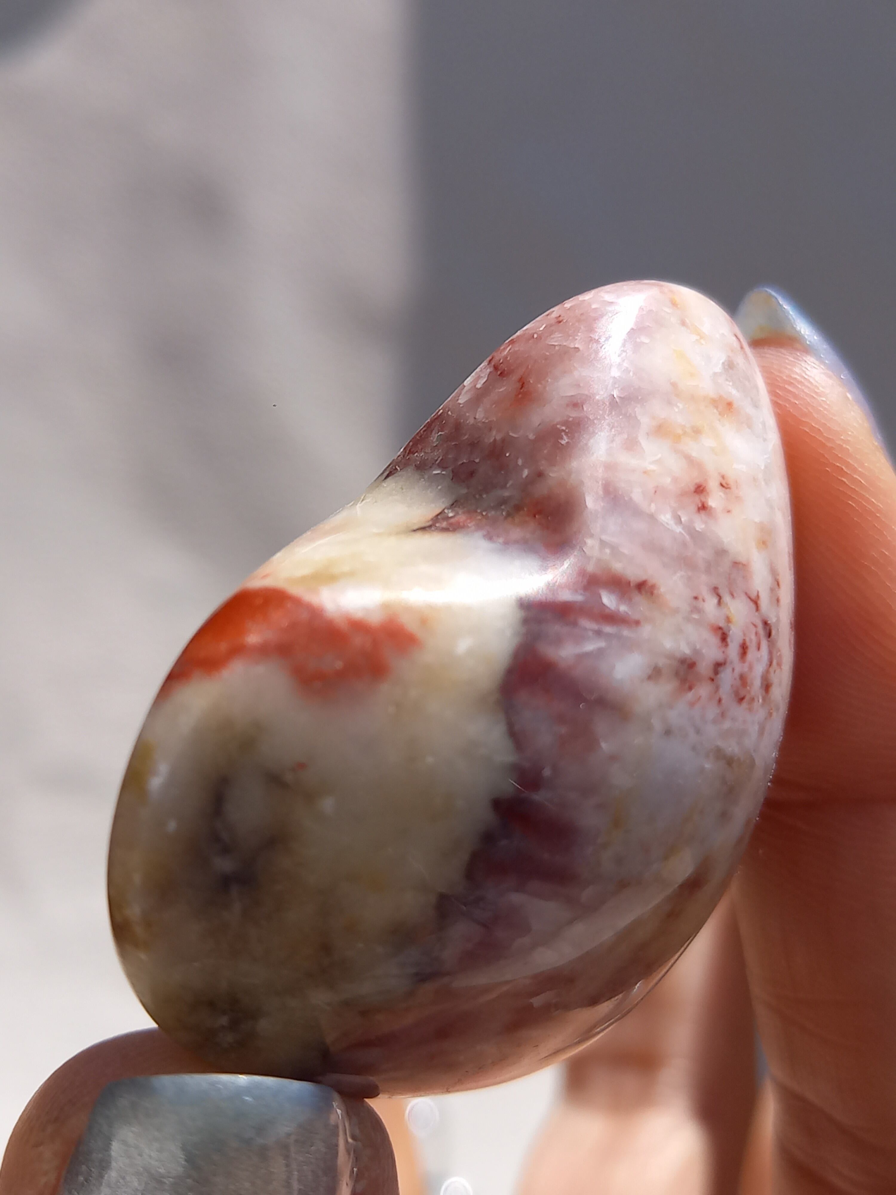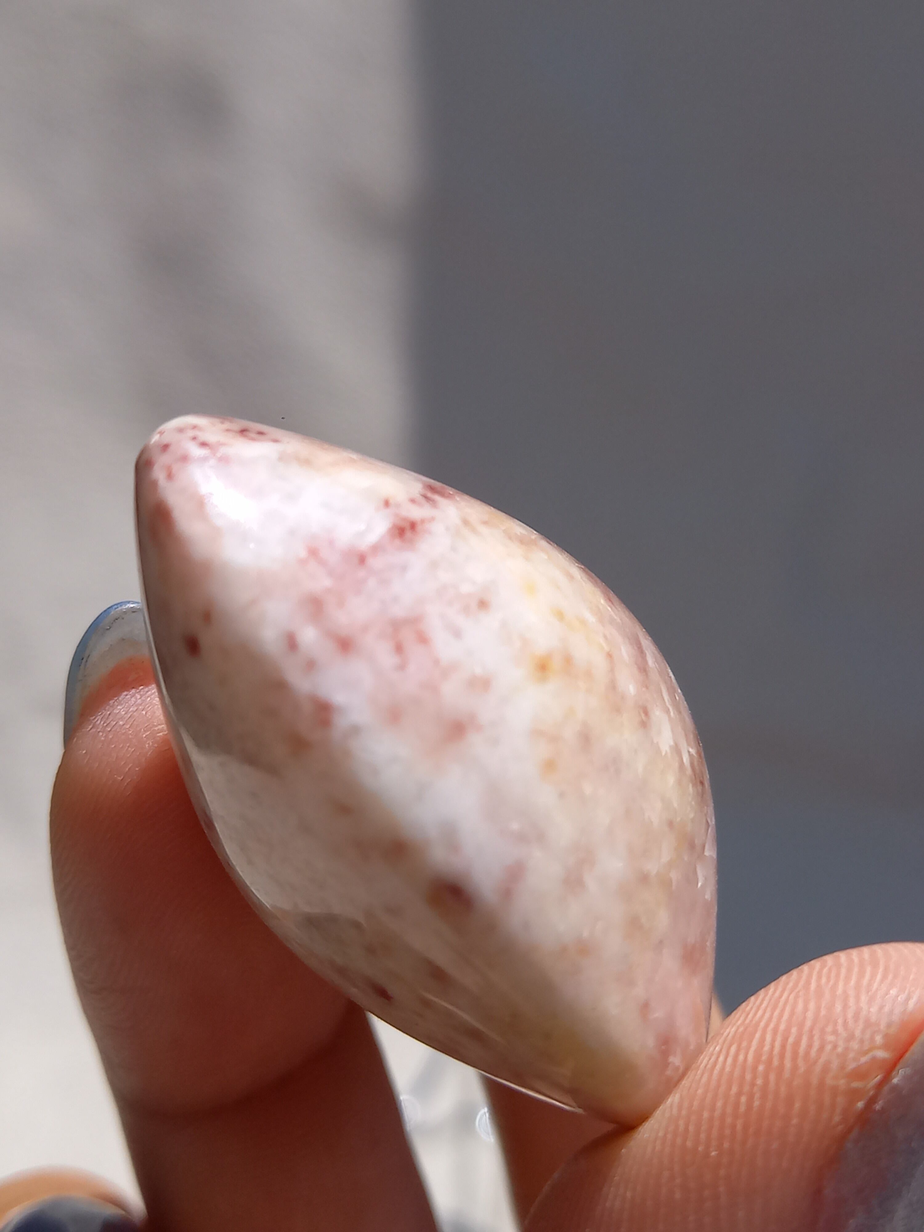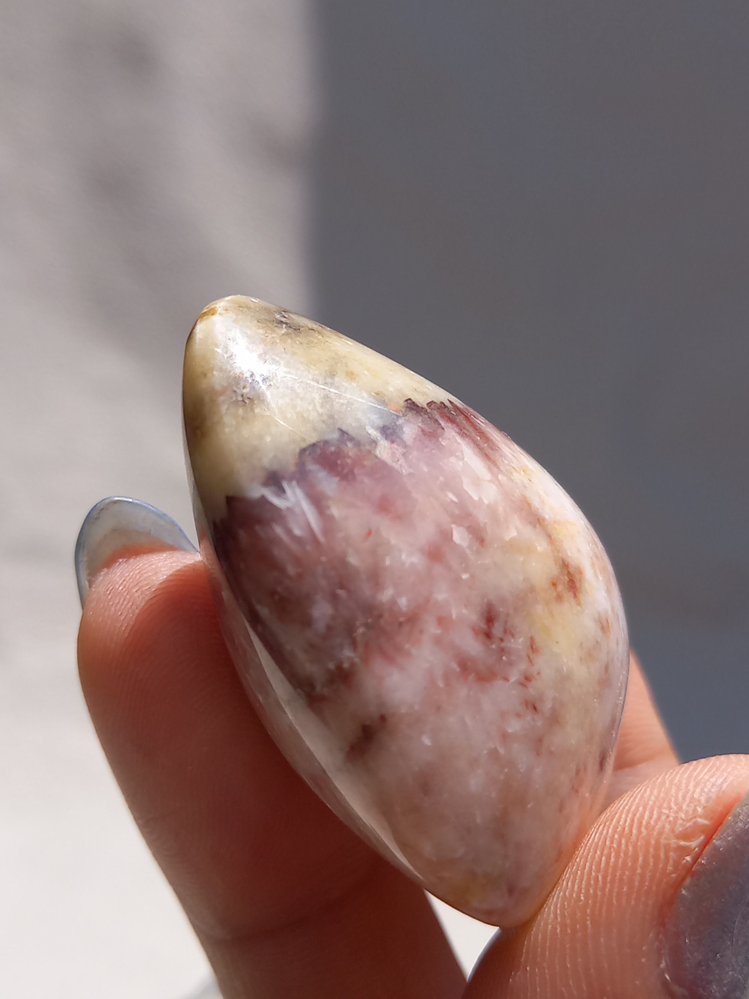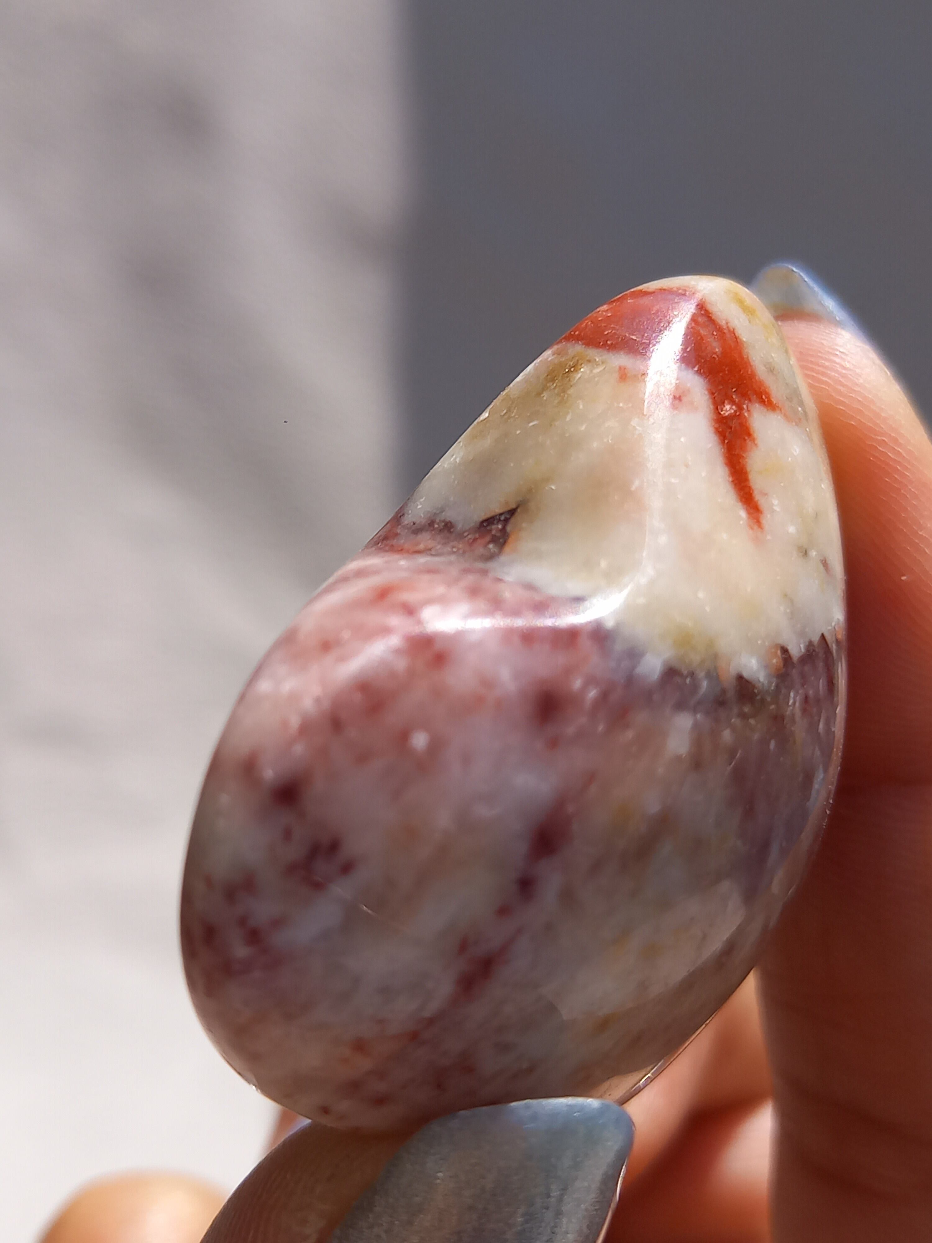 ポークストーンとは、カルサイトの一種で、赤色の部分は酸化鉄の影響で色づいており、アラゴナイト化していると言われてます。