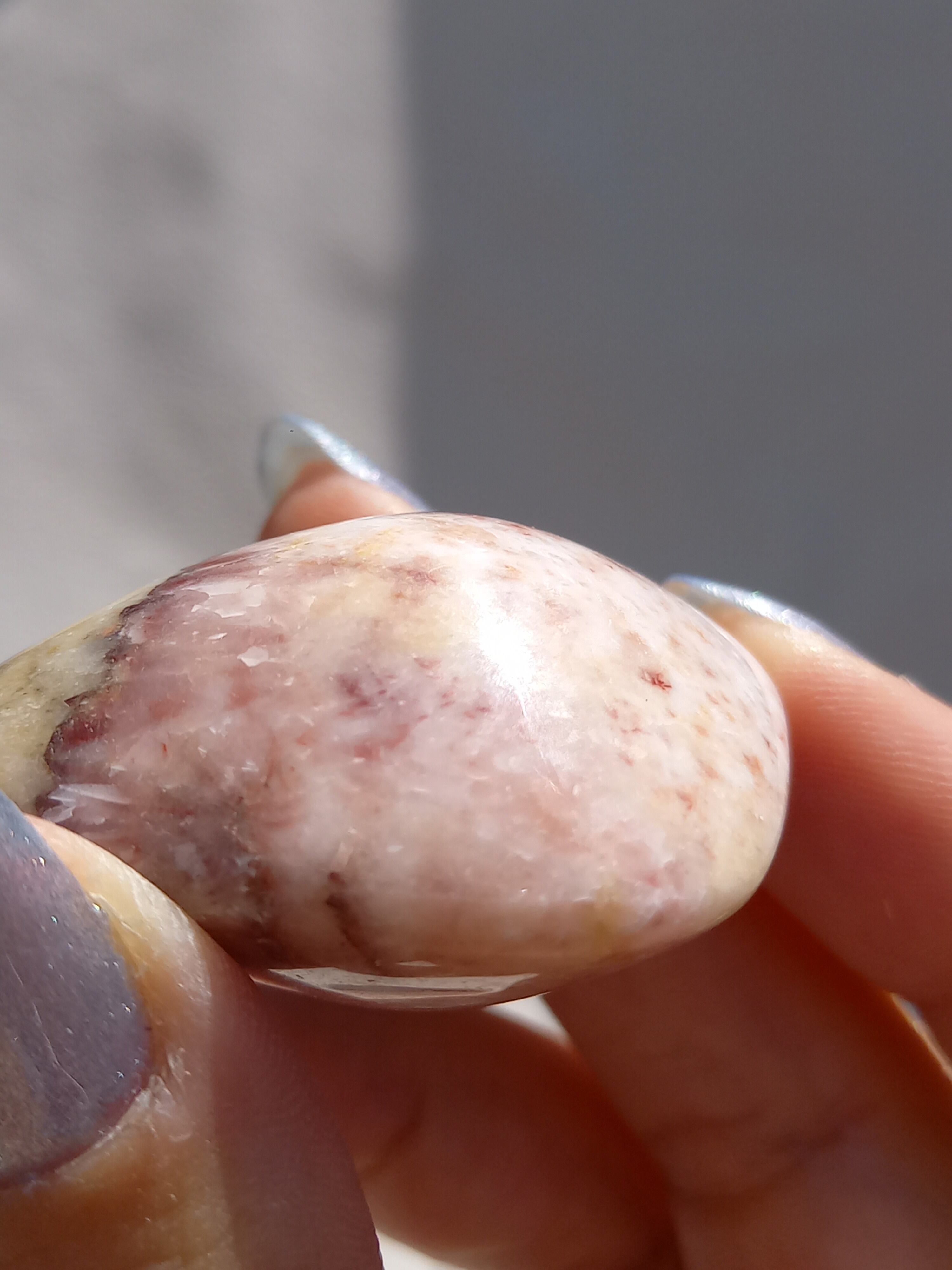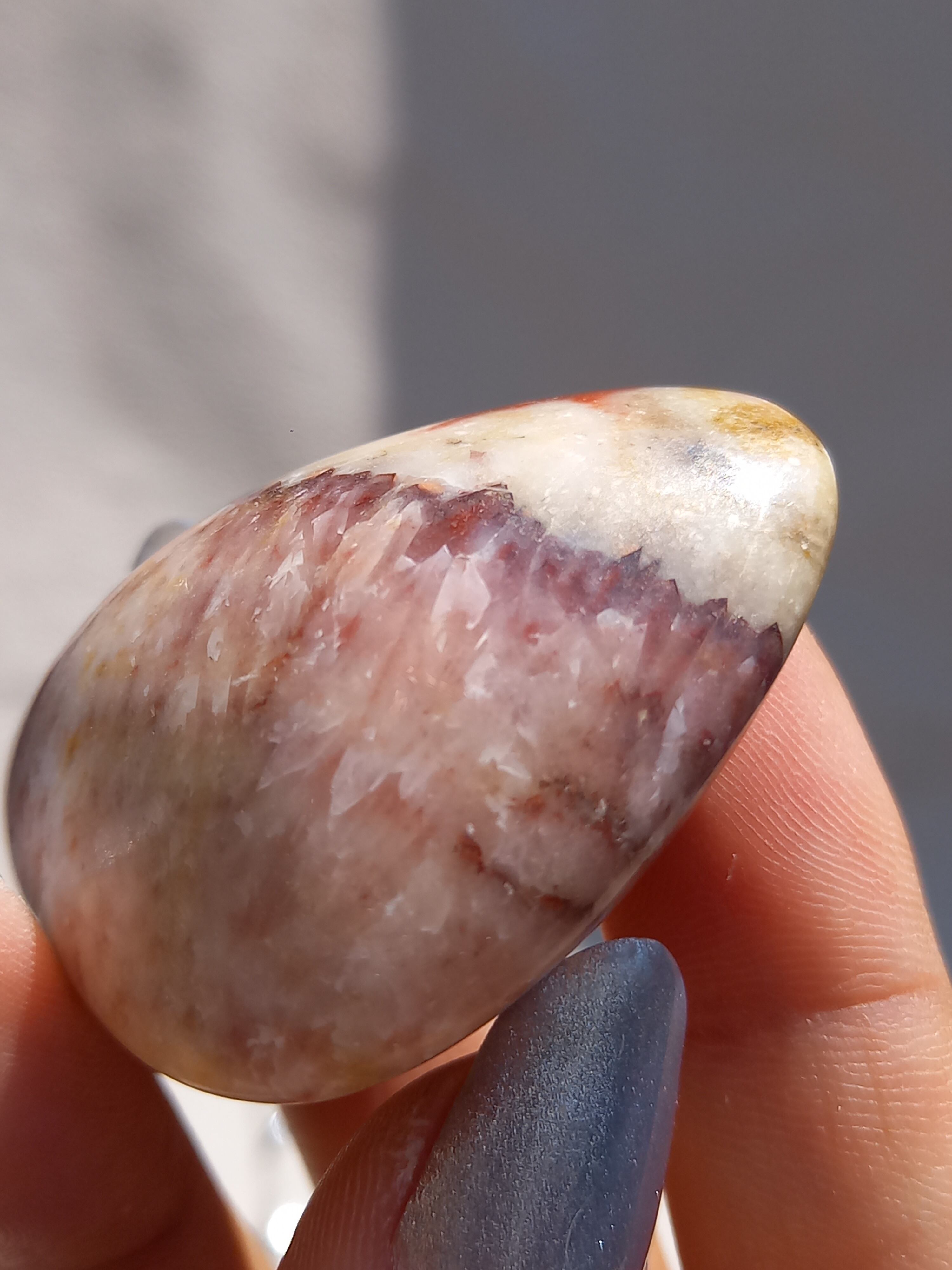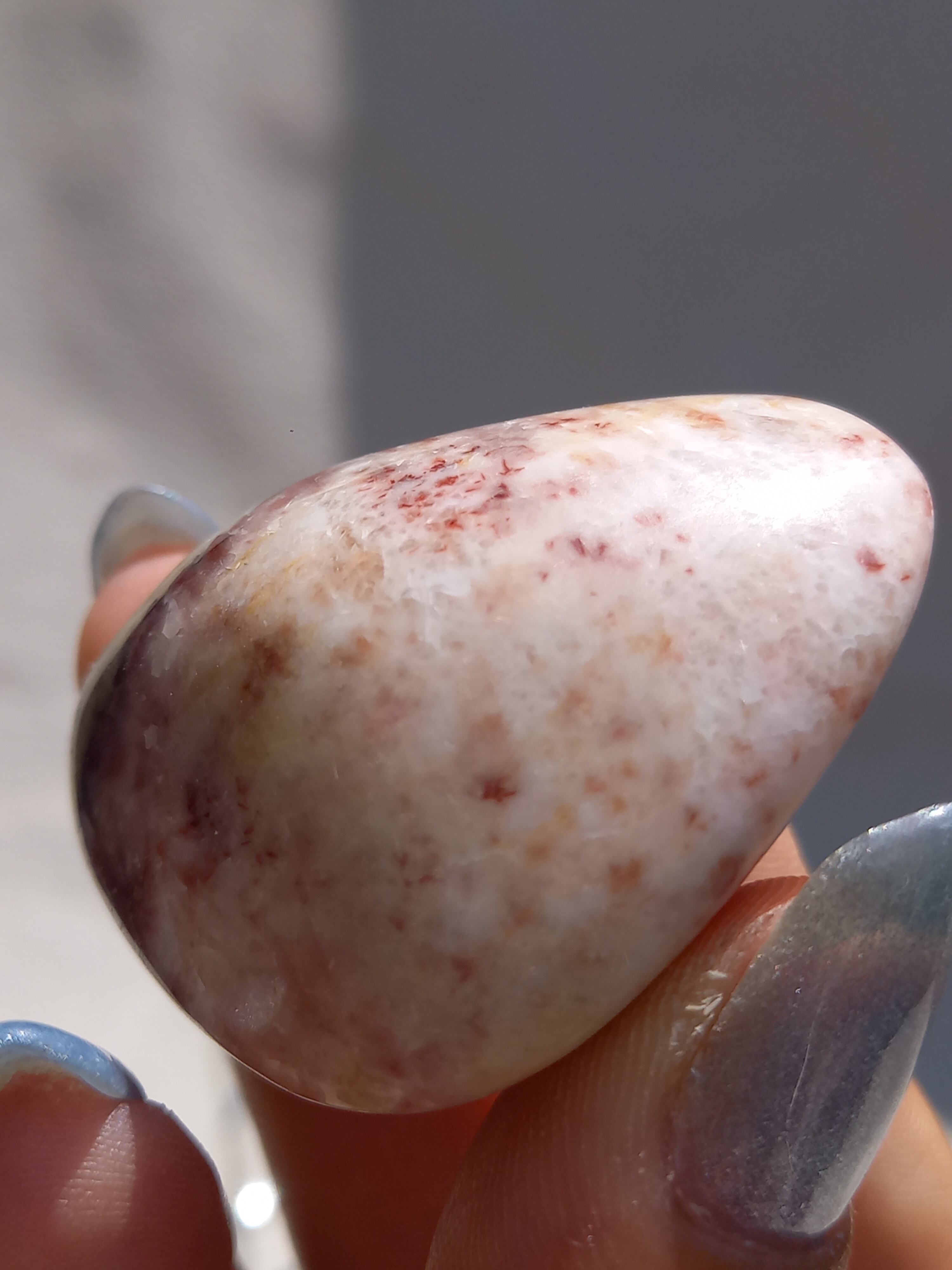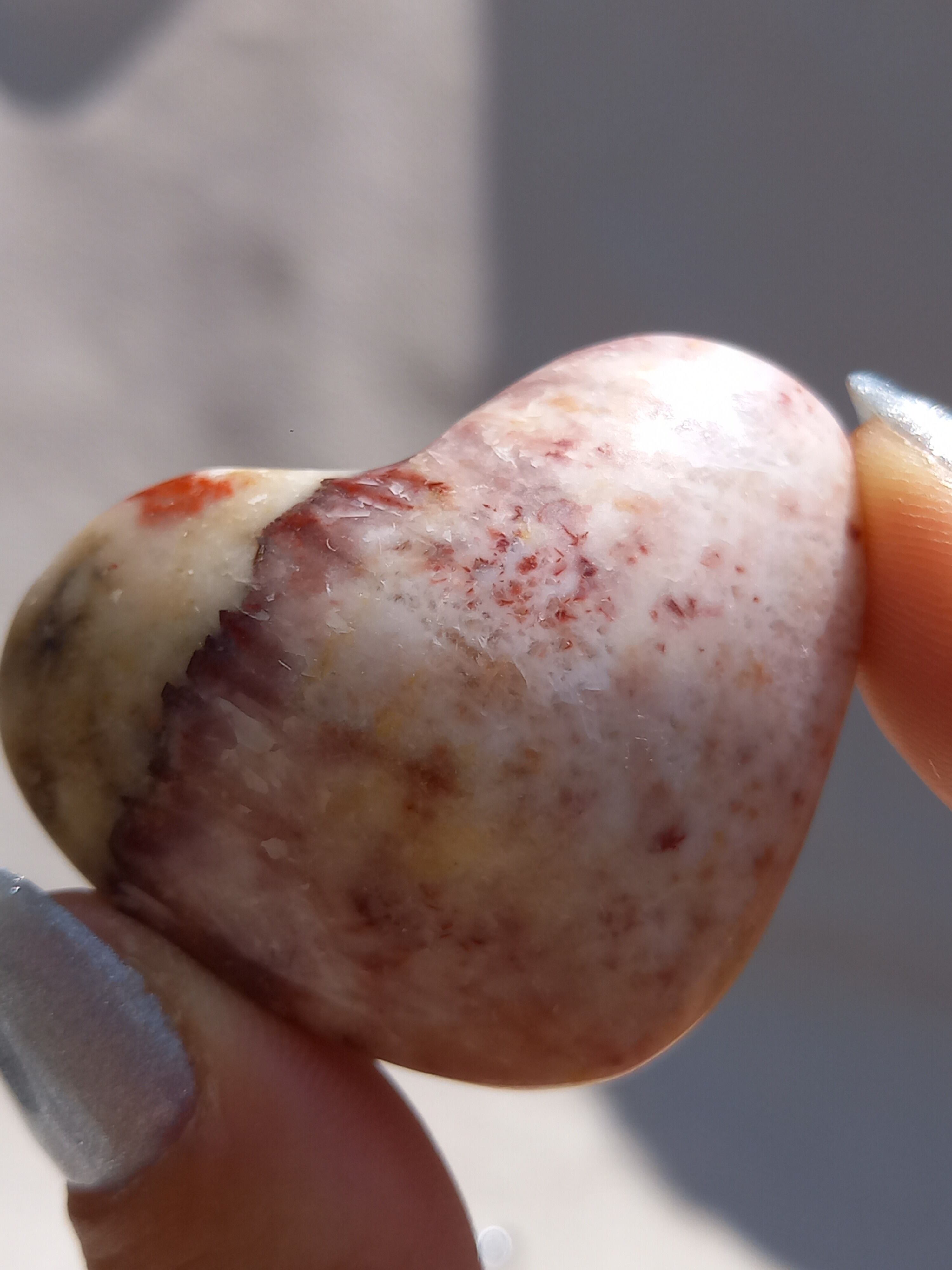 ポークストーンとは、カルサイトの一種で、赤色の部分は酸化鉄の影響で色づいており、アラゴナイト化していると言われてます。