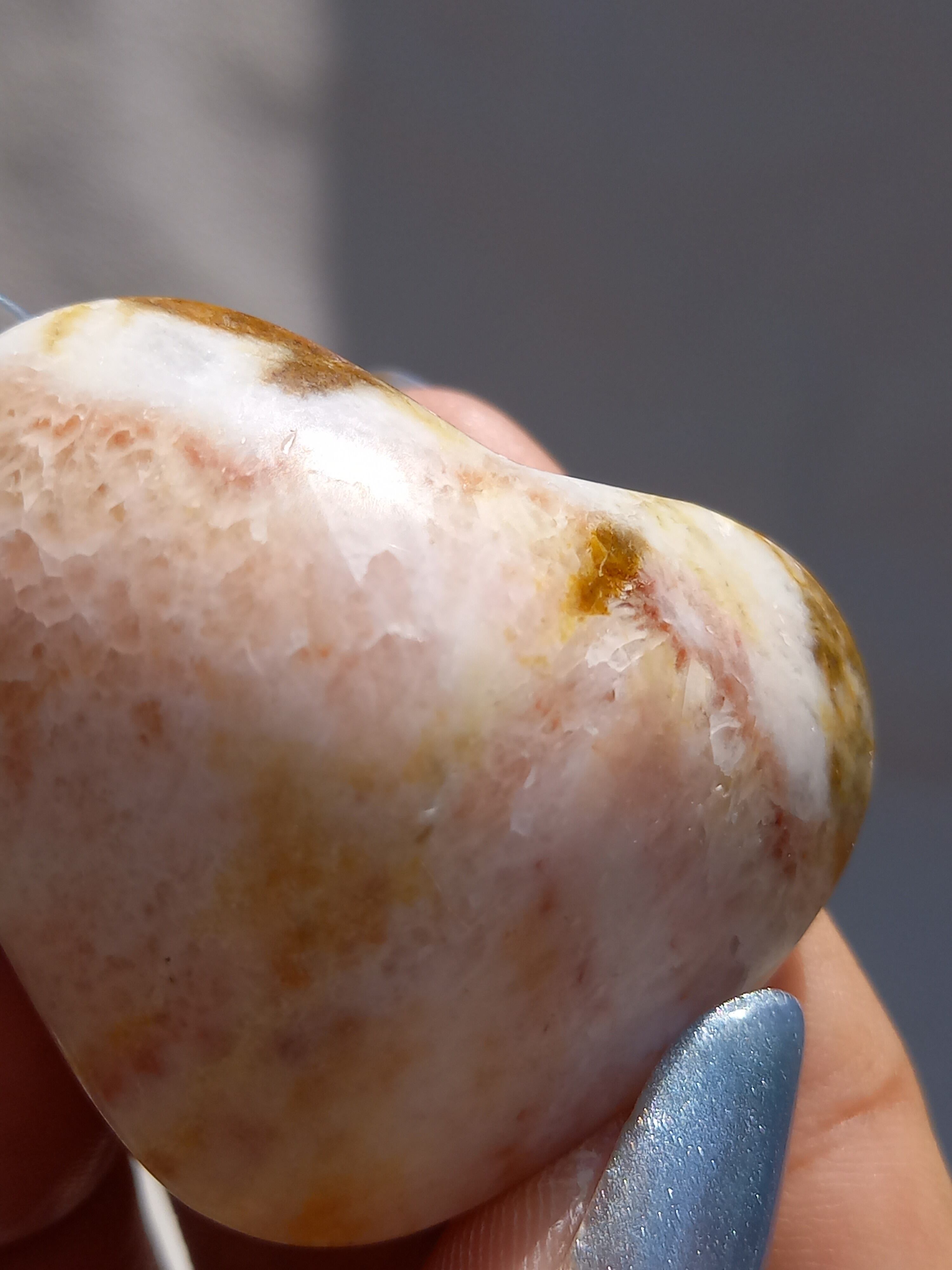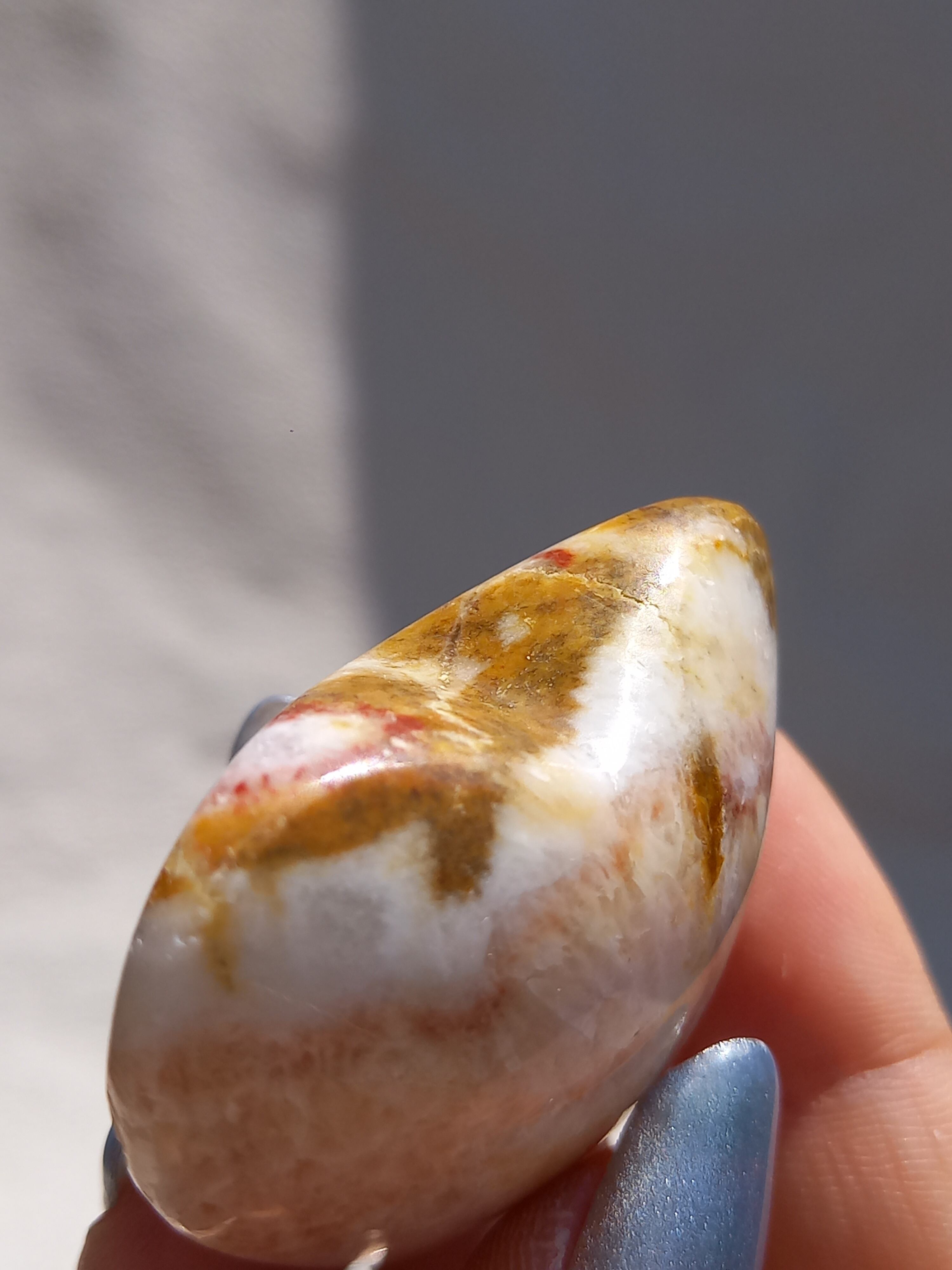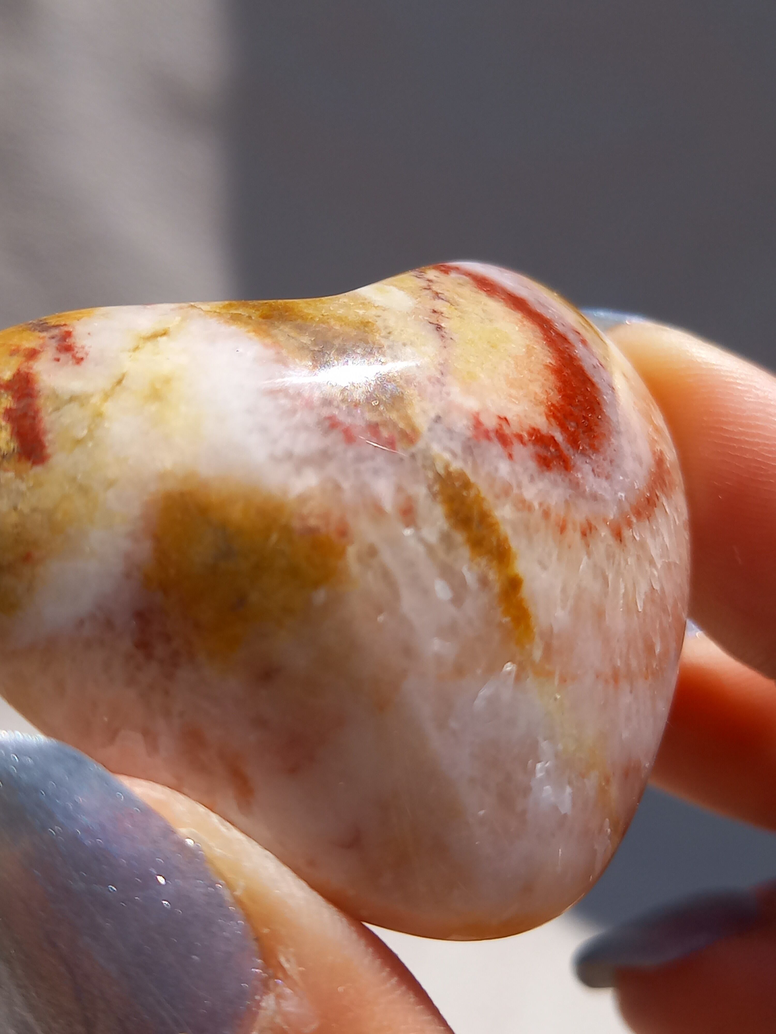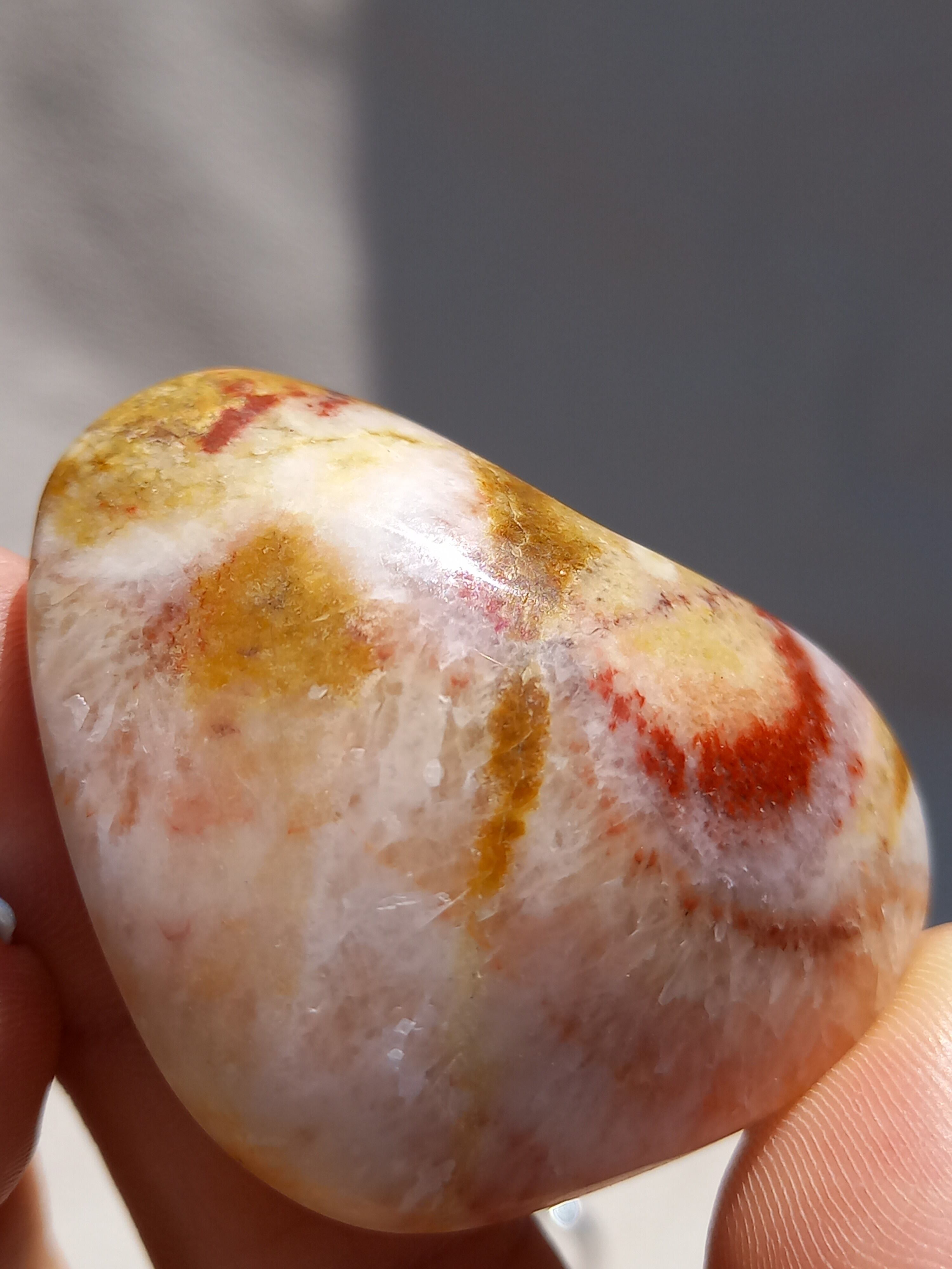 ポークストーンとは、カルサイトの一種で、赤色の部分は酸化鉄の影響で色づいており、アラゴナイト化していると言われてます。