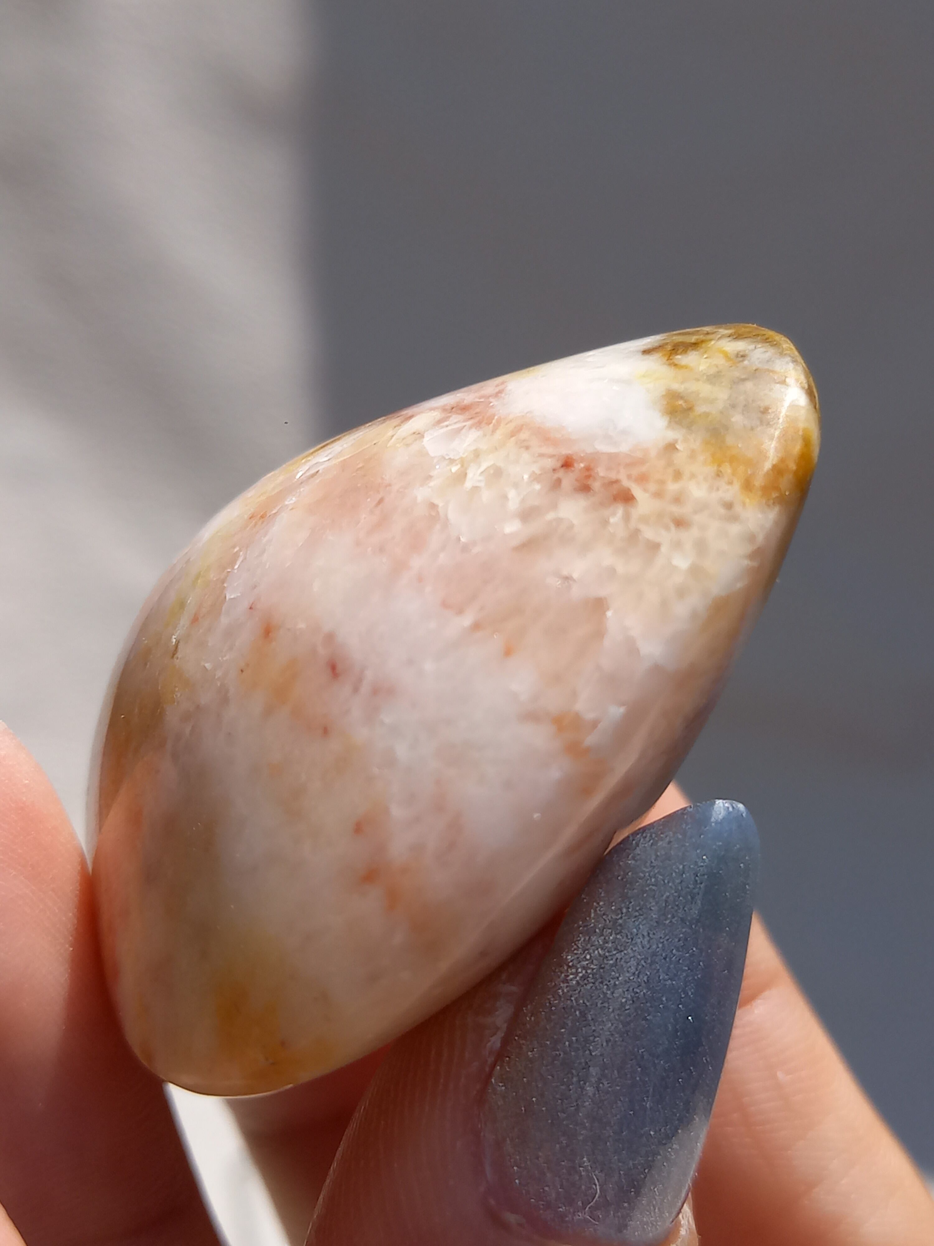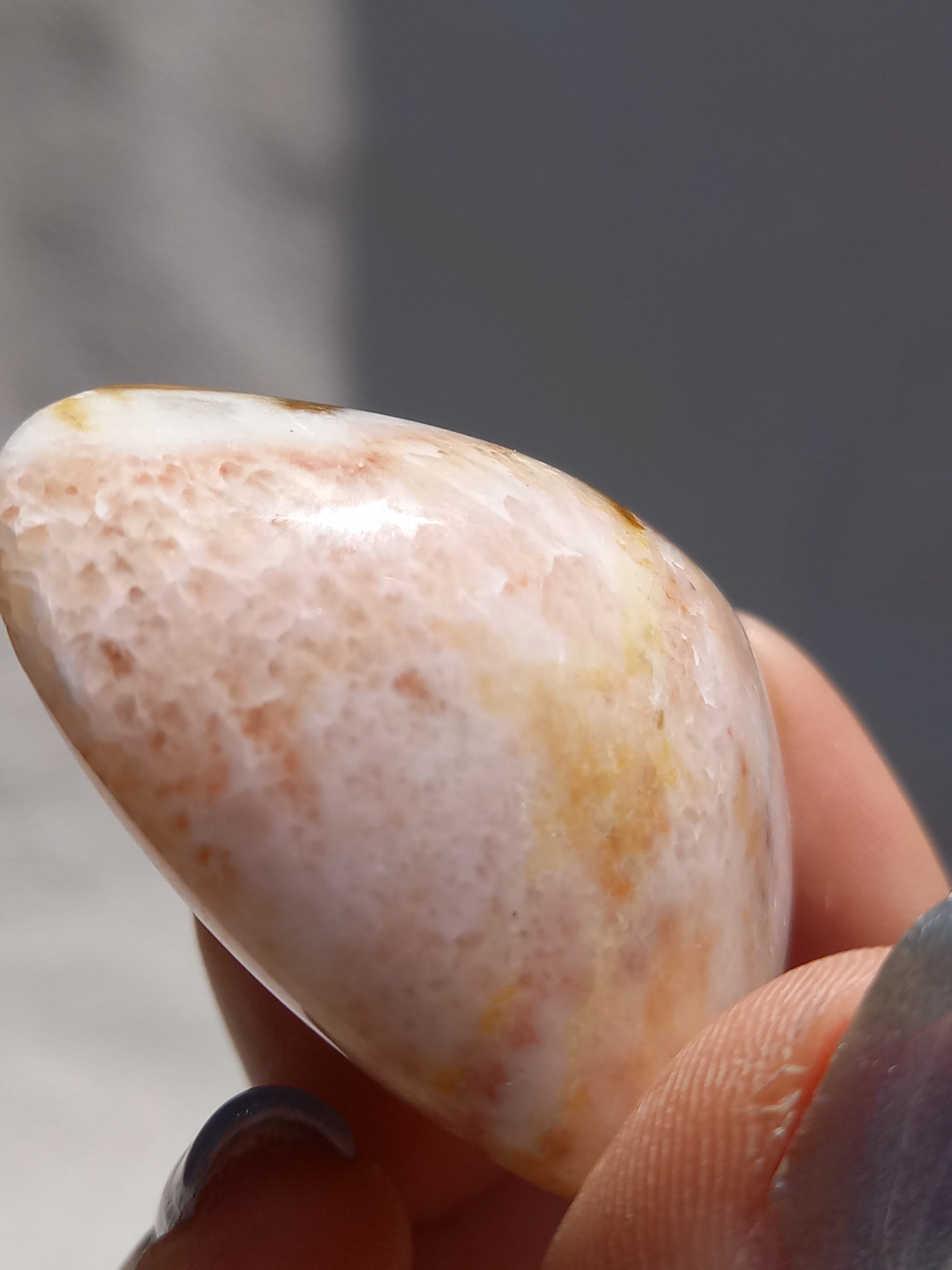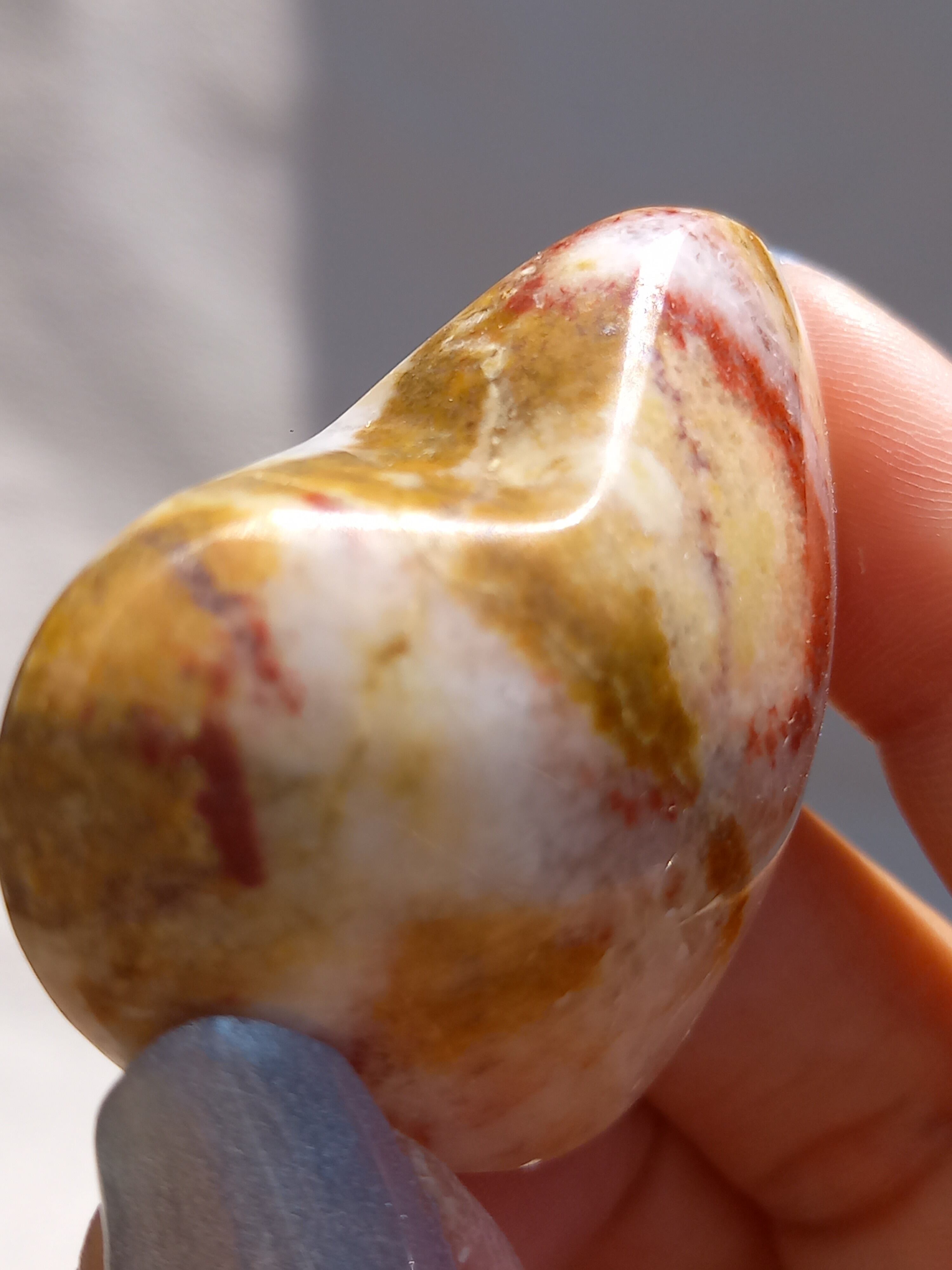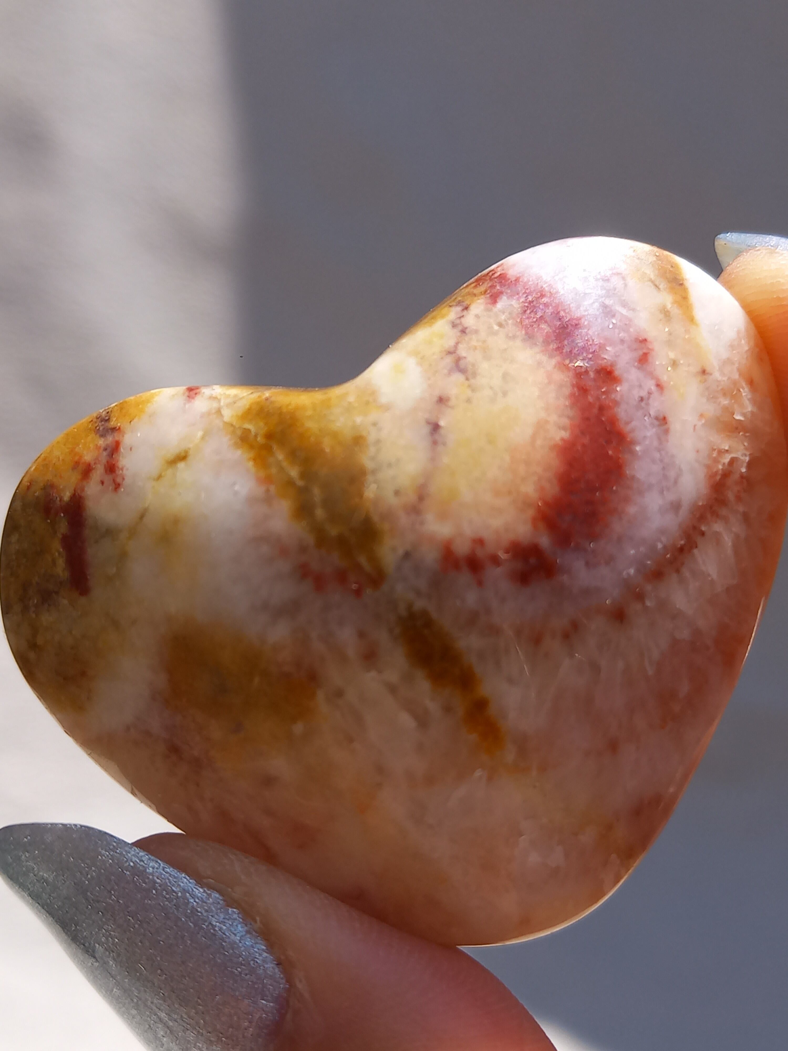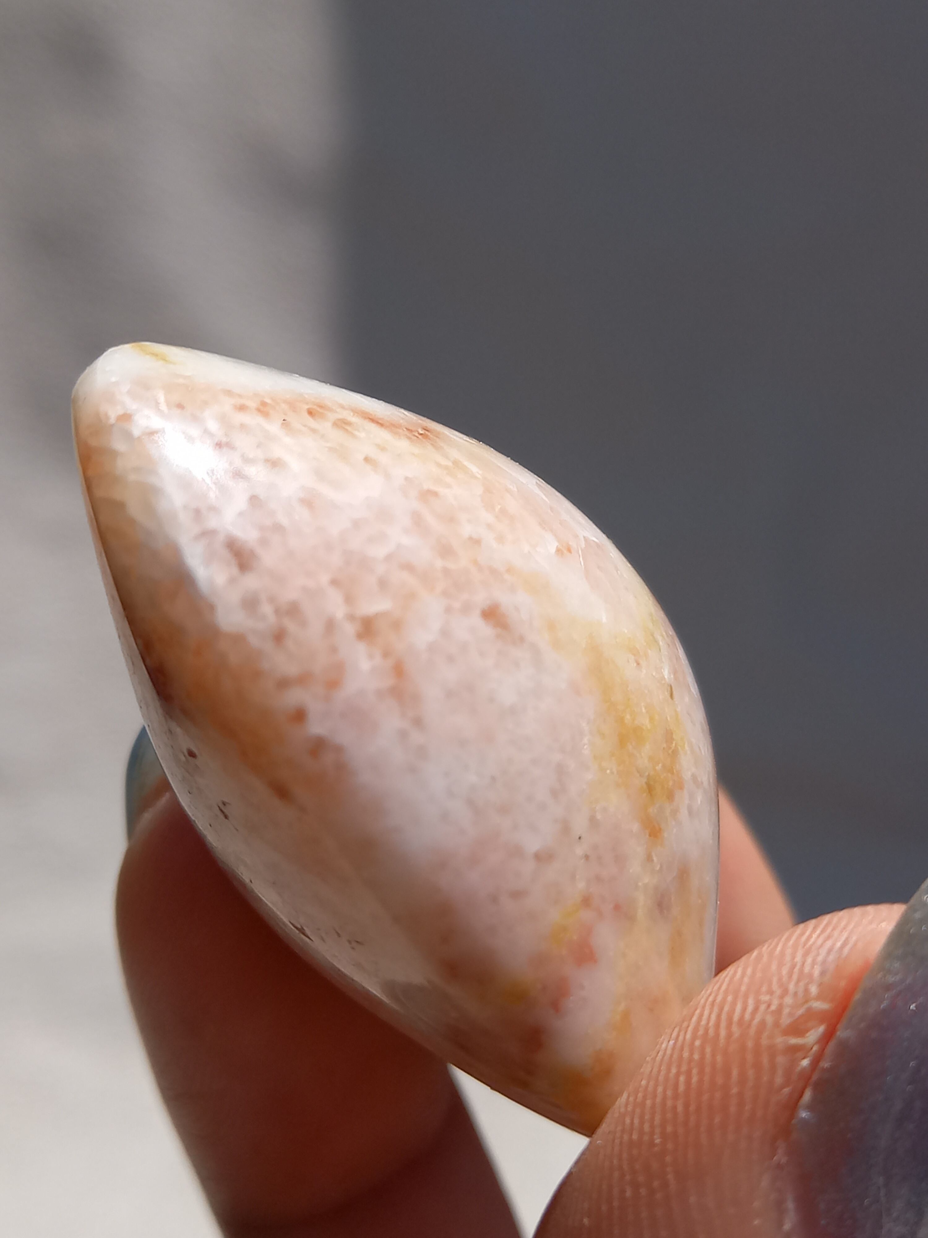 ポークストーンとは、カルサイトの一種で、赤色の部分は酸化鉄の影響で色づいており、アラゴナイト化していると言われてます。