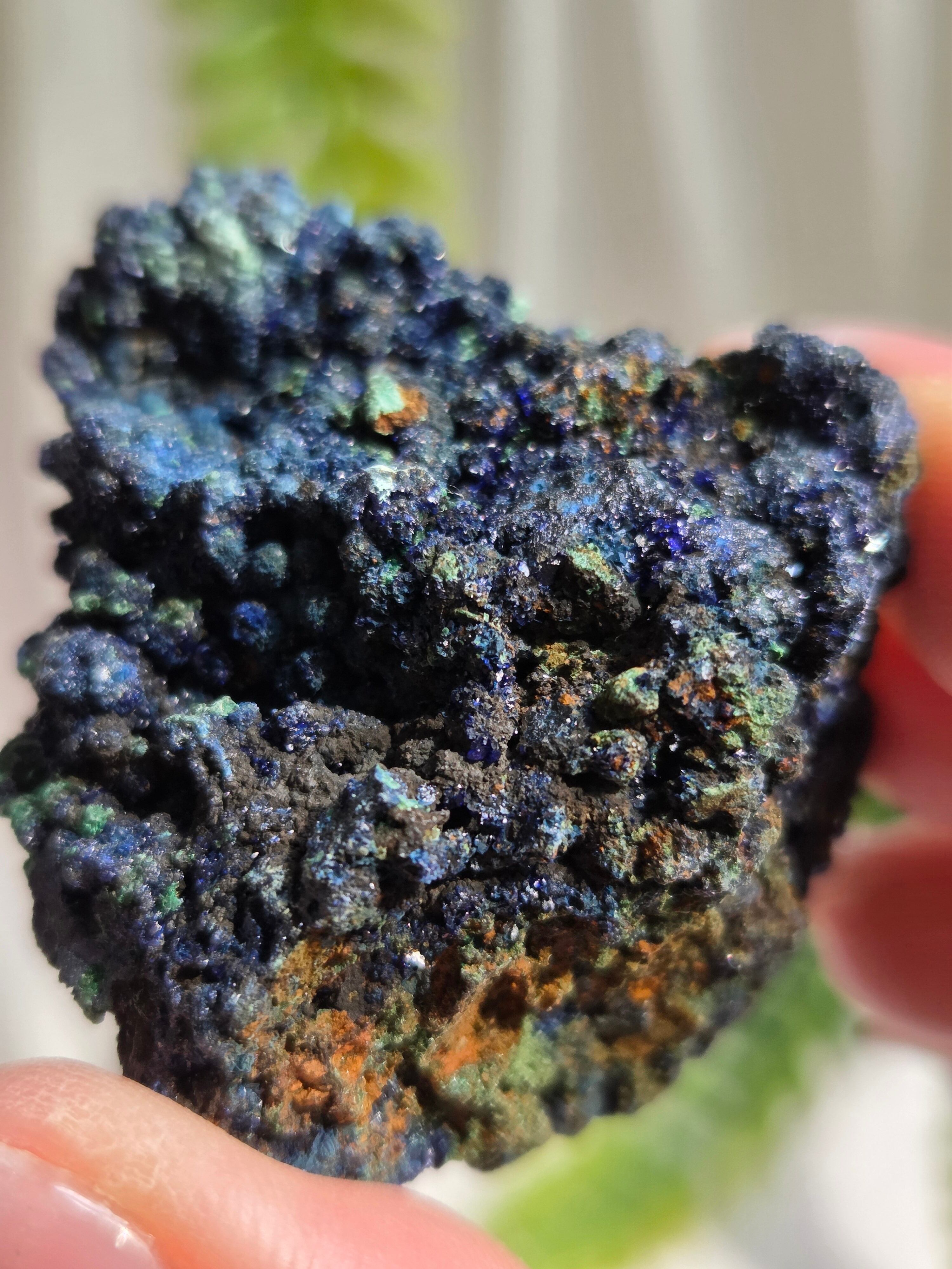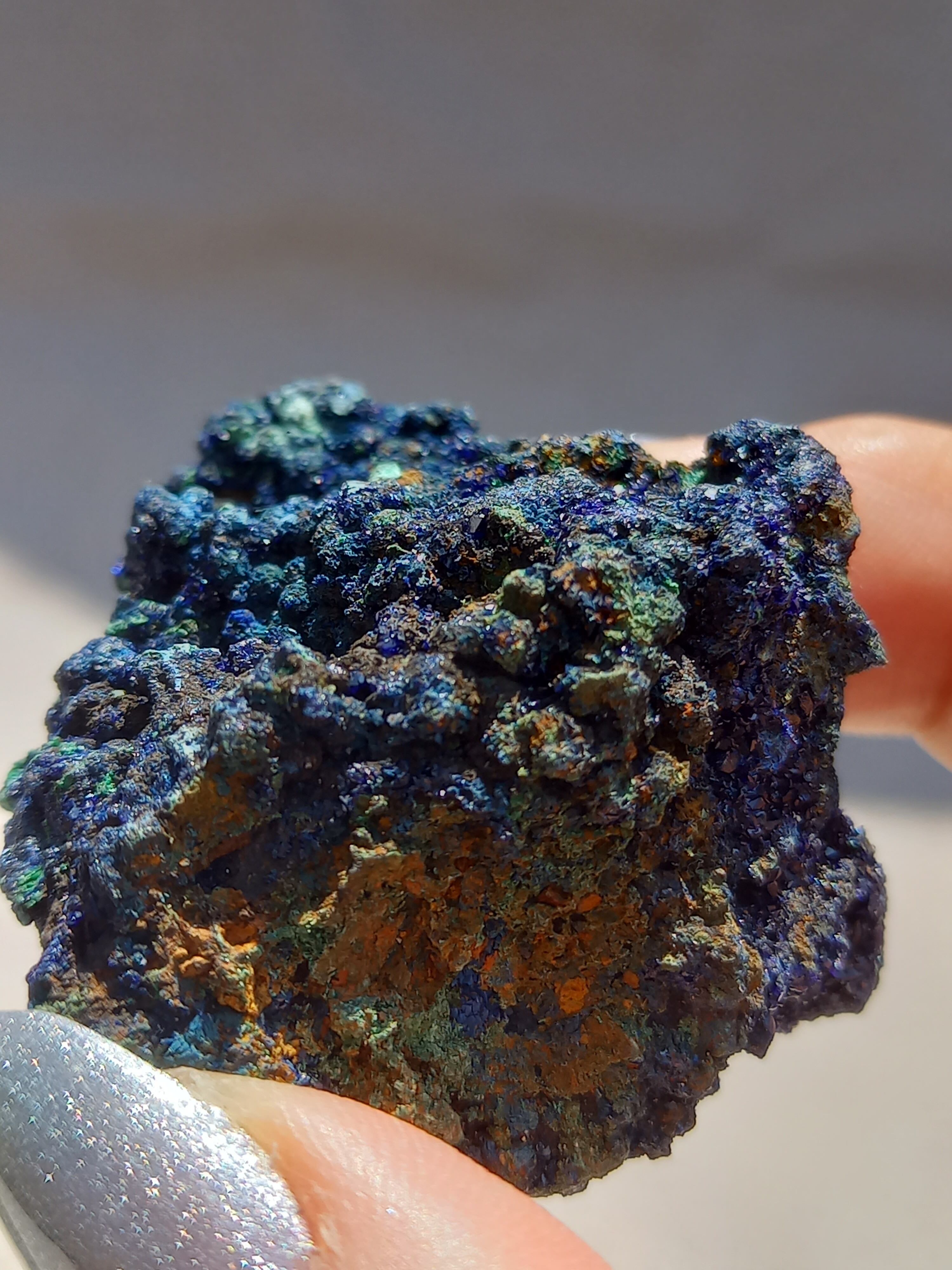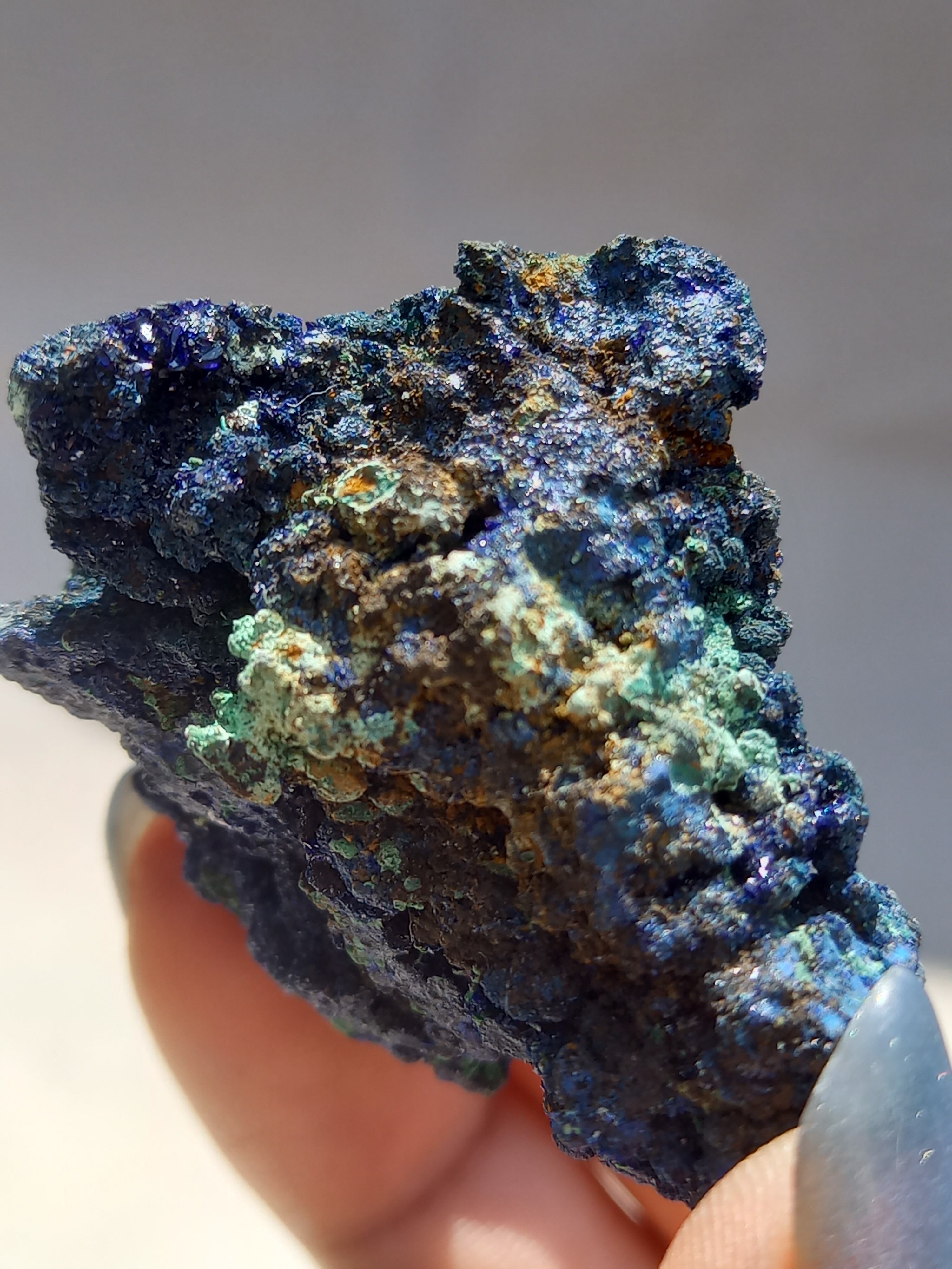 アズロマラカイトは、藍色をしたアズライトと緑色のマラカイトが混ざり合った芸術的な美しさが特徴の石です。 アズライトとマラカイトはよく似た鉱物で、アズライトは空気中の水分を吸収して、マラカイトへ変化する性質を持っています。