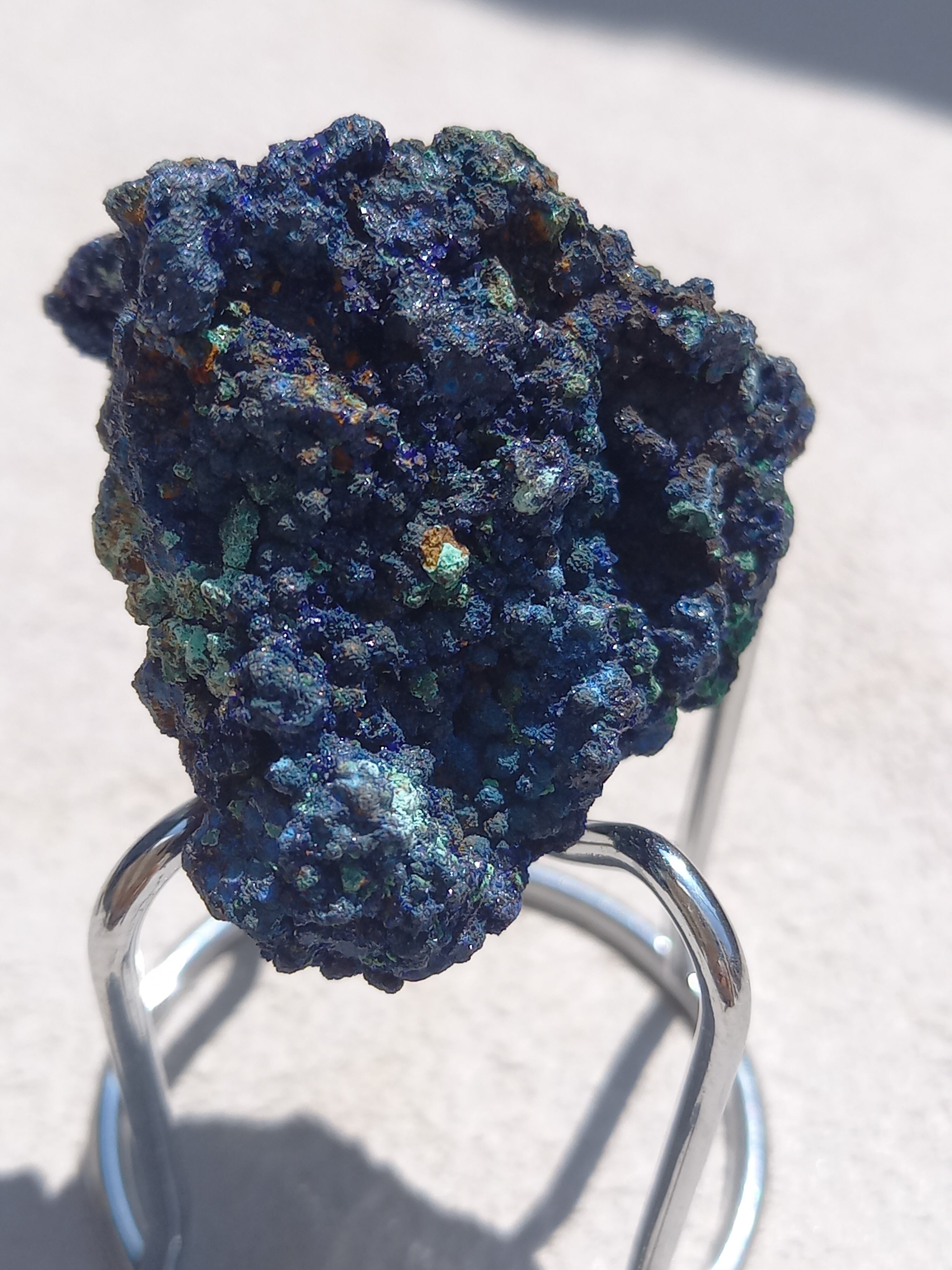 アズライトの鮮やかなブルーの結晶がキラキラと煌めき、結晶も、しっかりした結晶で見応えあります。