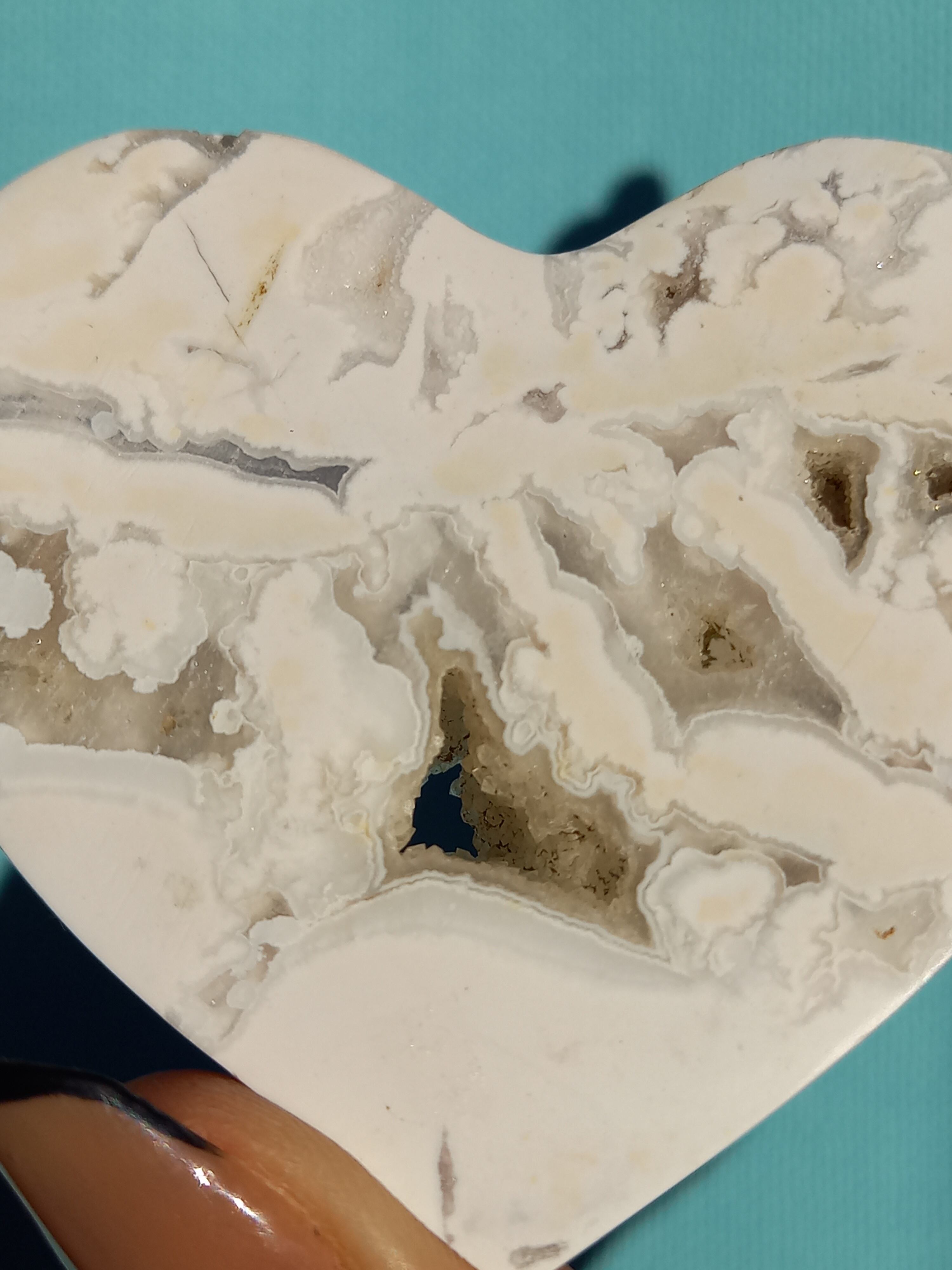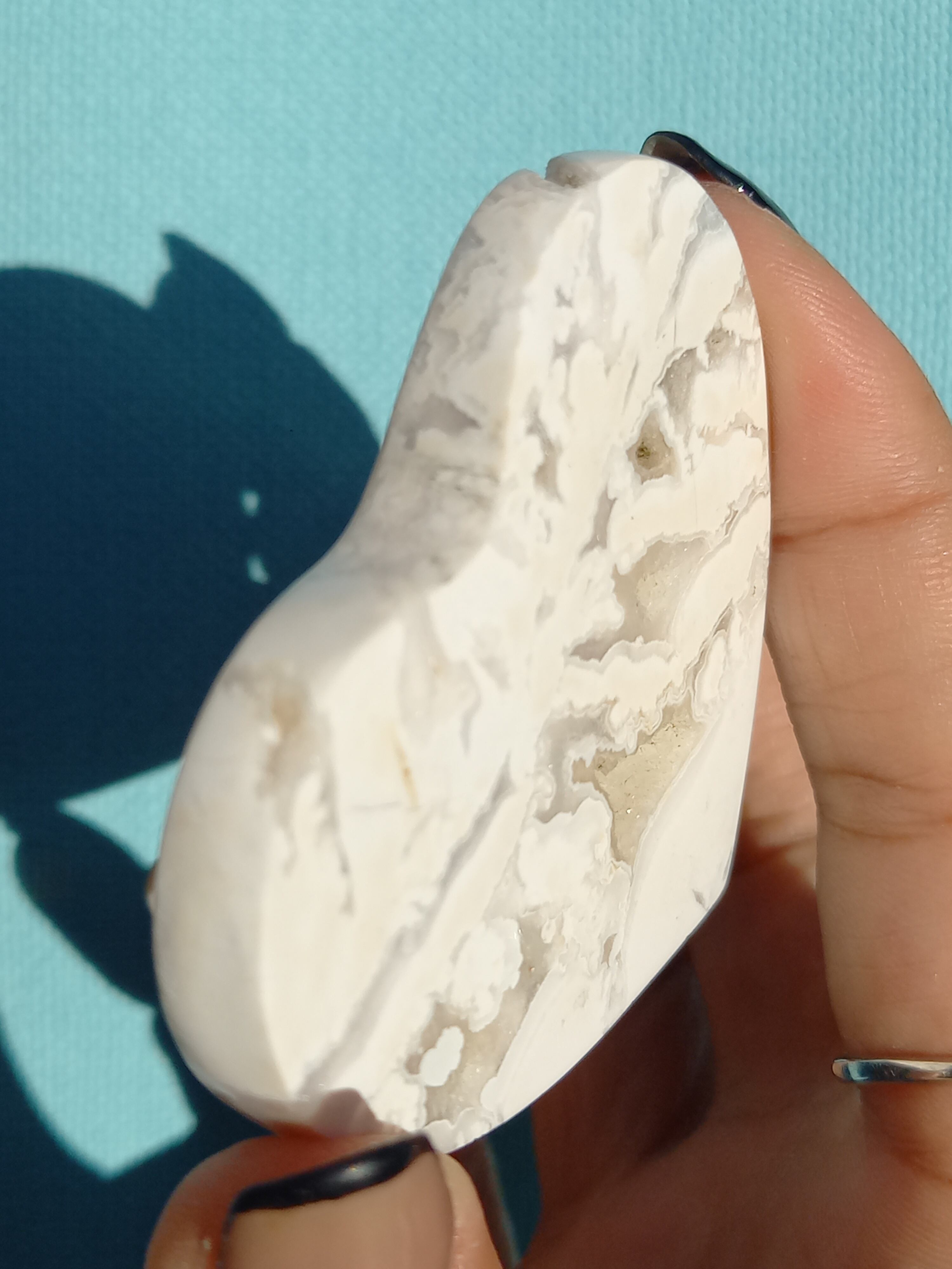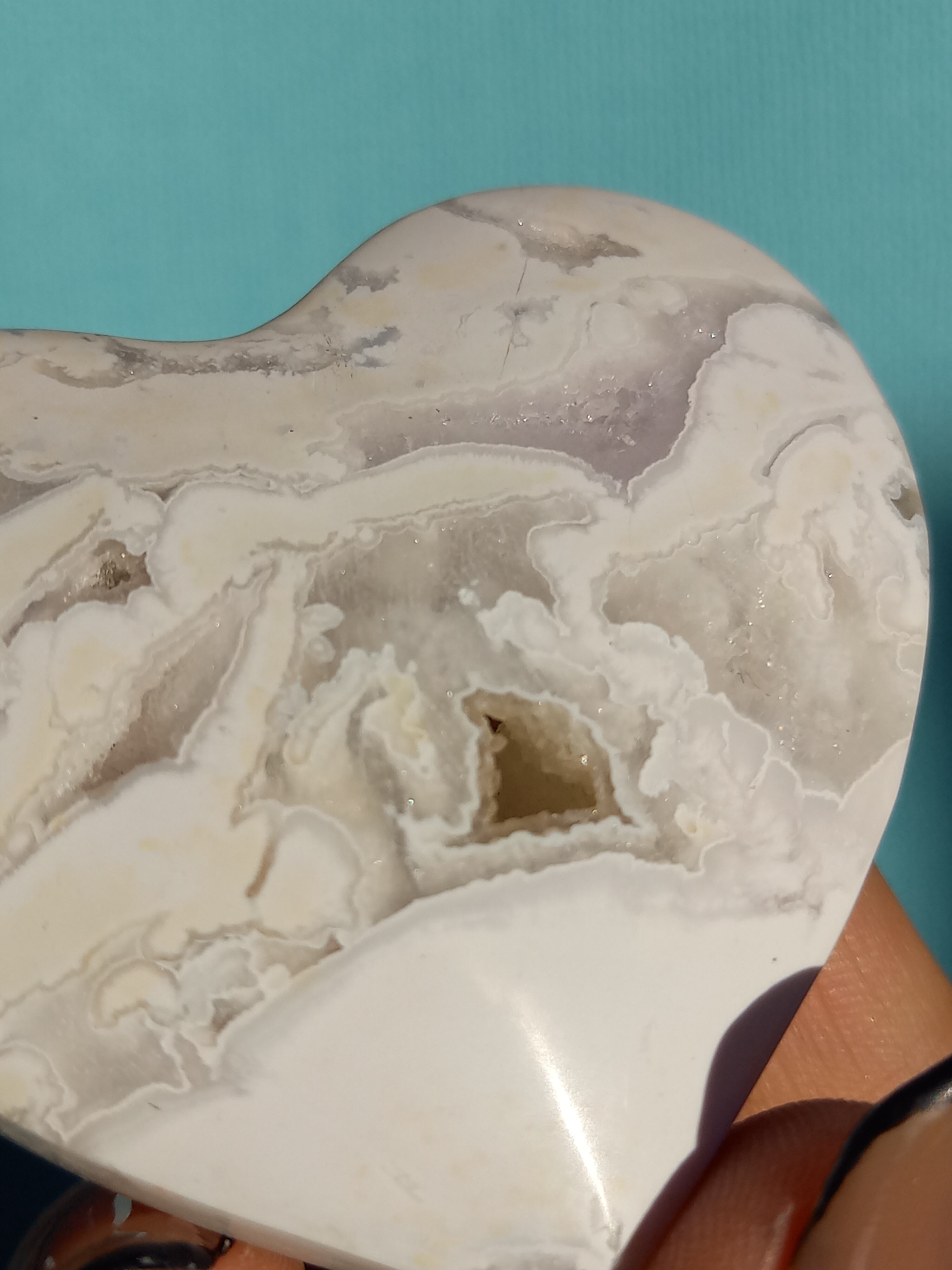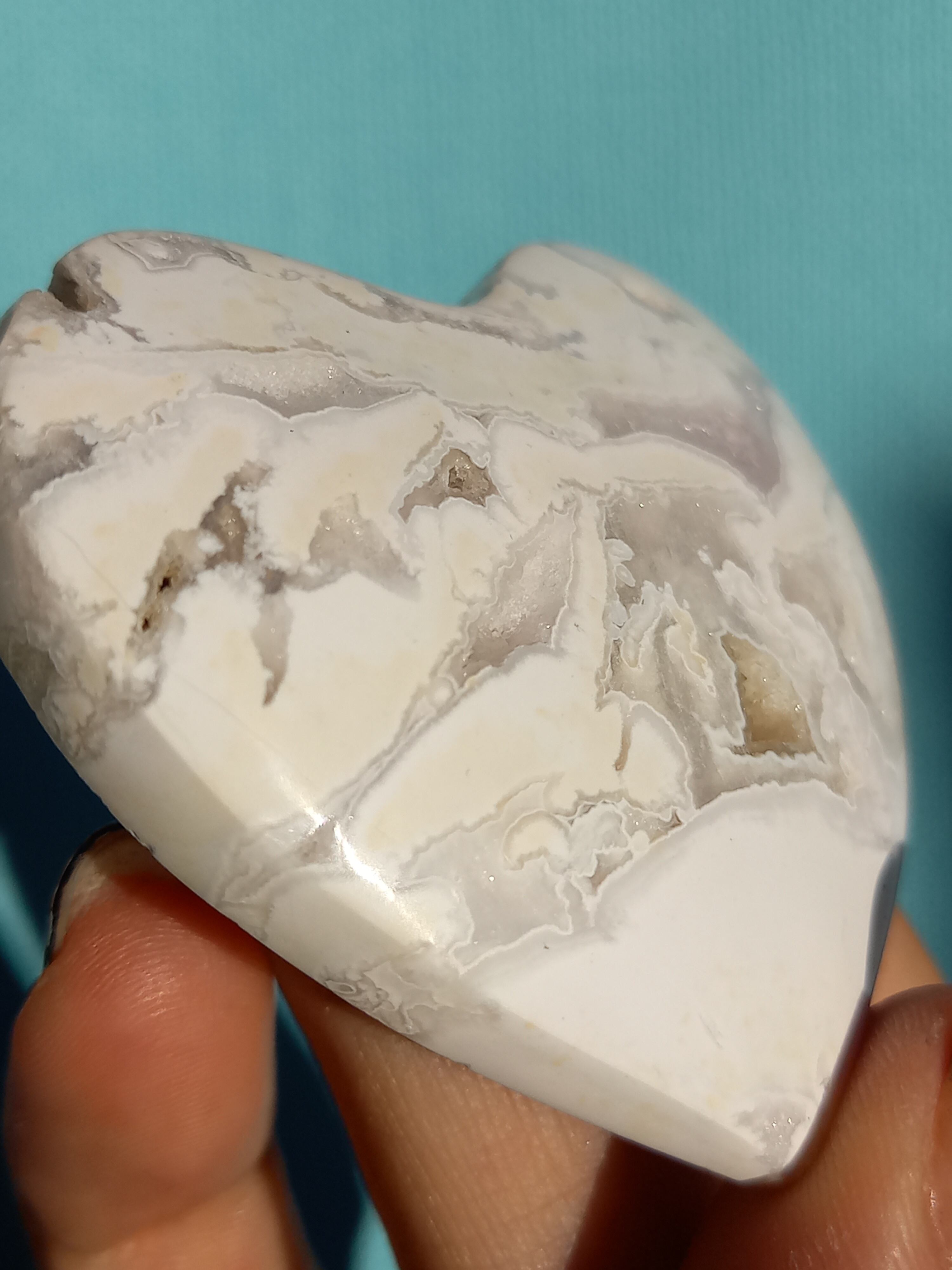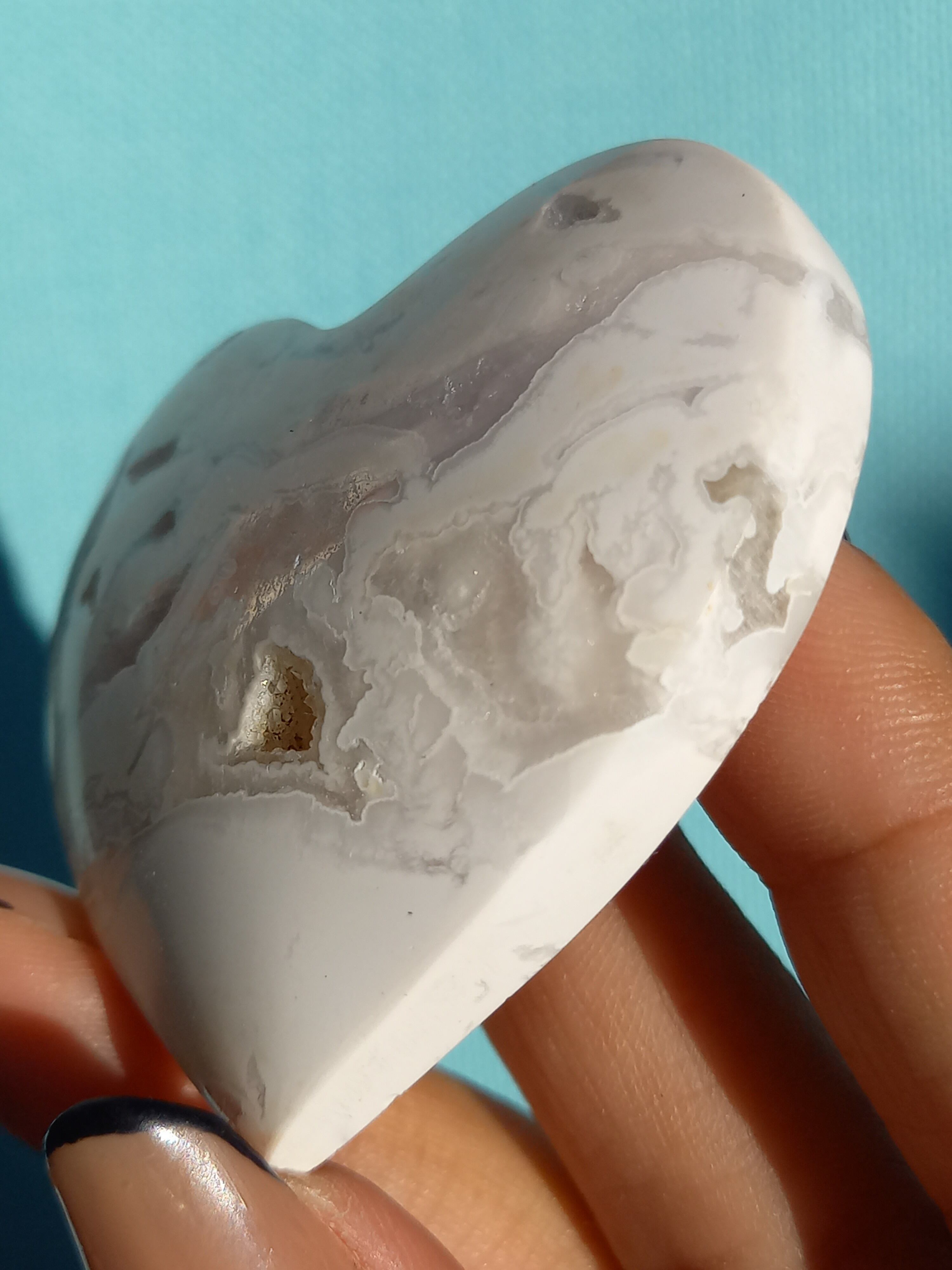 インドネシア産スノーホワイトアゲートハートカボションパームです。