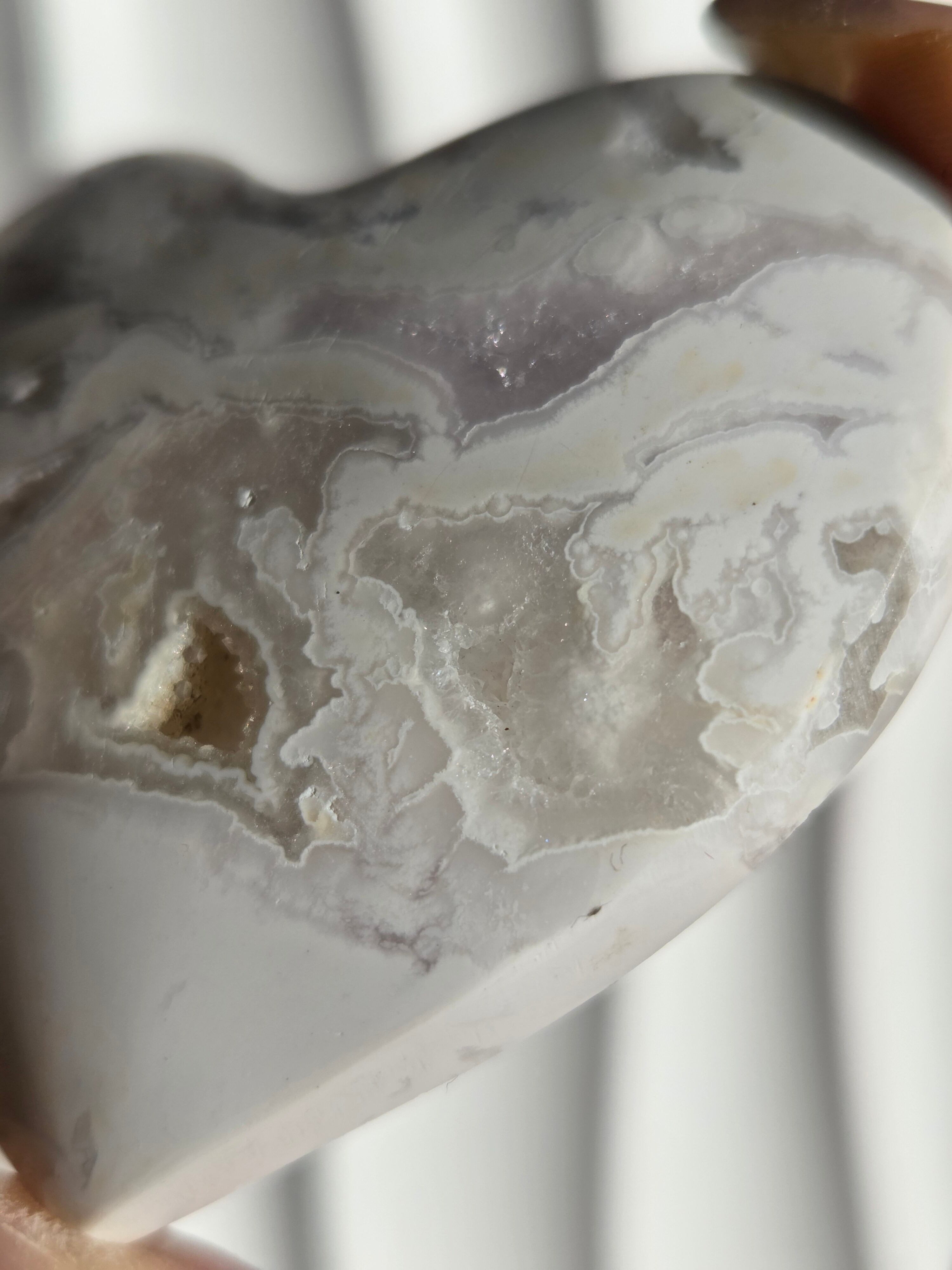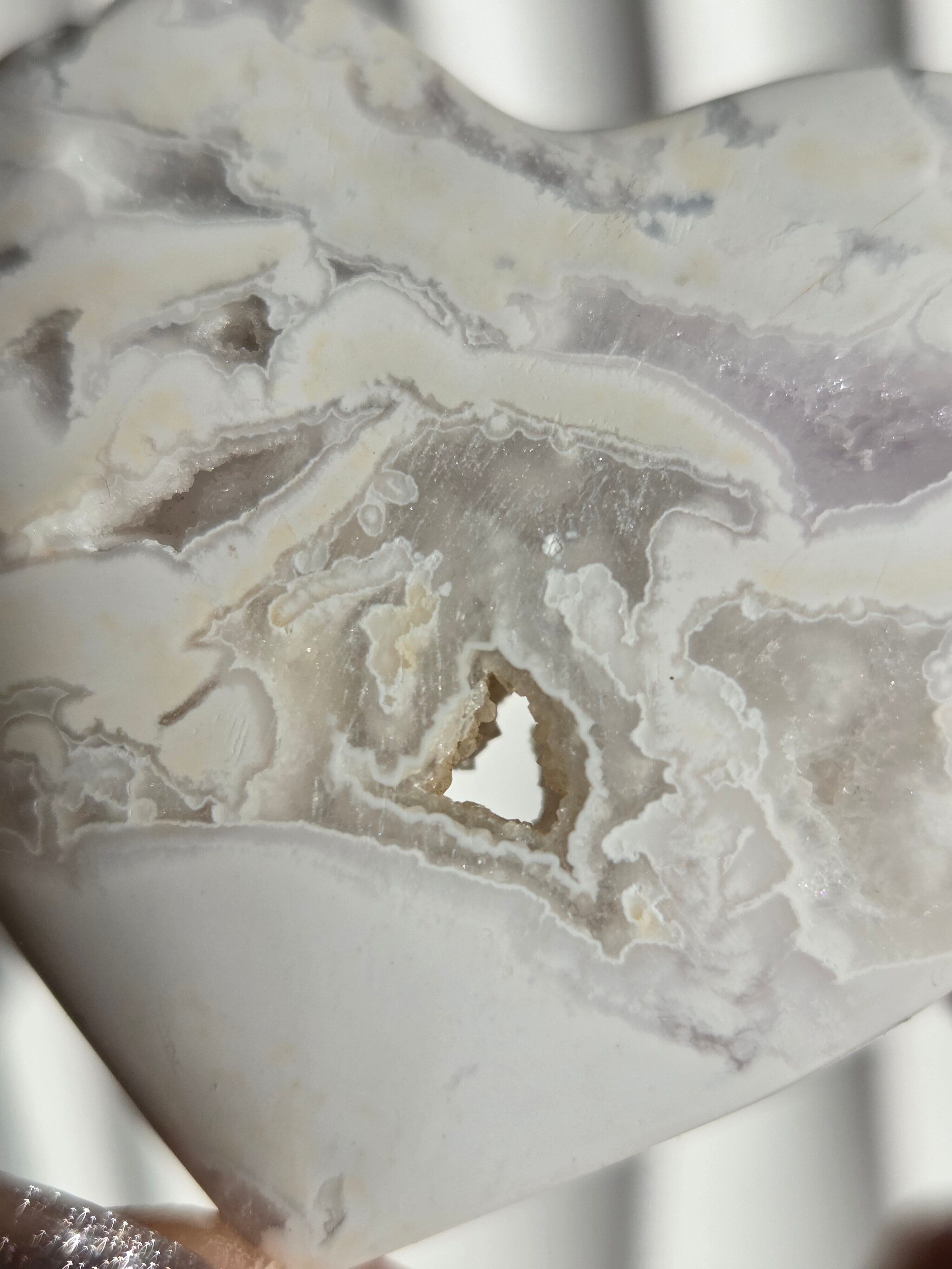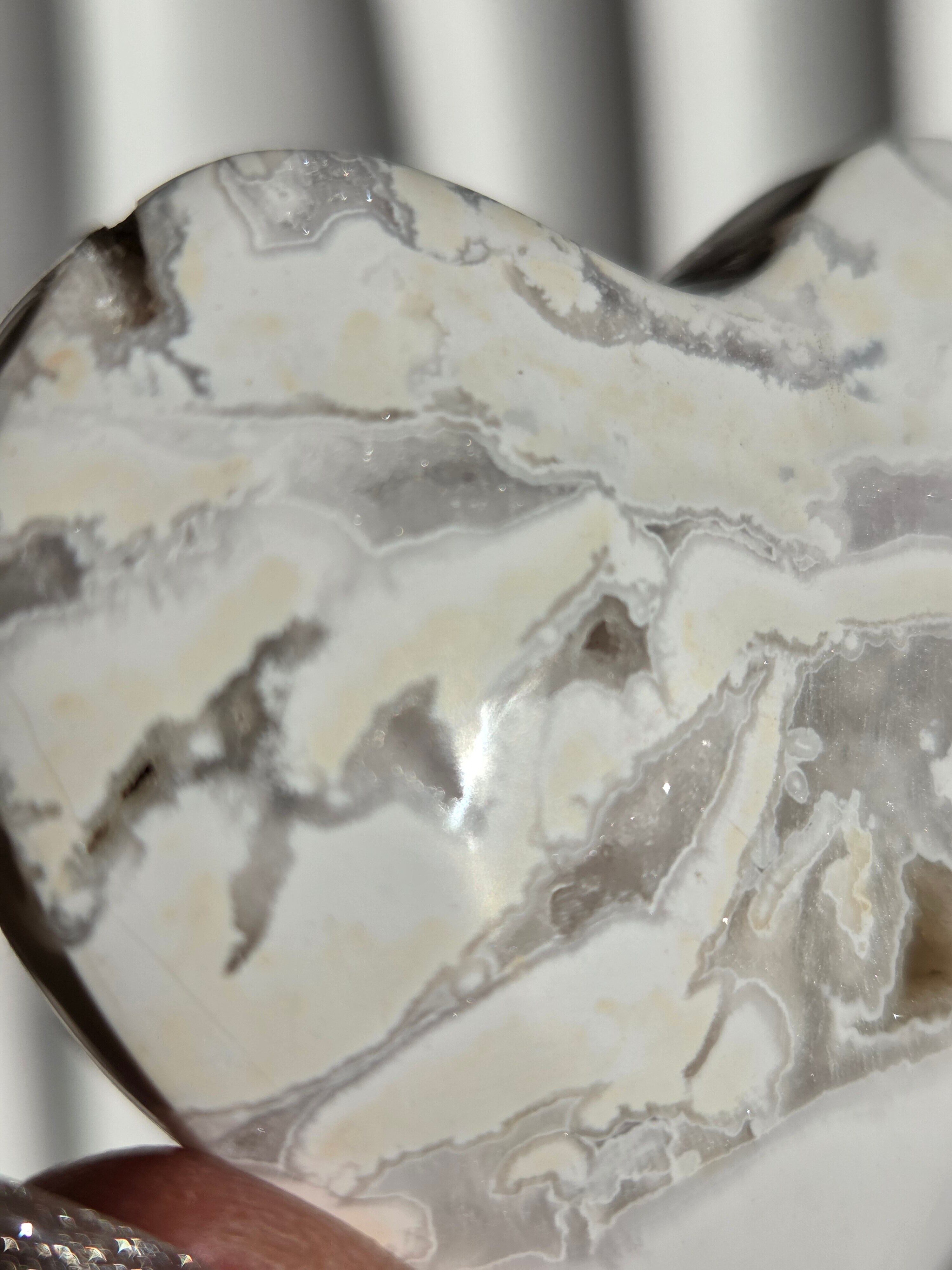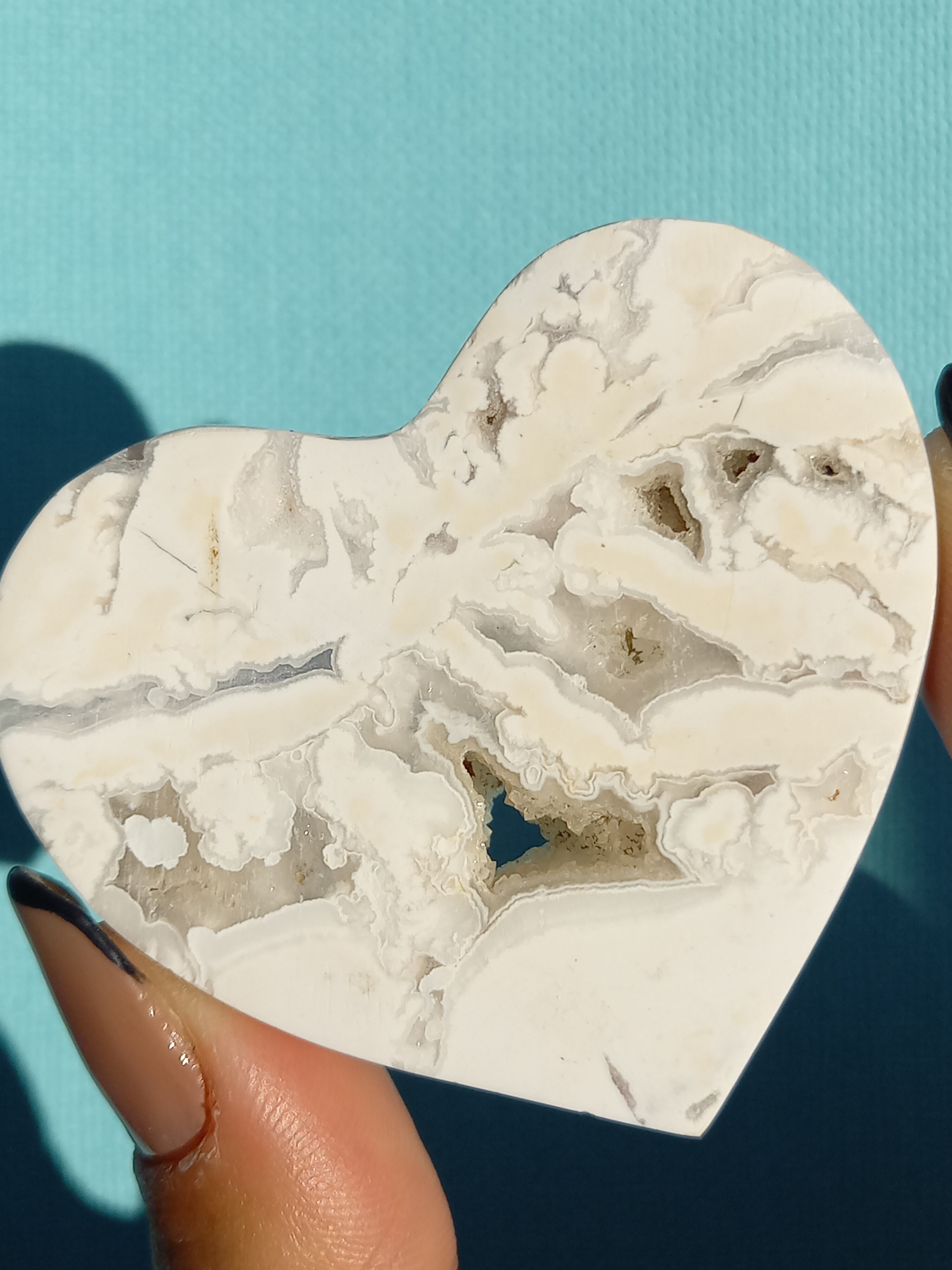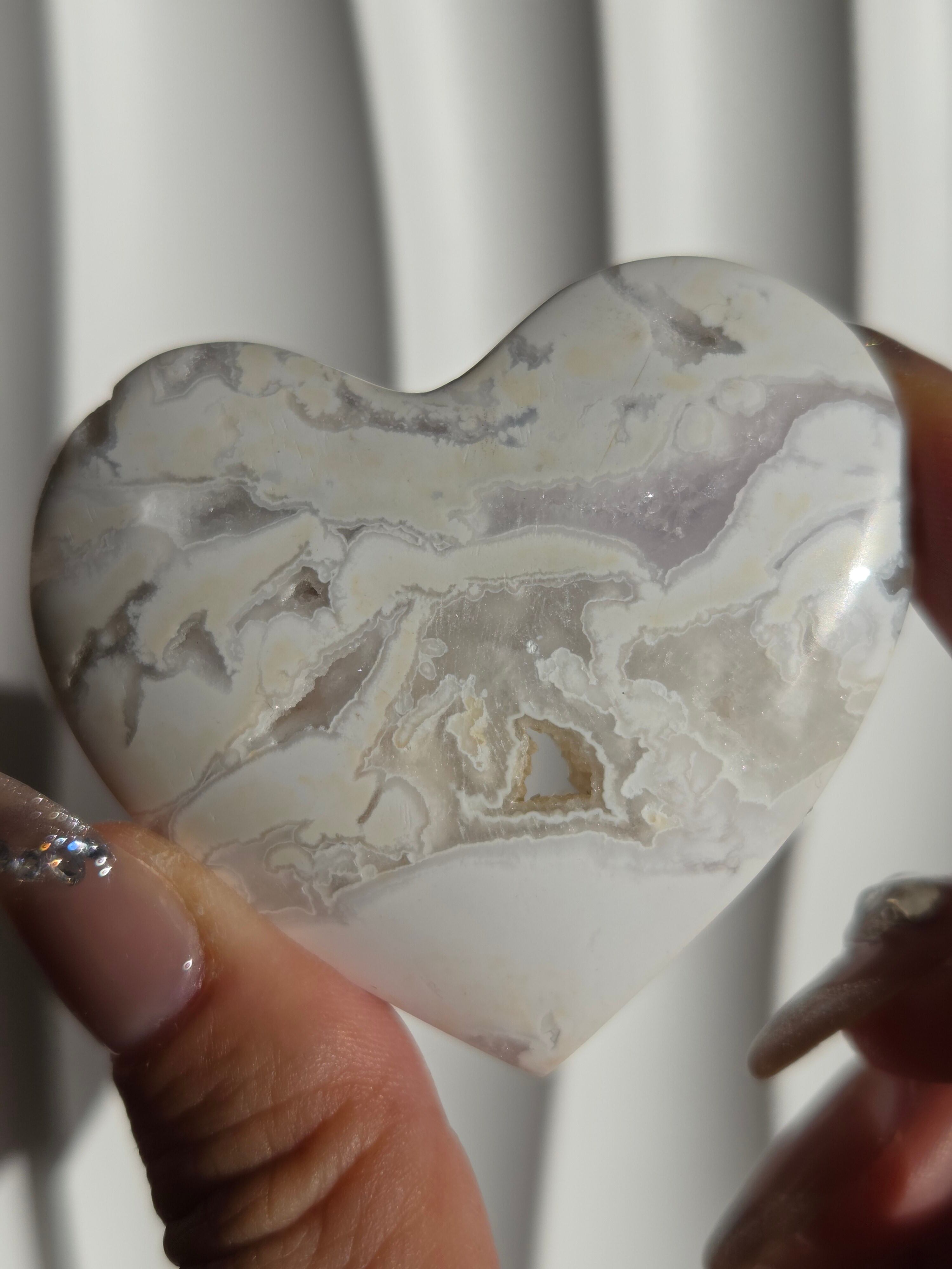 インドネシア産スノーホワイトアゲートハートカボションパームです。
