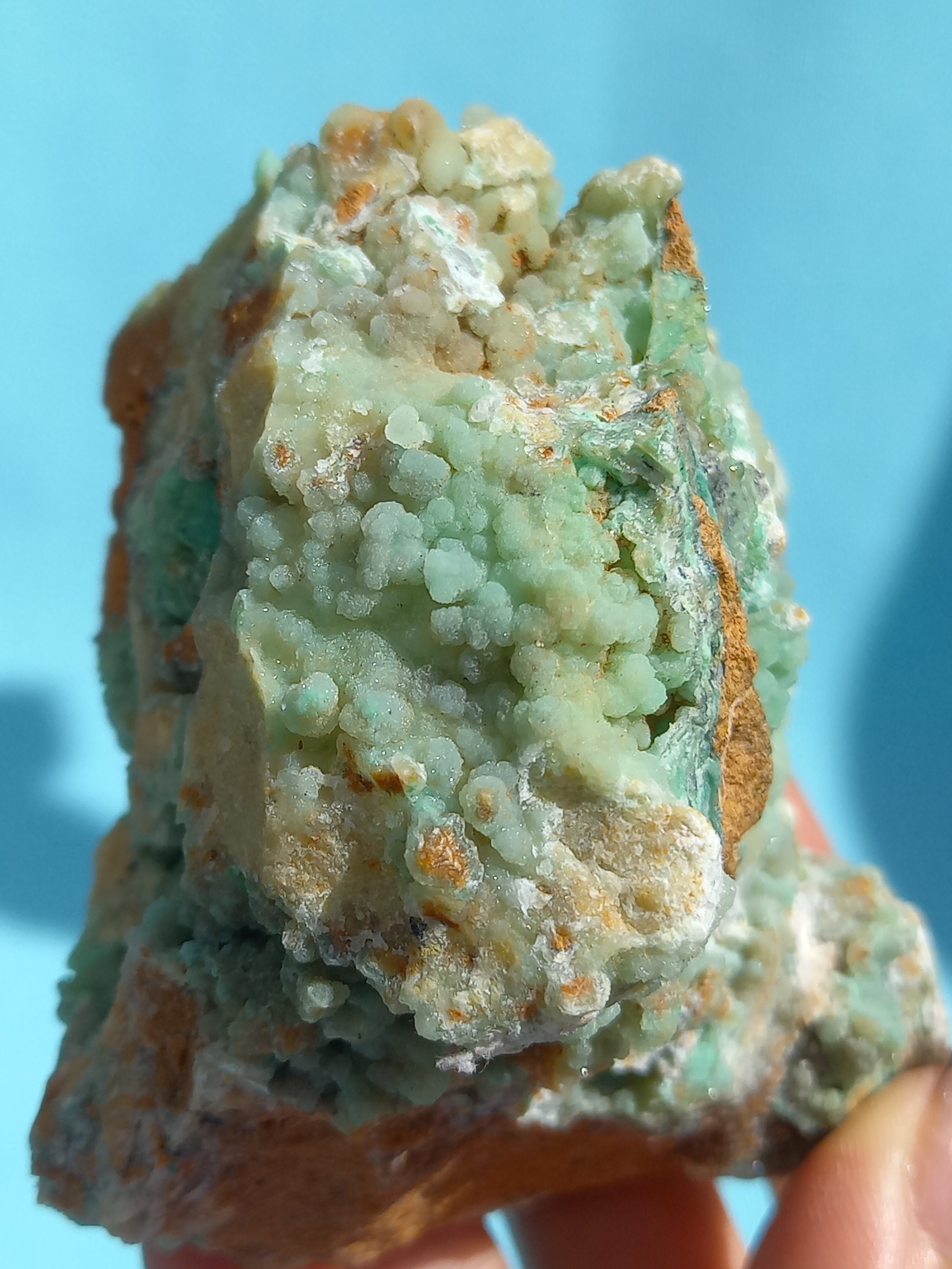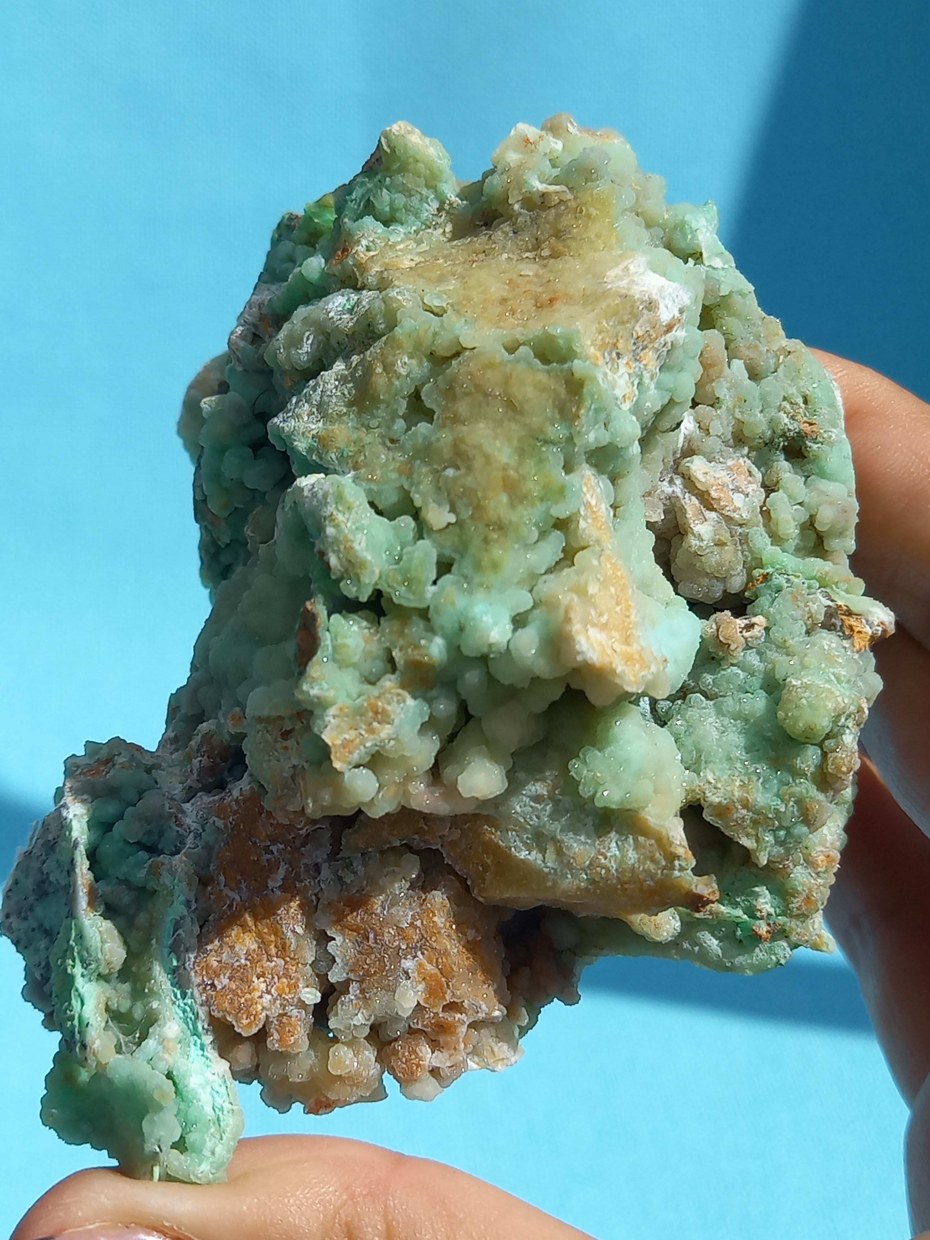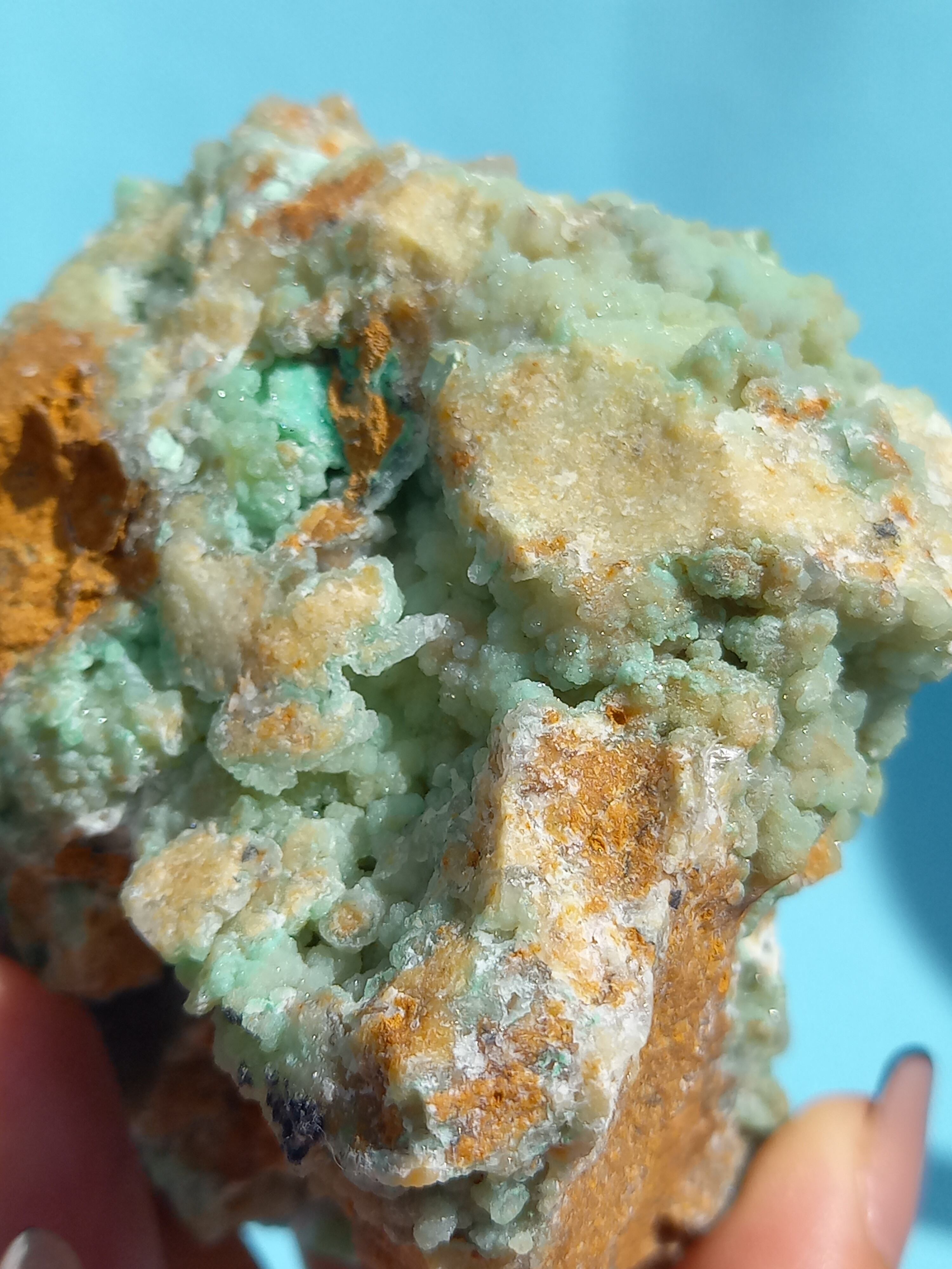 鮮やかなエメラルドグリーンカラーに、細かな結晶がキラキラと美しいです。