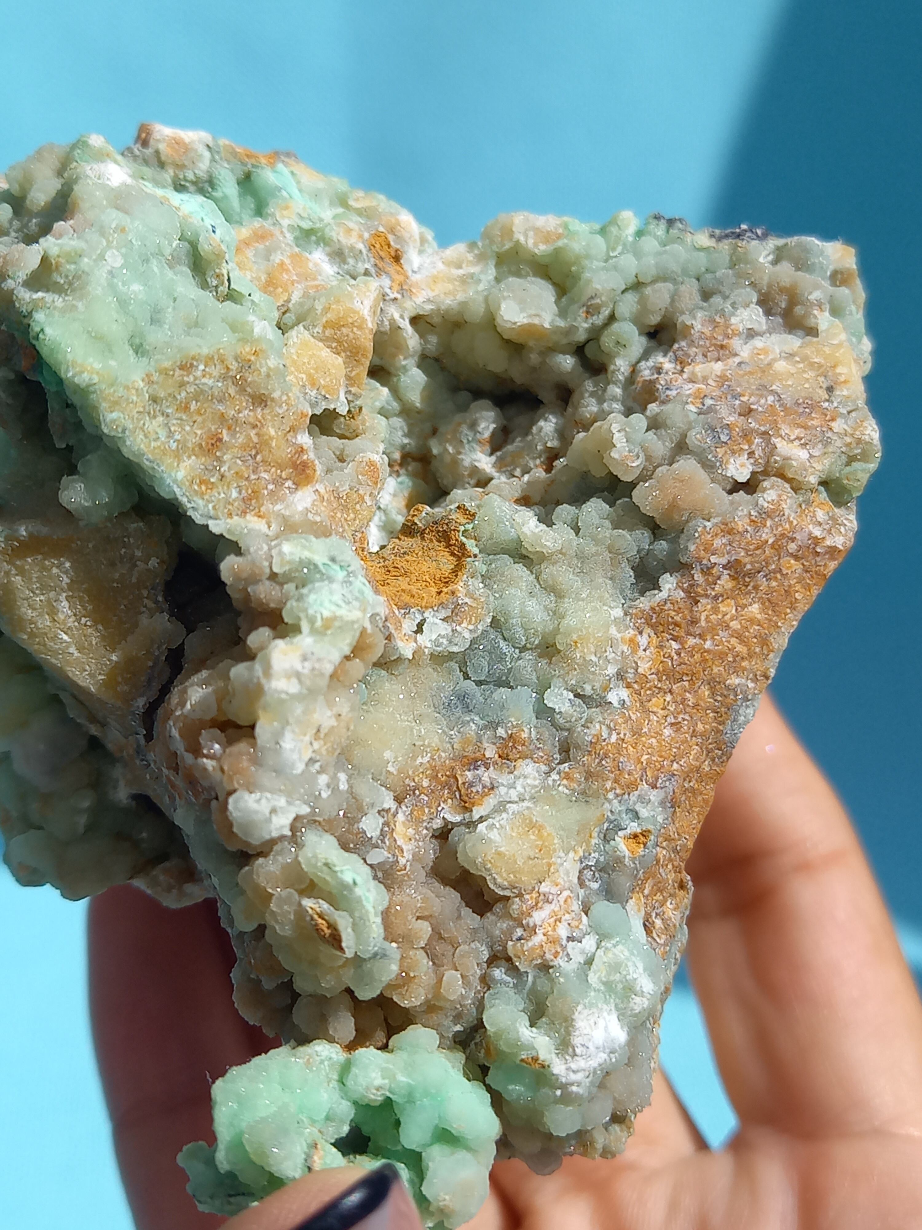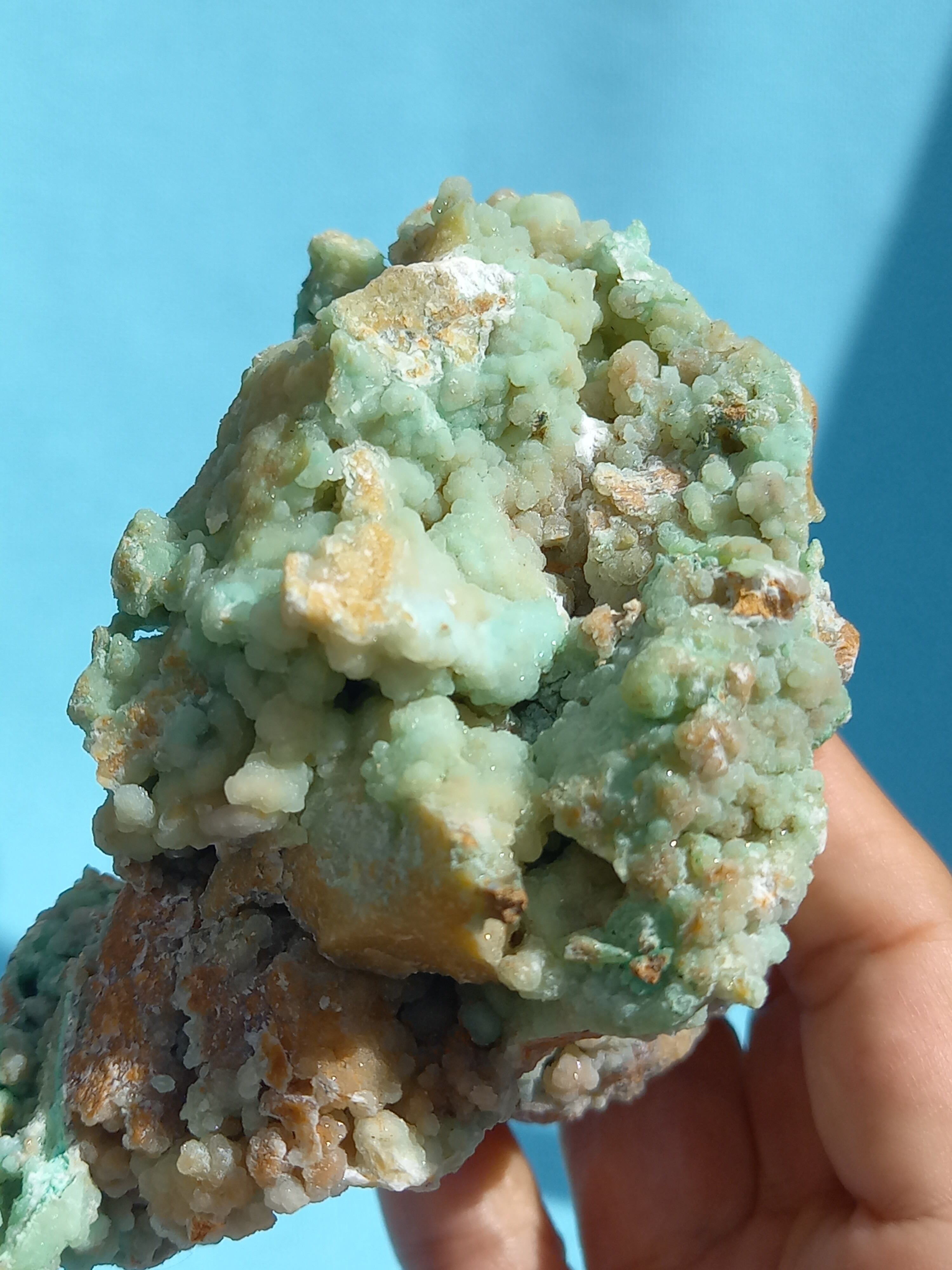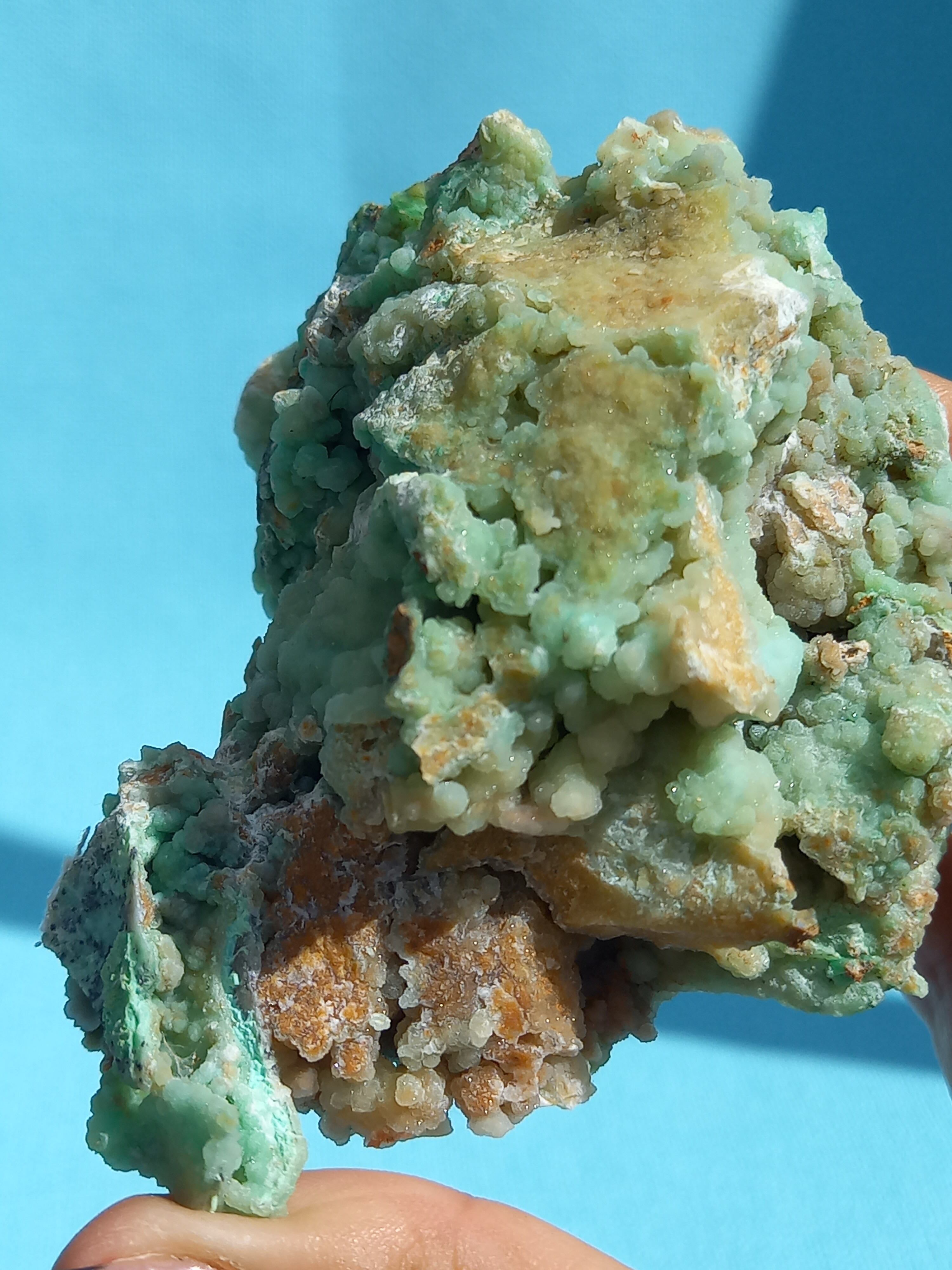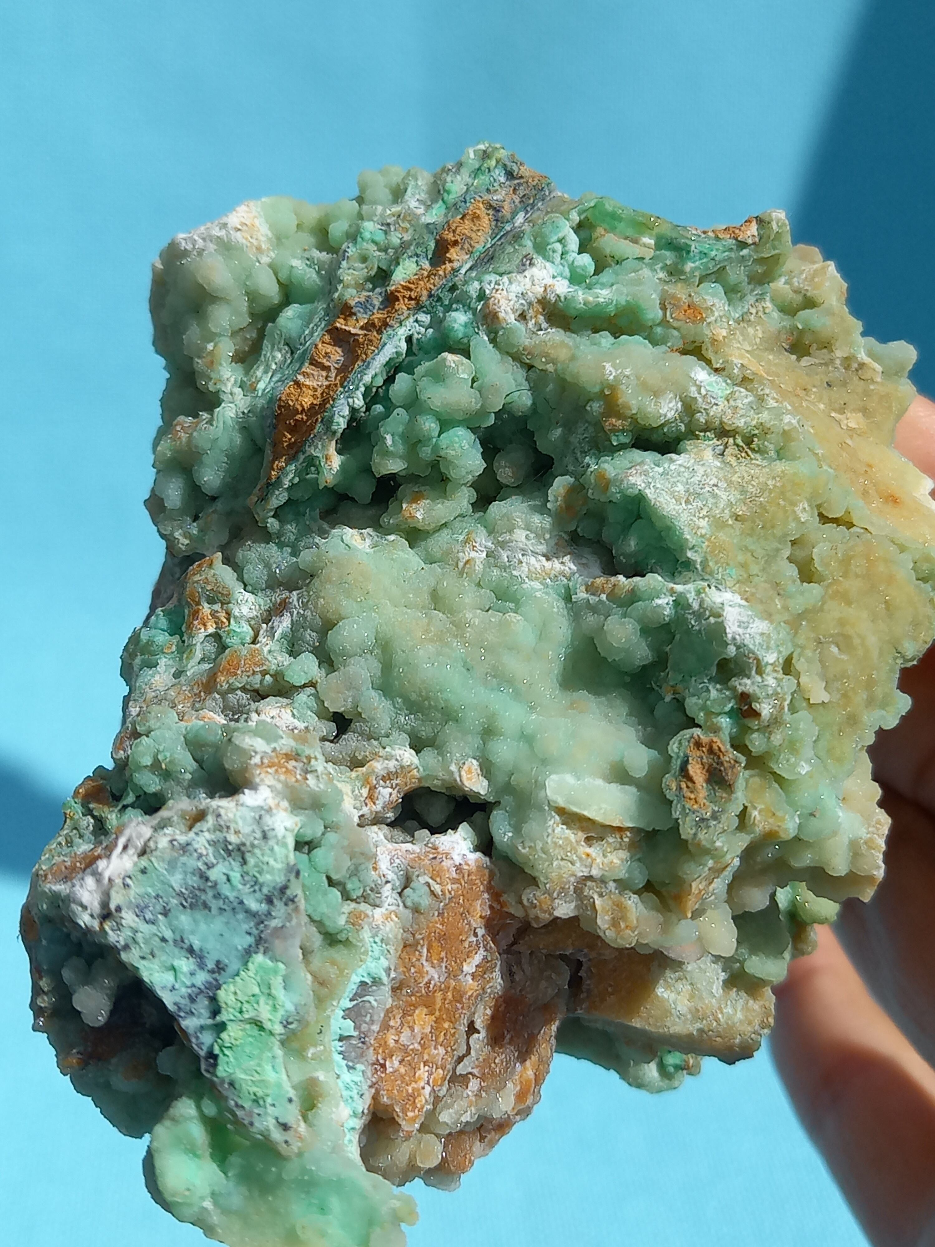 鮮やかなエメラルドグリーンカラーに、細かな結晶がキラキラと美しいです。