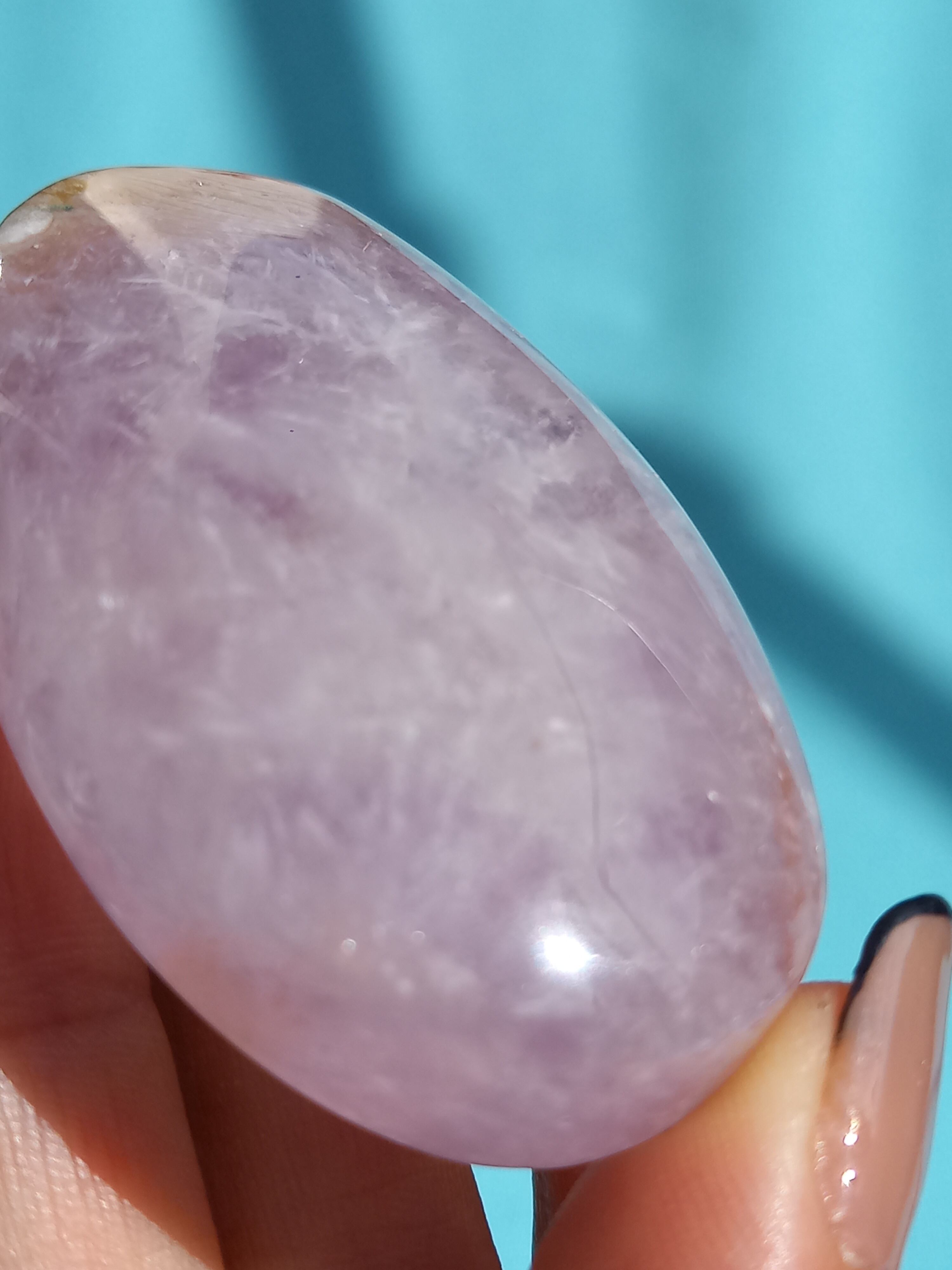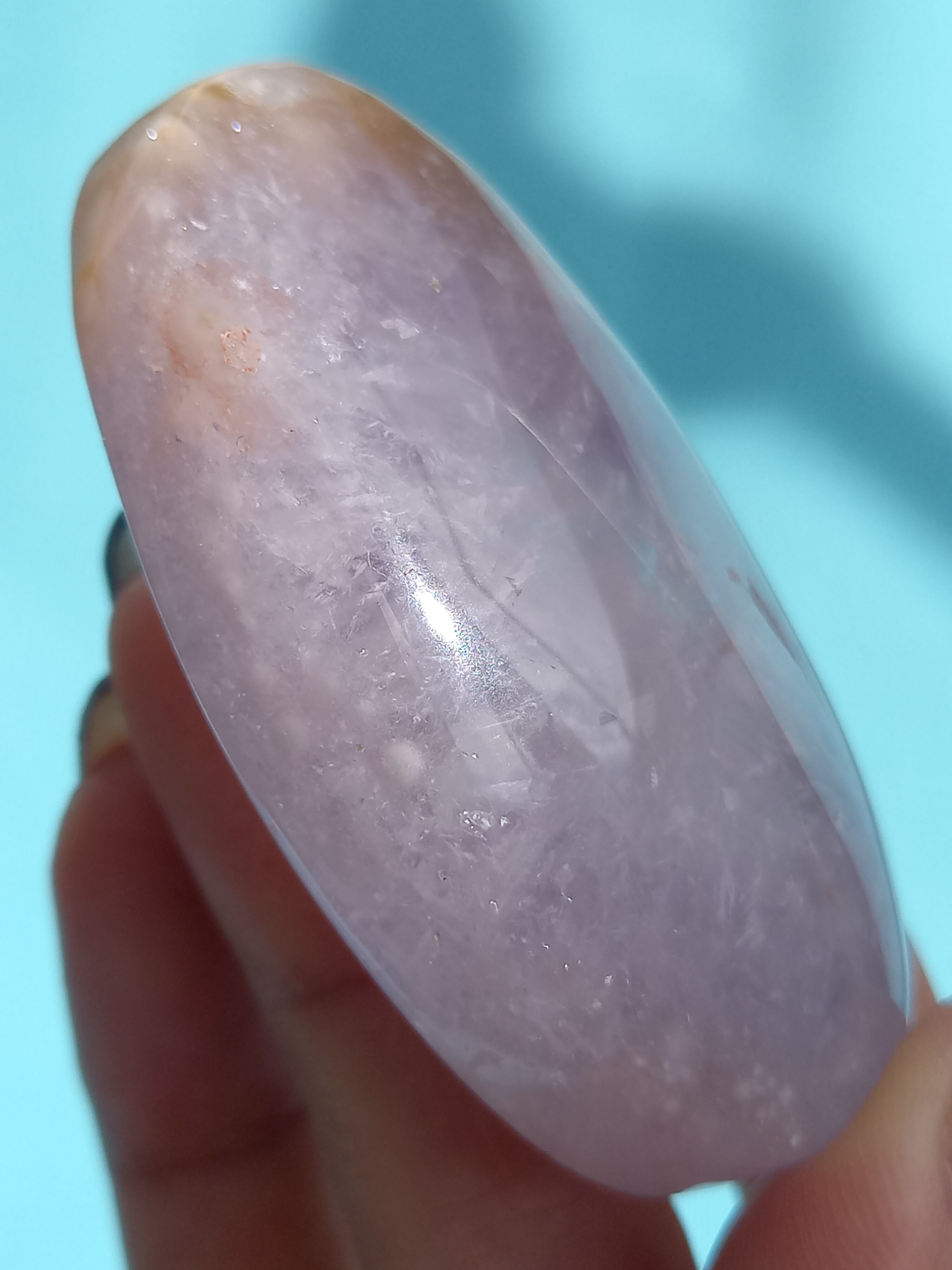 パープルアメジストに、フラワーアゲートが共生したハートパームになります。