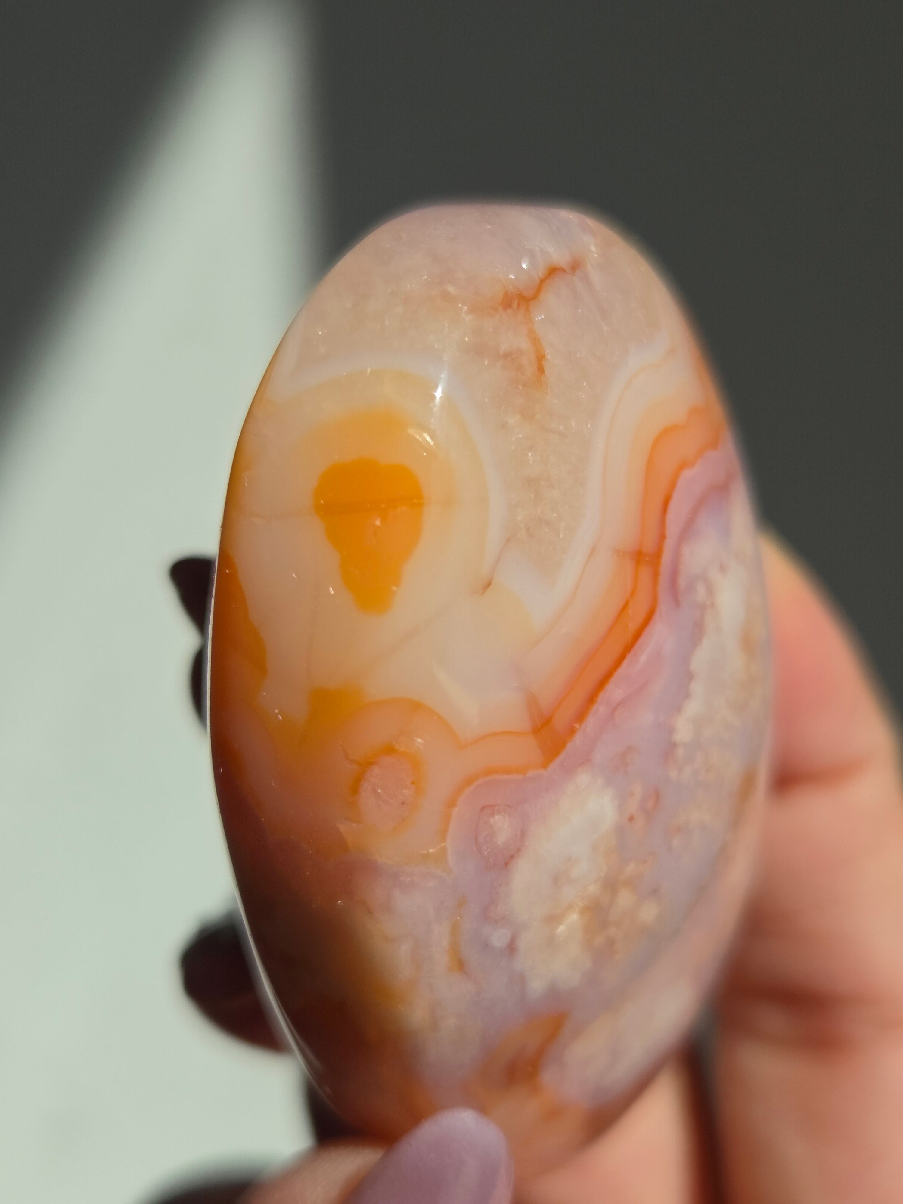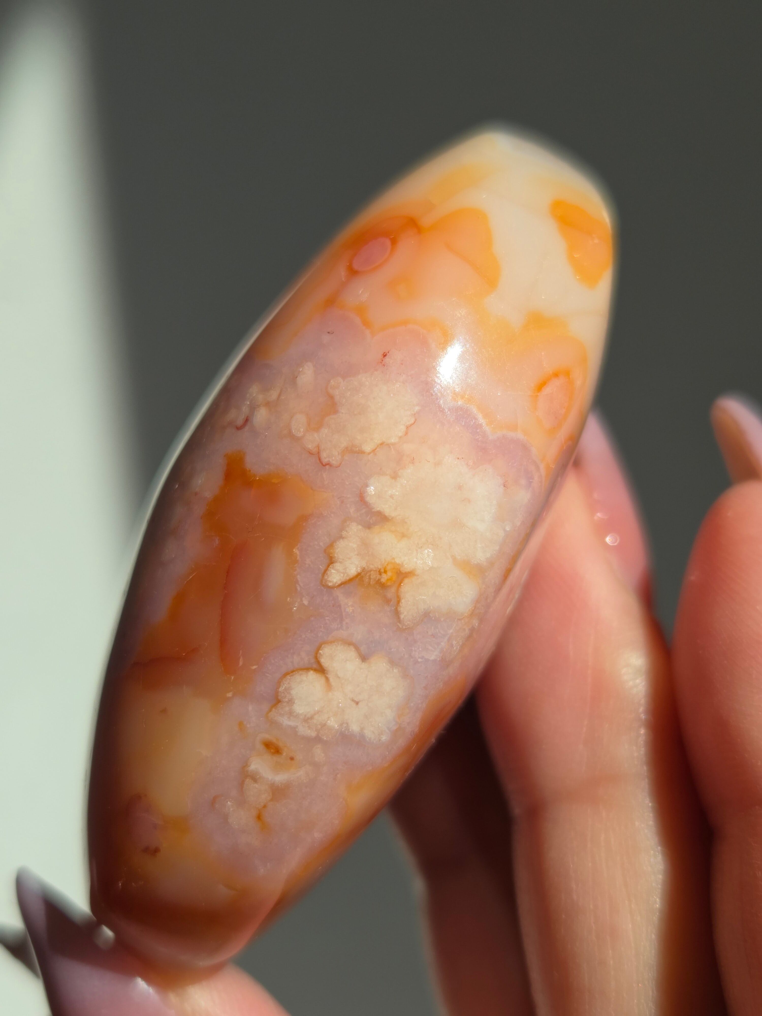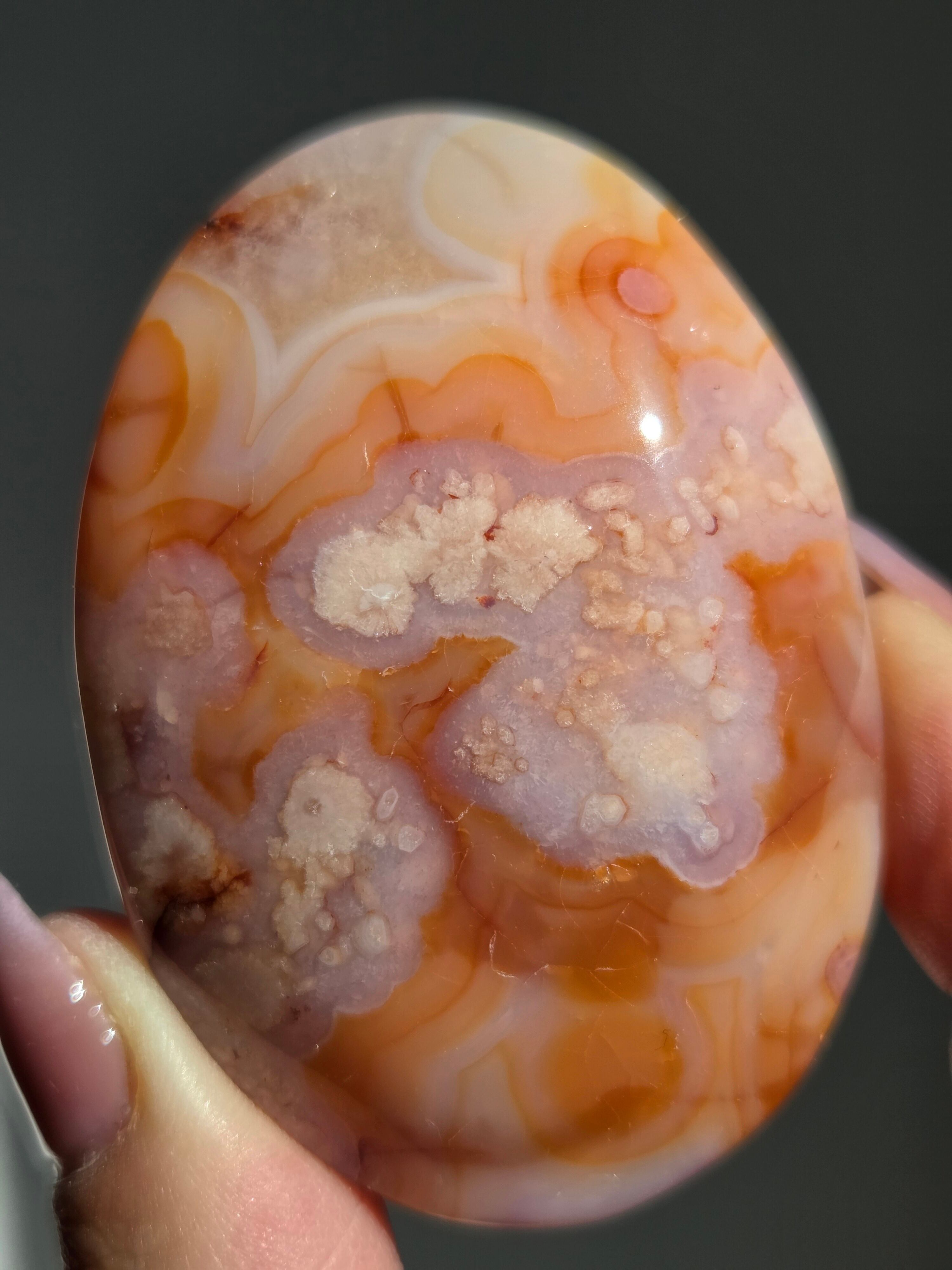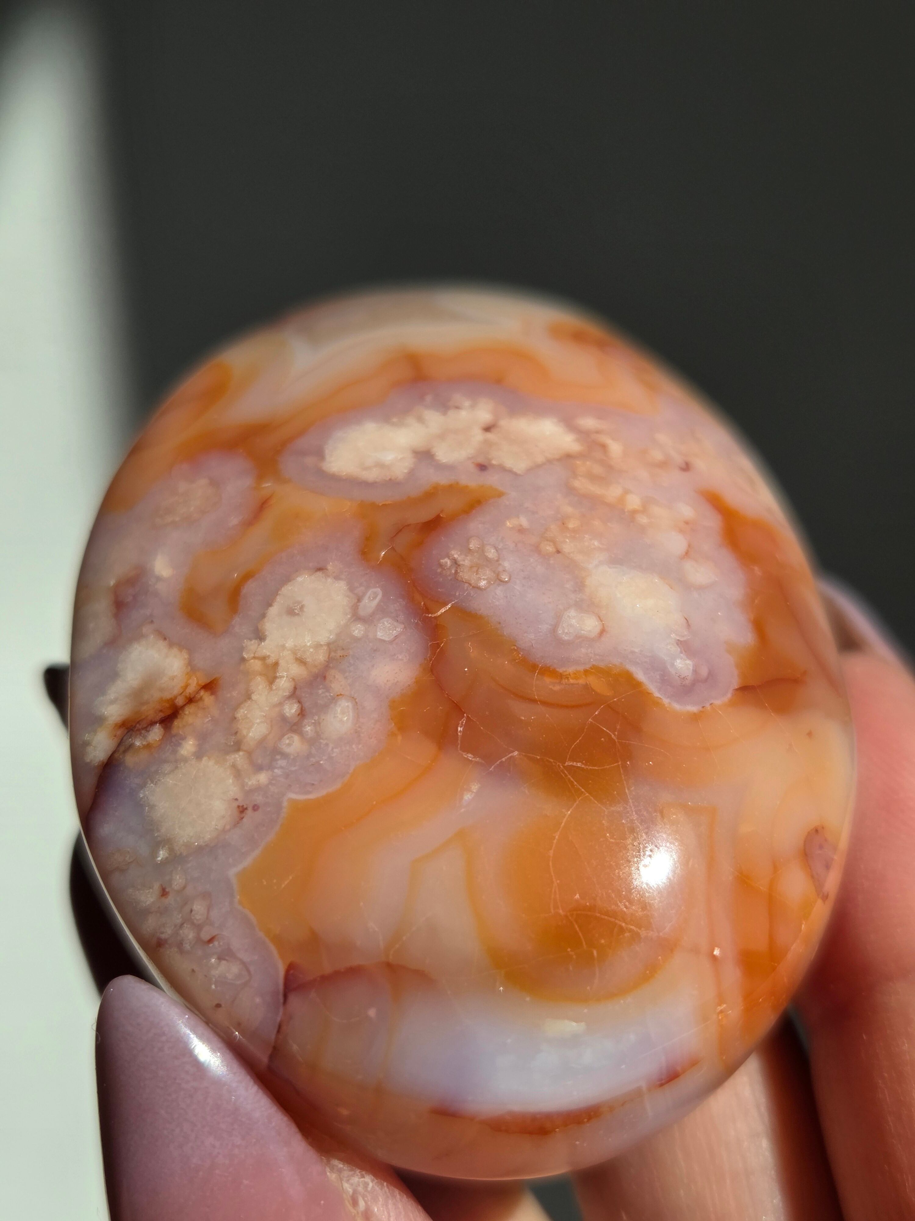 フラワーアゲートは、持ち主をリラックスさせ、心身ともにエネルギーを満たしてくれる効果があると言われています。 心と身体の調和を保つ効果があることから体調を整え、ストレスや不安などのマイナスエネルギーを解消してくれると言われています。