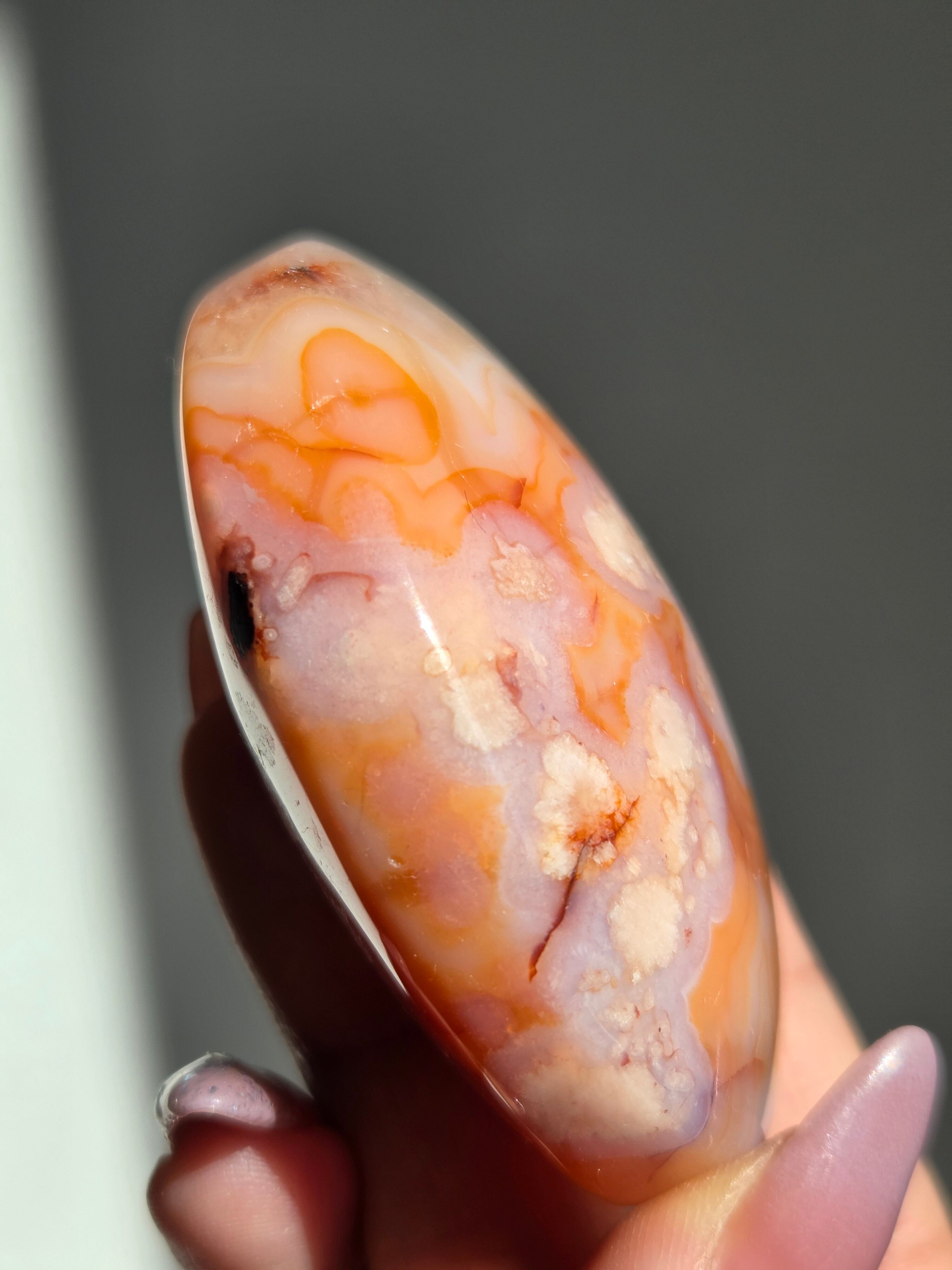 カーネリアンは、「幸運を呼ぶ石」として、古くから宝飾品や彫刻などに加工され、世界中で愛されてきました。「成功」や「勇気」といった力強い石言葉を持ち、成功を引き寄せるパワーストーンとしても高い人気があります。