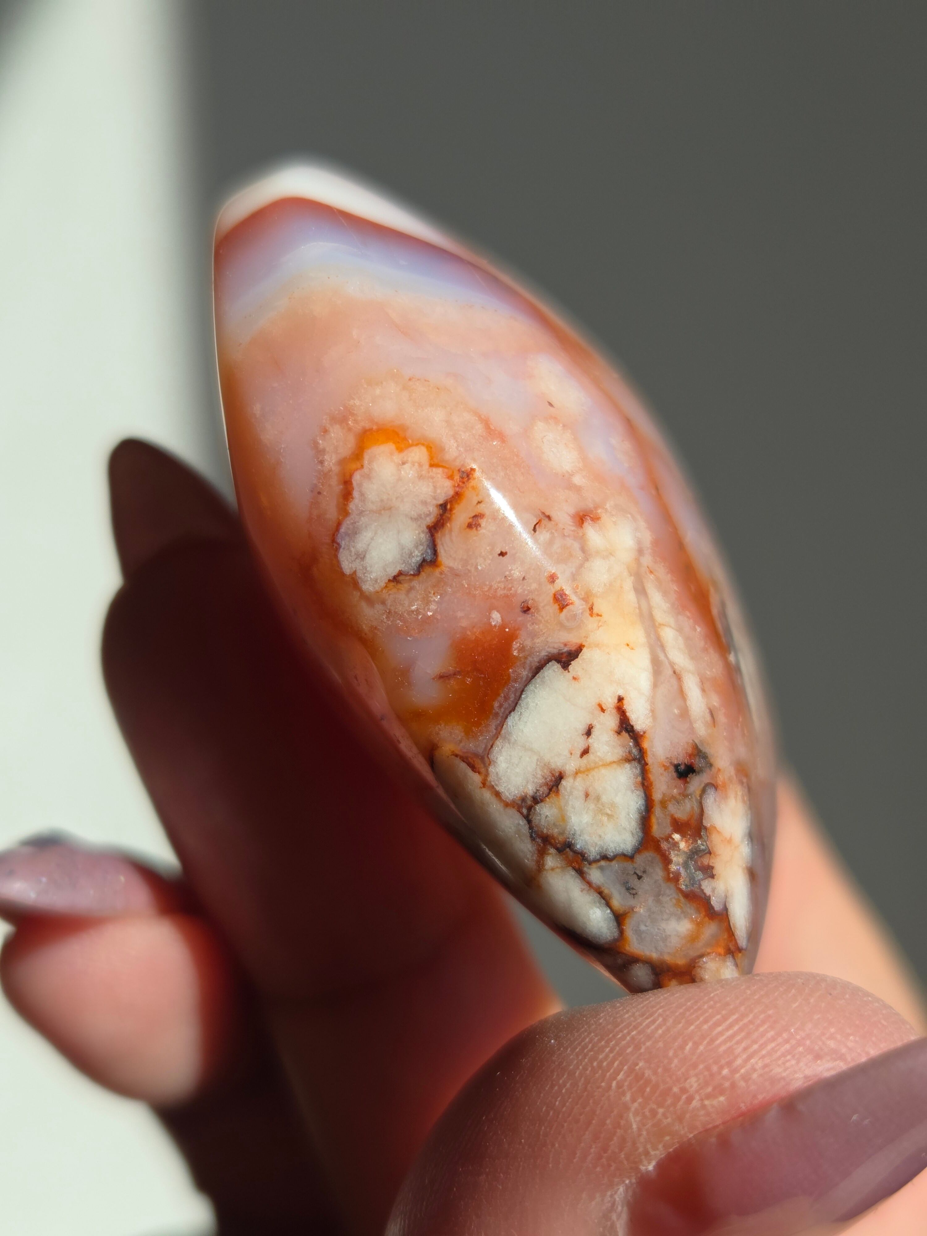 カーネリアン×フラワーアゲートハートパームです。