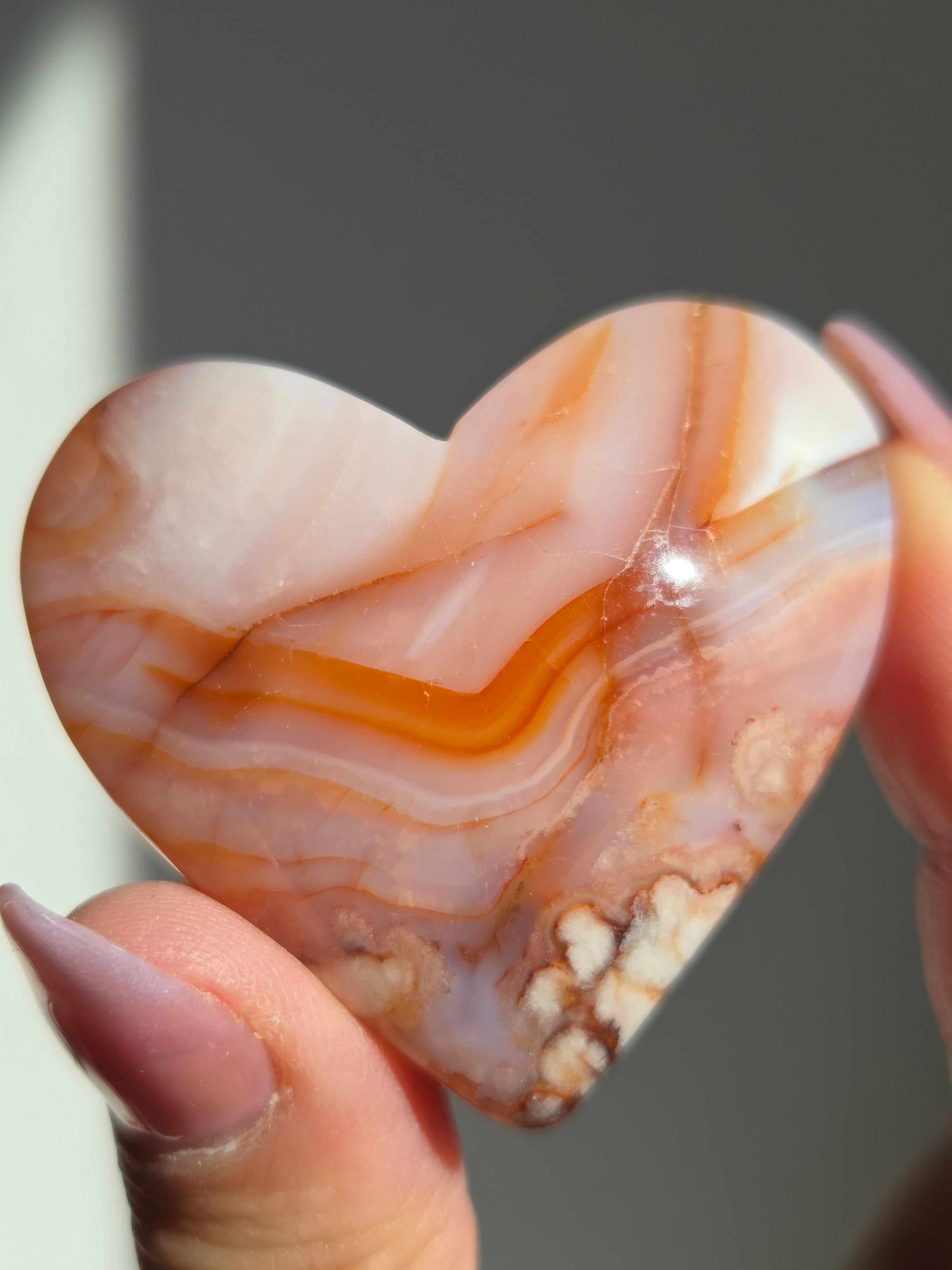 カーネリアン×フラワーアゲート共生ハートパーム