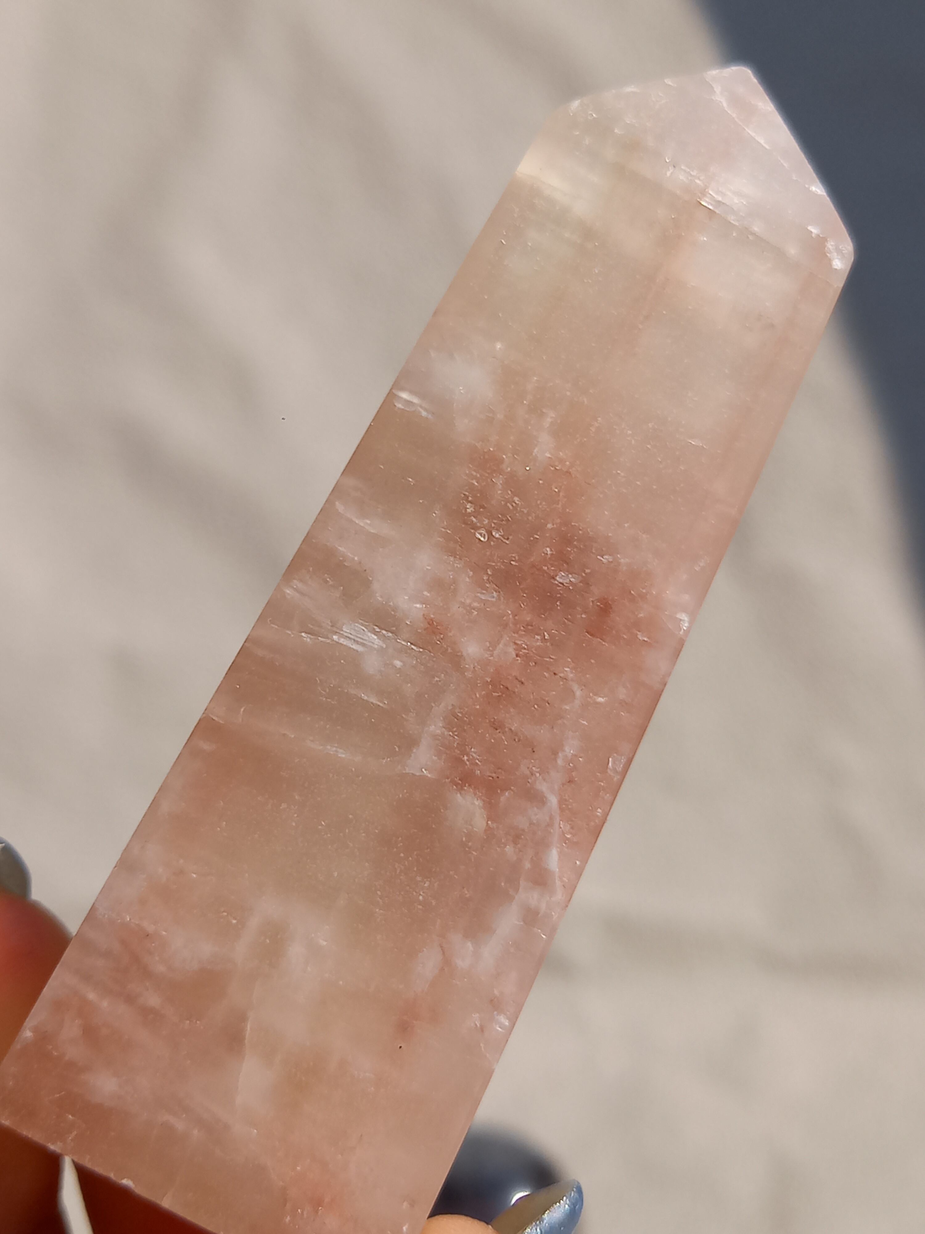 パキスタン産ピンクアラゴナイトポイントタワーです。