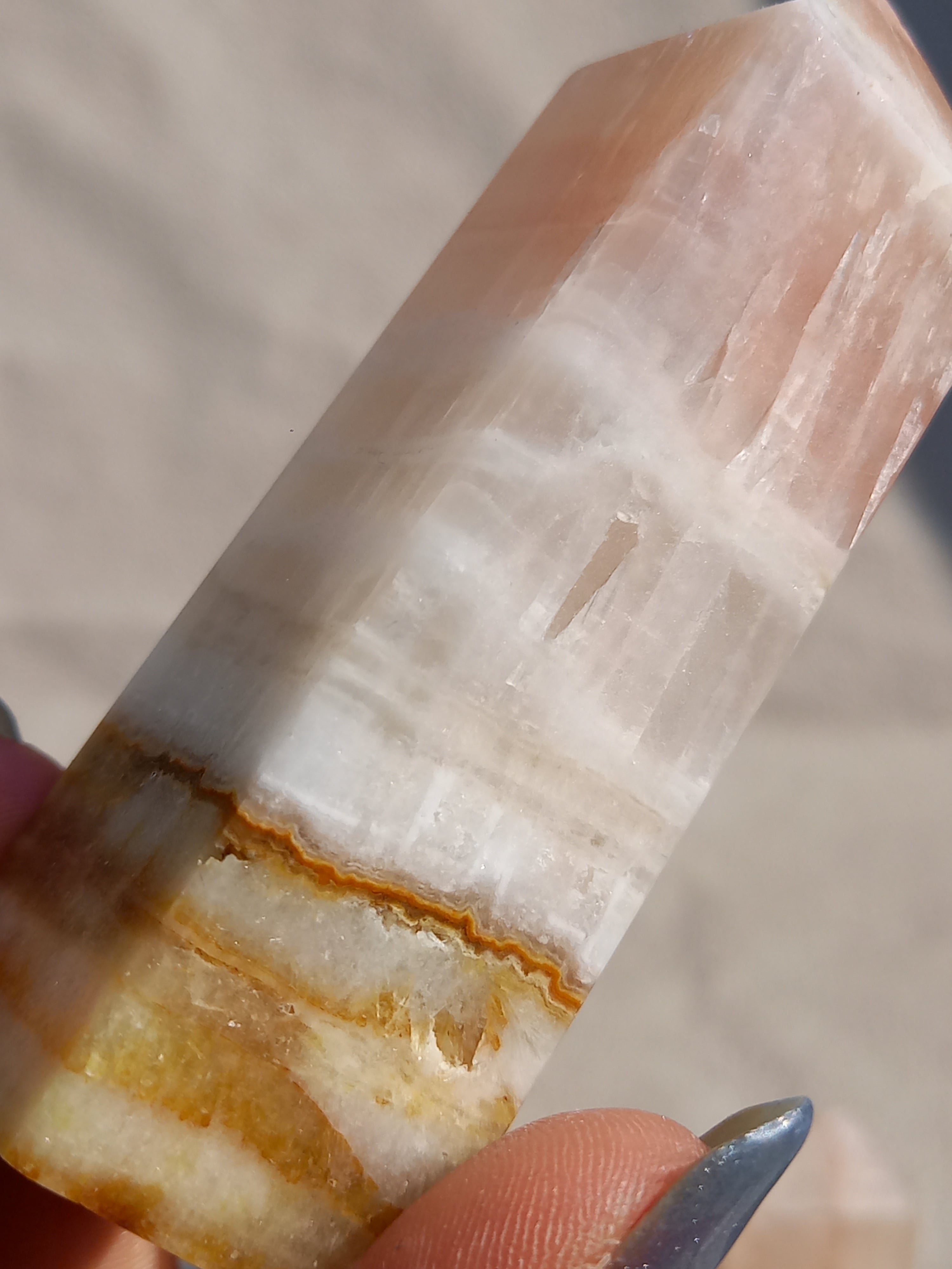パキスタン産ピンクアラゴナイトポイントタワーです。