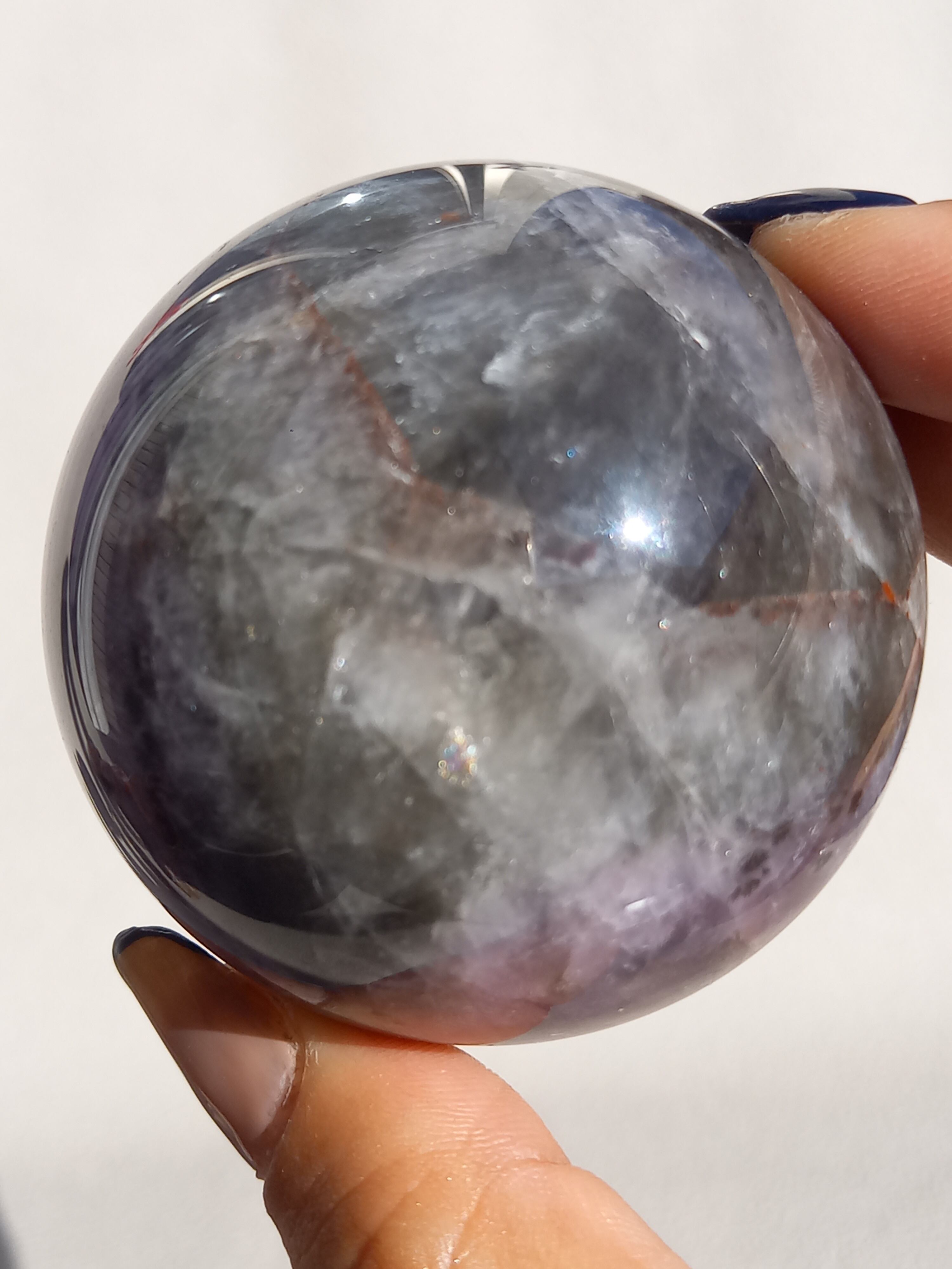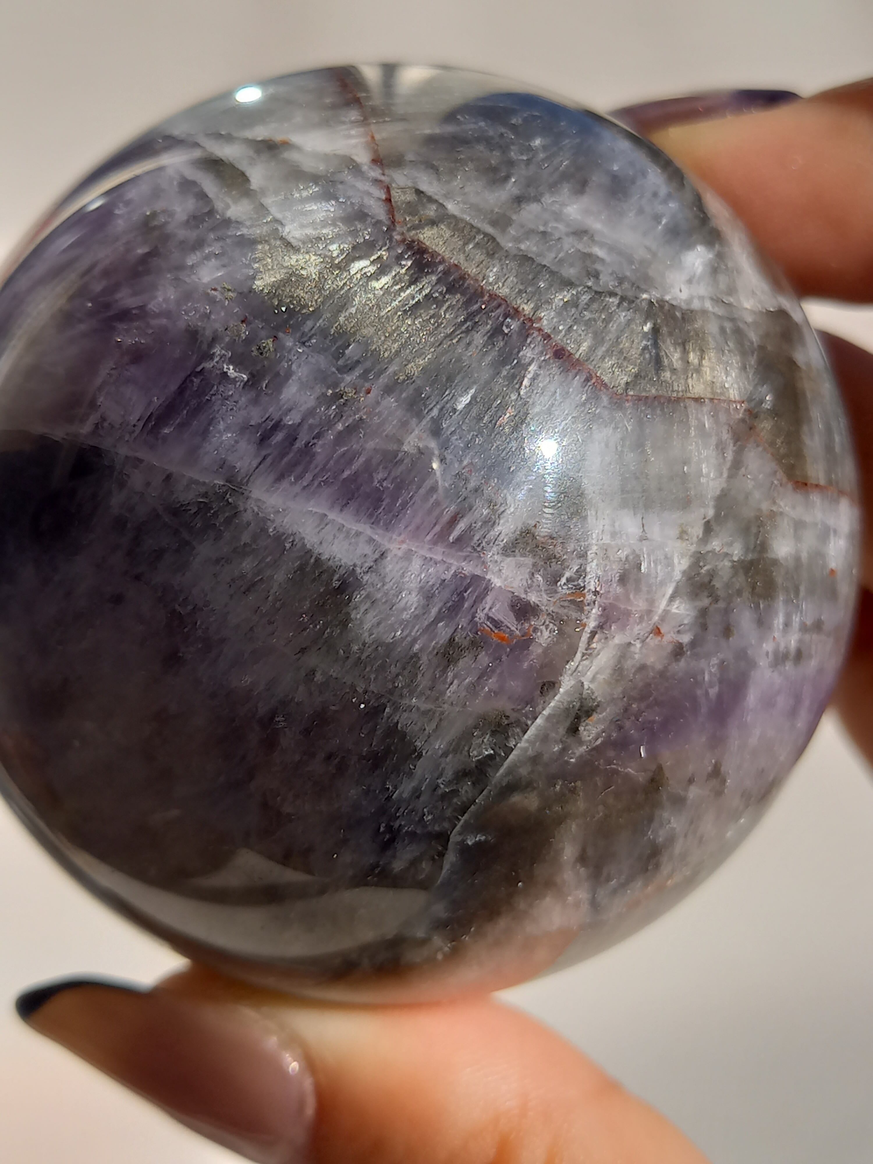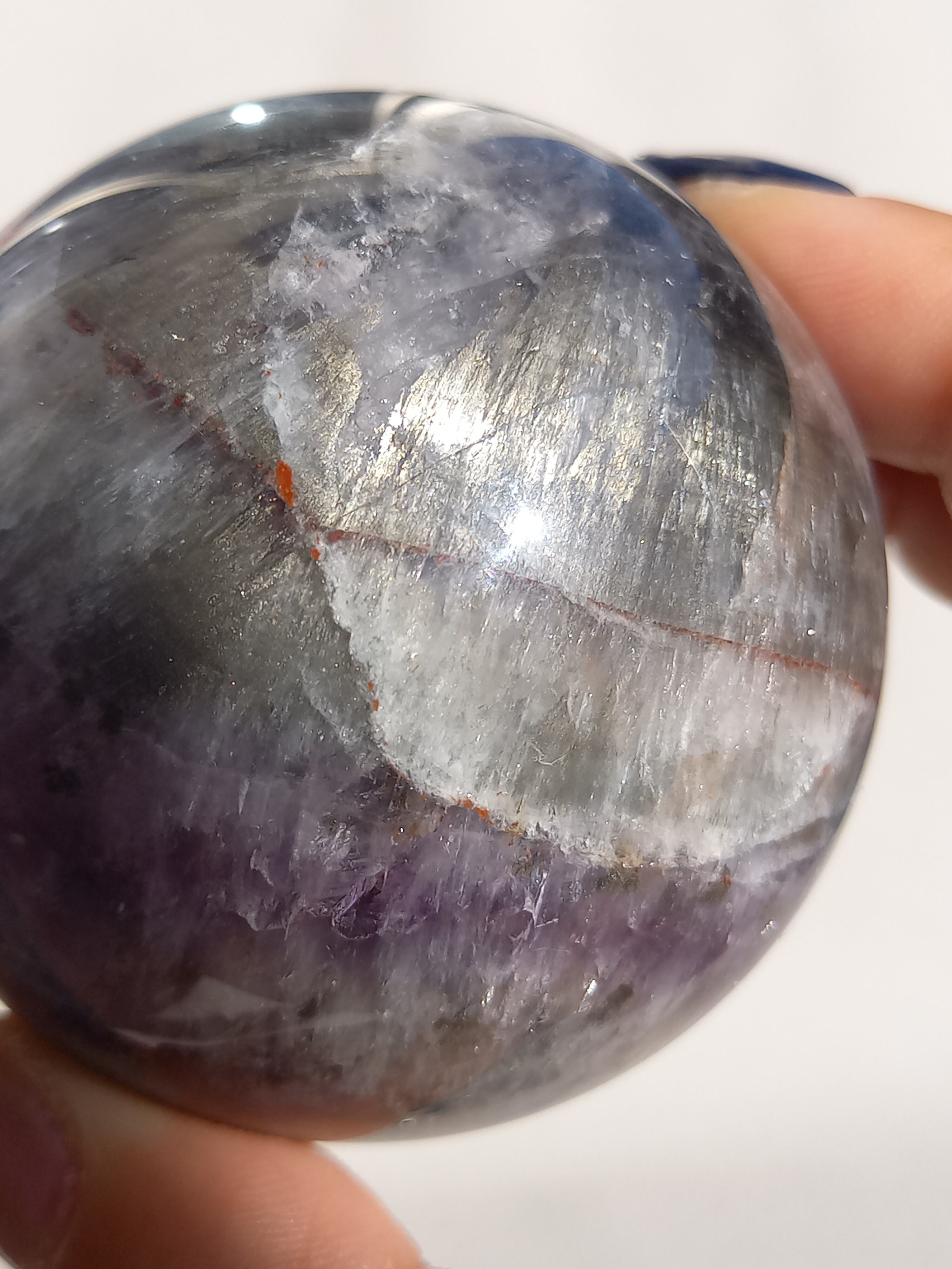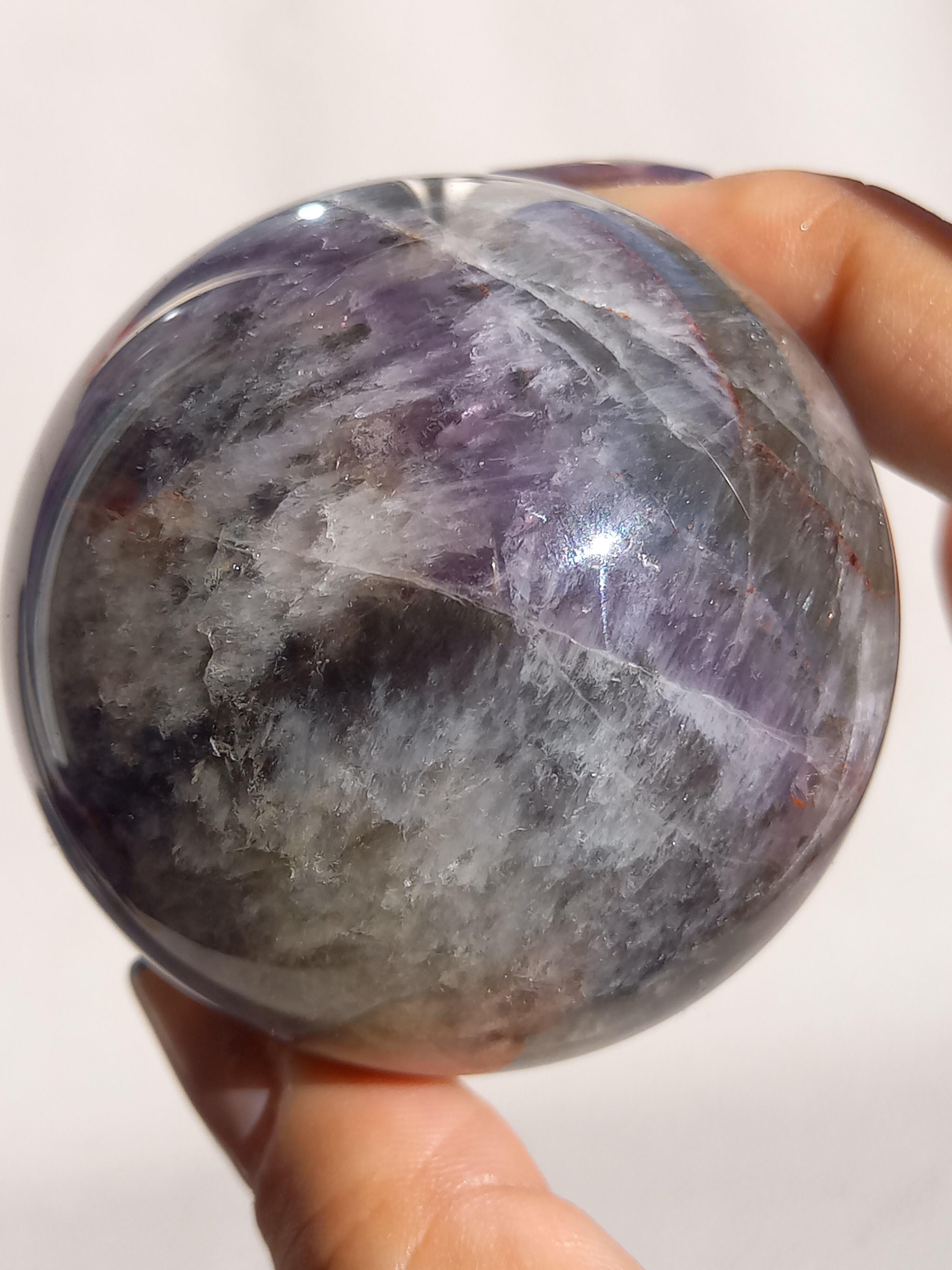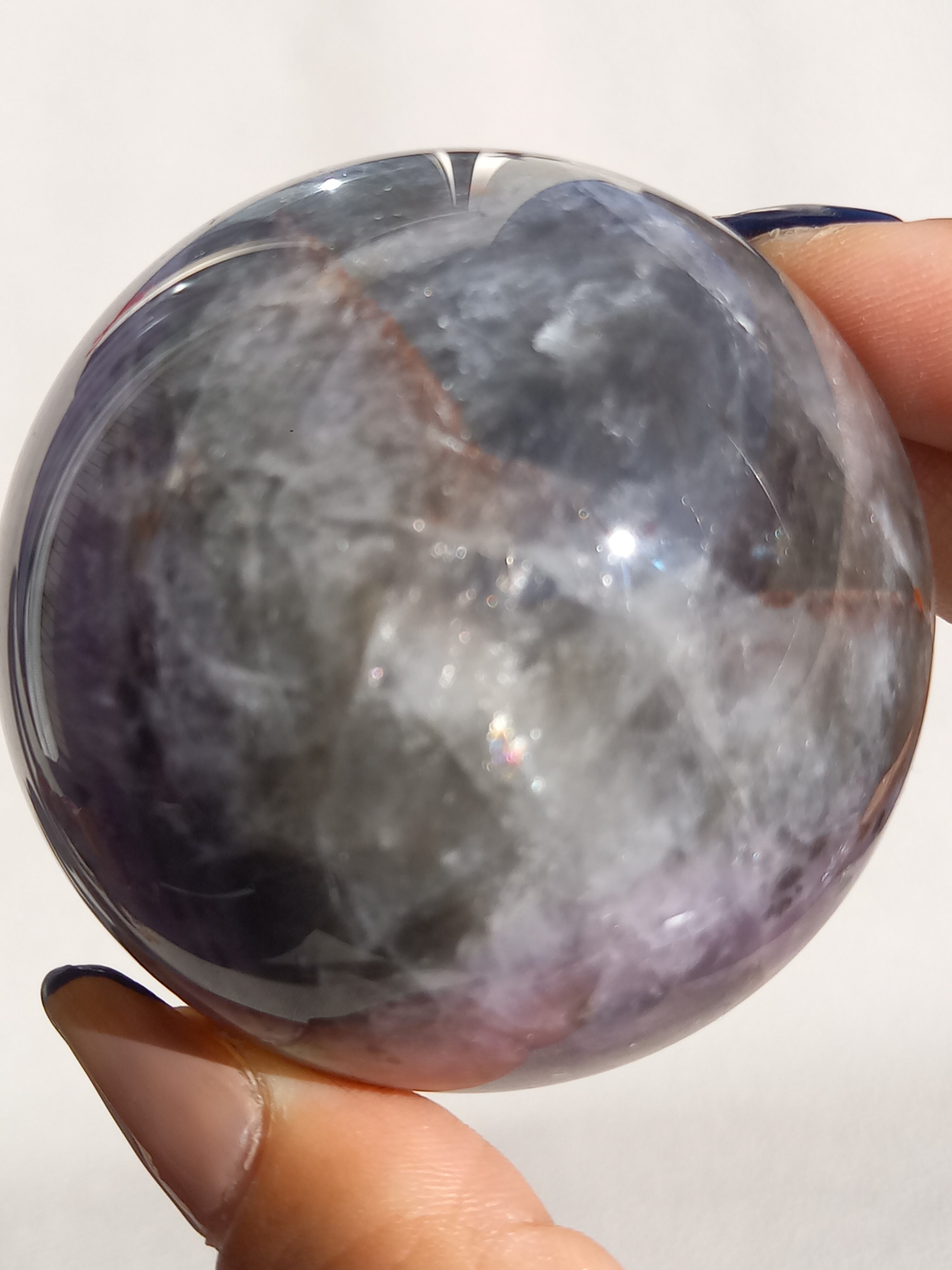 そのため、茶色や赤色のインクルージョンがある紫色のアメジストのような外見をしており、中にはアメジストと見間違えるものもあるぐらいです。