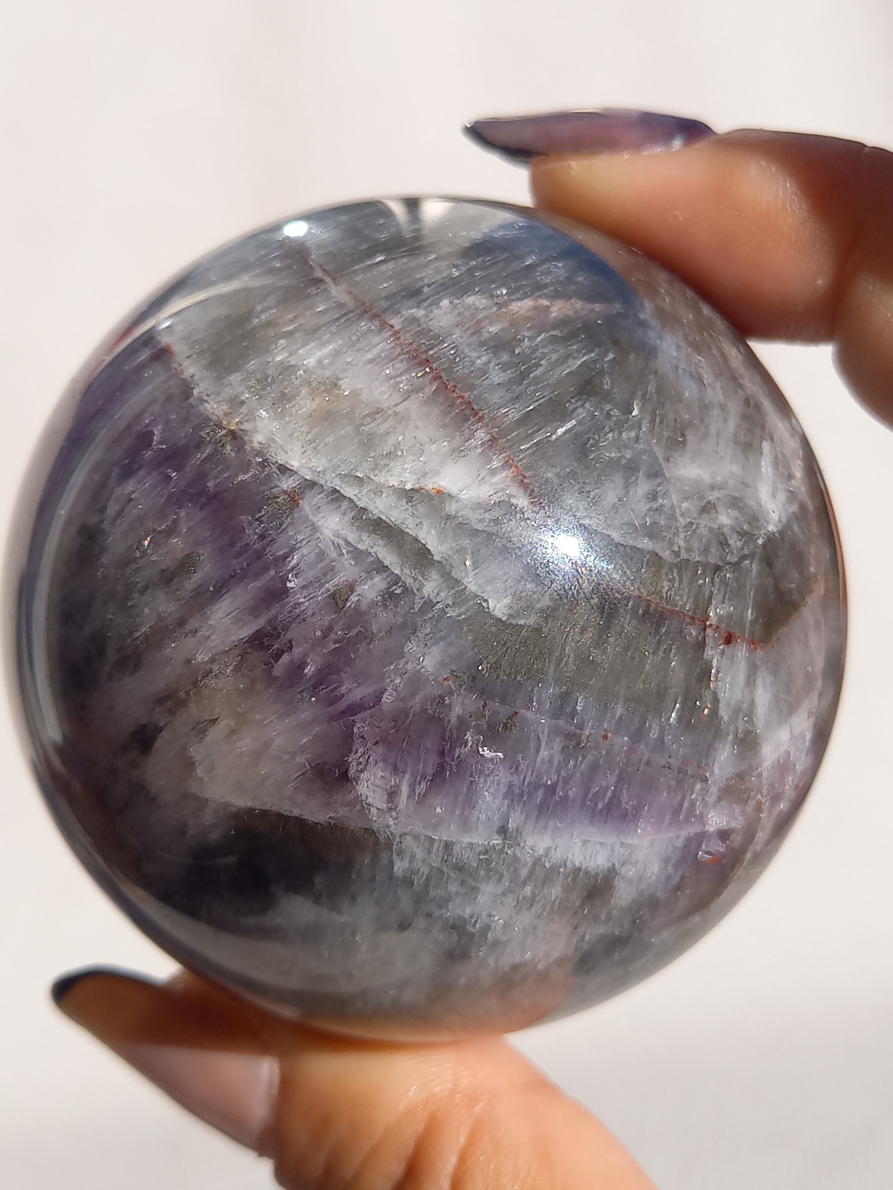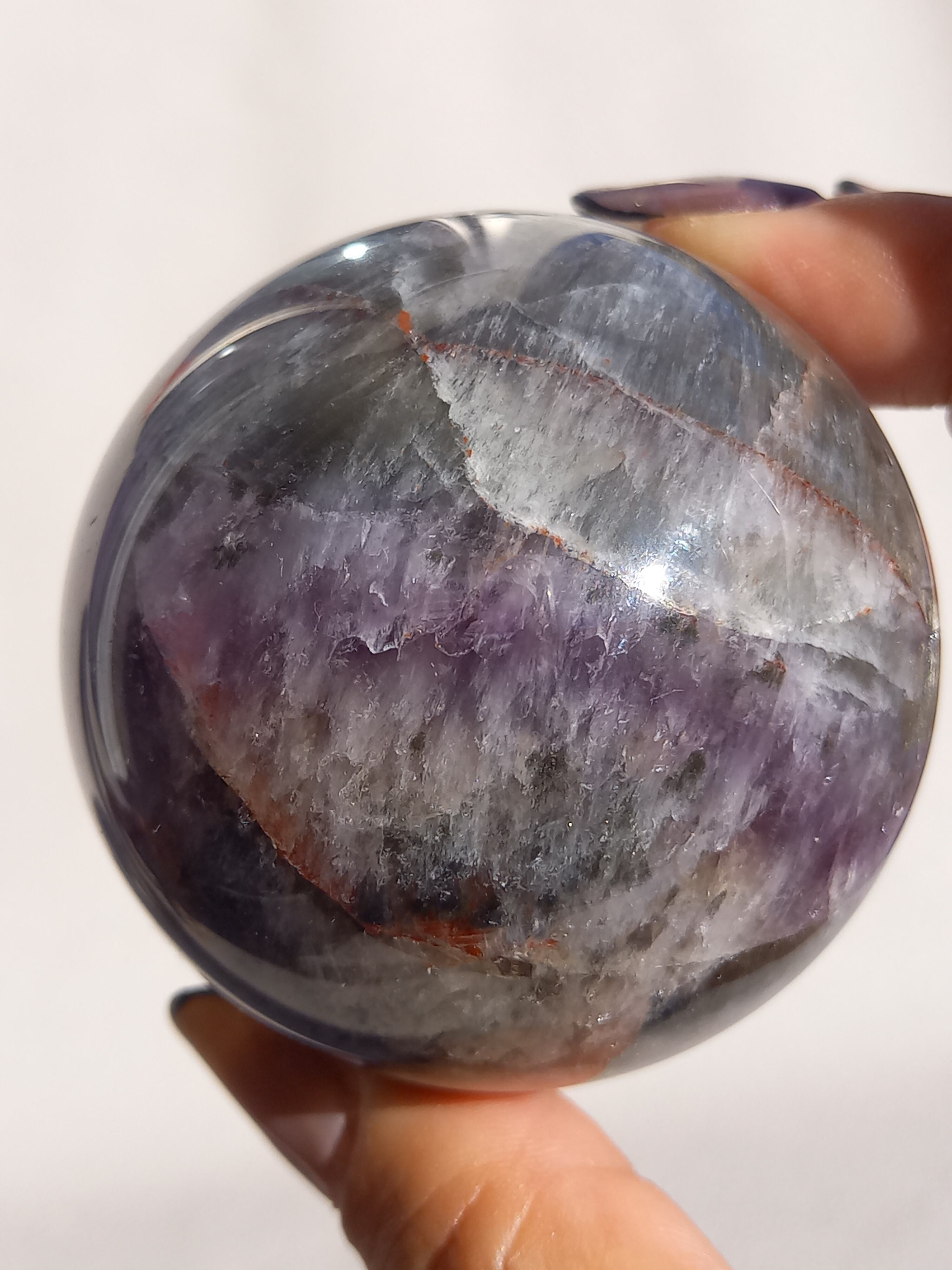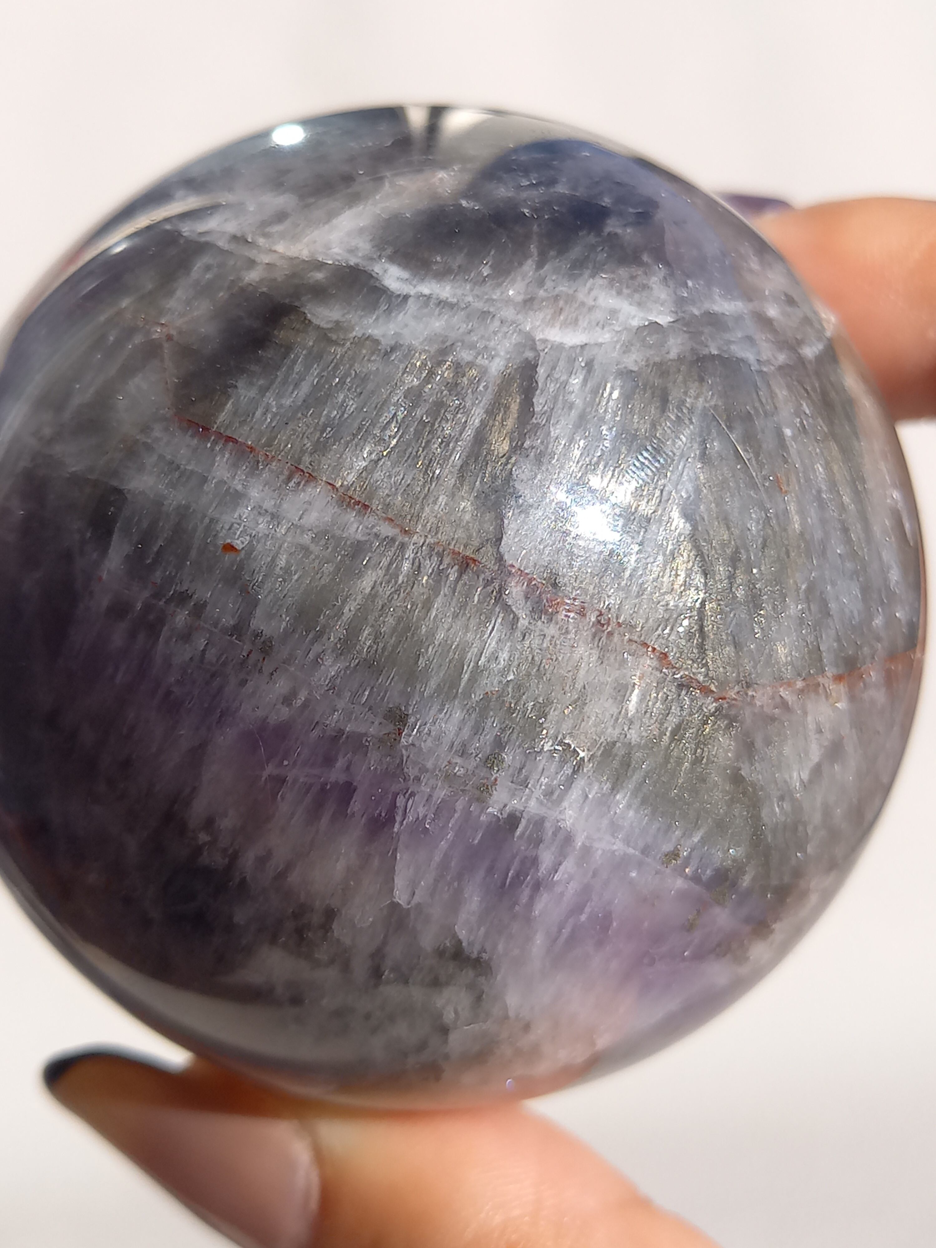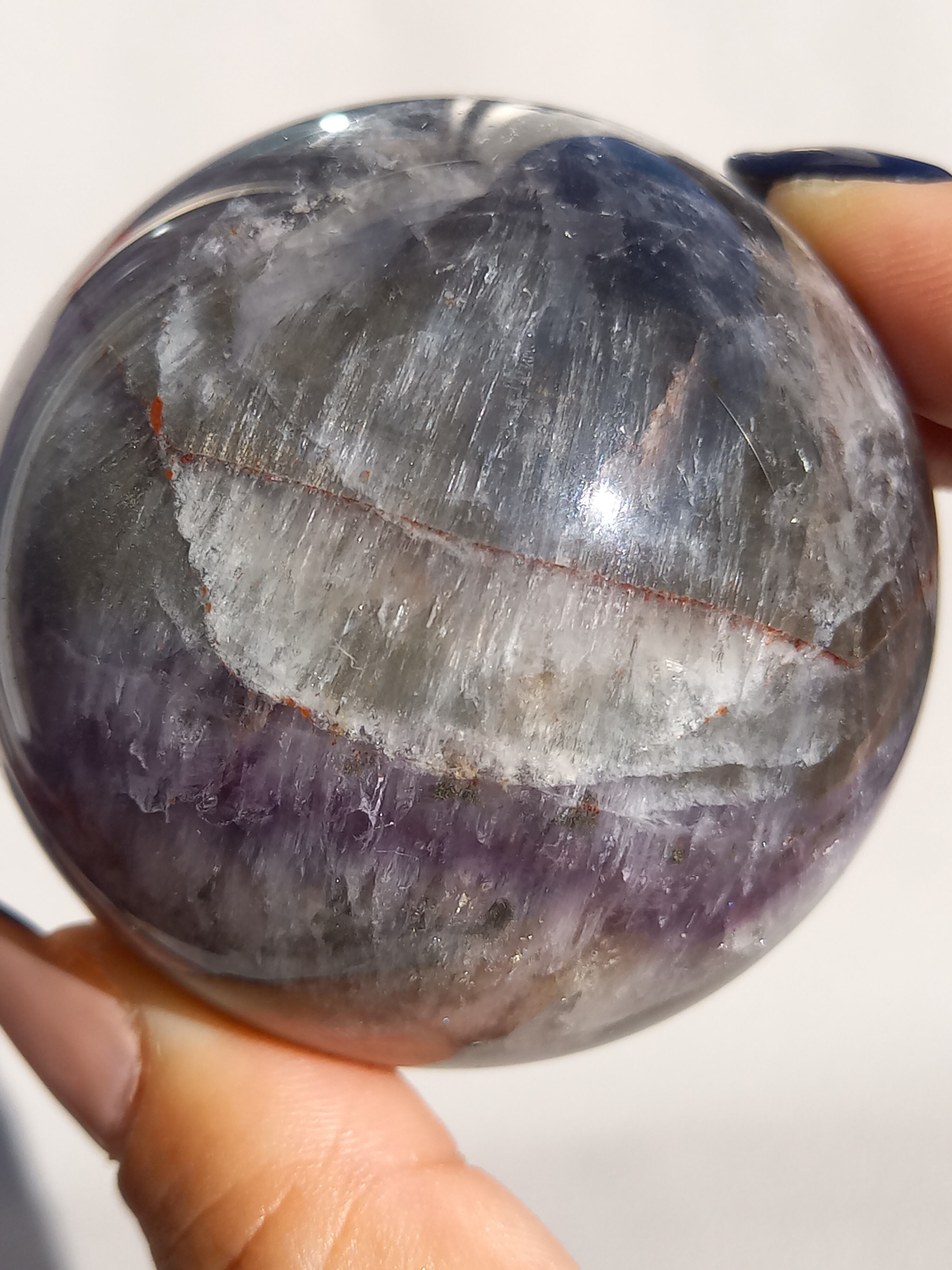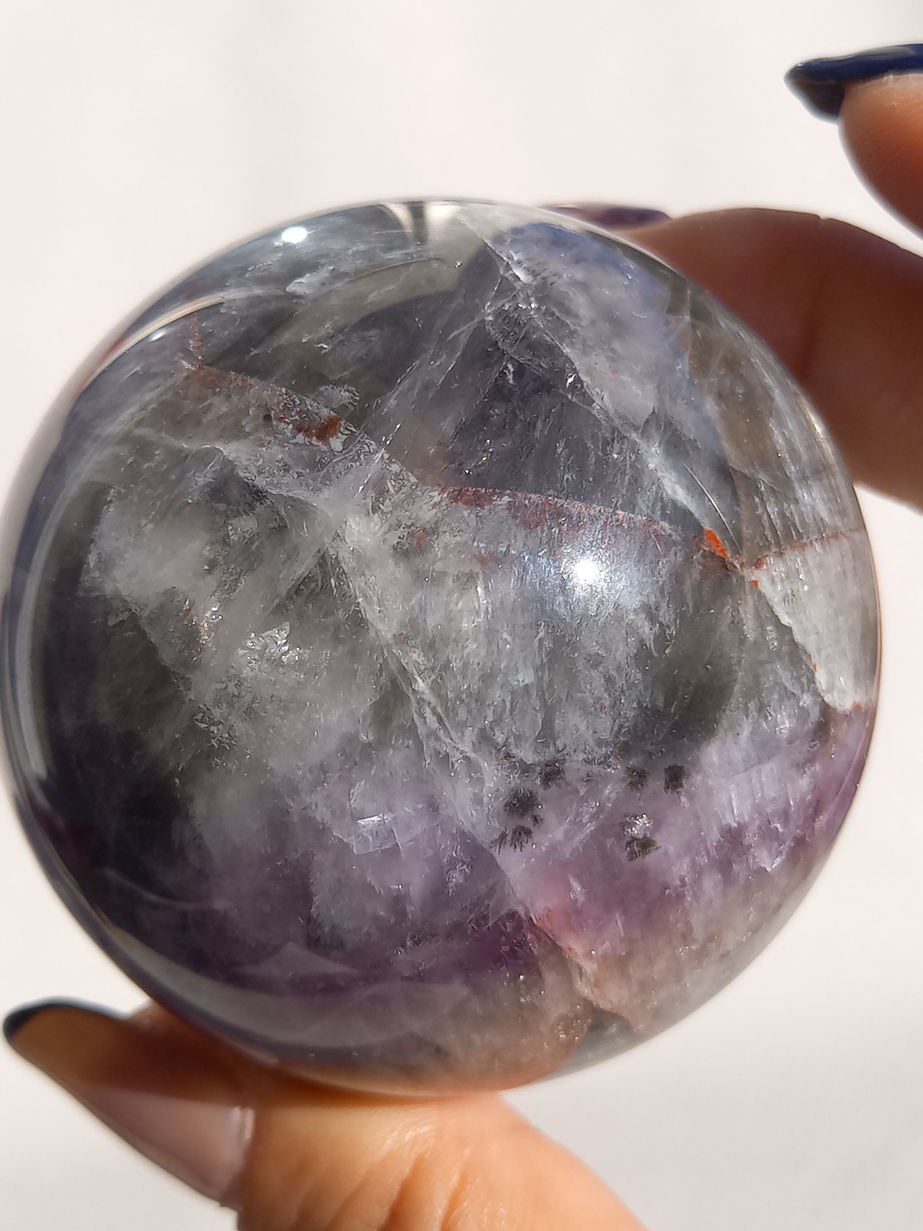 そのため、茶色や赤色のインクルージョンがある紫色のアメジストのような外見をしており、中にはアメジストと見間違えるものもあるぐらいです。