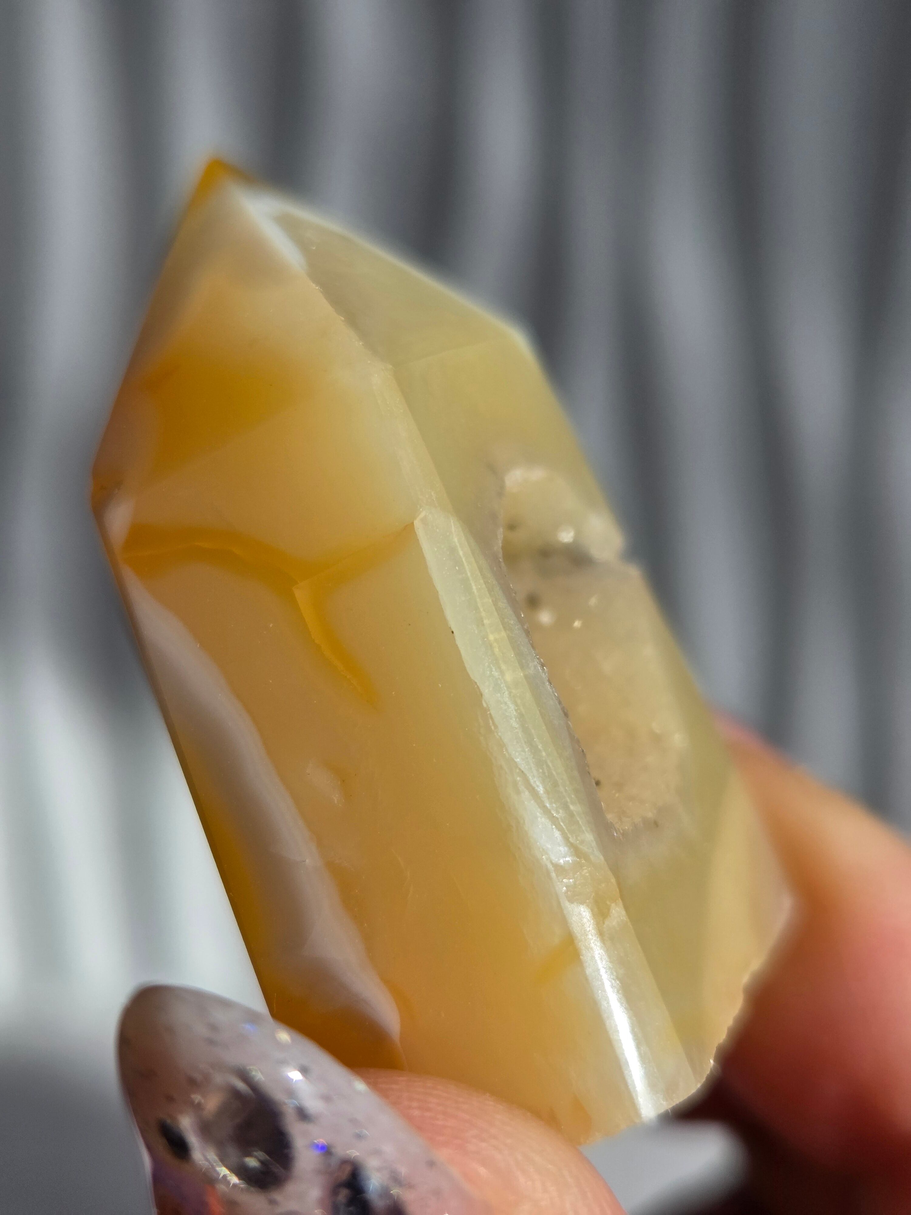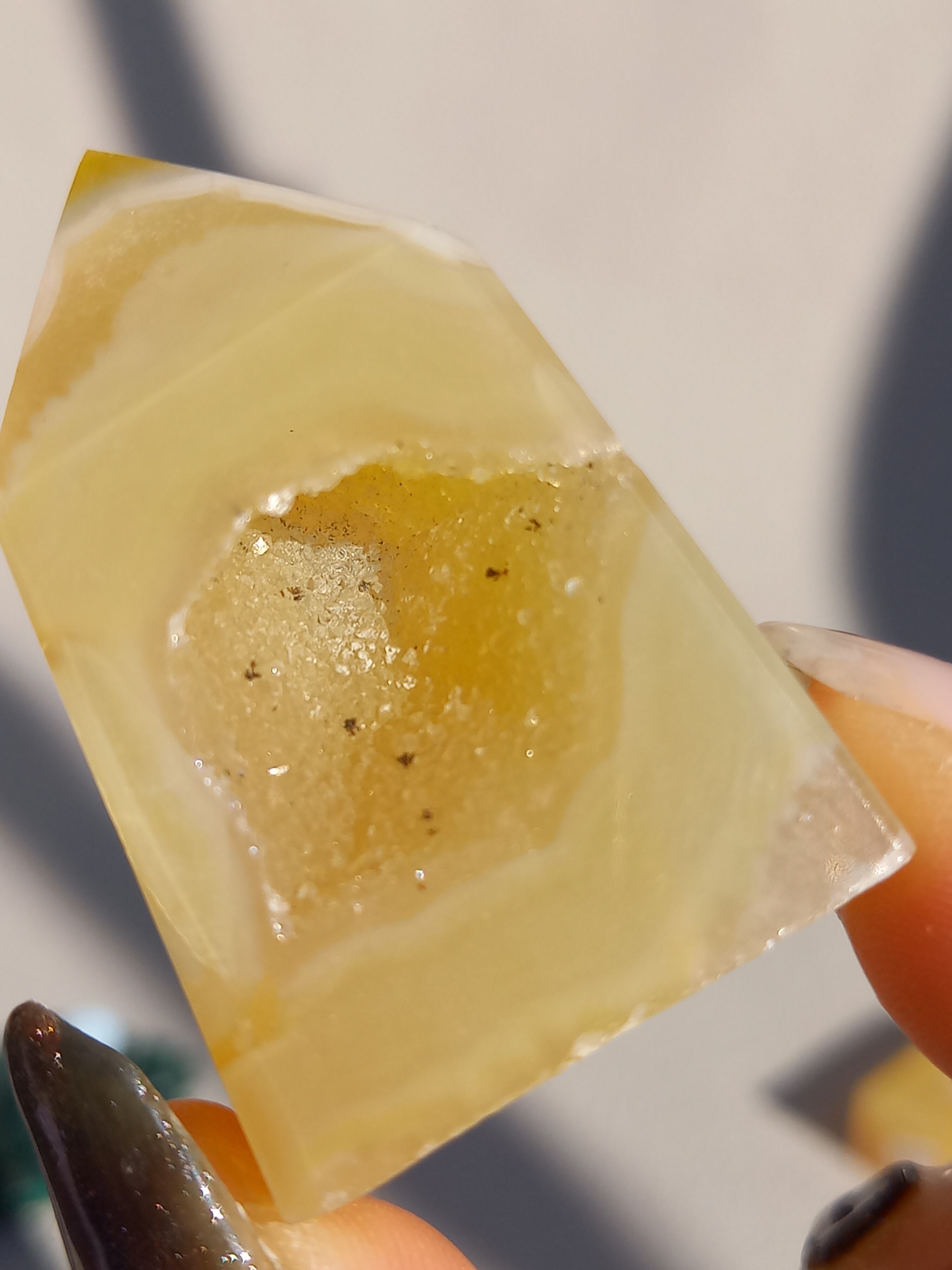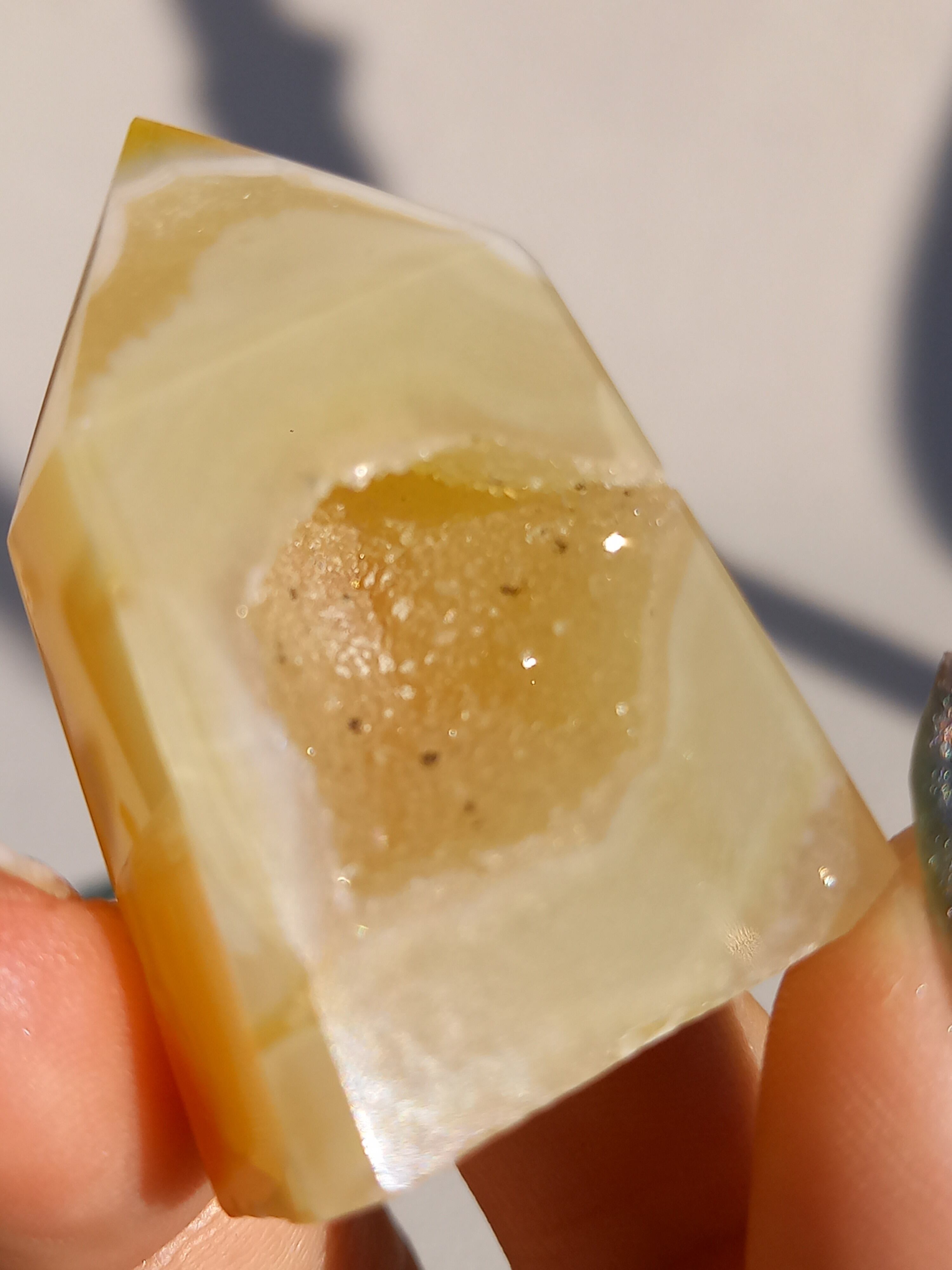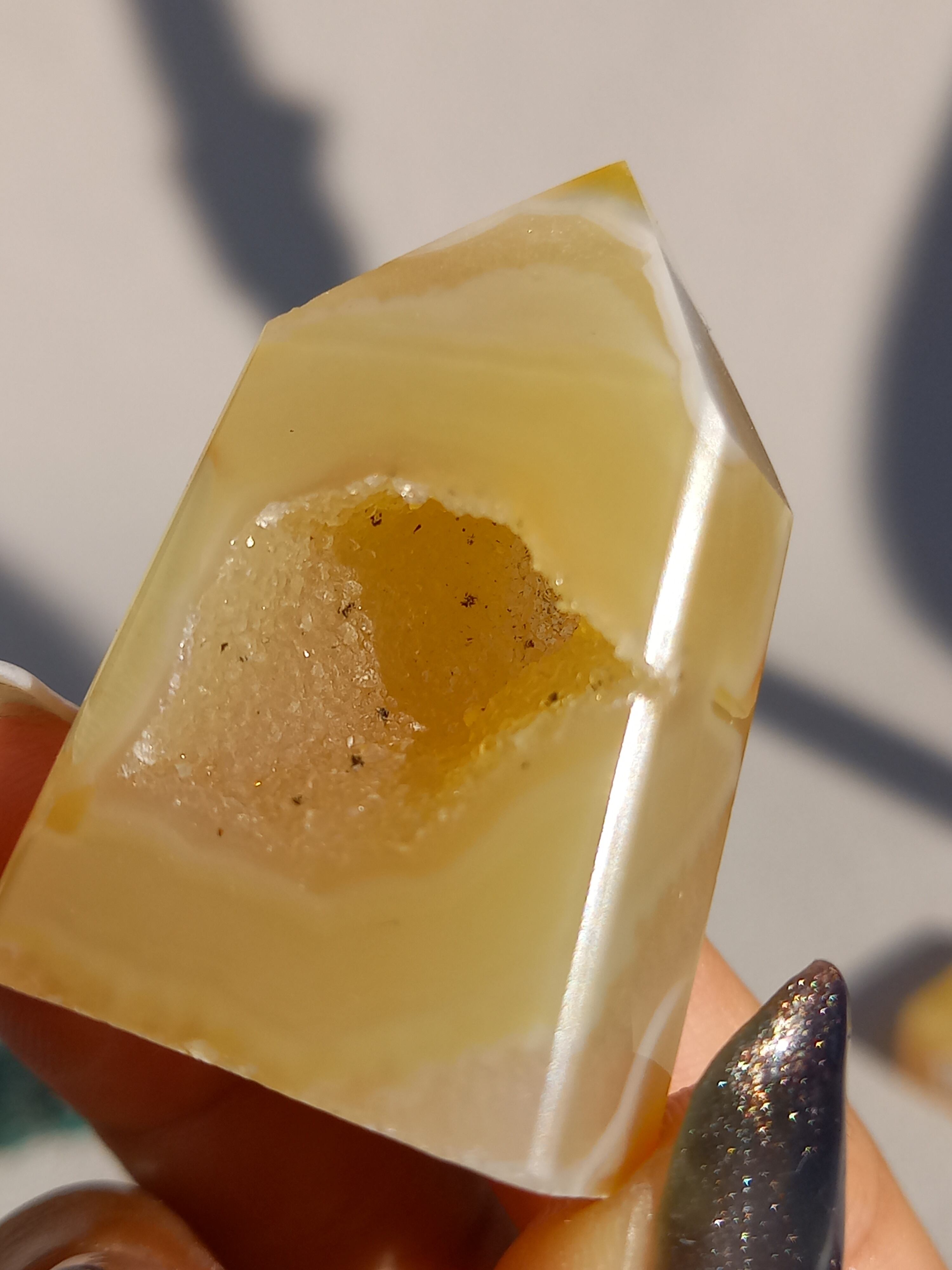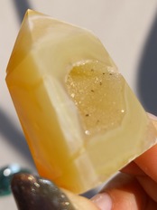 イエローカラーが、とっても可愛い、黄色瑪瑙です。ジオード部分と、小さめサイズが、ちょこんとキュートです。