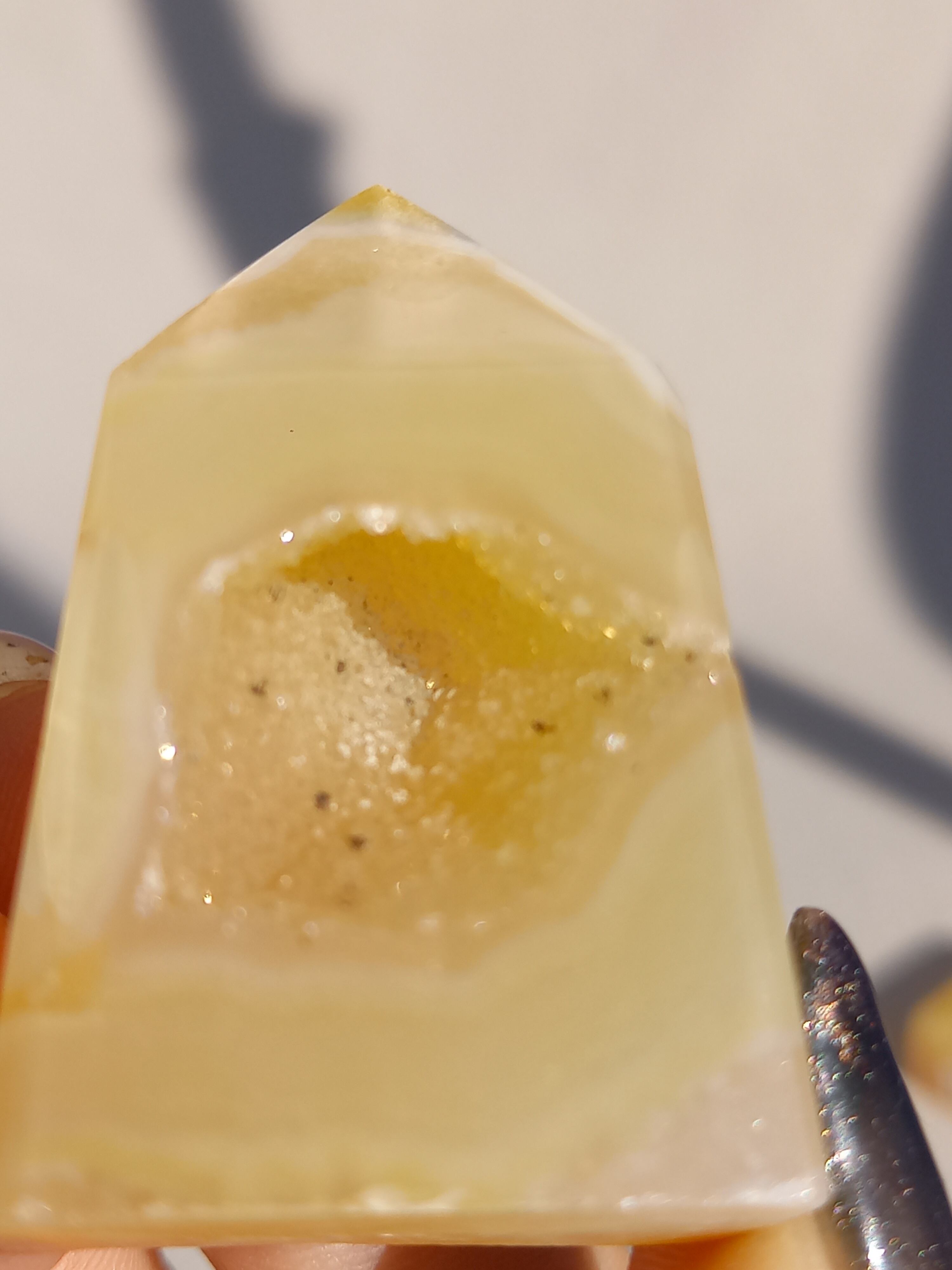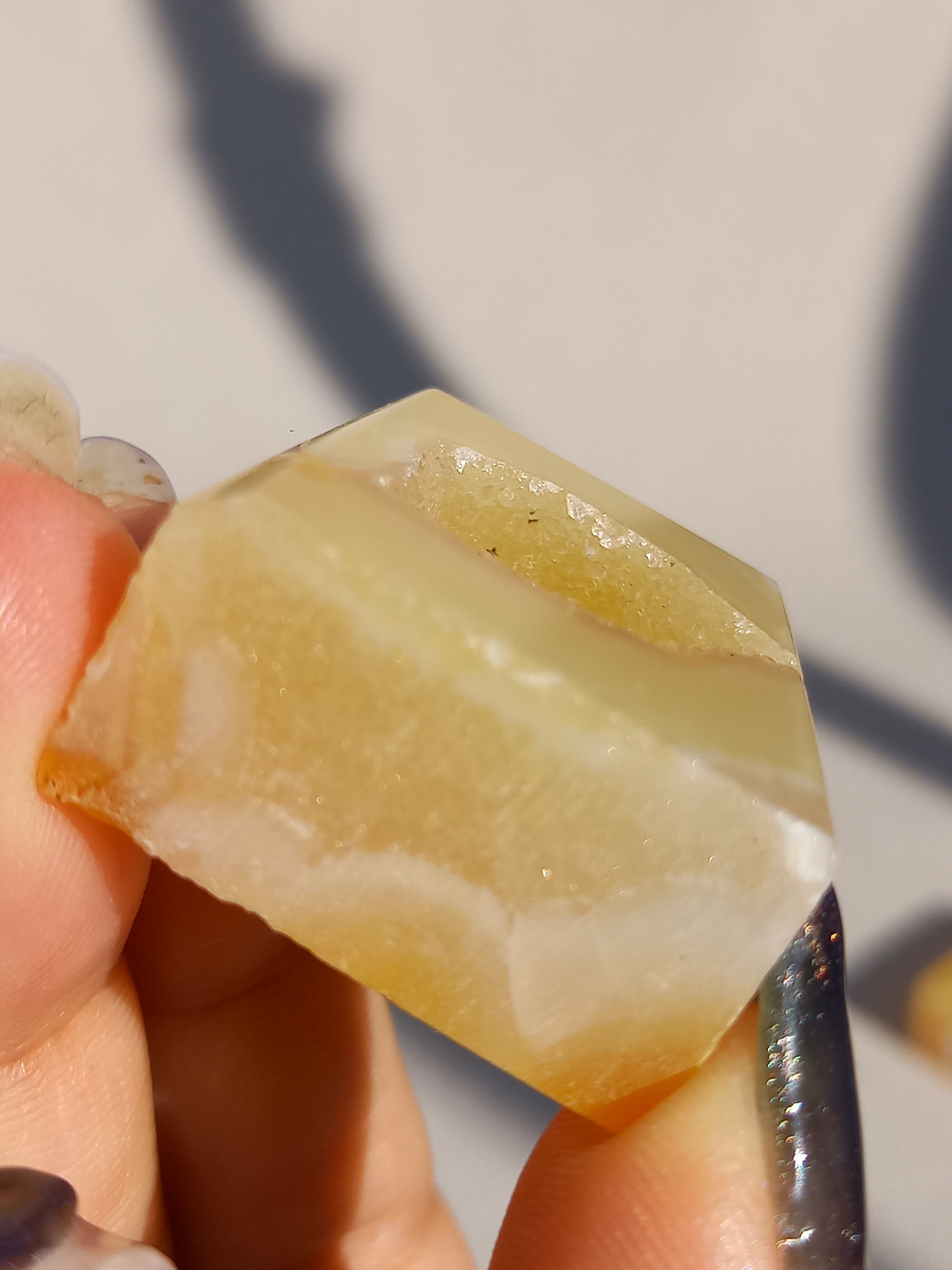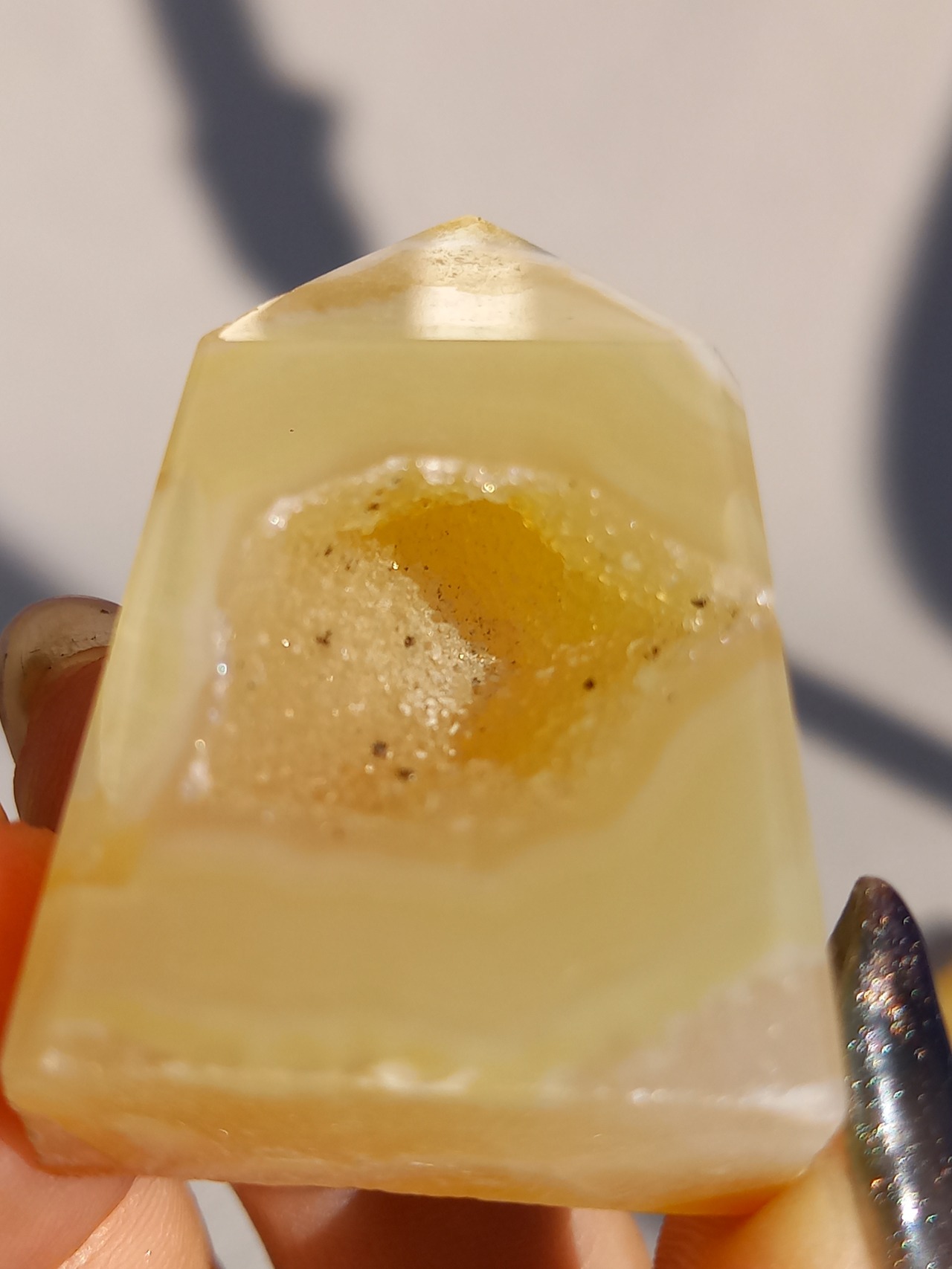 イエローカラーが、とっても可愛い、黄色瑪瑙です。ジオード部分と、小さめサイズが、ちょこんとキュートです。