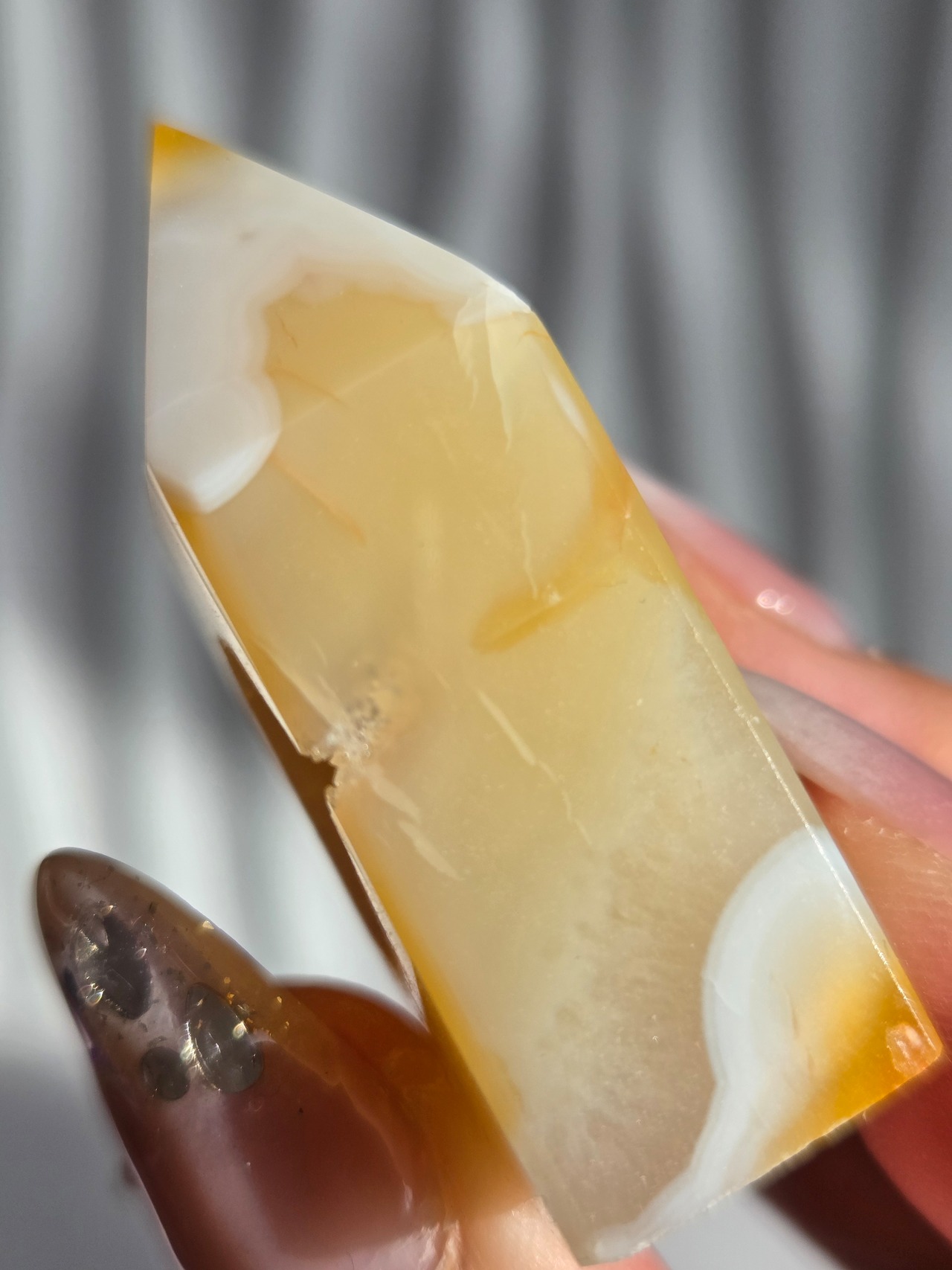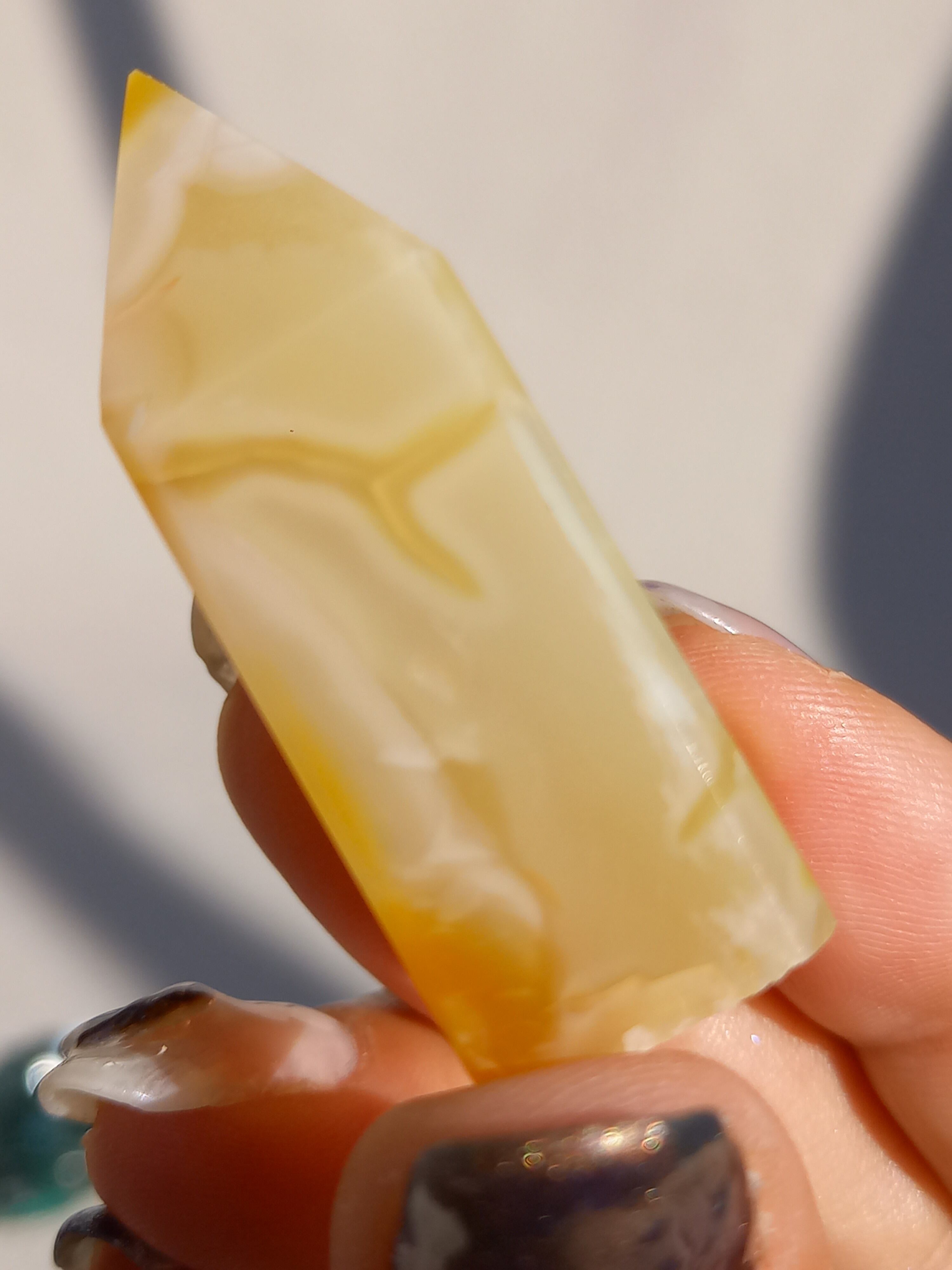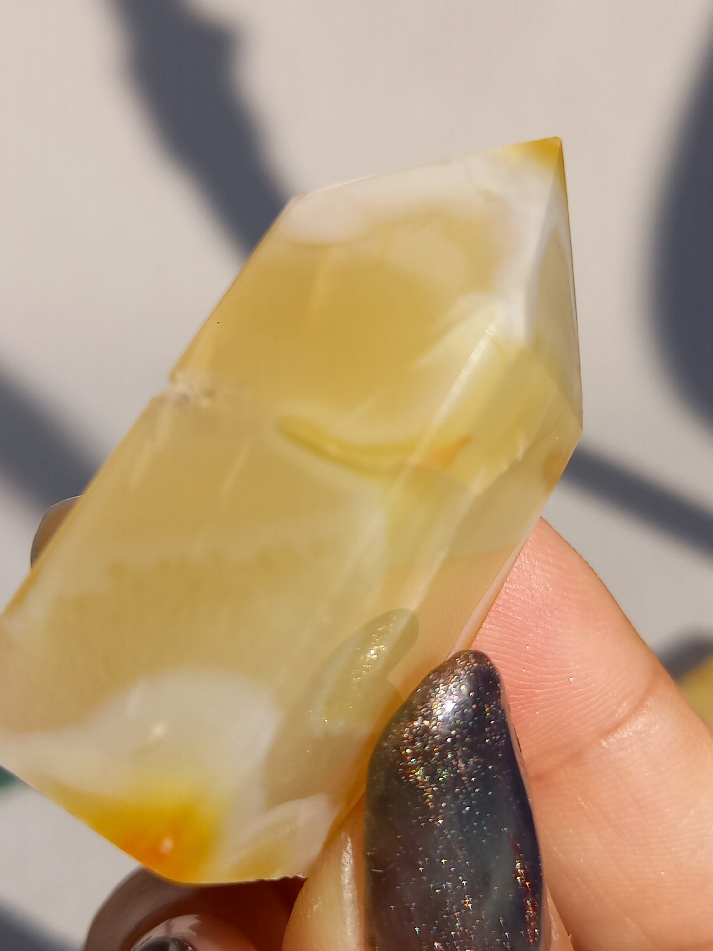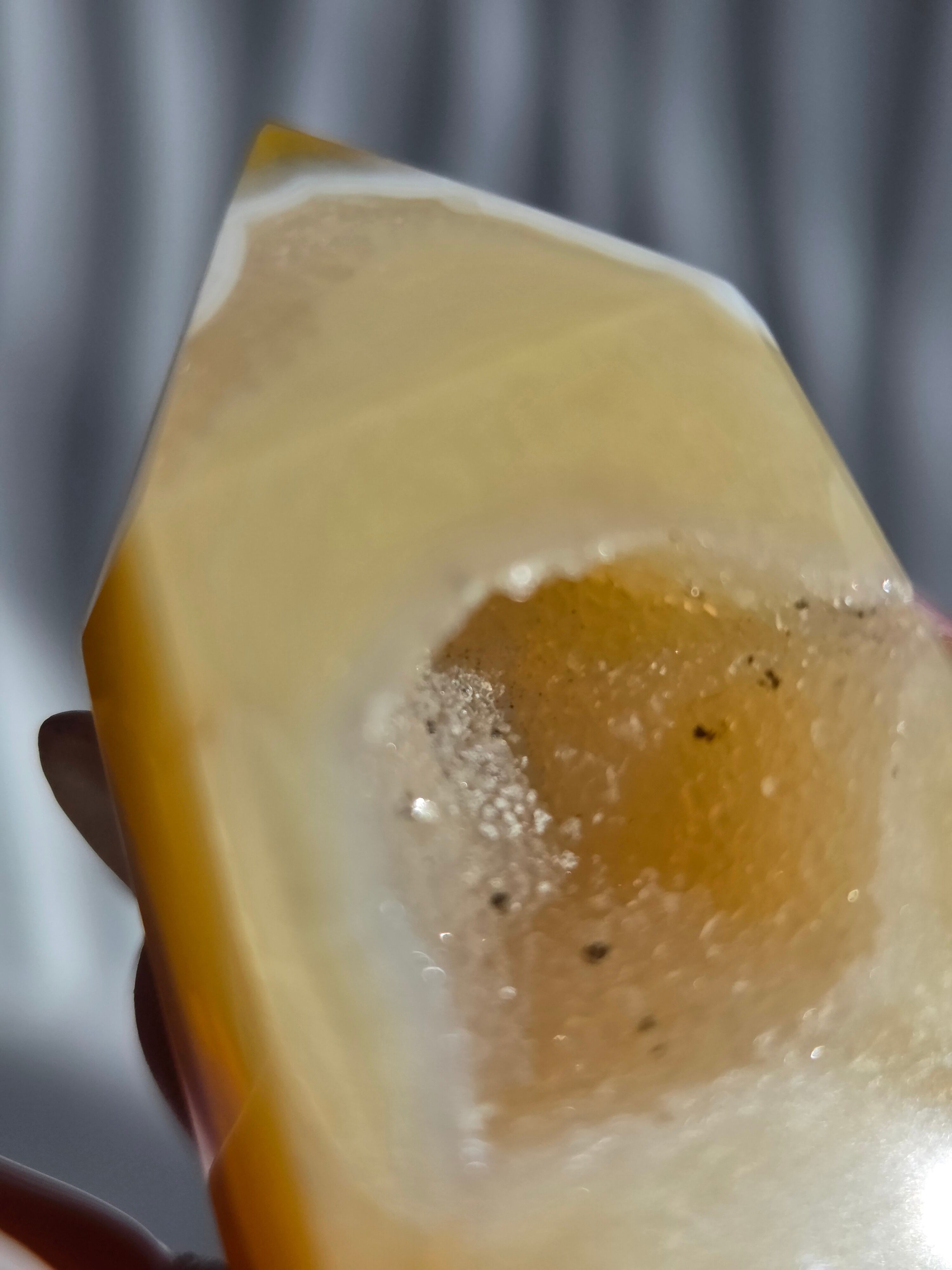 イエローカラーが、とっても可愛い、黄色瑪瑙です。ジオード部分と、小さめサイズが、ちょこんとキュートです。