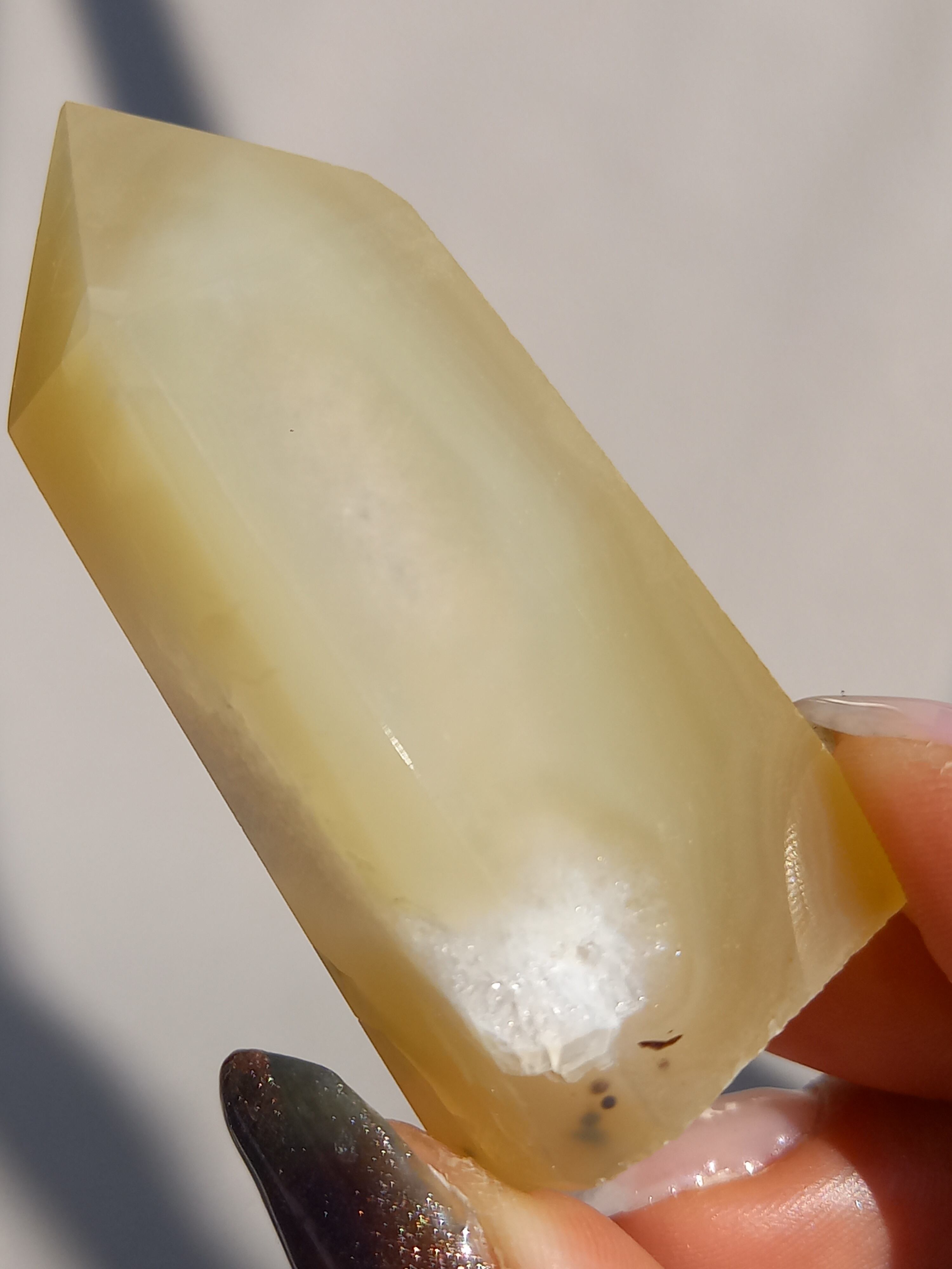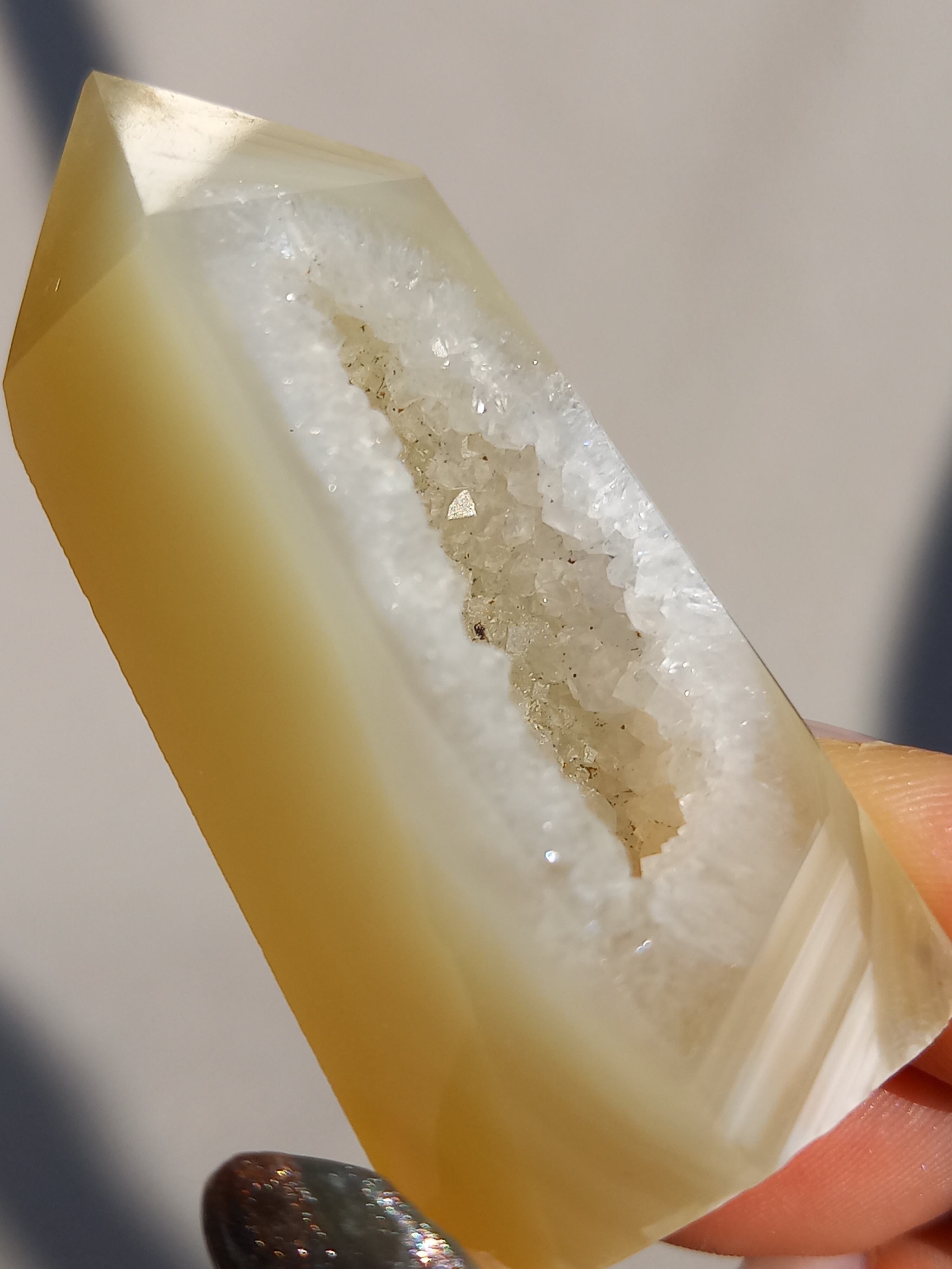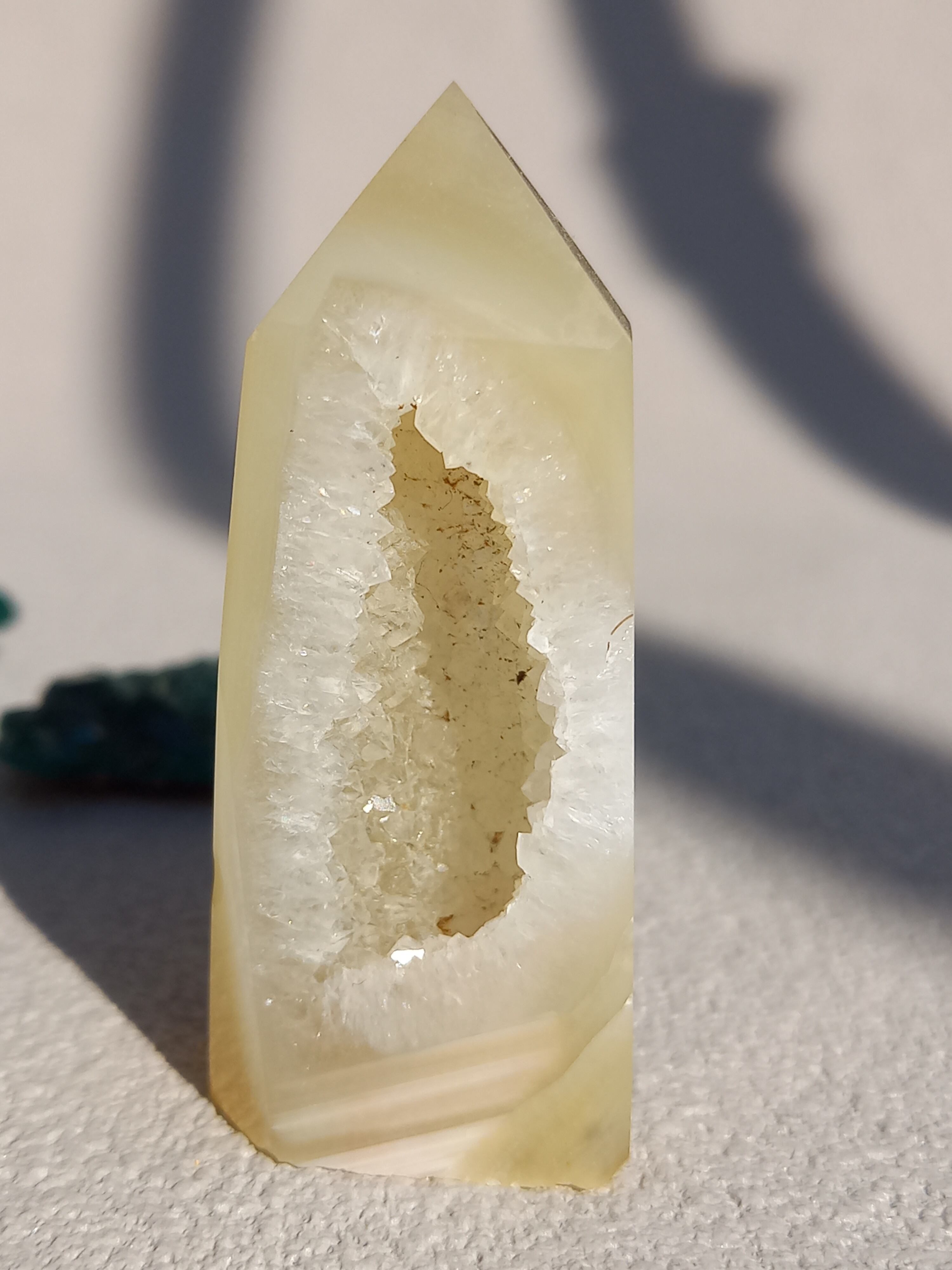 イエローカラーが、とっても可愛い、黄色瑪瑙です。ジオード部分と、小さめサイズが、ちょこんとキュートです。