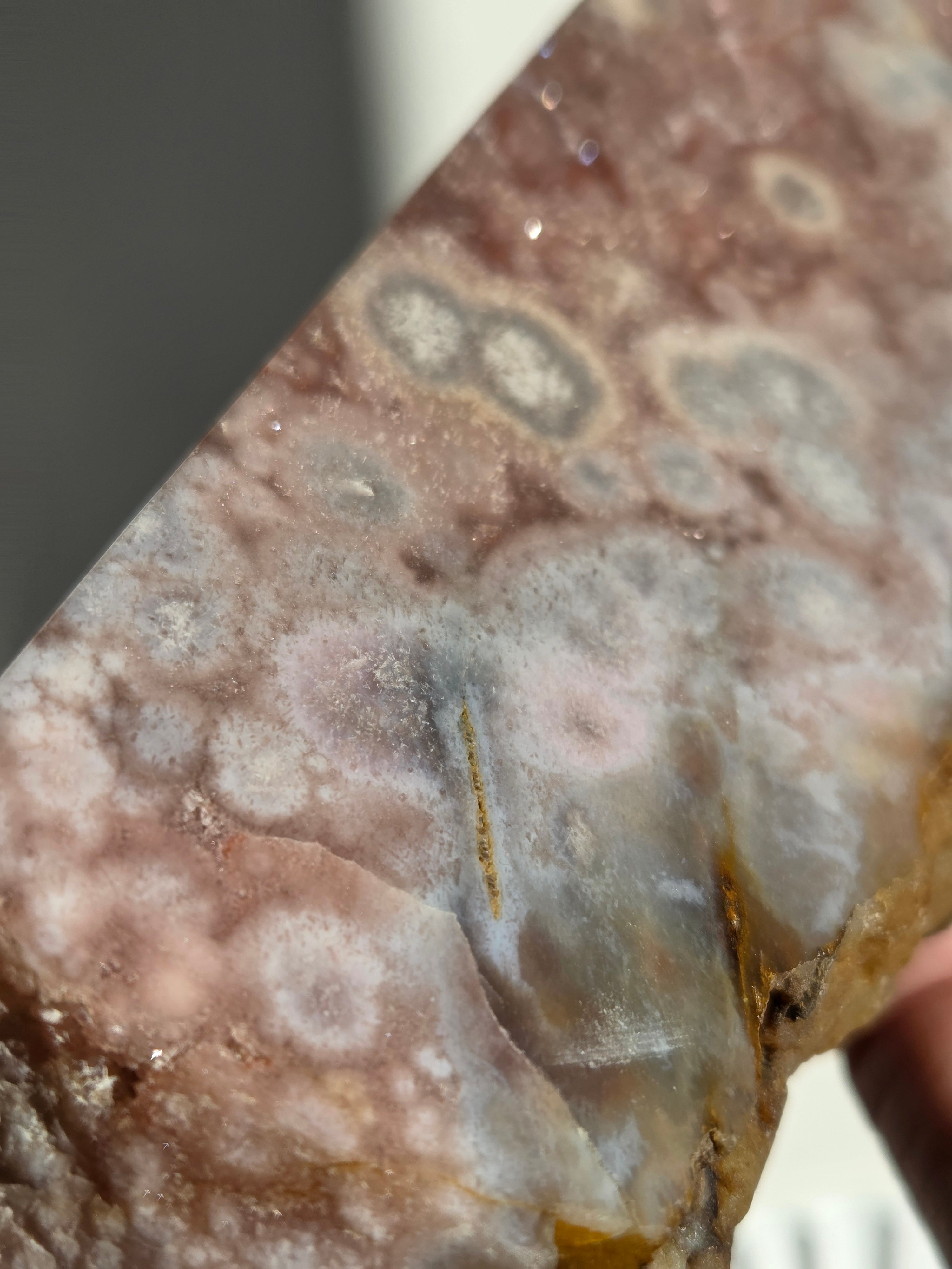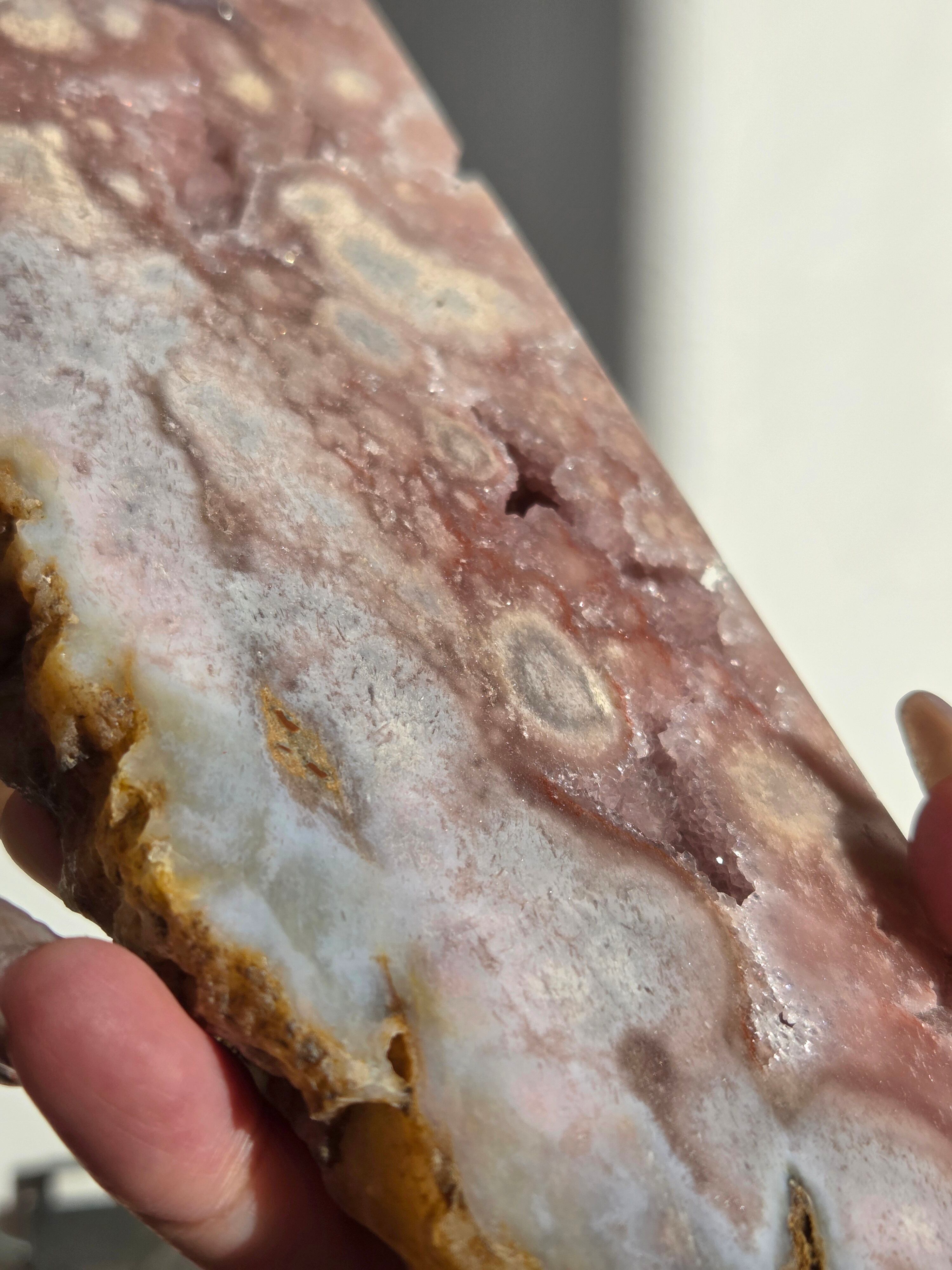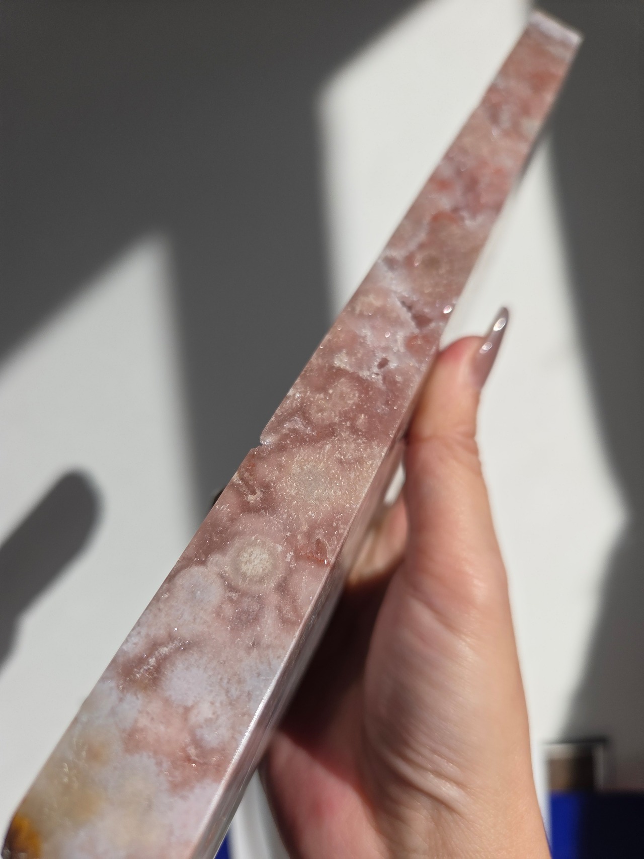 ピンクアメジスト×パープルアメジスト×フラワーアゲートの共生したスラブになります。